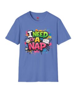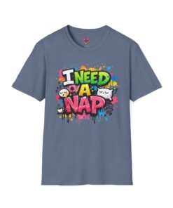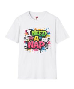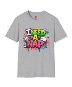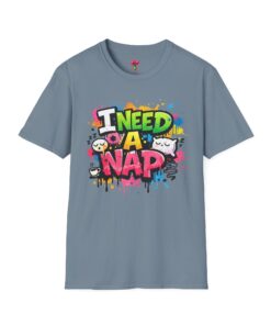 Bright, playful, and unapologetically sleepy — this lightweight crew tee wears personality on its chest. The bold, graffiti-style “I NEED A NAP” graphic pops in neon greens, pinks and yellows with doodled sleepy faces and coffee cups, giving a fun, street-art energy to everyday downtime. The soft, ring-spun cotton feels gentle against the skin and keeps the print crisp, so the shirt becomes a go-to for casual weekends, lazy afternoons, or whenever you need to say “I’m recharging” without words. Subtle details like a tear-away label and stable shoulder tape keep the fit comfortable and long-lasting, while the tubular knit construction creates a clean silhouette that layers easily under jackets or pairs with joggers and jeans. For grown-ups who celebrate naps, coffee breaks, and a bit of cheeky humor, this tee blends comfort, durability, and a bold sense of self.
