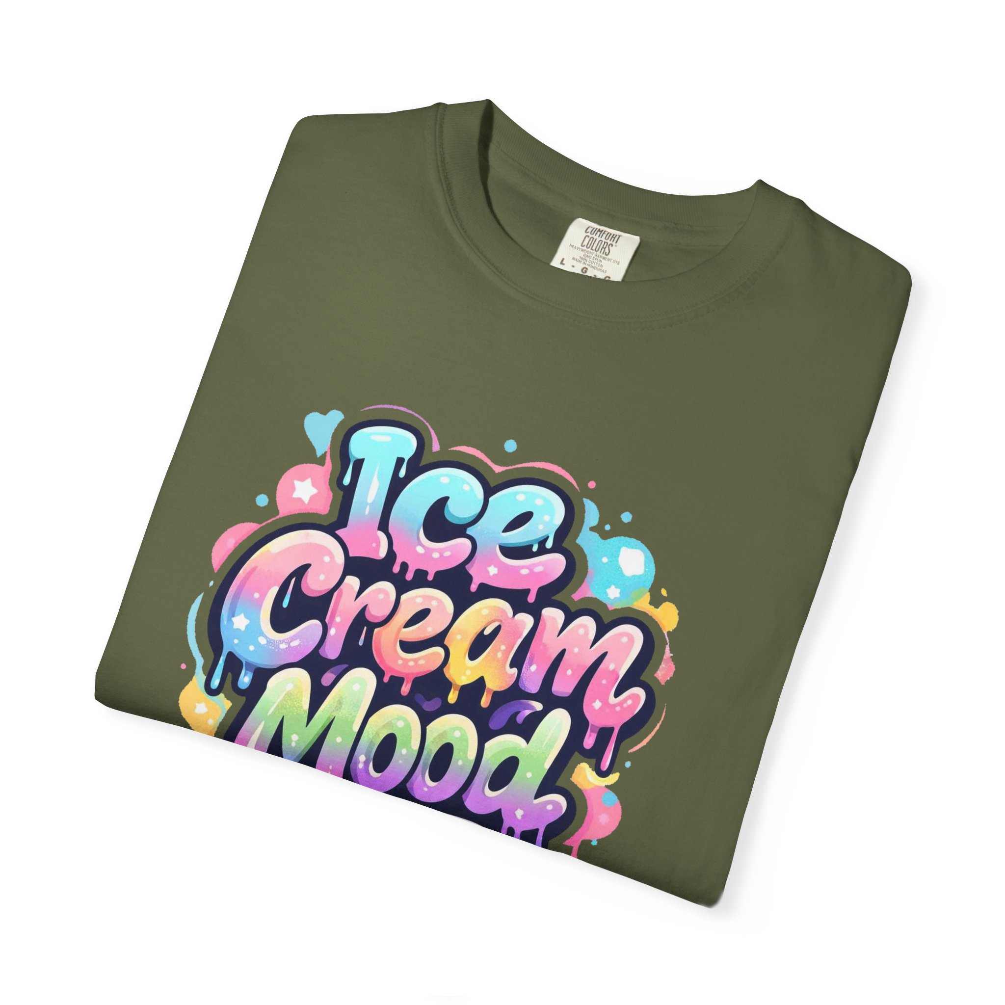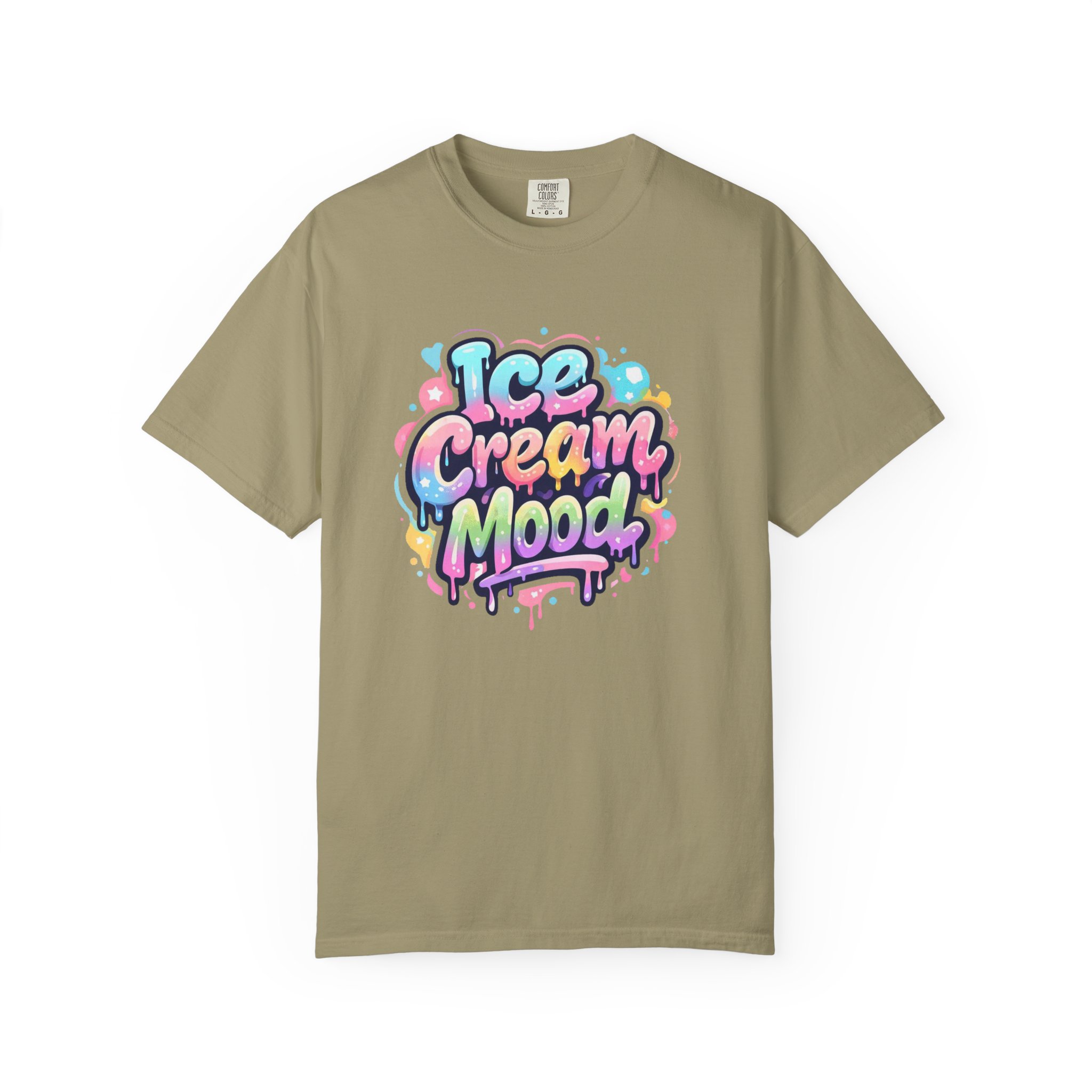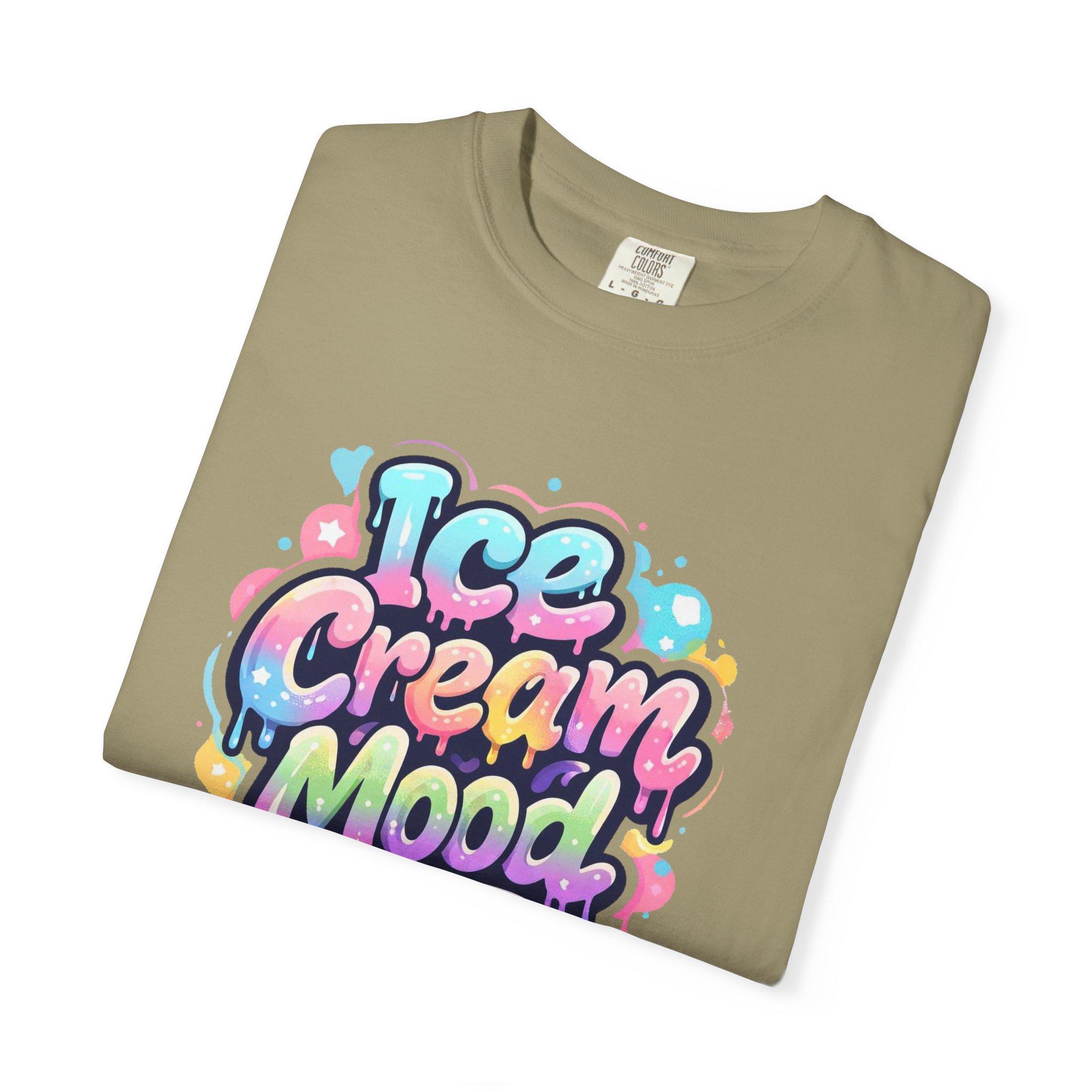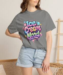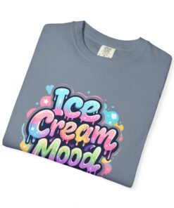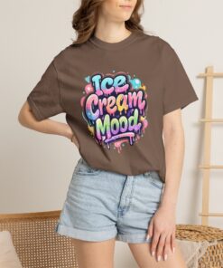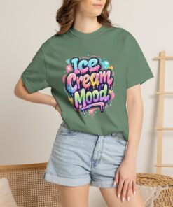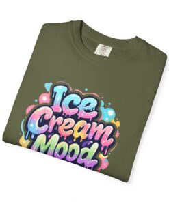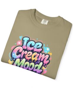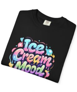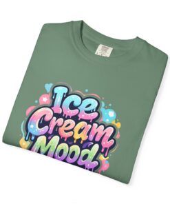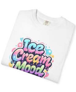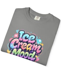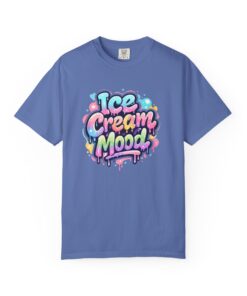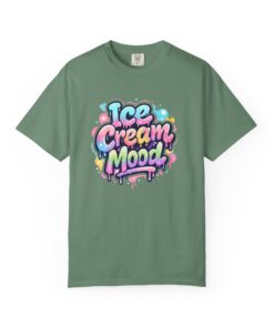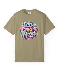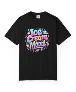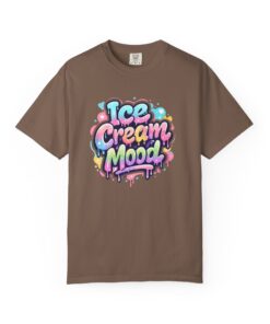 This soft, garment-dyed tee brings a playful, street-art energy to everyday wear. The relaxed, heavyweight cotton feels substantial yet broken-in from the first wear thanks to post-construction dyeing that creates a lived-in hand and gentle color variation. A vibrant, graffiti-style “Ice Cream Mood” graphic sits on the chest in pastel drips and bubble lettering — bright and nostalgic without feeling childish. Wear it to skateparks, weekend food markets, or when you want to layer under a denim jacket for an easy, colorful statement. The roomy fit and durable double-needle stitching mean it moves with you and stands up to repeated wear, while the tubular knit (no side seams) keeps the silhouette clean. Available in many colors and sizes, this tee blends bold, whimsical art with comfortable, long-lasting construction.