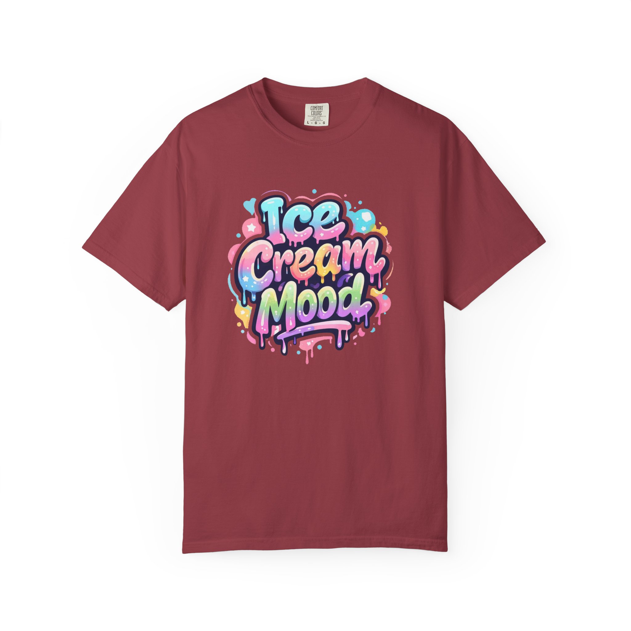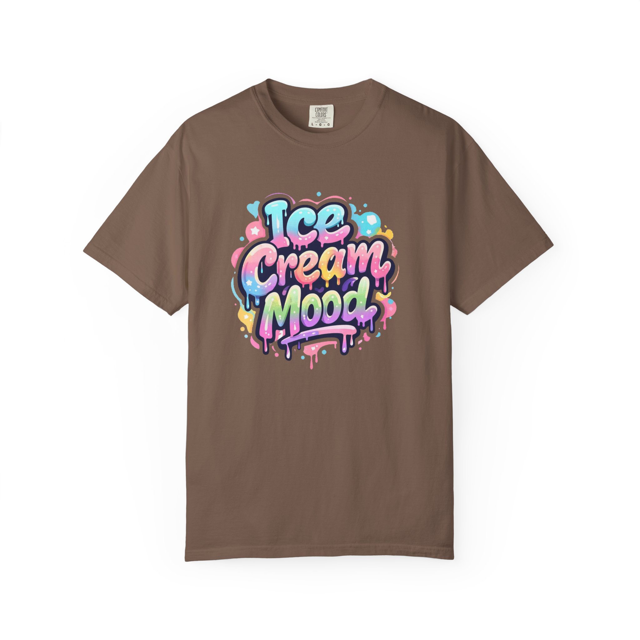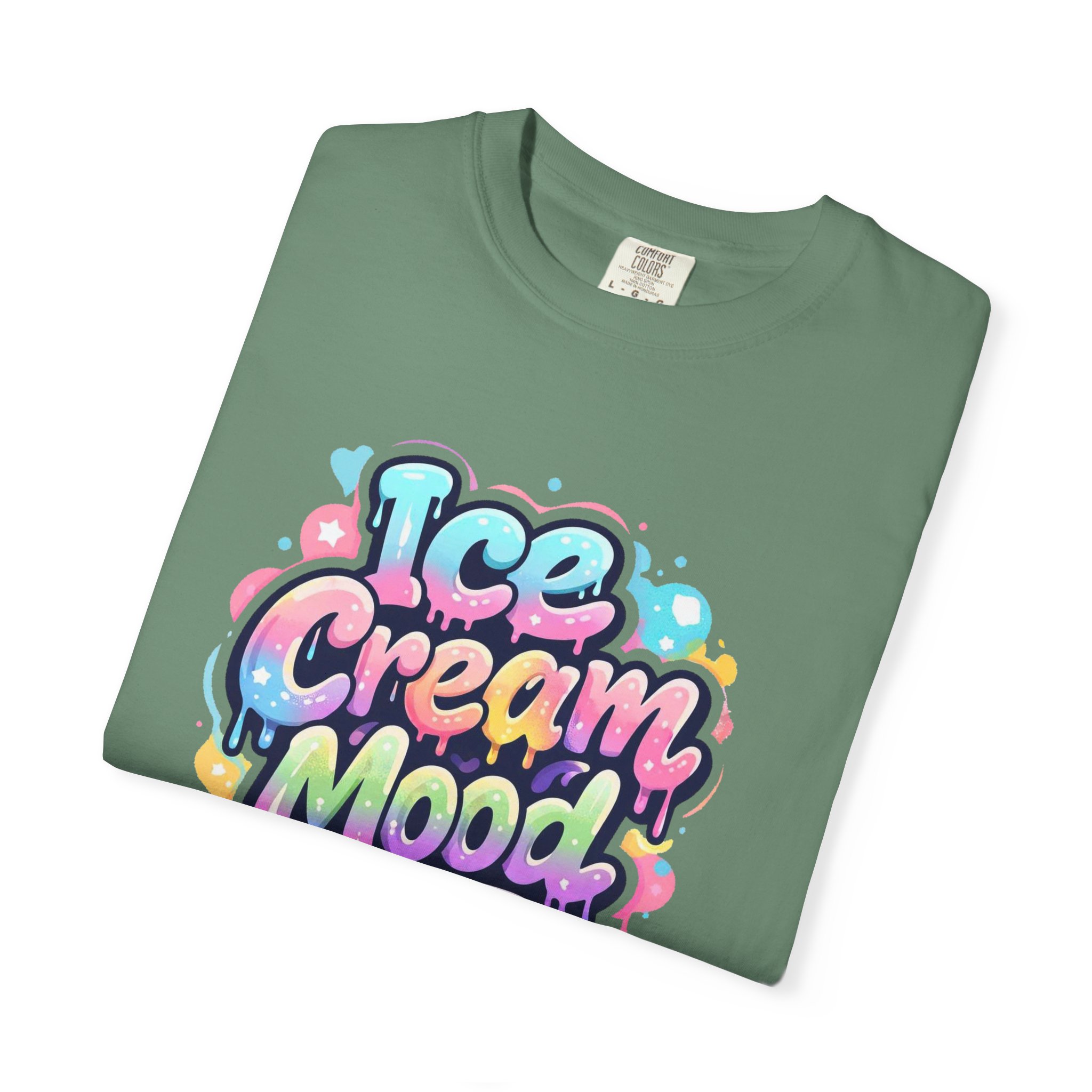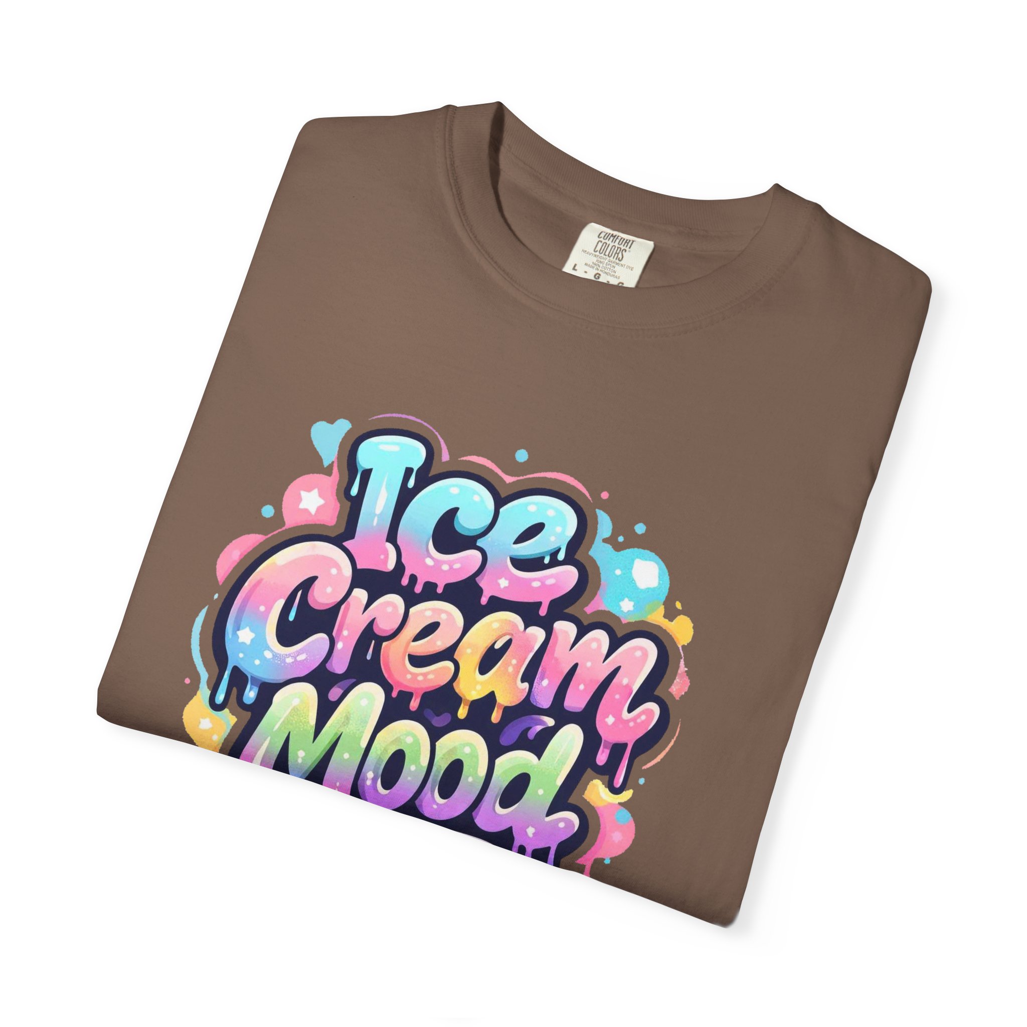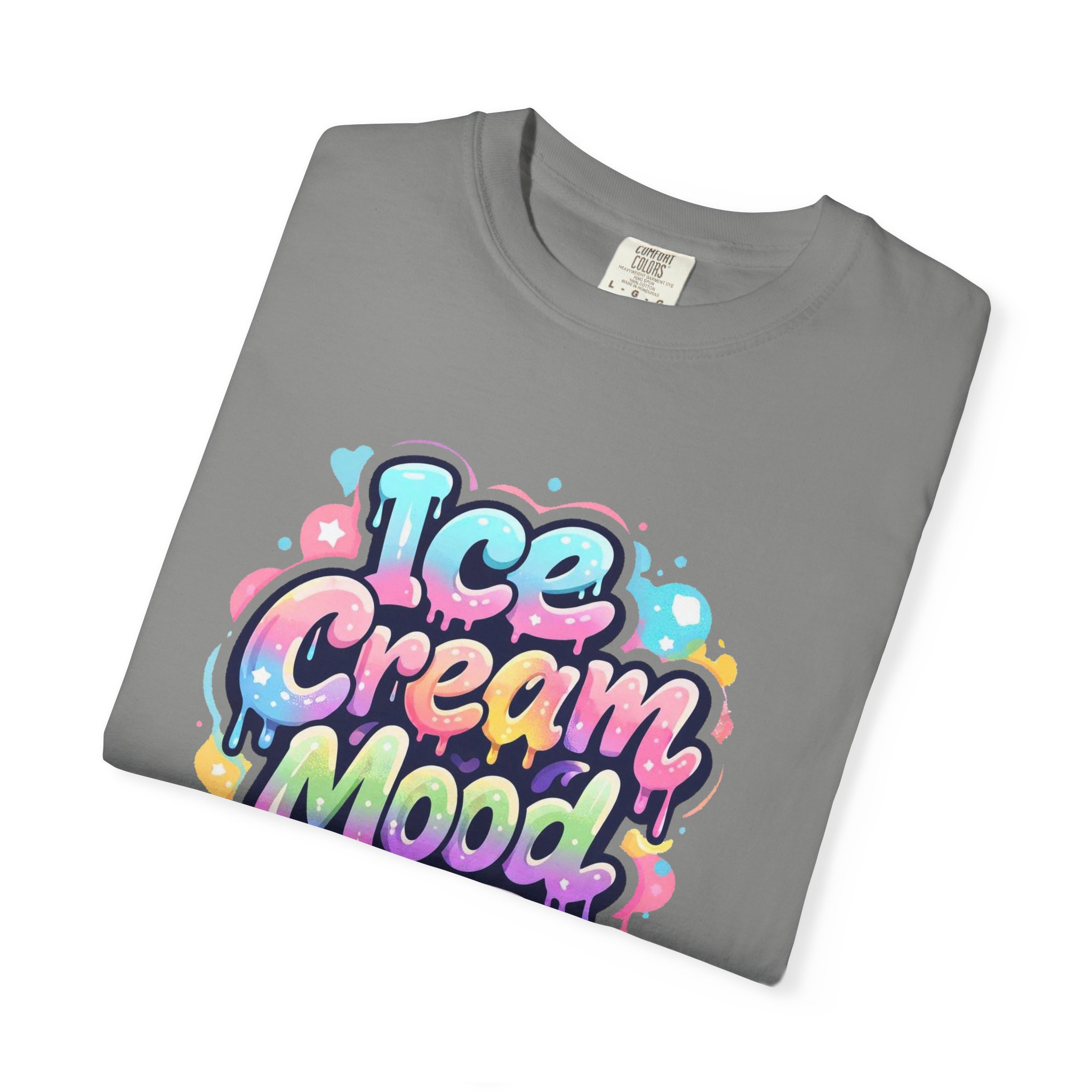 This soft, garment-dyed tee brings a playful, street-art energy to everyday wear. The relaxed, heavyweight cotton feels substantial yet broken-in from the first wear thanks to post-construction dyeing that creates a lived-in hand and gentle color variation. A vibrant, graffiti-style “Ice Cream Mood” graphic sits on the chest in pastel drips and bubble lettering — bright and nostalgic without feeling childish. Wear it to skateparks, weekend food markets, or when you want to layer under a denim jacket for an easy, colorful statement. The roomy fit and durable double-needle stitching mean it moves with you and stands up to repeated wear, while the tubular knit (no side seams) keeps the silhouette clean. Available in many colors and sizes, this tee blends bold, whimsical art with comfortable, long-lasting construction.