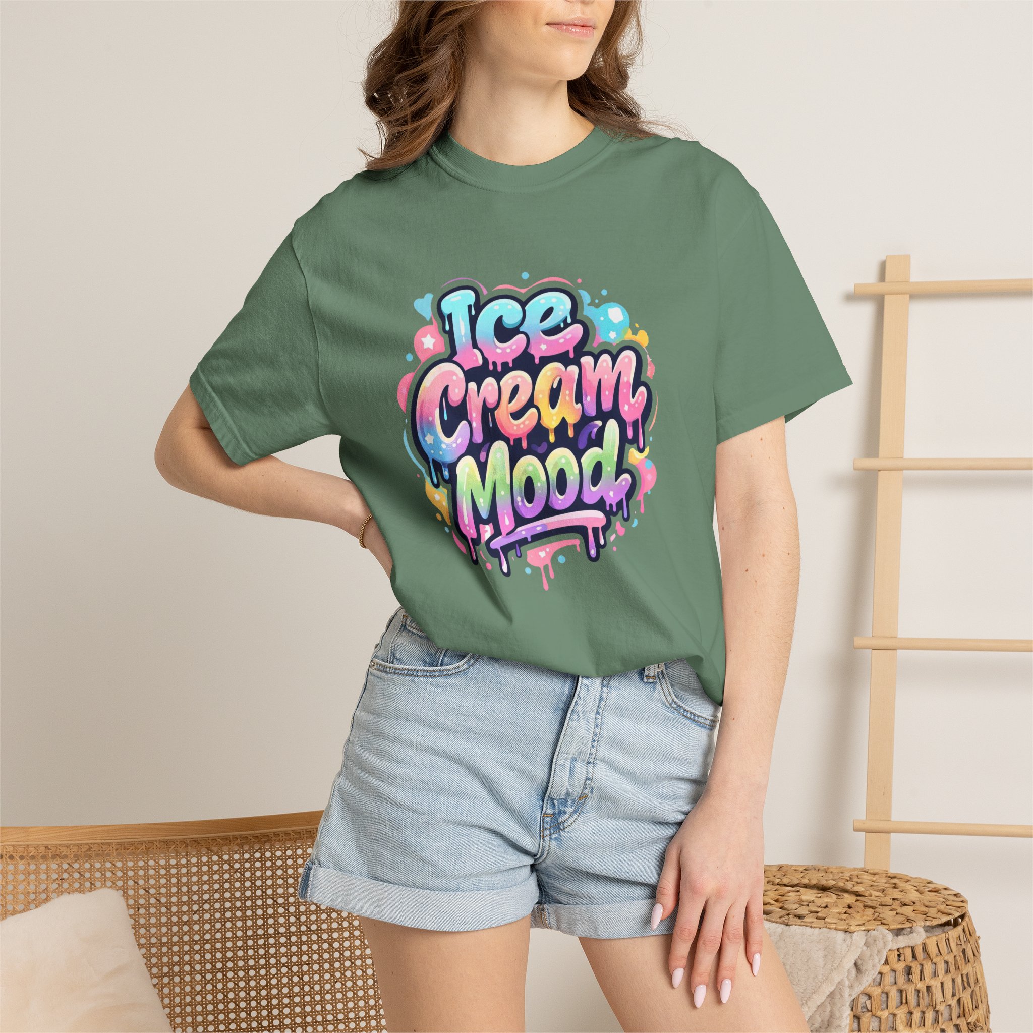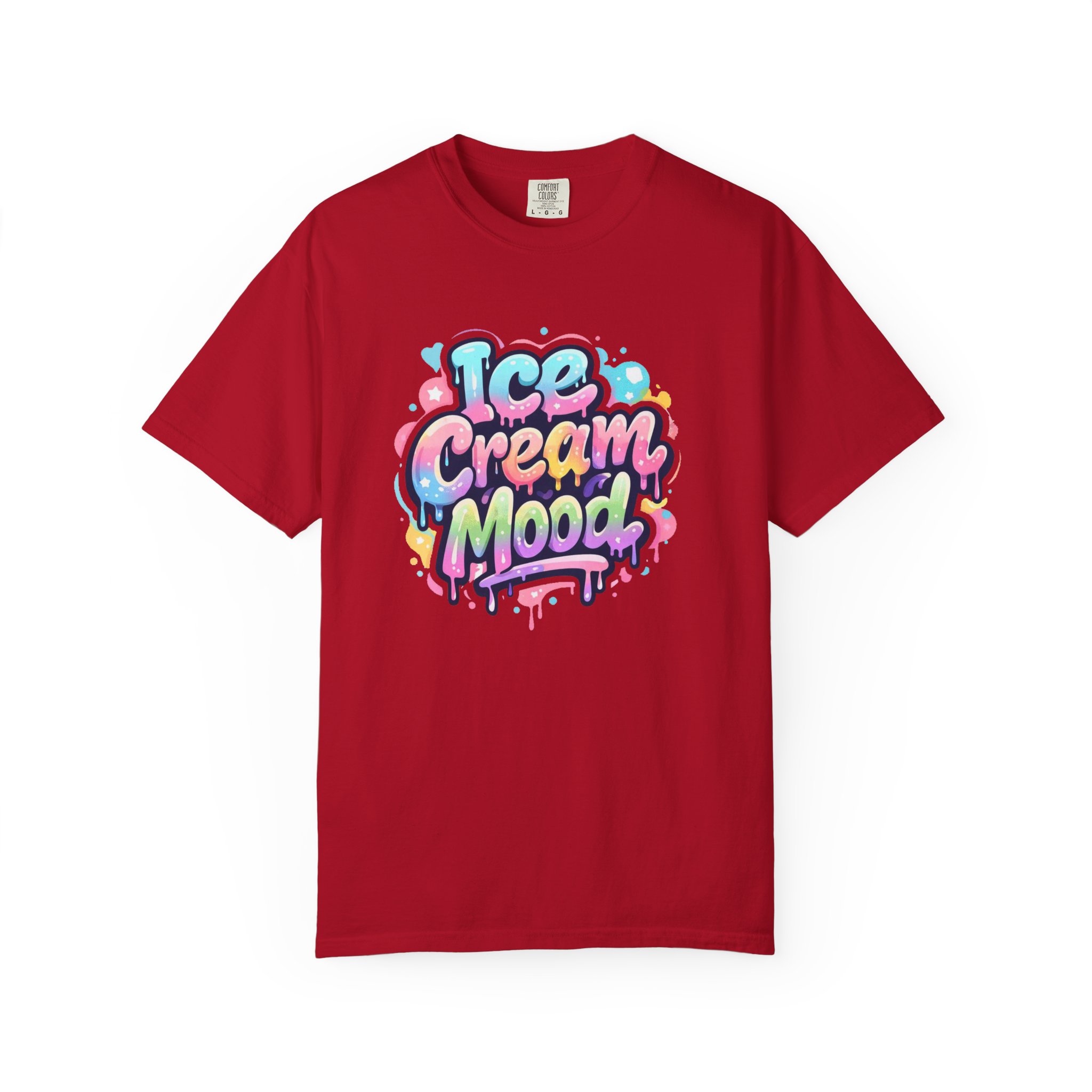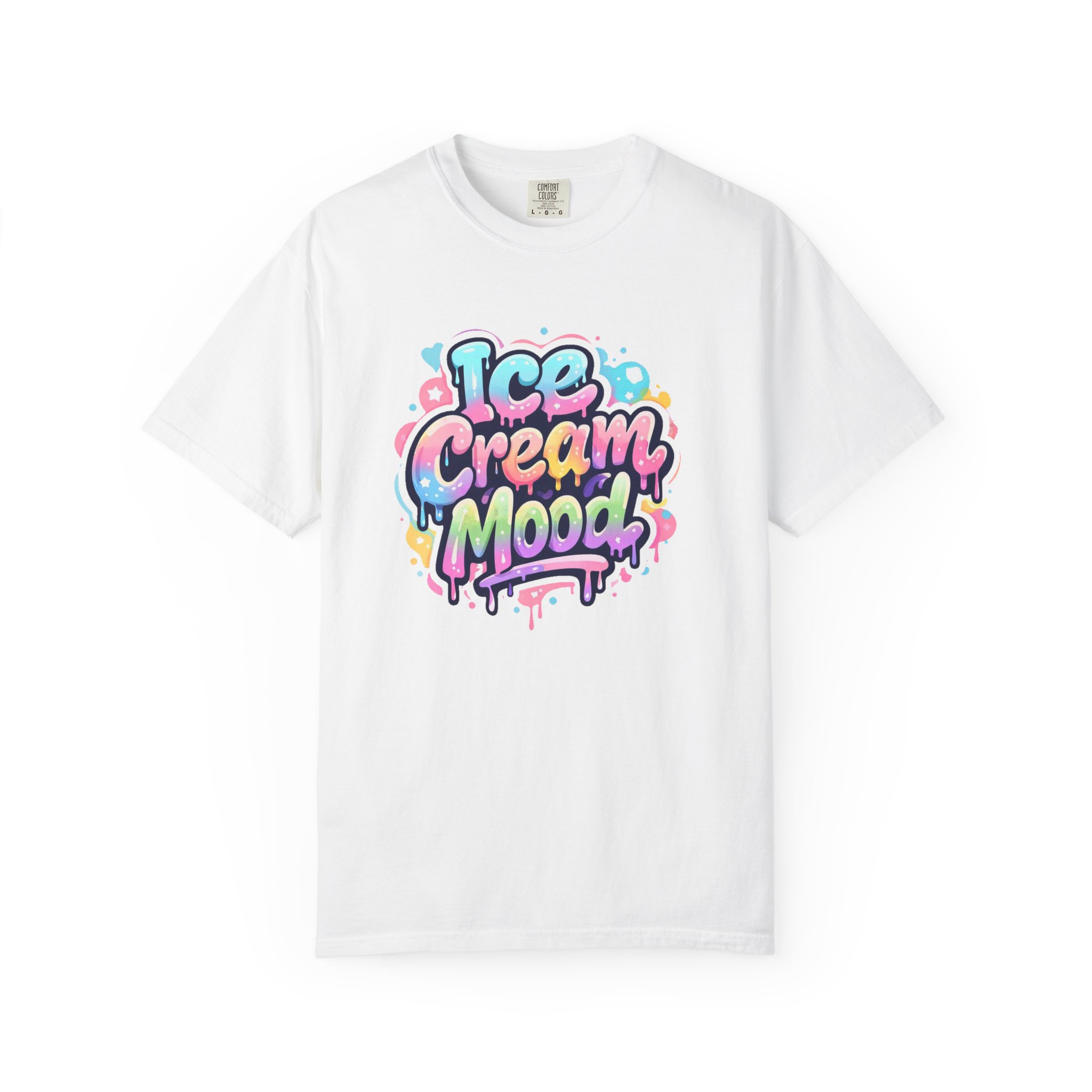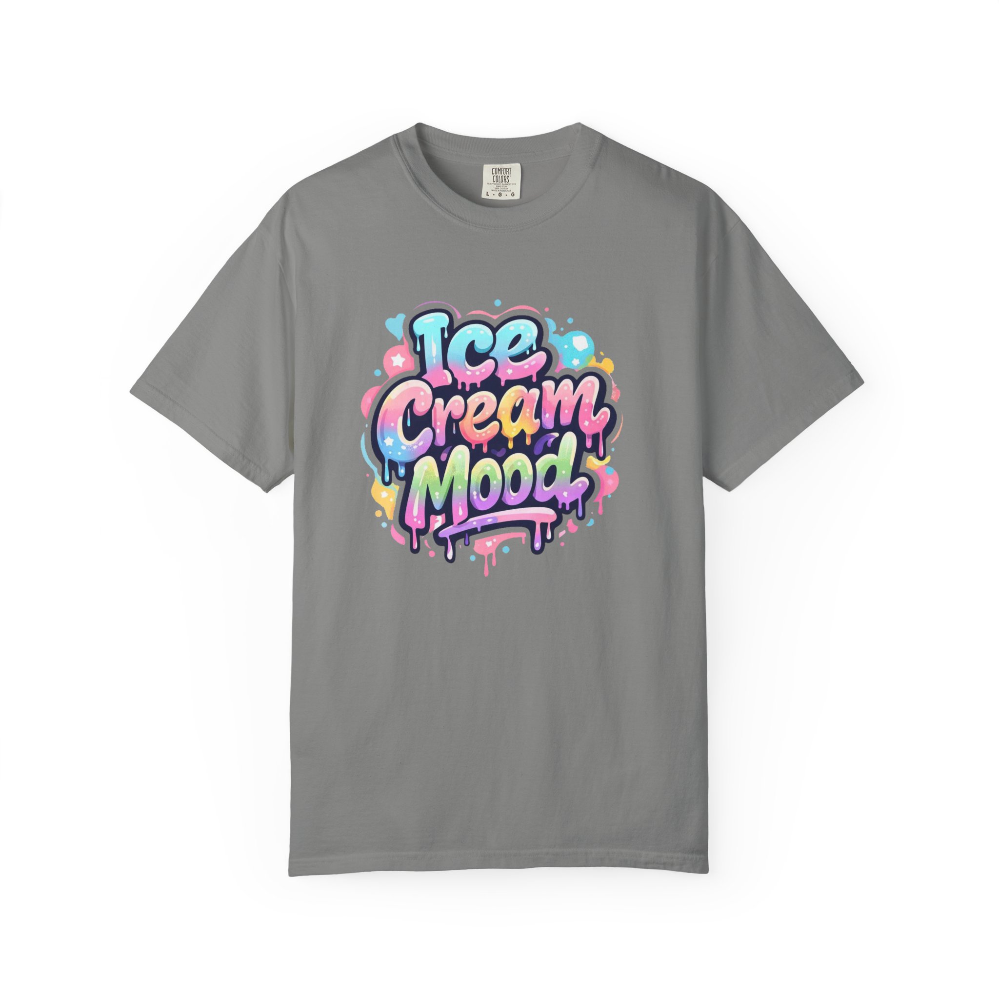 This soft, garment-dyed tee brings a playful, street-art energy to everyday wear. The relaxed, heavyweight cotton feels substantial yet broken-in from the first wear thanks to post-construction dyeing that creates a lived-in hand and gentle color variation. A vibrant, graffiti-style “Ice Cream Mood” graphic sits on the chest in pastel drips and bubble lettering — bright and nostalgic without feeling childish. Wear it to skateparks, weekend food markets, or when you want to layer under a denim jacket for an easy, colorful statement. The roomy fit and durable double-needle stitching mean it moves with you and stands up to repeated wear, while the tubular knit (no side seams) keeps the silhouette clean. Available in many colors and sizes, this tee blends bold, whimsical art with comfortable, long-lasting construction.