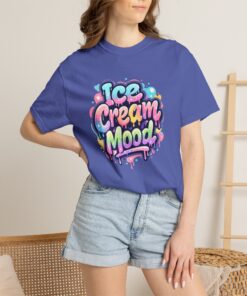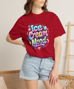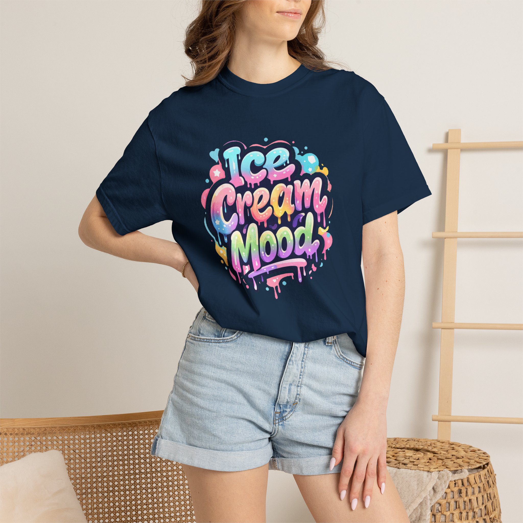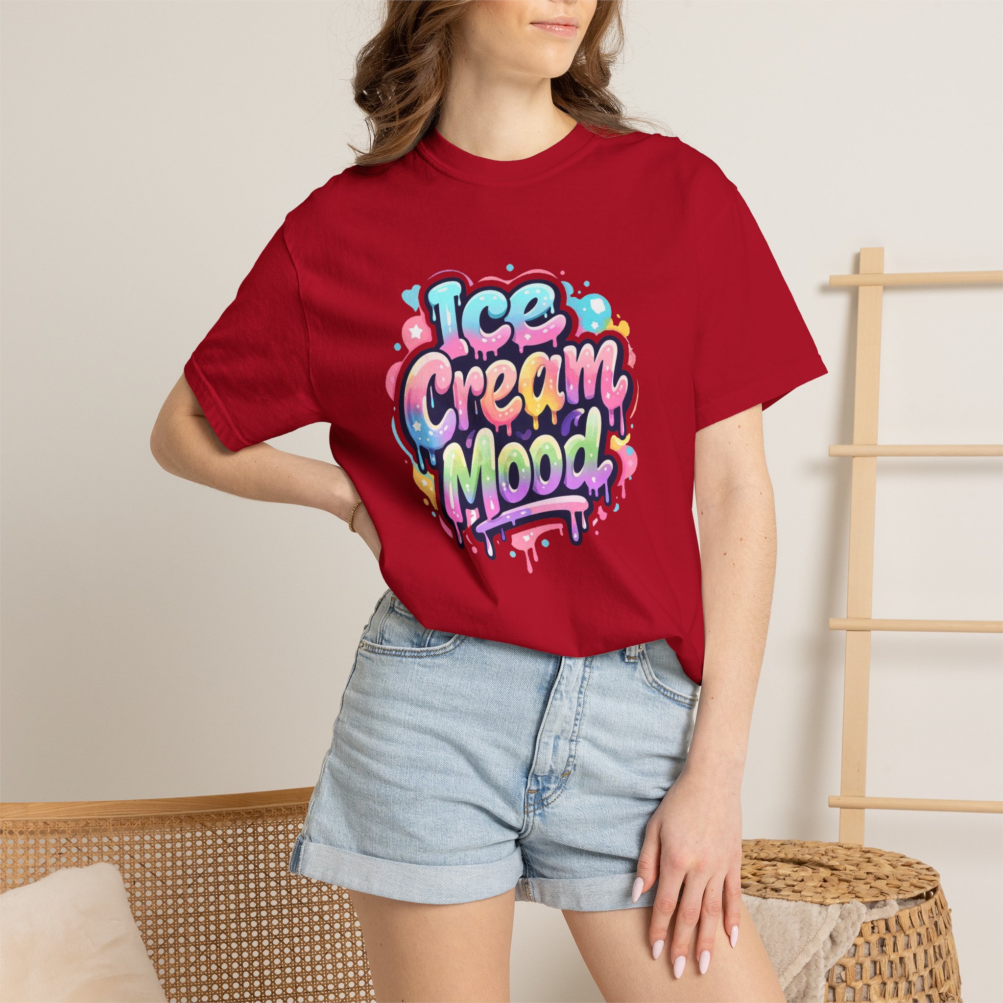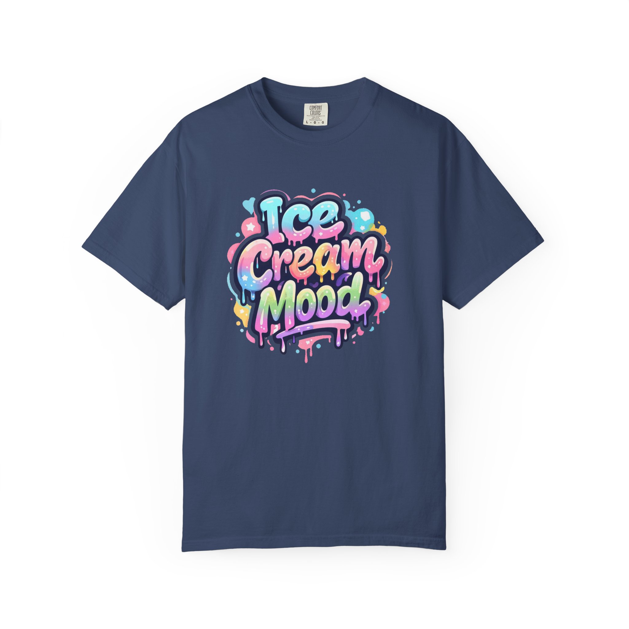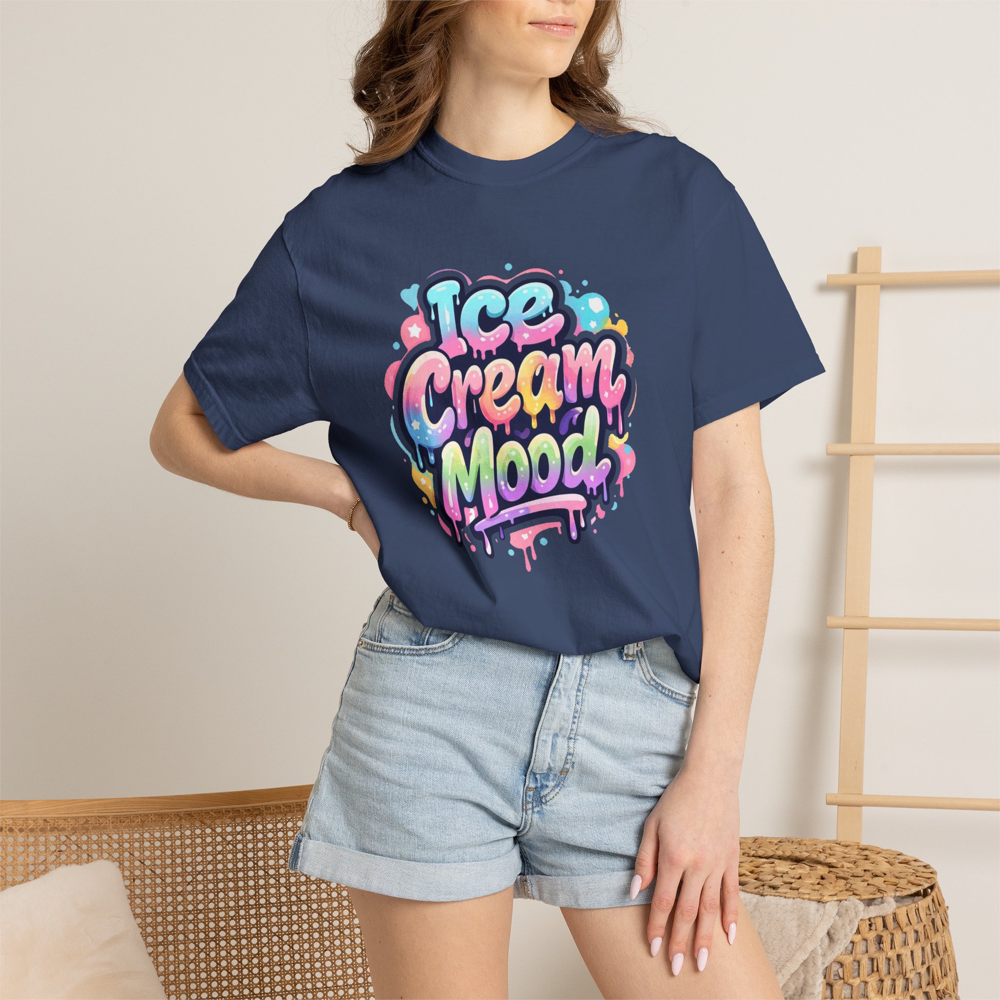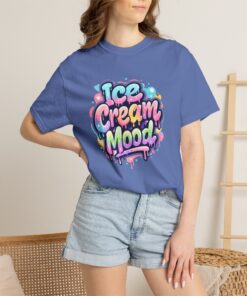 This soft, garment-dyed tee brings a playful, street-art energy to everyday wear. The relaxed, heavyweight cotton feels substantial yet broken-in from the first wear thanks to post-construction dyeing that creates a lived-in hand and gentle color variation. A vibrant, graffiti-style “Ice Cream Mood” graphic sits on the chest in pastel drips and bubble lettering — bright and nostalgic without feeling childish. Wear it to skateparks, weekend food markets, or when you want to layer under a denim jacket for an easy, colorful statement. The roomy fit and durable double-needle stitching mean it moves with you and stands up to repeated wear, while the tubular knit (no side seams) keeps the silhouette clean. Available in many colors and sizes, this tee blends bold, whimsical art with comfortable, long-lasting construction.