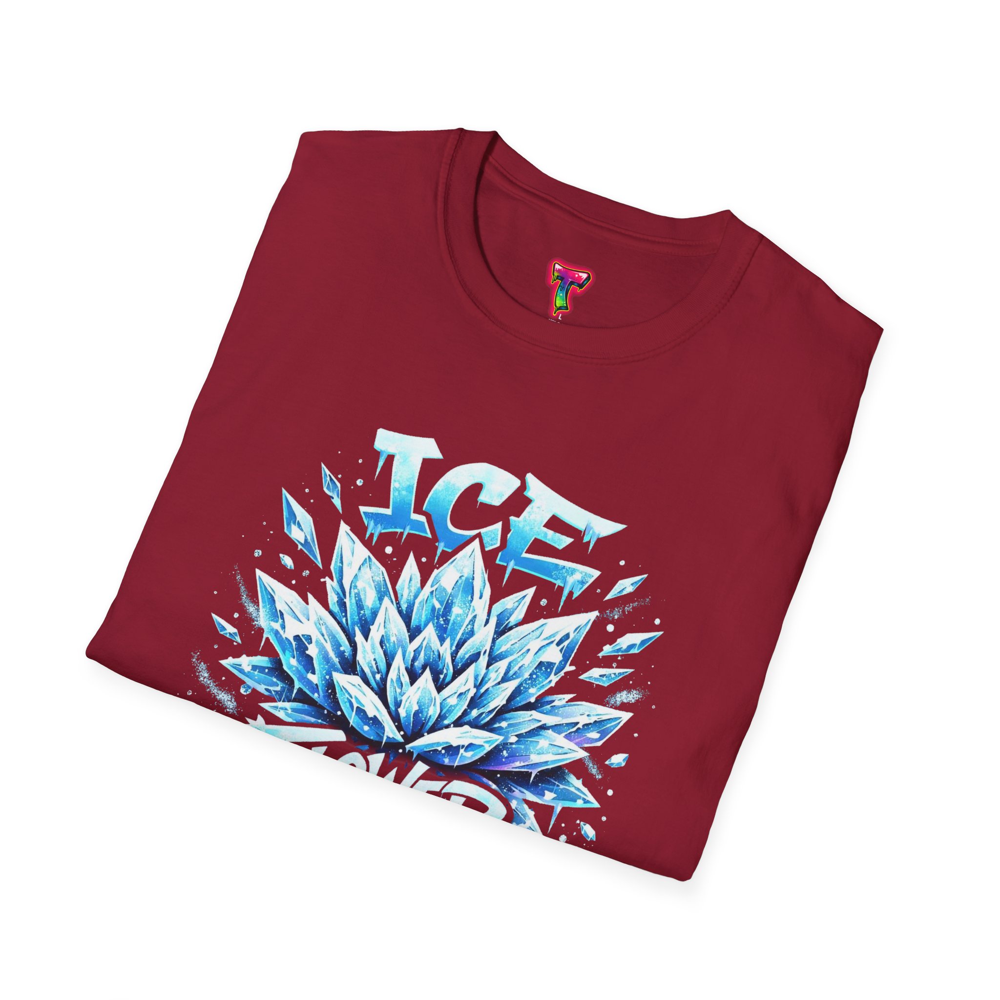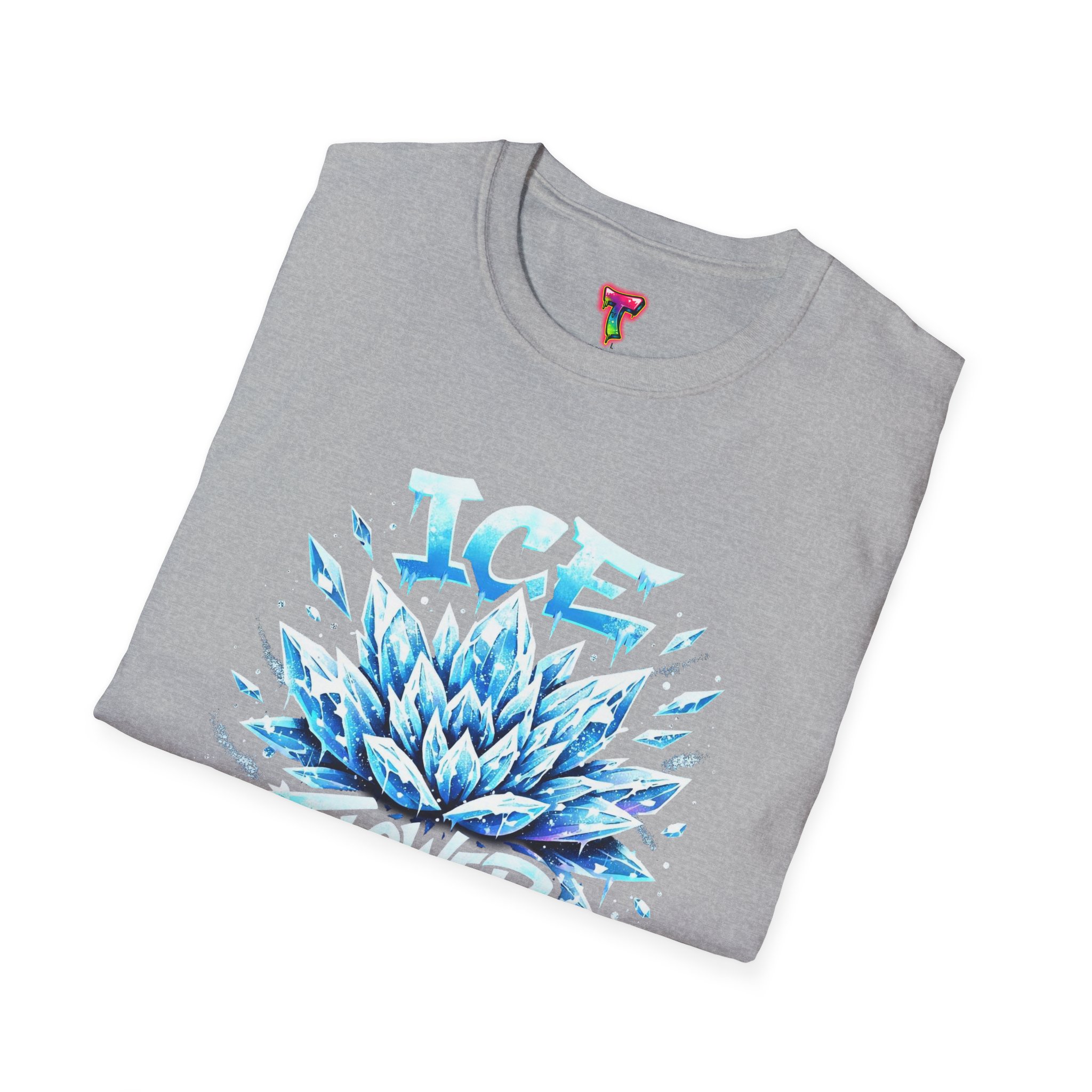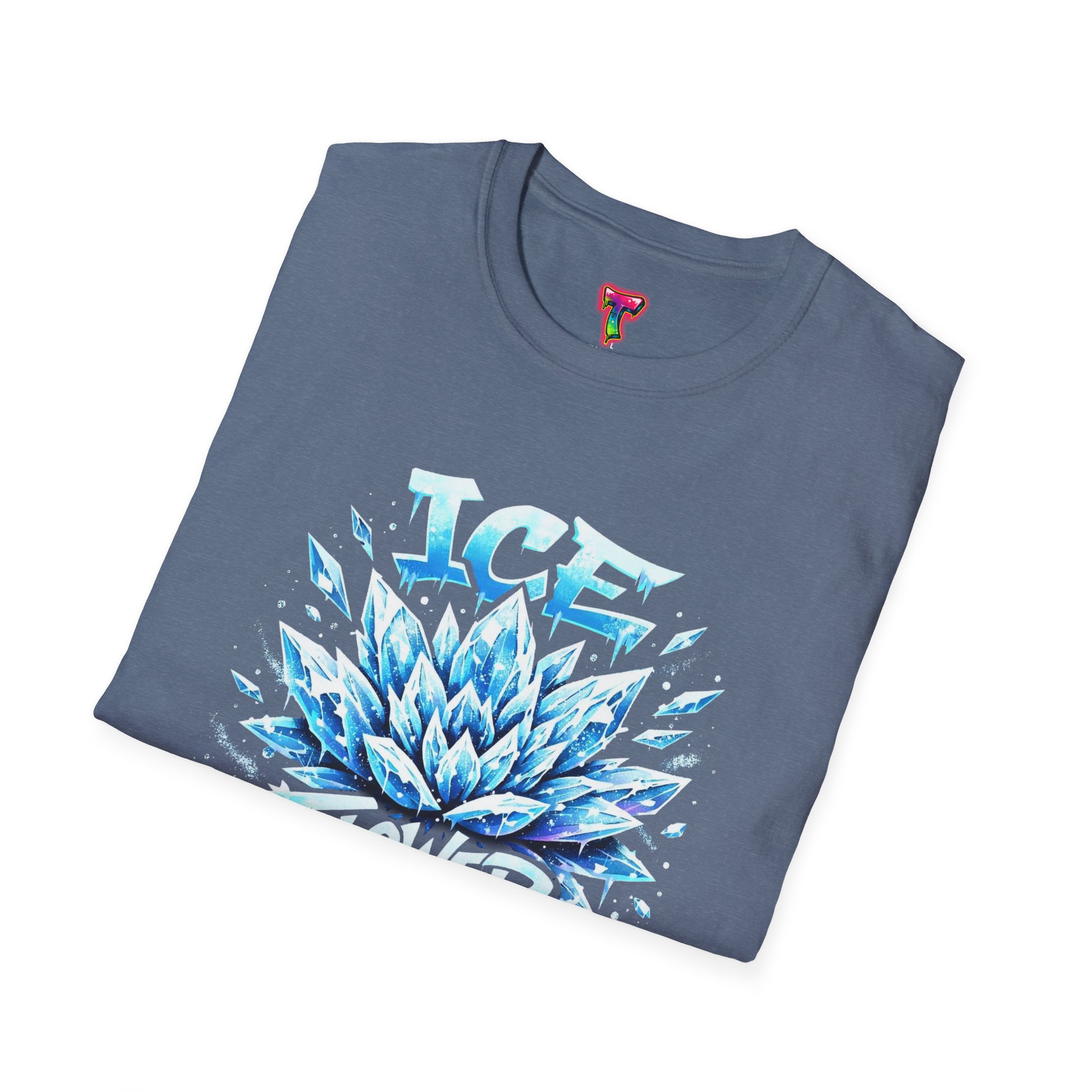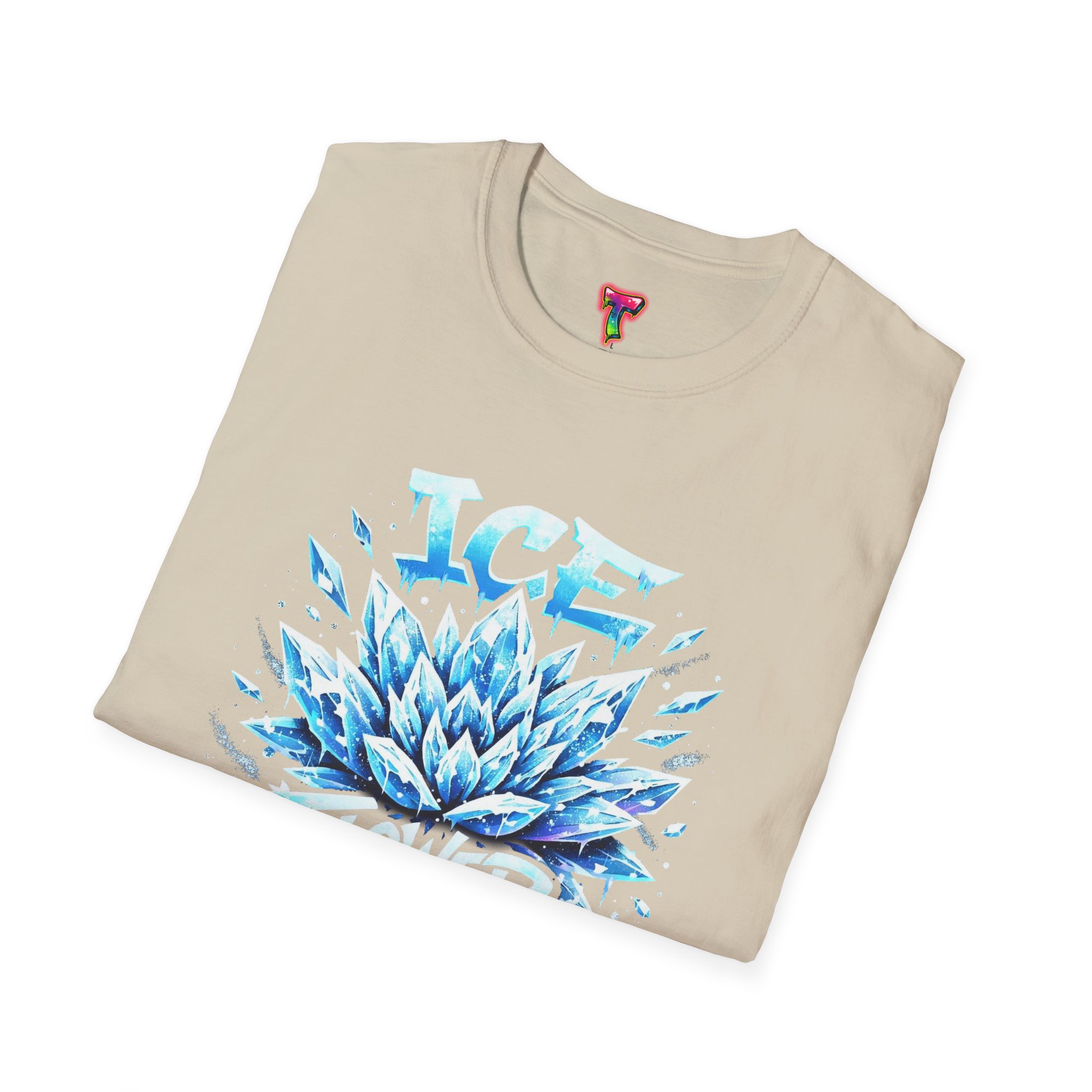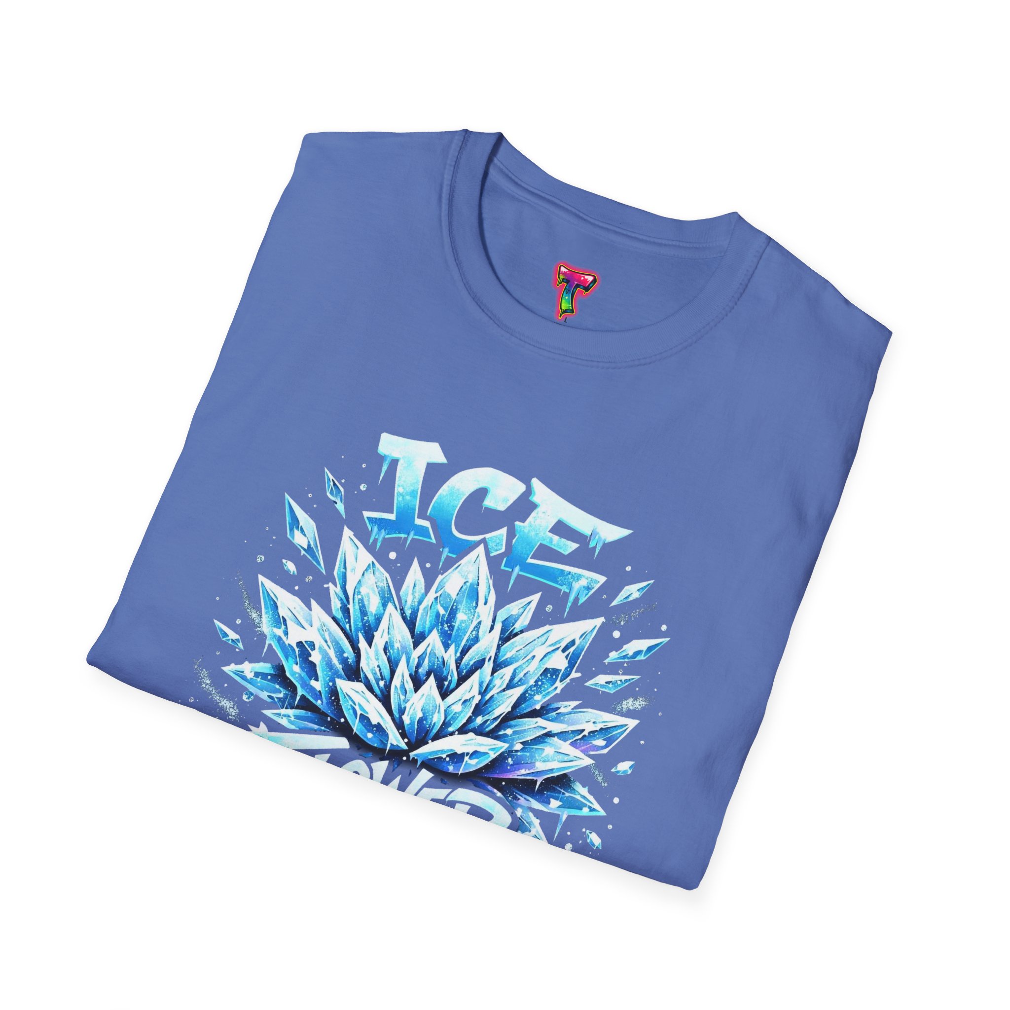 Cold, sharp, and unstoppable — this “Ice Flower Bloom” design captures the explosive beauty of frozen energy. A crystalline flower bursts outward in icy blue shards, surrounded by dynamic motion and graffiti-style typography that amplifies the impact. The contrast between the cool palette and aggressive composition creates a powerful visual that feels both fresh and intense.