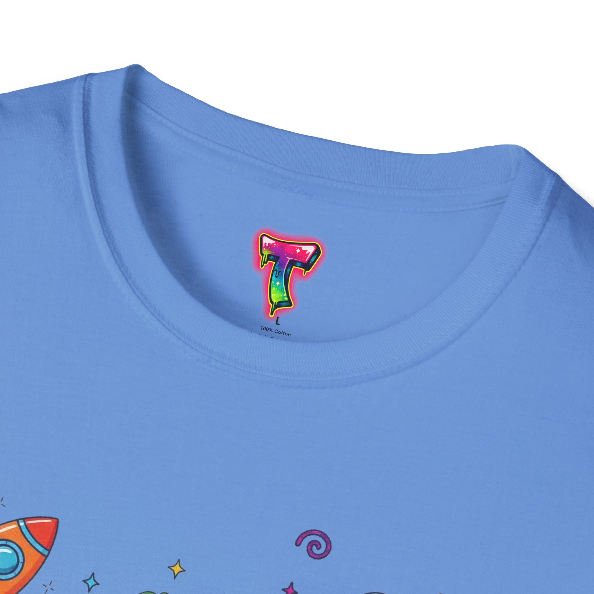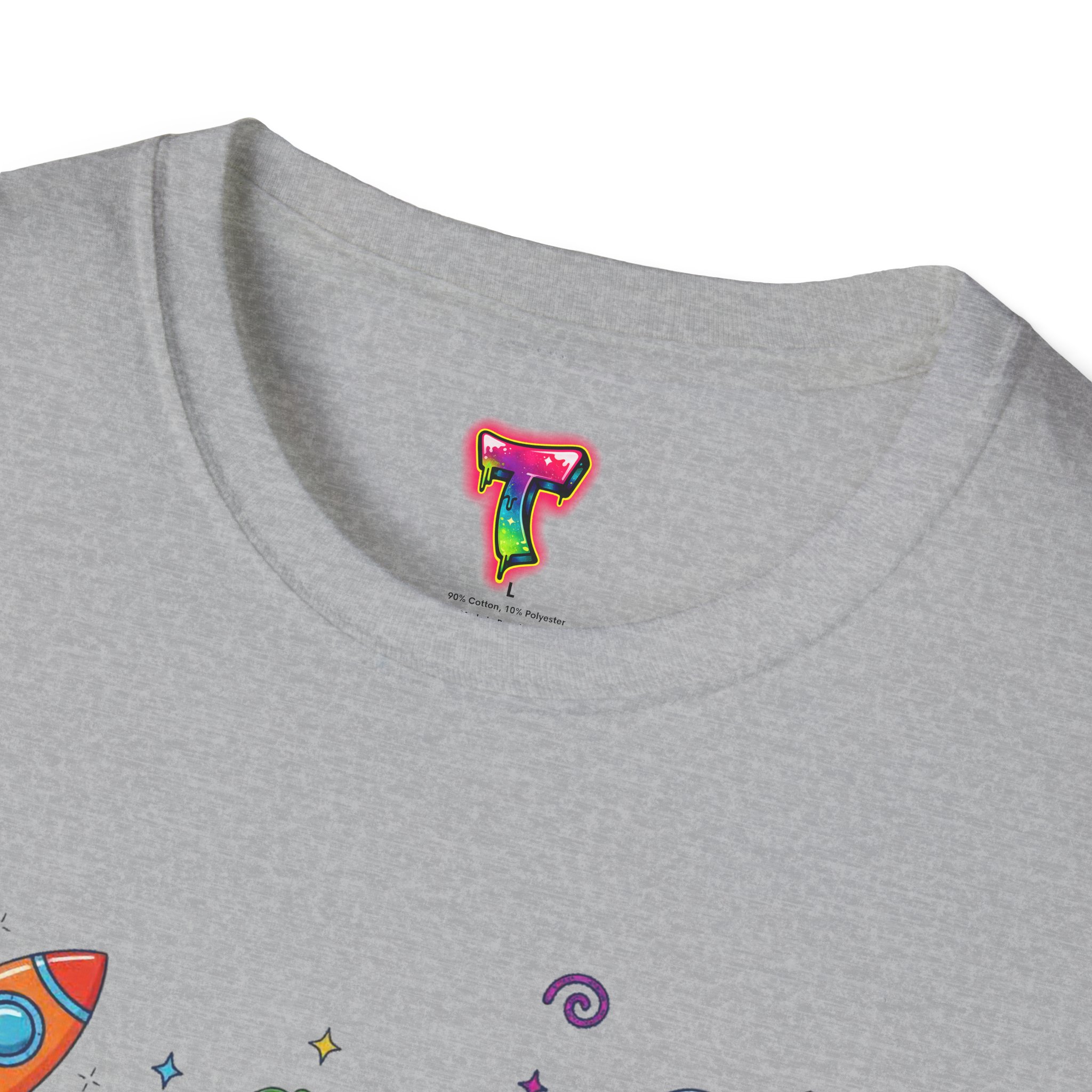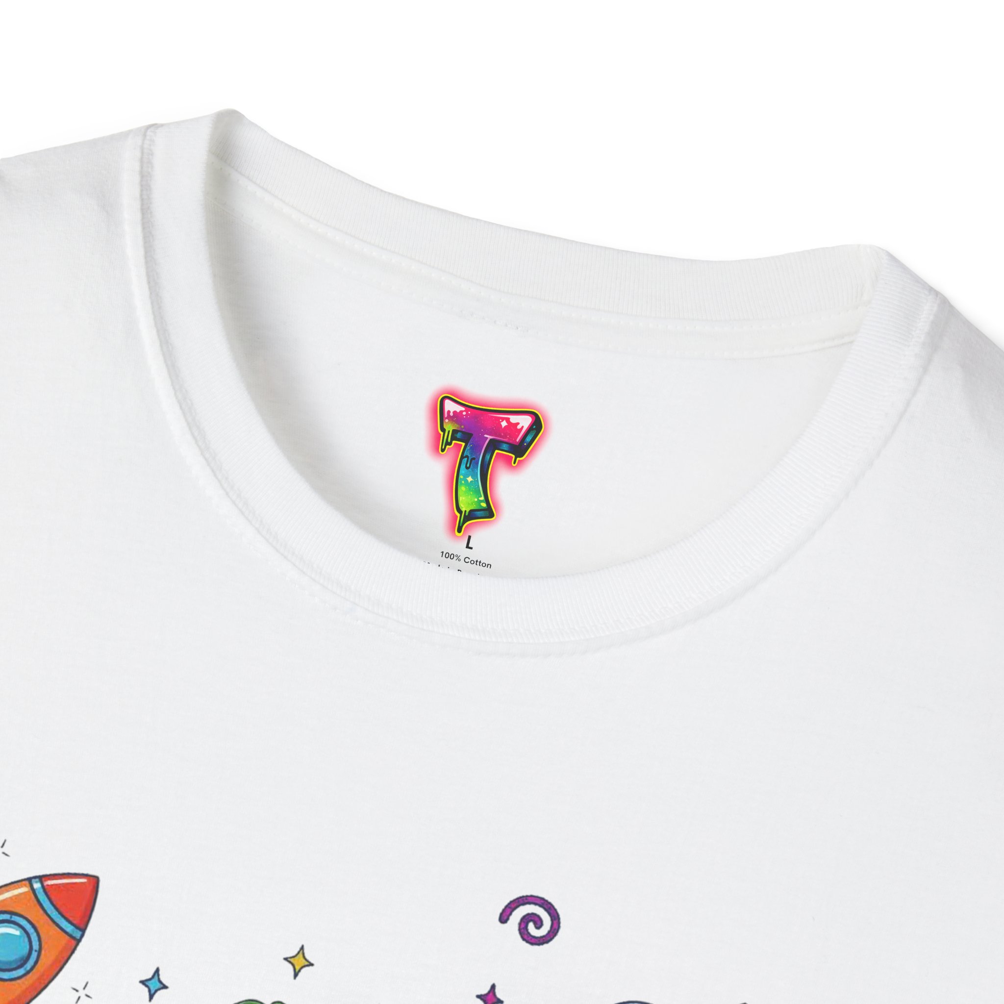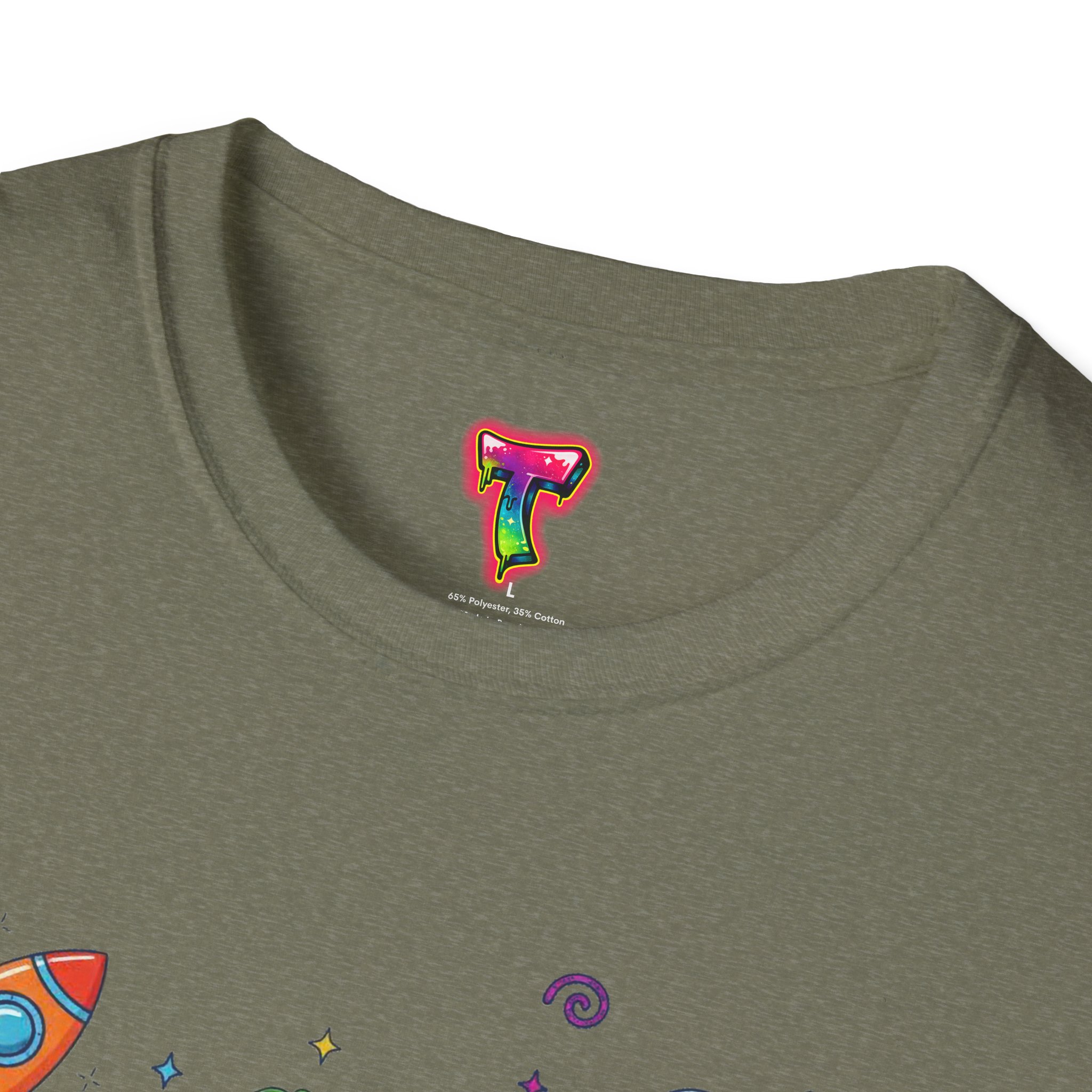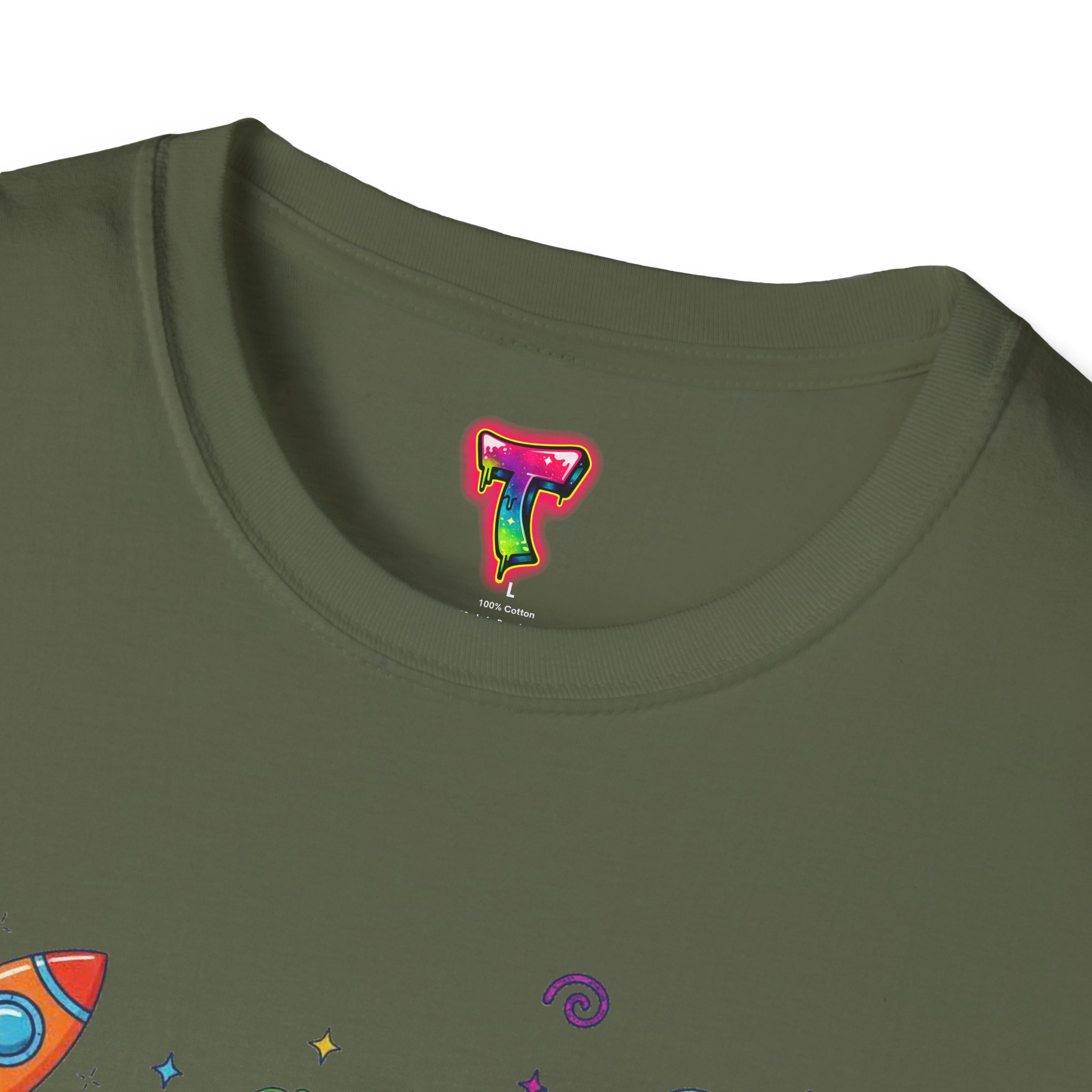 Wearable optimism for makers and dreamers. This lightweight crewneck tee pairs soft, ring-spun cotton with a playful, space-and-gear illustration that spells out “INNOVATE.” Bright rockets, planets and tiny cogs peek through bold lettering, giving the shirt a creative, workshop-to-hackathon energy. It sits comfortably across the shoulders with a ribbed collar that keeps its shape and a clean tubular knit body for a smooth silhouette. Toss it on for ideation sessions, casual lab days, or weekend maker meetups — it signals curiosity without shouting, and moves easily from a studio chair to a coffee run.