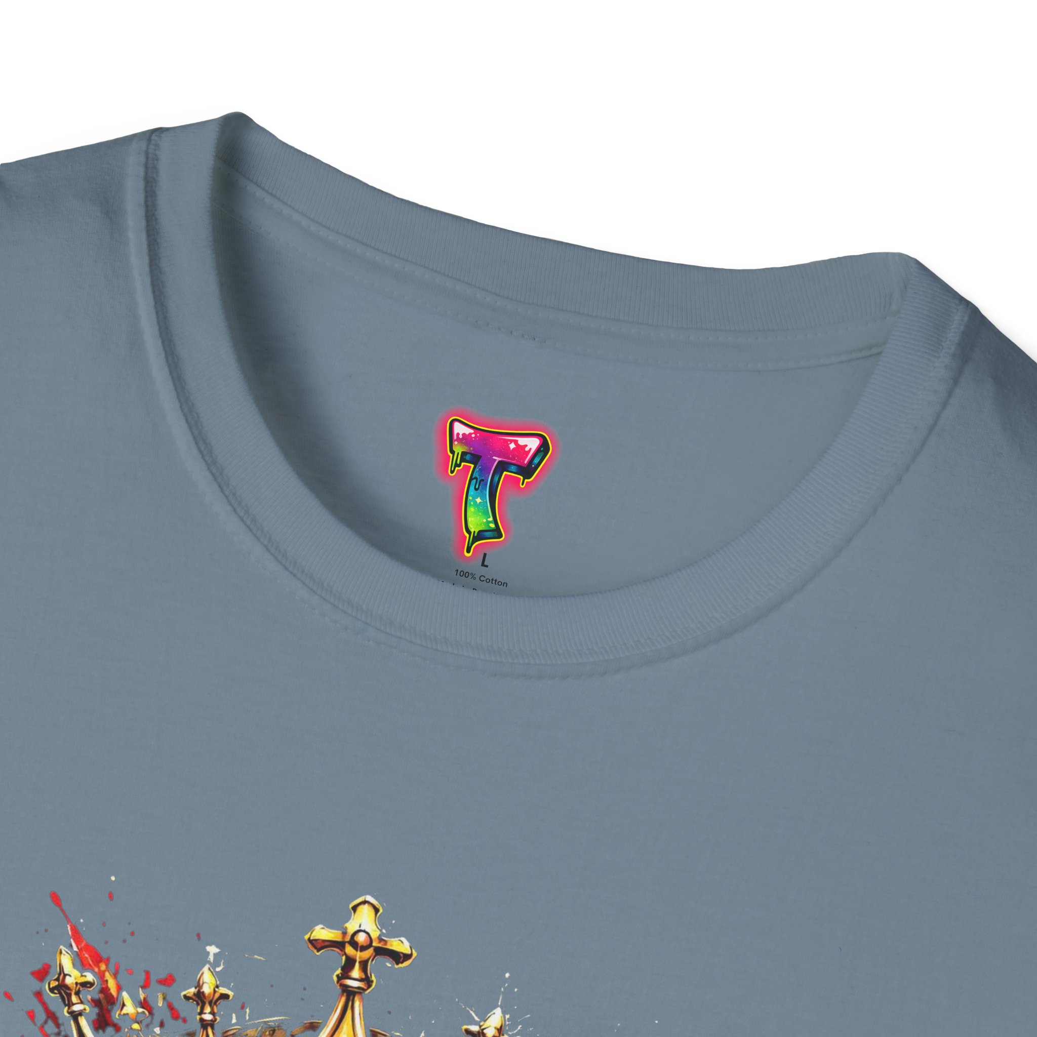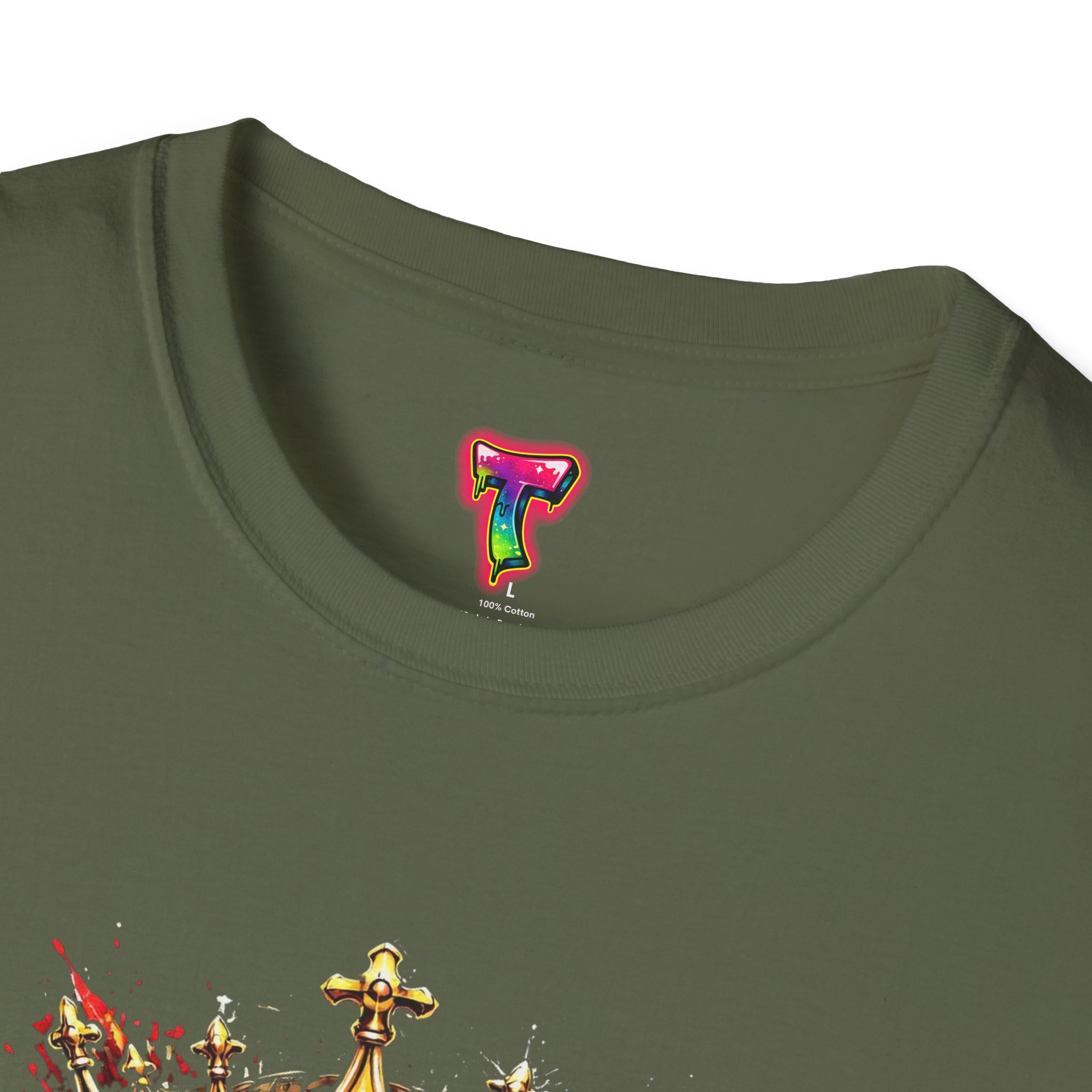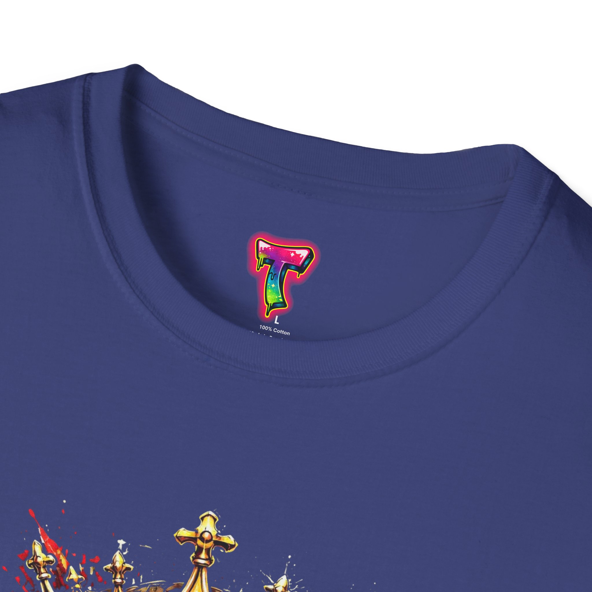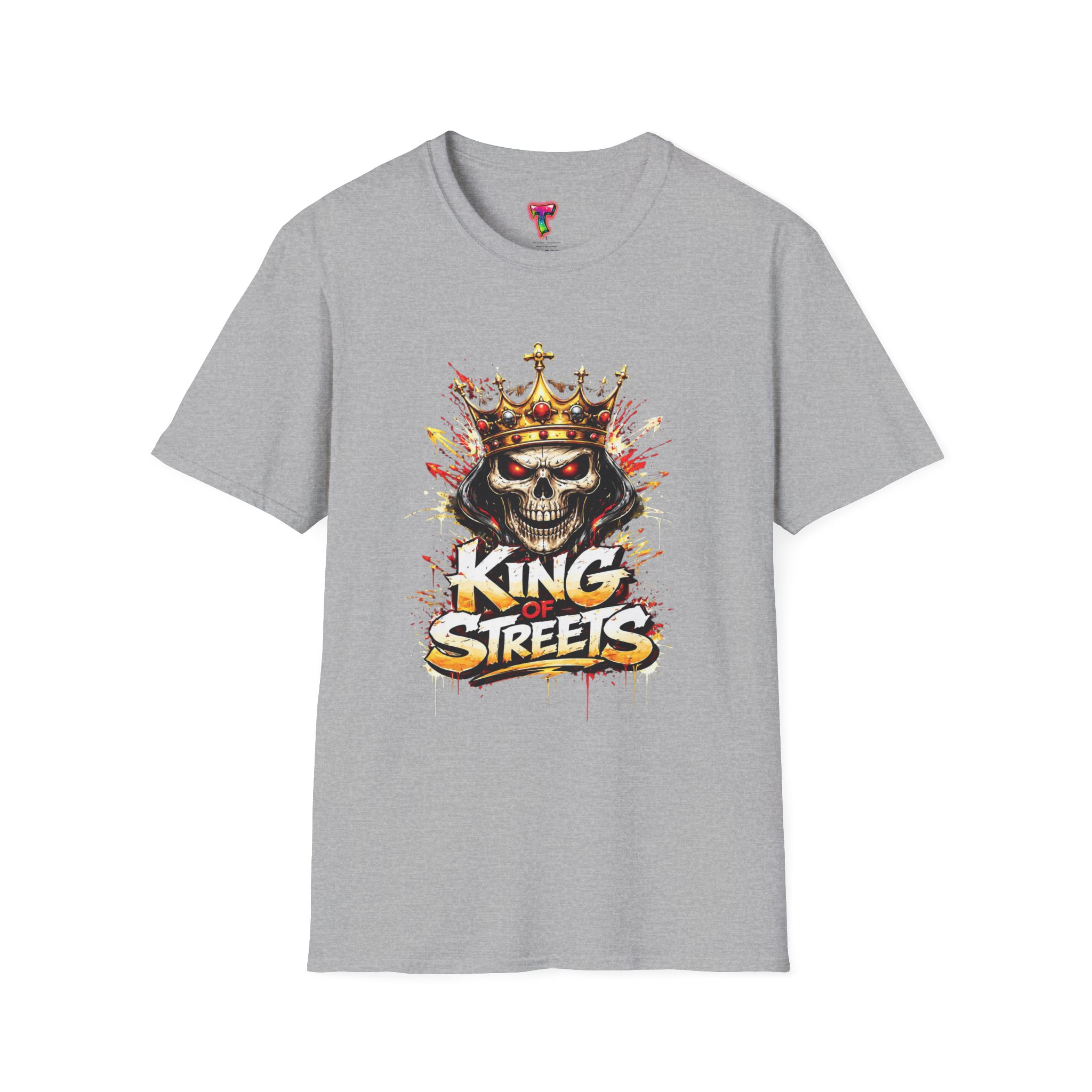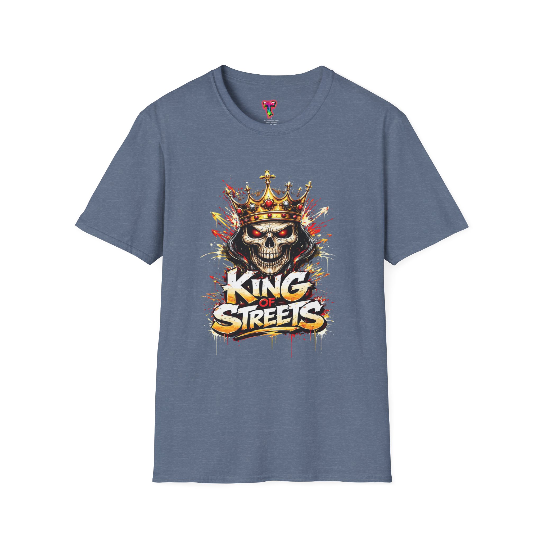 This lightweight cotton tee carries attitude. A bold graphic—an ornate crowned skull with graffiti-style splashes and the words “King of Streets”—sits center chest, turning a simple shirt into a statement piece. The soft, ring-spun cotton feels smooth against skin; tubular knit and shoulder tape keep the silhouette clean and stable wash after wash. Wear it layered under a denim jacket for late-night rides or alone while cruising the city; the urban artwork reads loud and confident without shouting. Built with tear-away labels and a resilient ribbed collar, it’s made for everyday movement and long nights out. Printed with high-quality methods so the colors stay vivid, this tee lives where grit meets craft.