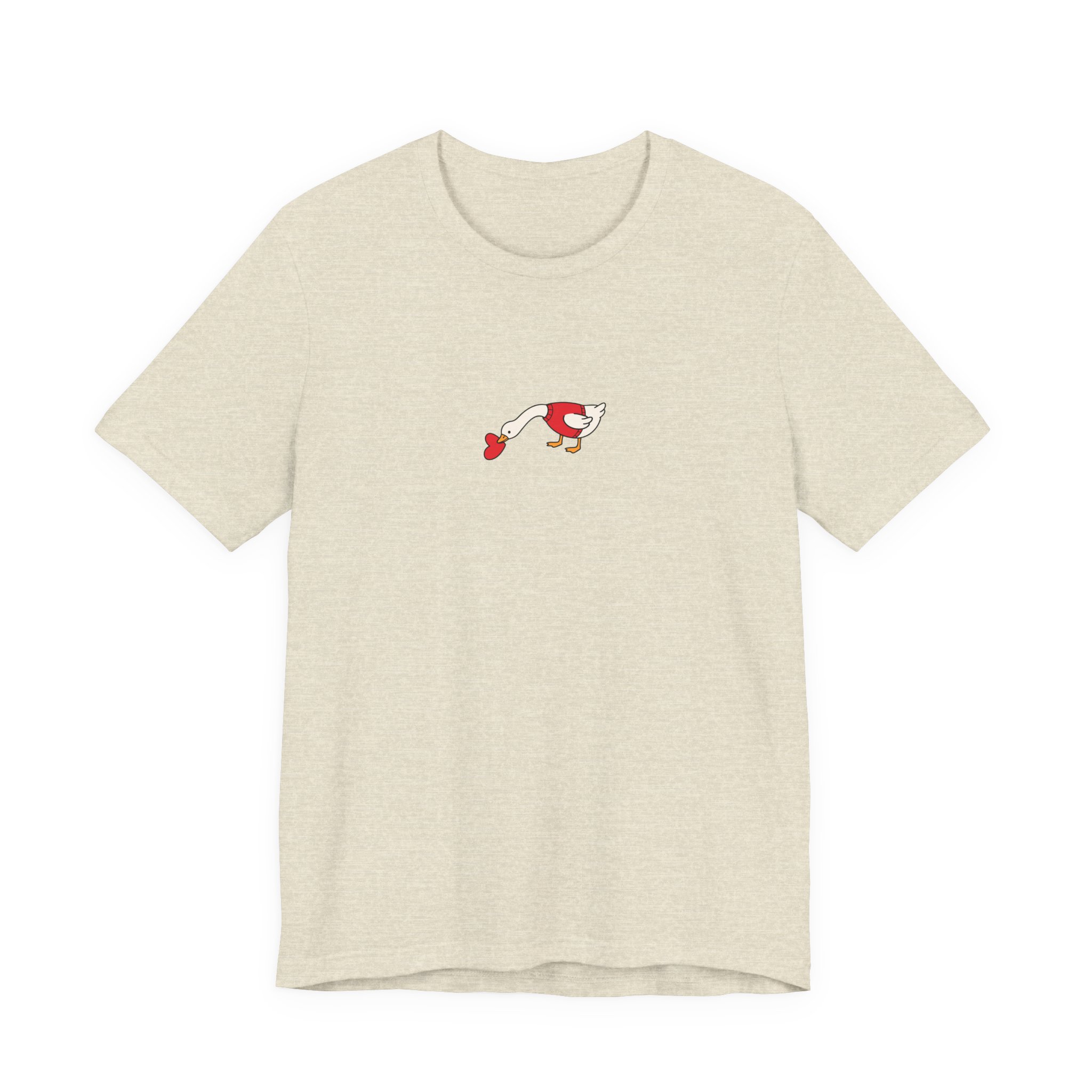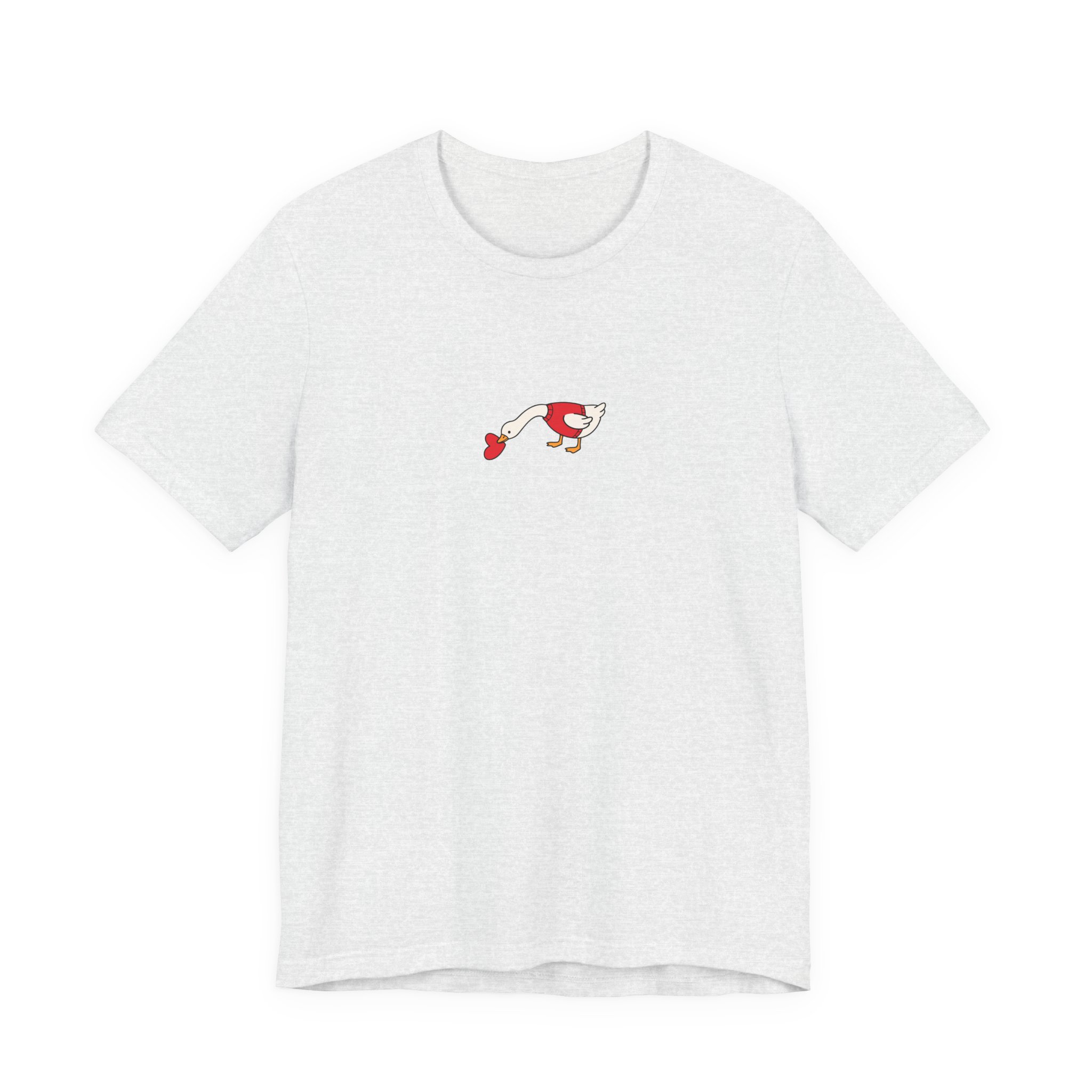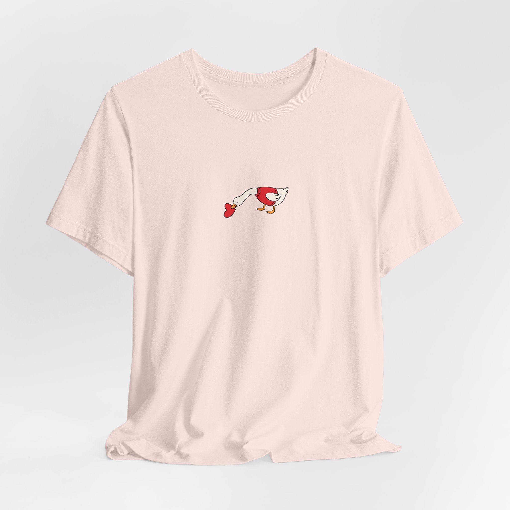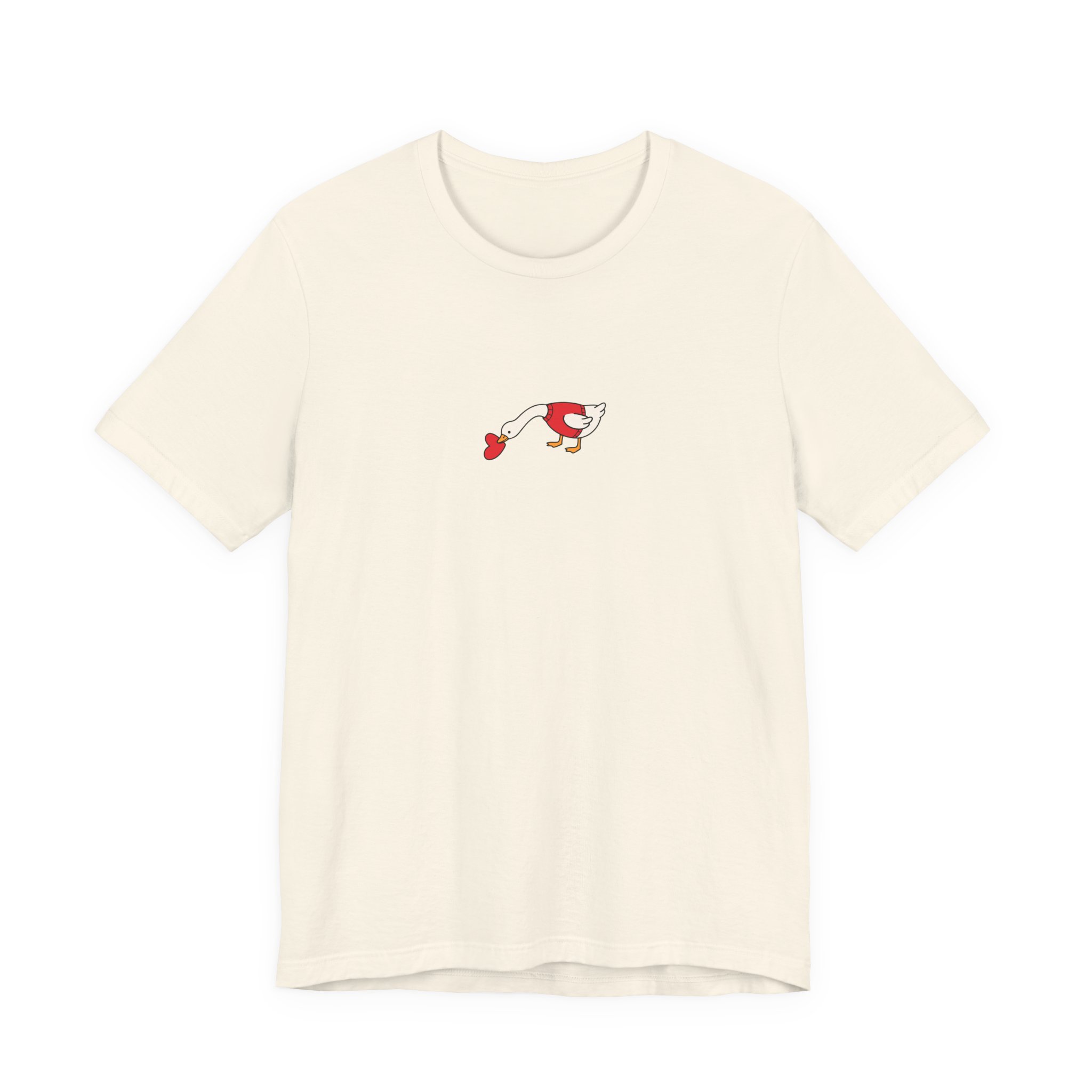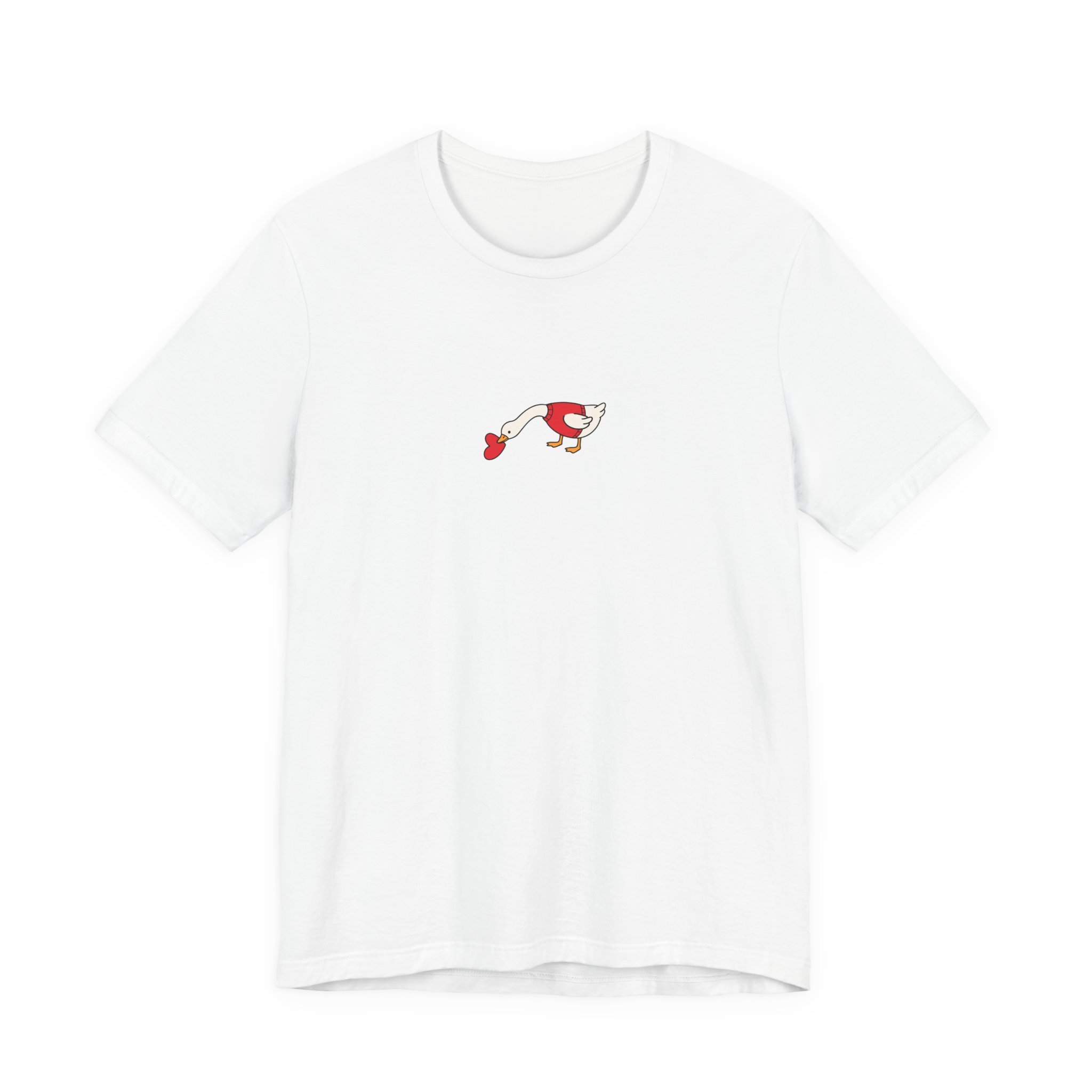 Watch out, this goose is on a mission to steal your heart! Our “Heart Stealer Goose” Tee features a charmingly simple illustration of a white goose in a cozy red sweater, playfully holding a small red heart. Perfect for those who love a bit of humor with their romance, this minimalist design proves that love doesn’t always have to be serious—sometimes it’s just a little bit “honk-tastic”..