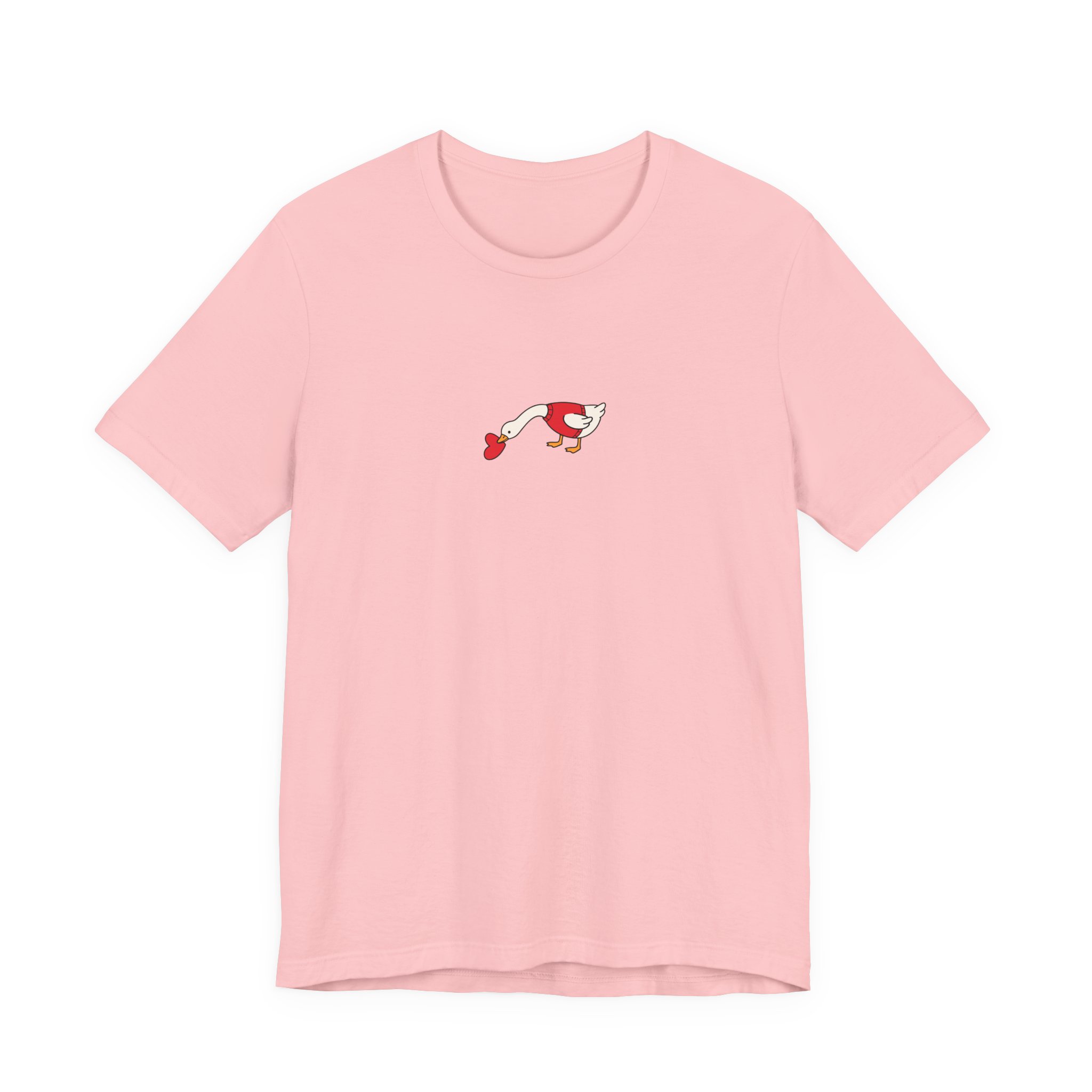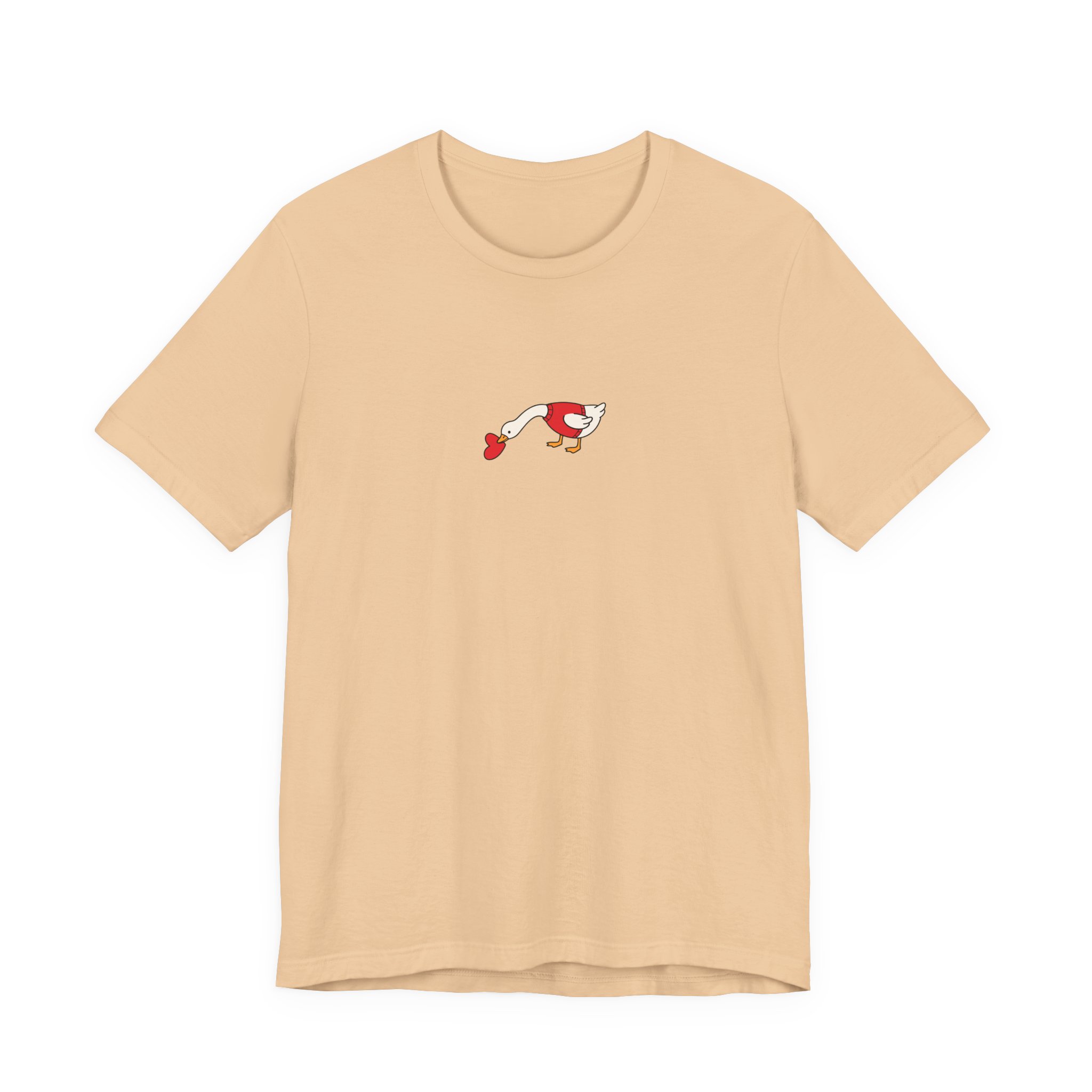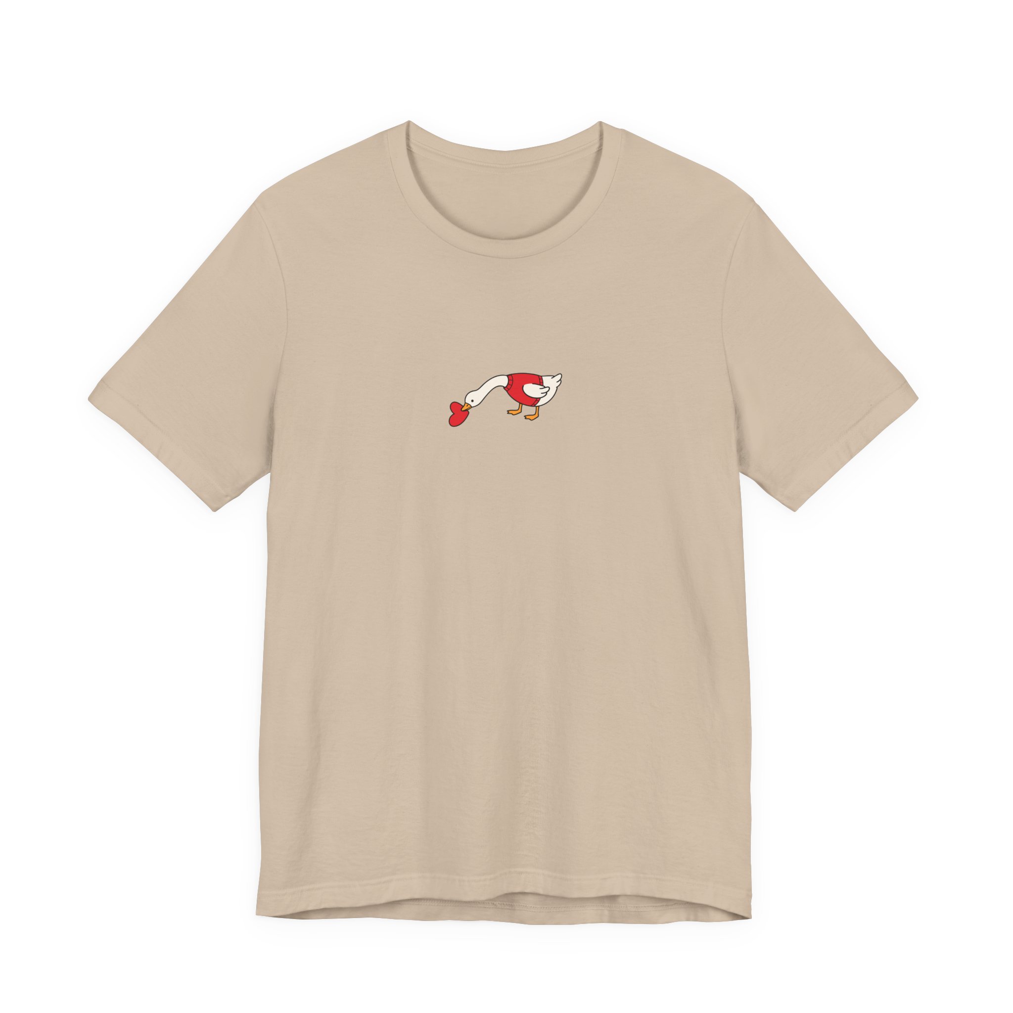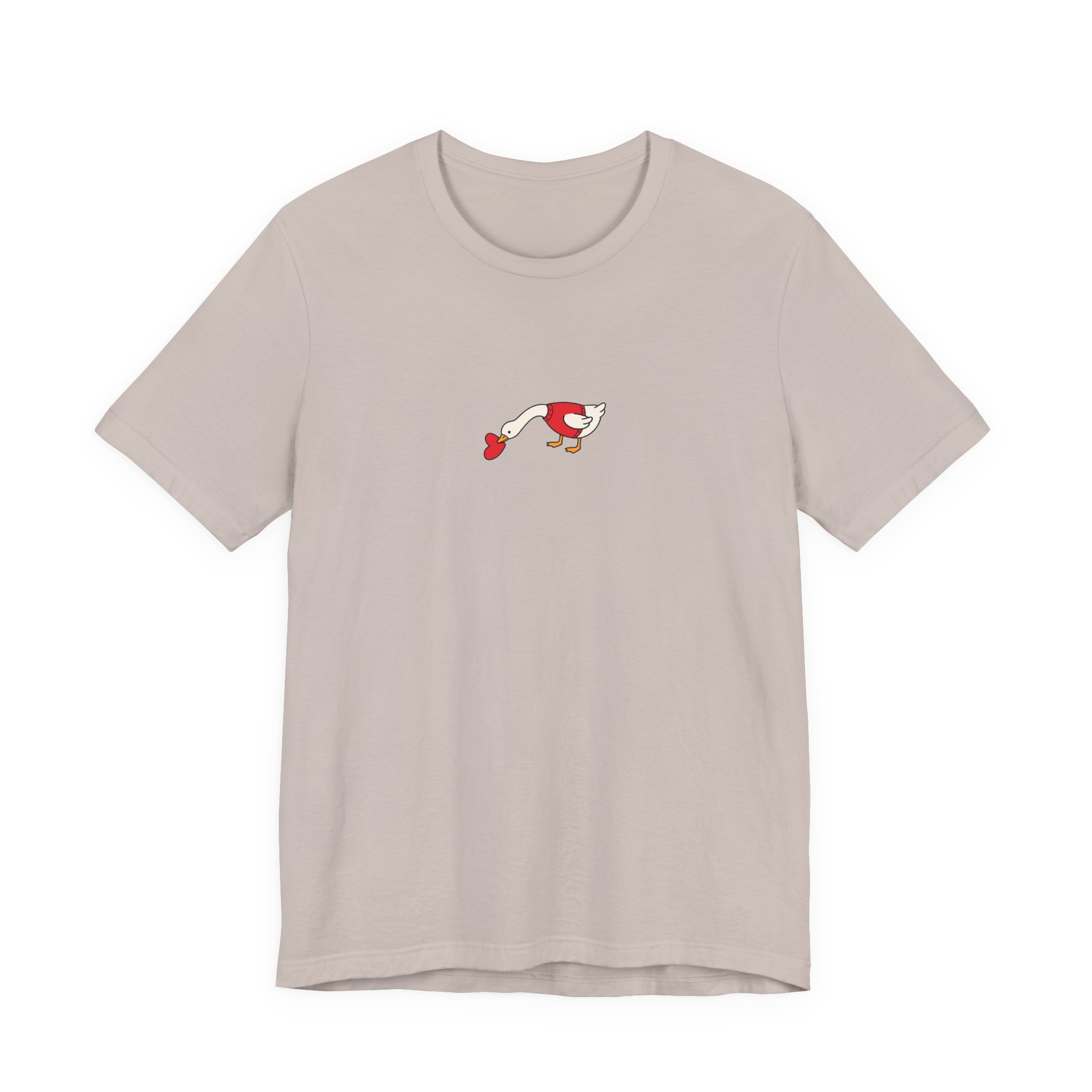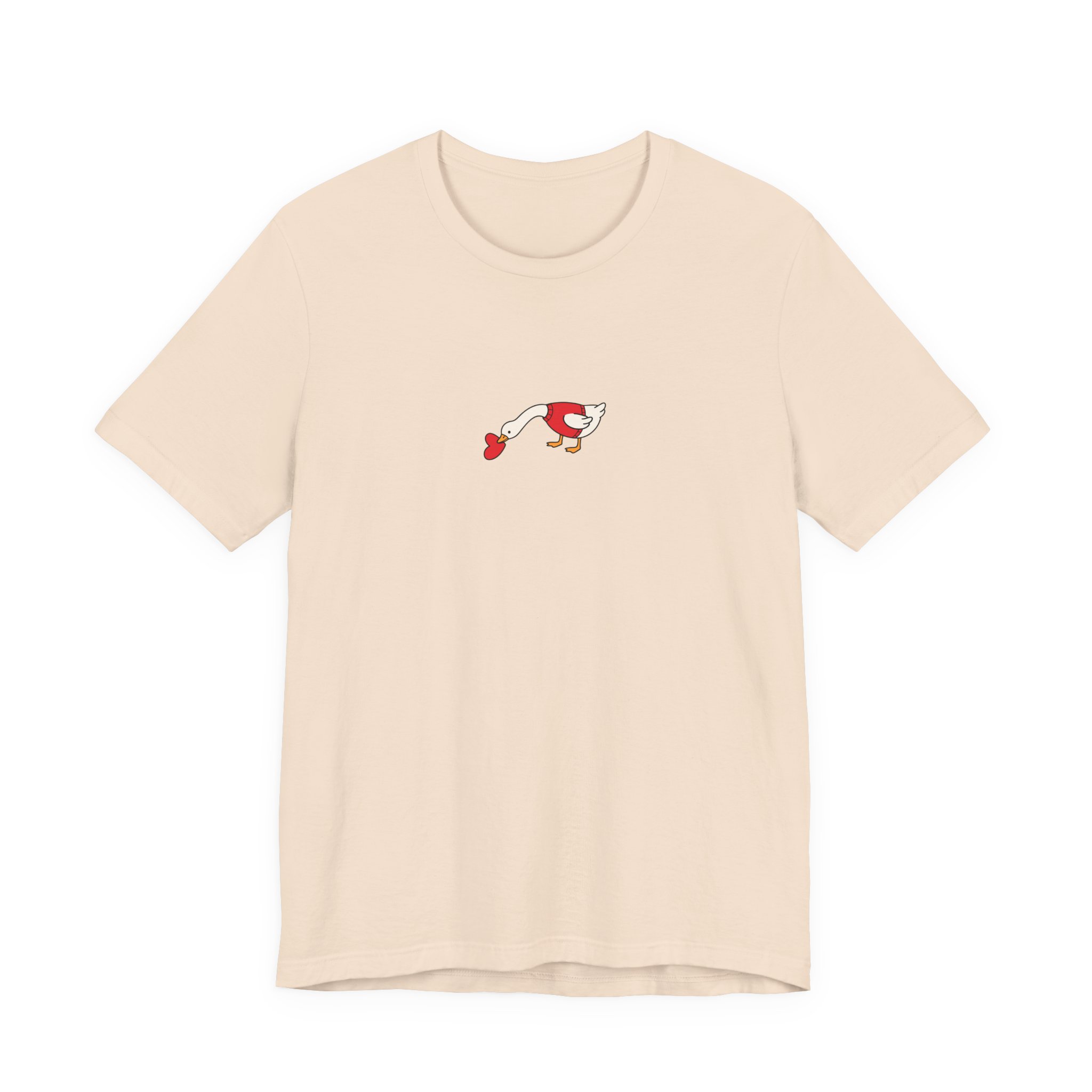 Watch out, this goose is on a mission to steal your heart! Our “Heart Stealer Goose” Tee features a charmingly simple illustration of a white goose in a cozy red sweater, playfully holding a small red heart. Perfect for those who love a bit of humor with their romance, this minimalist design proves that love doesn’t always have to be serious—sometimes it’s just a little bit “honk-tastic”..