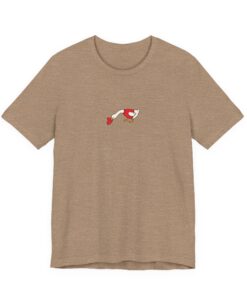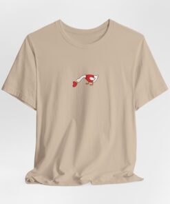 – Small, centered koi graphic; sleeve and label prints produced with crisp DTF/DTG techniques depending on provider