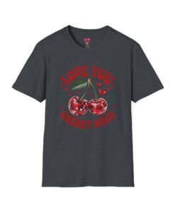 A soft, everyday tee with a playful, vintage-inspired cherry illustration and warm message. The lightweight ring-spun cotton feels breathable and smooth against skin, while the classic crew neck and clean fit keep the look timeless. Wear it on casual dates, strolls through the farmer’s market, or cozy movie nights — the cheerful red cherries and hand-lettered sentiment add a sweet, slightly nostalgic touch to simple outfits. The design sits comfortably on the chest and the tubular construction gives a neat silhouette that layers easily under jackets or over long sleeves.
