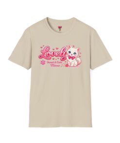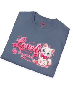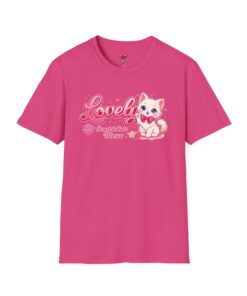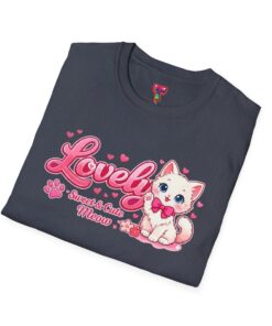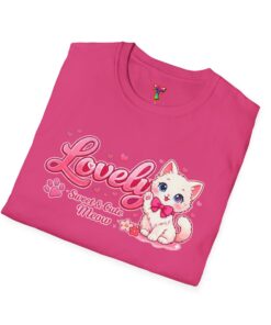 Soft, light, and whisper-smooth — this tee carries a playful, kawaii energy that feels like slipping into a cozy, sunlit morning with your favorite cat curled beside you. The front shows a sweet, pastel pink illustration of a wide-eyed kitten with a bow, framed by bubbly lettering and tiny hearts. Wear it when you want a gentle pop of charm: strolling through a weekend market, lounging with friends over tea, or layering under a cardigan for a relaxed, cute look. The breathable cotton and clean crew neckline keep the silhouette simple so the adorable graphic can sing. It’s for people who collect small joys and like their casual outfits to read cheerful and affectionate rather than loud.