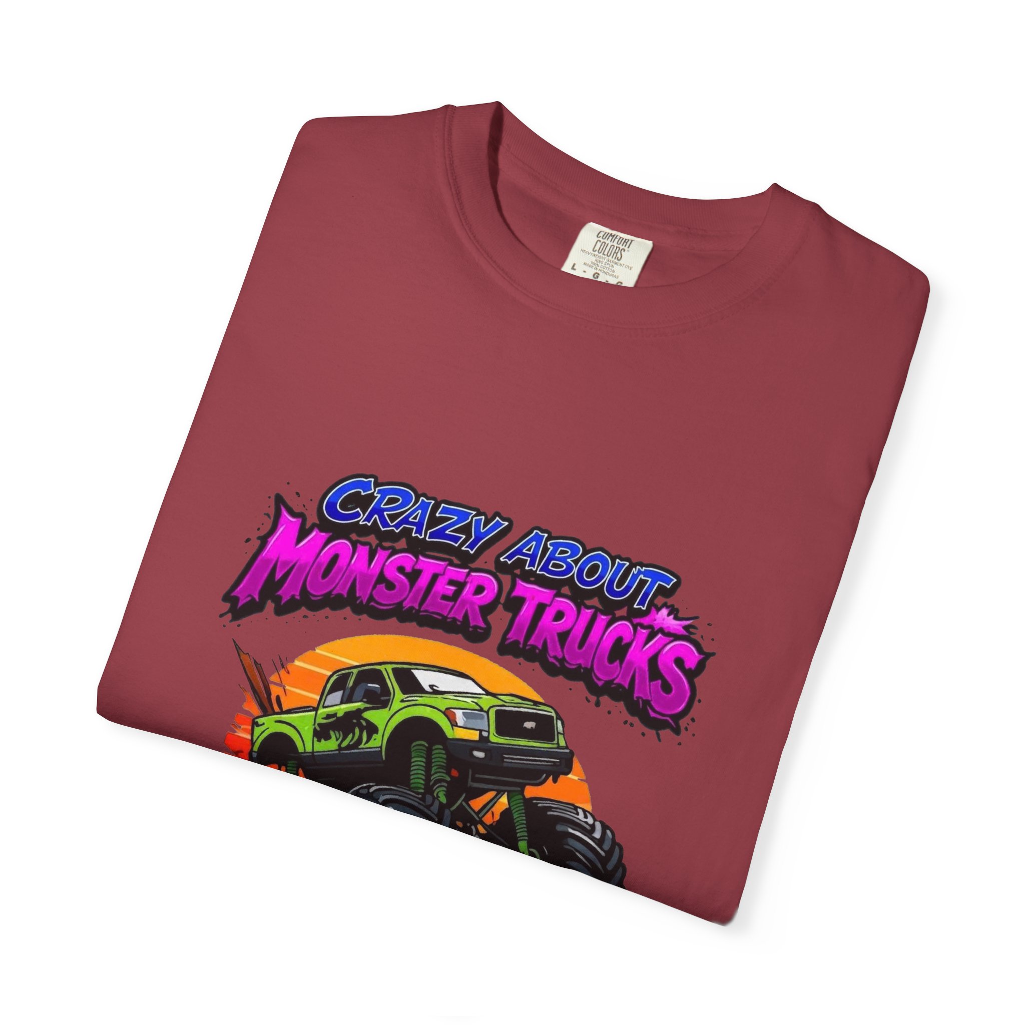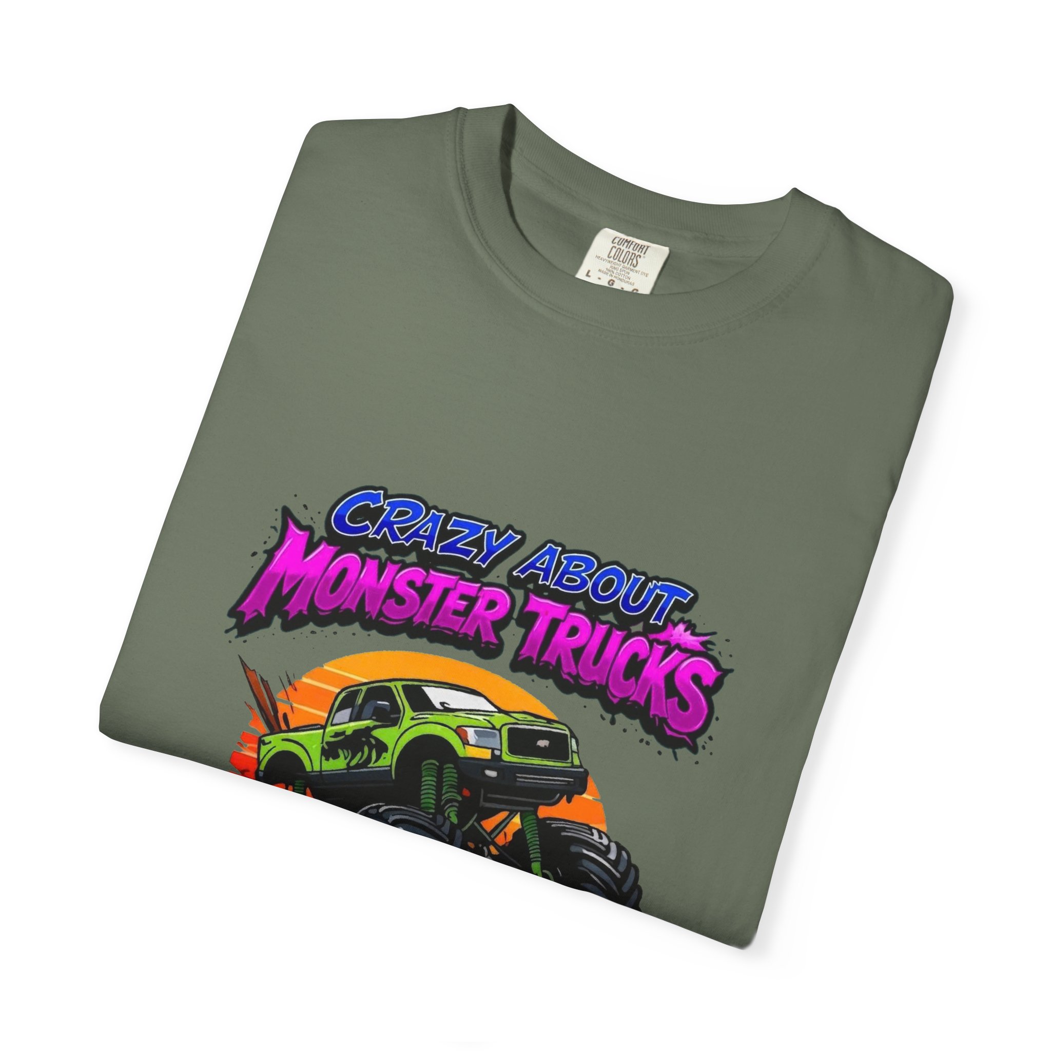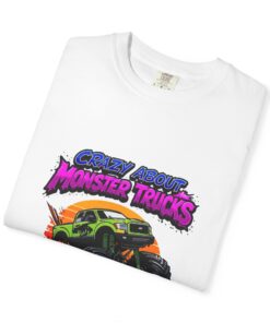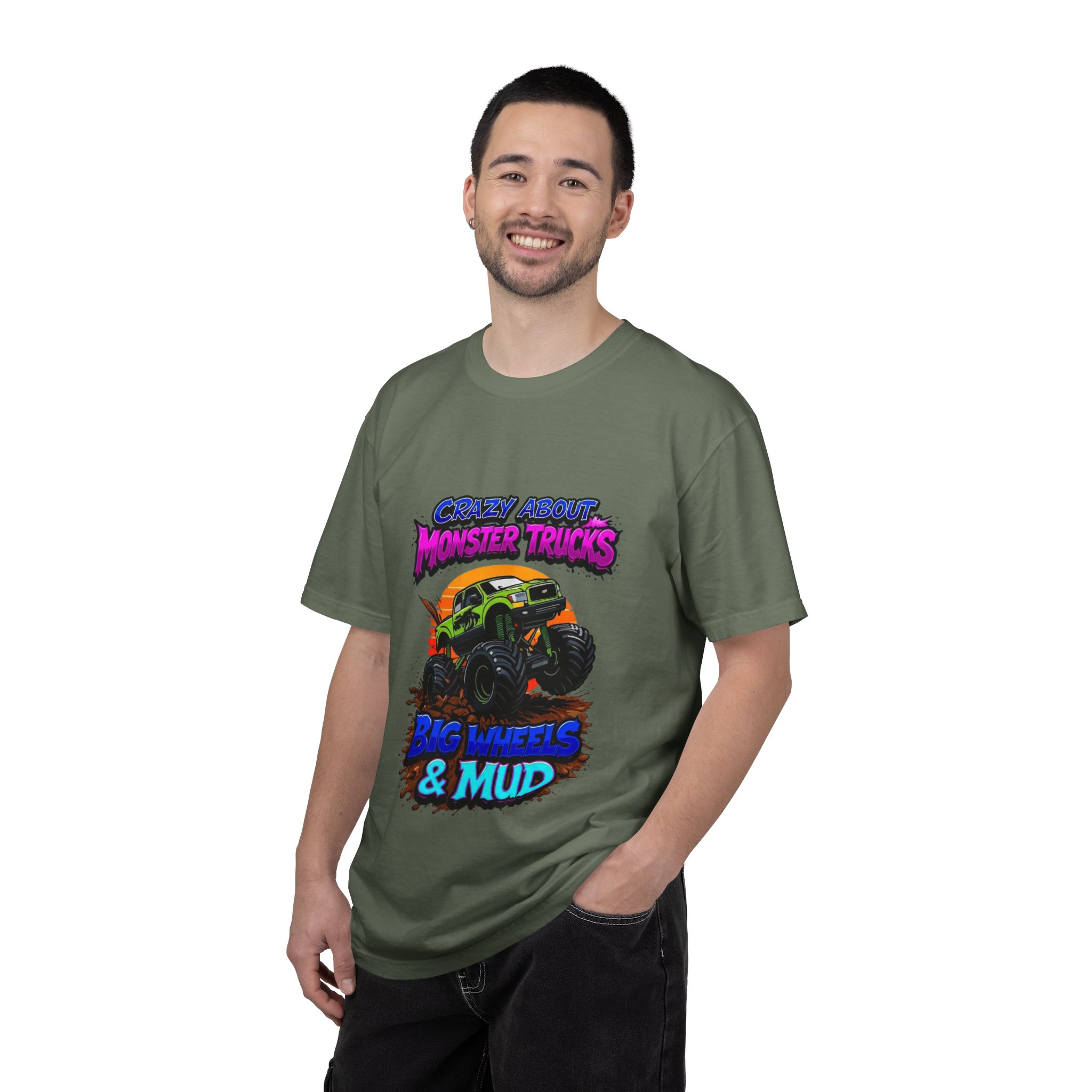 This relaxed-fit garment-dyed tee brings the roar of the track and the thrill of mud-slinging straight into everyday wear. The bold, neon-style graphic of a monster truck launching through mud reads like a snapshot from a weekend at the pits — bright colors, chunky tires, and splattered earth that still feels warm. It’s built for people who live for throttle, tailgates, and cheering at the edge of the arena: it layers easily under a flannel for early mornings, stands out at meetups, and wipes clean of road grime without losing its soft, broken-in feel. The heavyweight cotton holds the print with character, while the garment dye gives that lived-in softness and subtle, uneven color that tells a story with every wash. Wear it to a local truck show, on a muddy trail day, or when you want to bring that high-octane energy to a casual hangout.