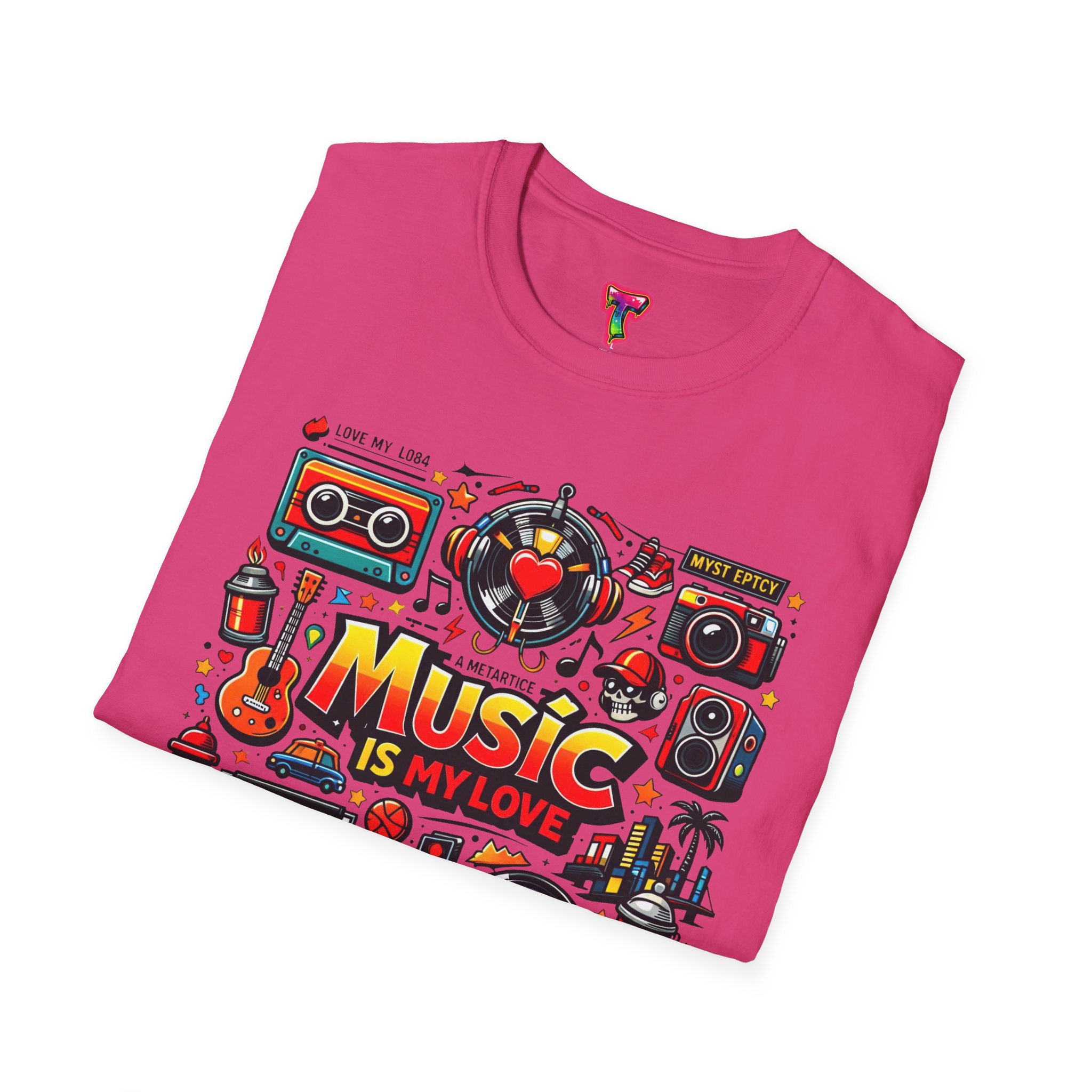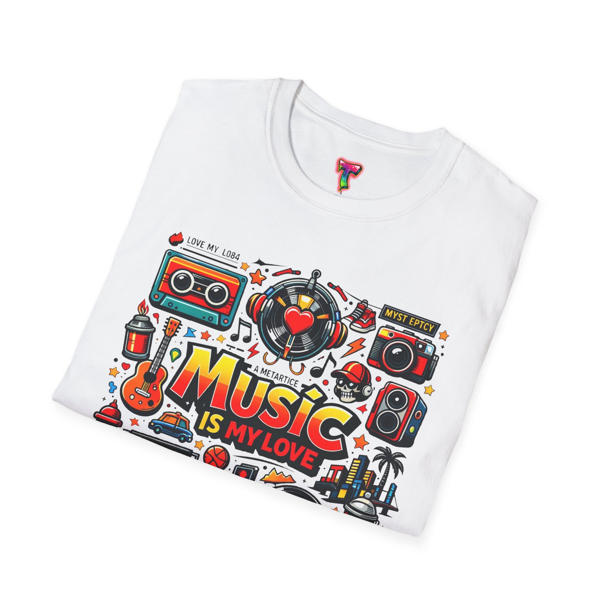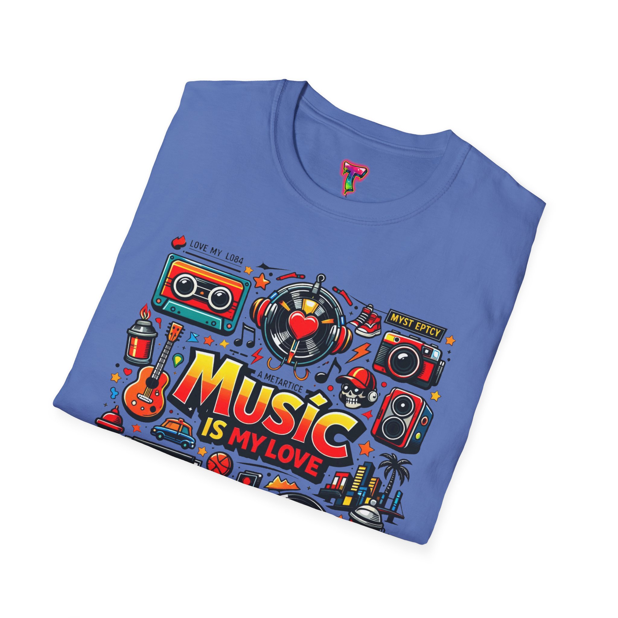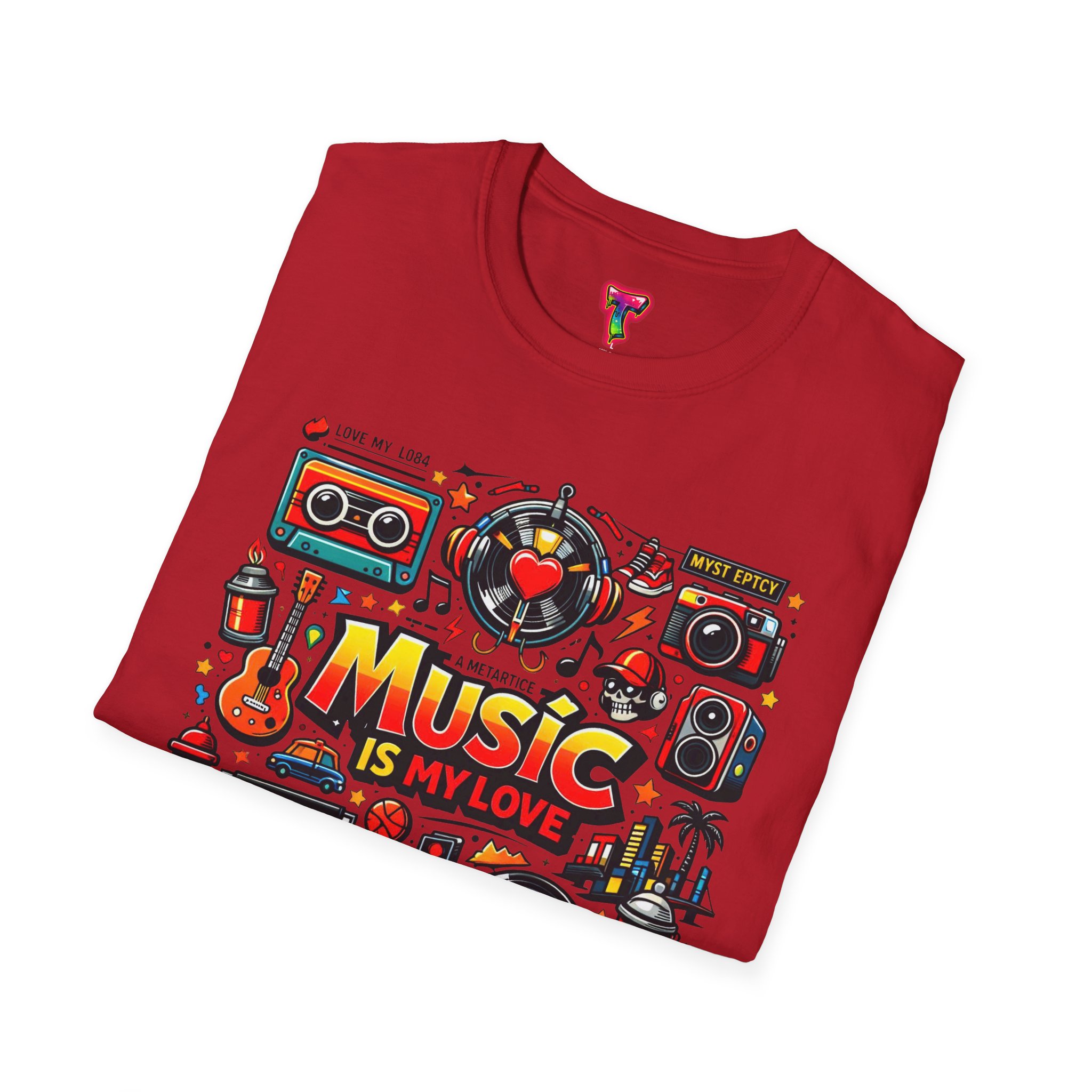 This lightweight cotton tee carries a vibrant celebration of sound — a colorful collage of retro speakers, vinyl, guitars and cassette art framing the bold statement: “Music is my love.” It lands with a nostalgic, joyful energy that slips easily into everyday life: rehearsals, record-store dives, late-night jam sessions, or city streets where playlists become personal soundtracks. The clean crew neck and classic fit keep the design front-and-center while the soft ring-spun fabric drapes comfortably for all-day wear. It’s for people who wear their playlist on their chest and want a shirt that feels lived-in from the first put-on. The printed inner label and durable print methods mean the graphic keeps its pop through repeat spins and washes.