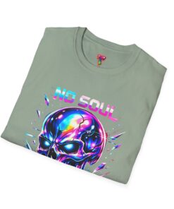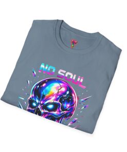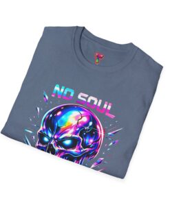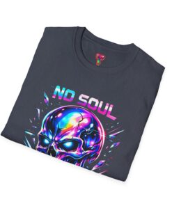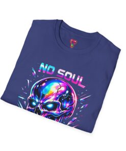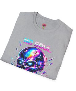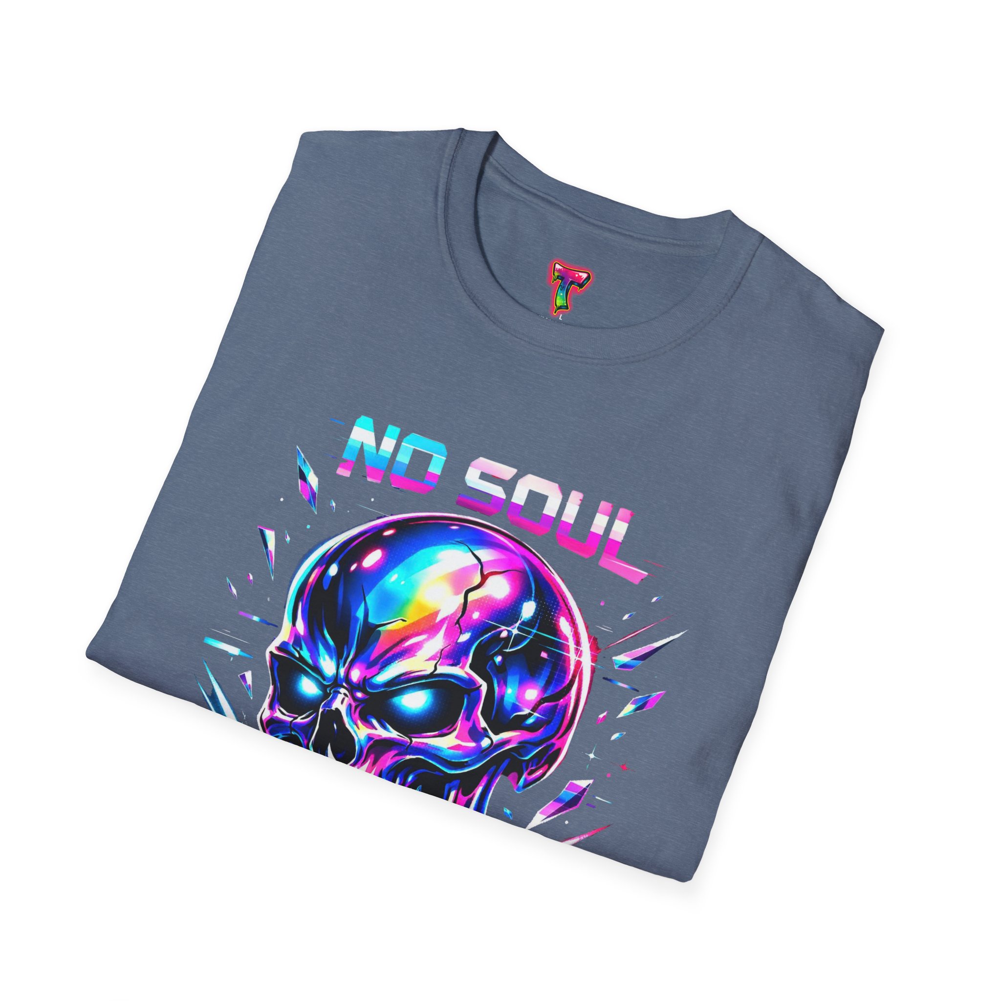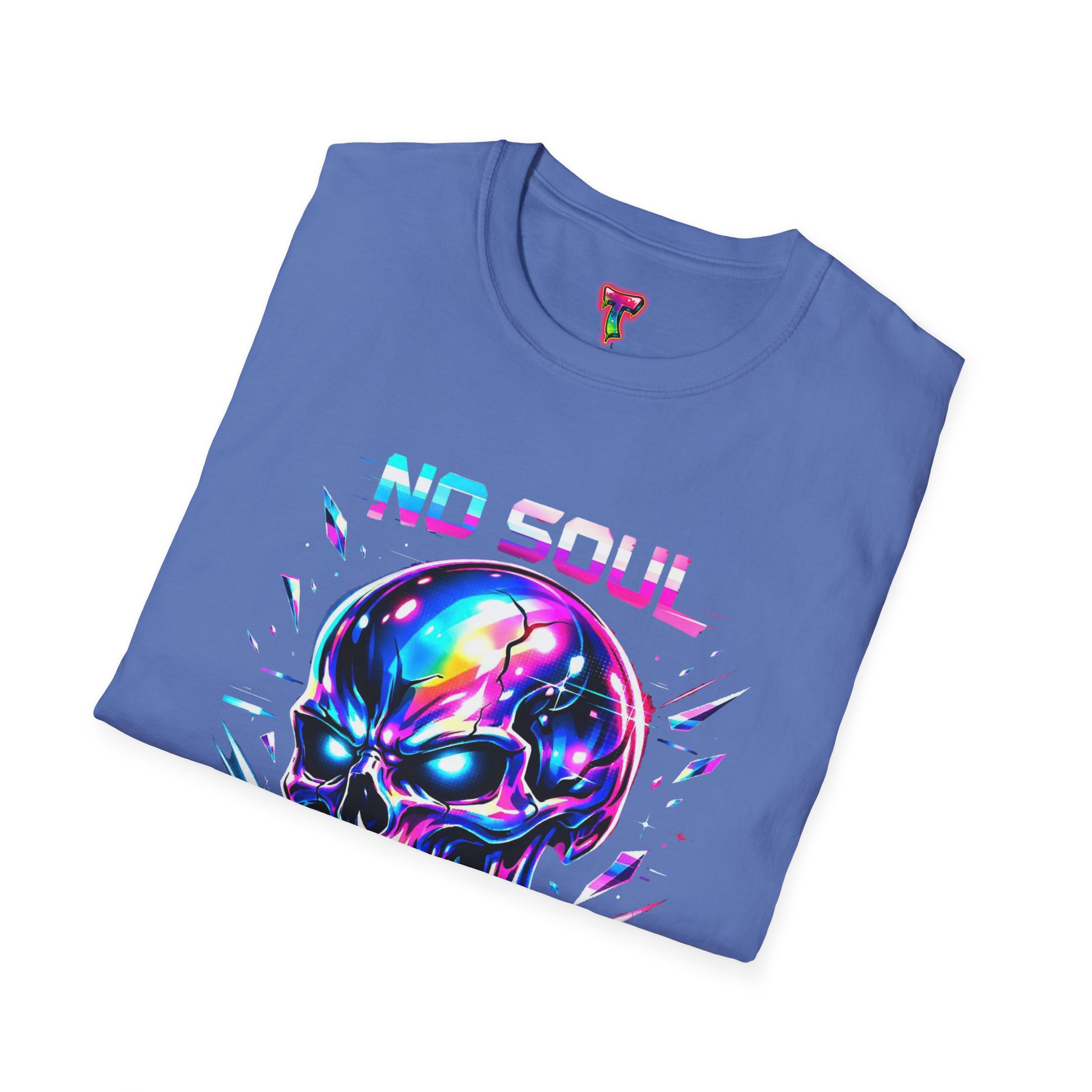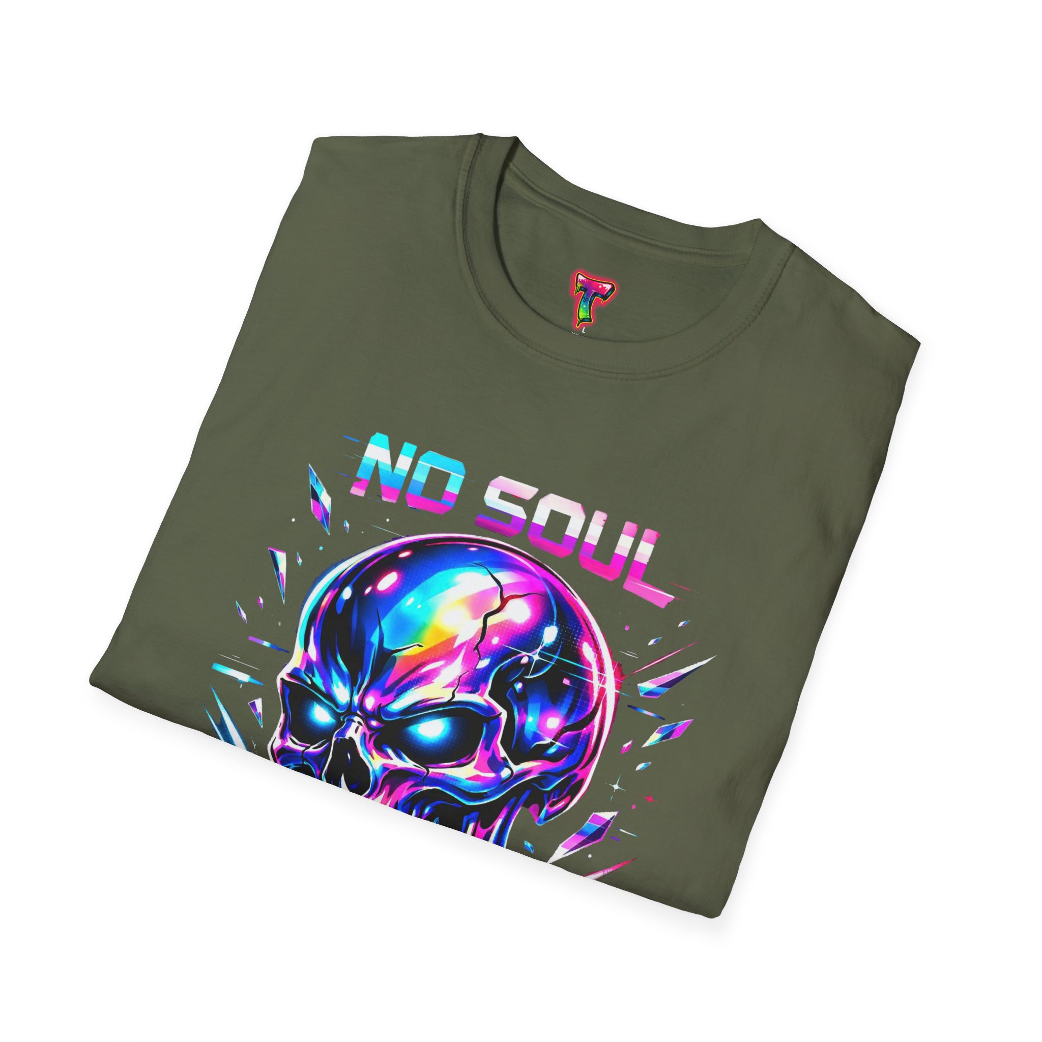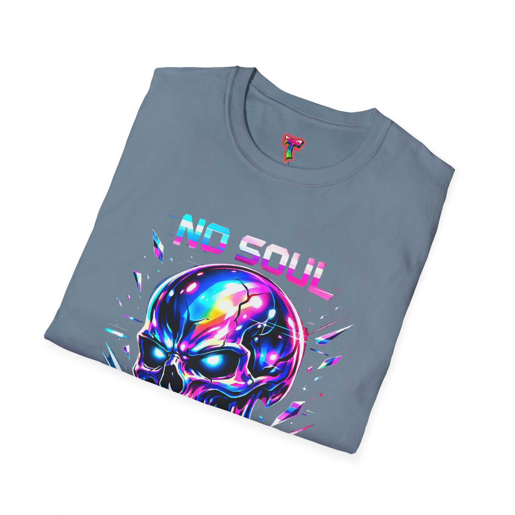 Wearable attitude for the neon-night crowd. This lightweight cotton tee puts a glossy, iridescent skull front-and-center with glitchy typography that reads like a cyberpunk manifesto. It sits cool and soft against the skin, draping in a classic crew silhouette while the vibrant, multicolored print catches light and turns heads. Slip it on for late-night shows, arcade runs, or when you want your outfit to speak in electric color—an easy layering piece under a denim jacket or over a long-sleeve for colder nights.