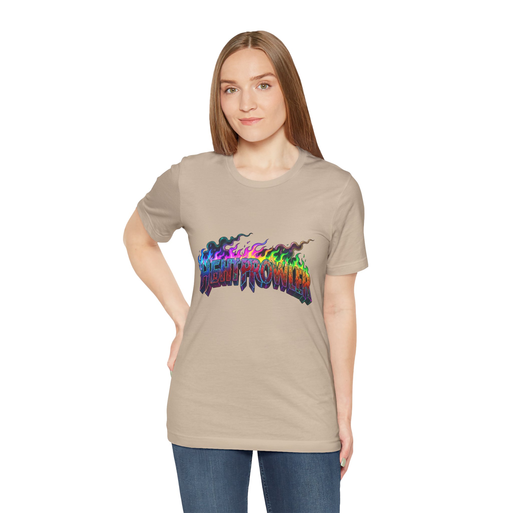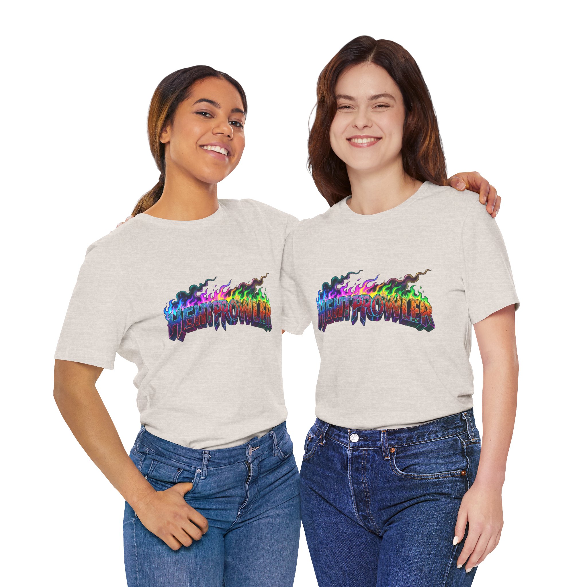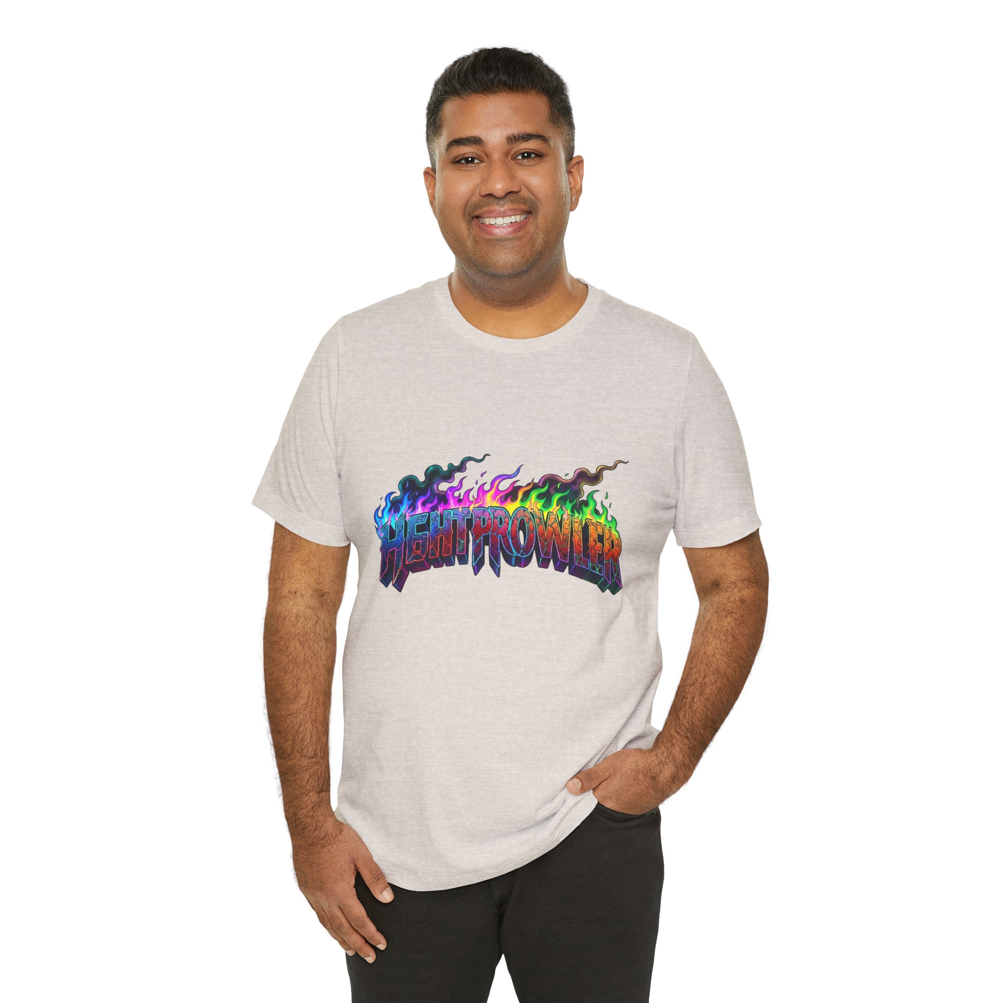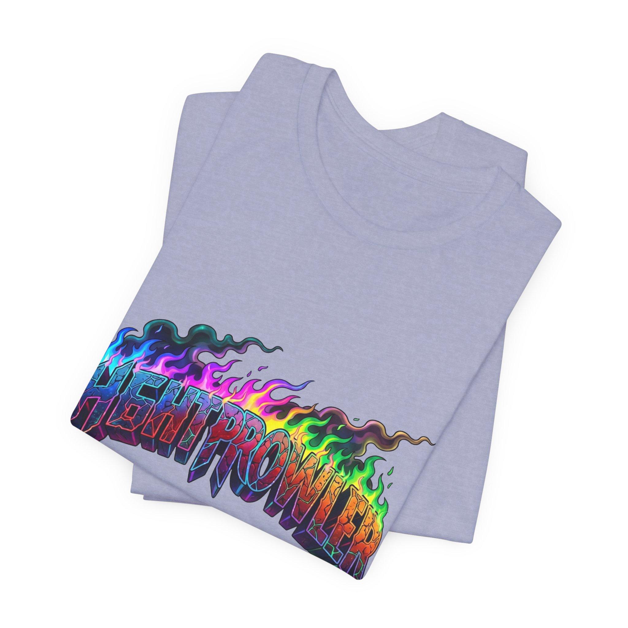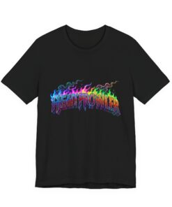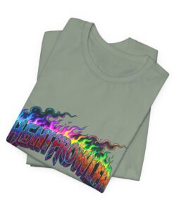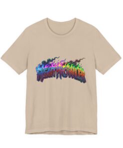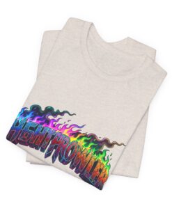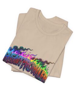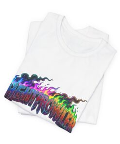 This lightweight cotton tee carries a bold, iridescent flame graphic that reads as an expression of late-night energy and creative fire. The soft, breathable fabric drapes casually while the retail fit and crew neckline keep the silhouette clean and wearable. Subtle details—side seams, ribbed collar, shoulder tape and a tear-away label—mean it holds shape and stays comfortable after many wears. Made from Airlume combed and ring-spun cotton with careful ethical manufacturing, this shirt pairs effortlessness with a loud, colorful attitude.