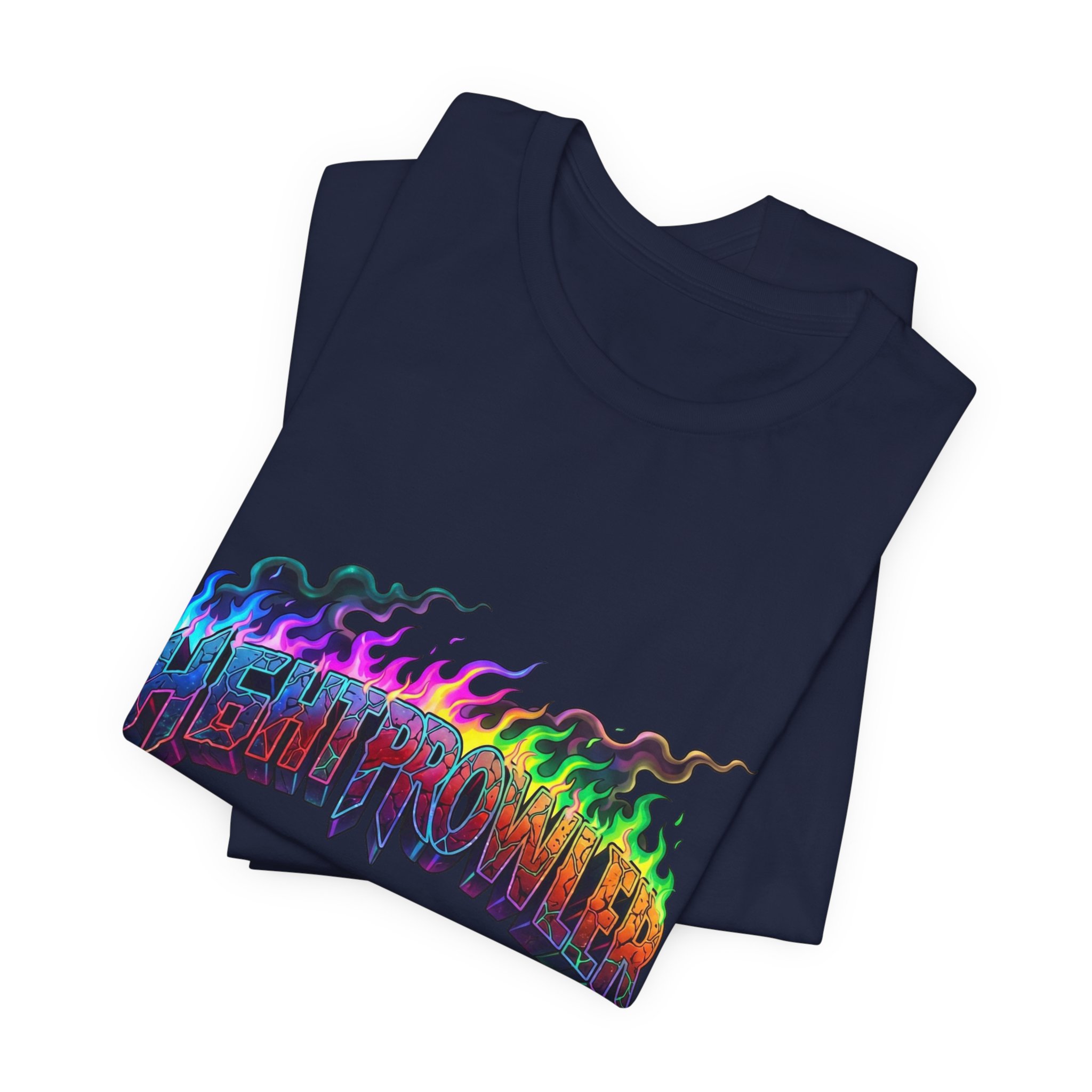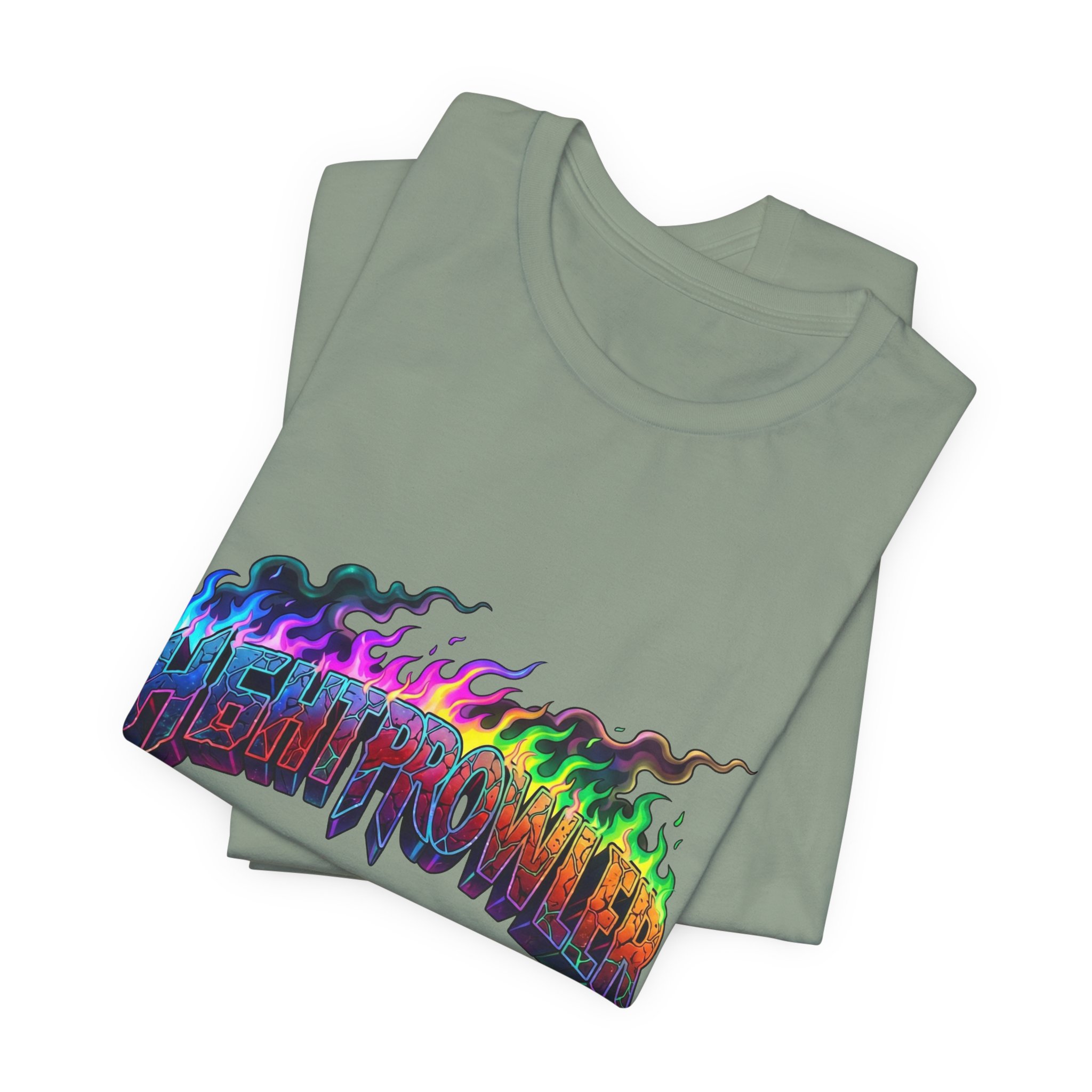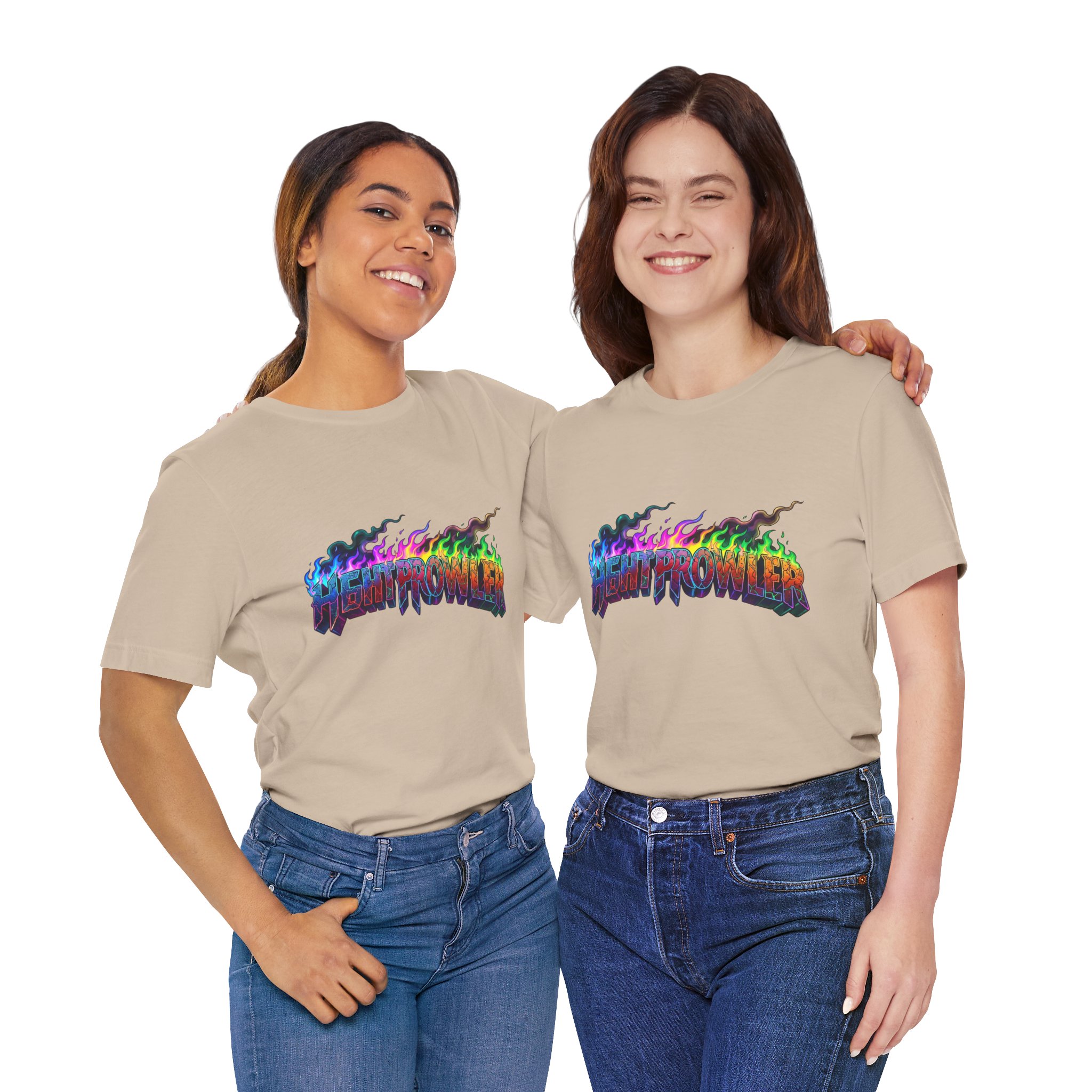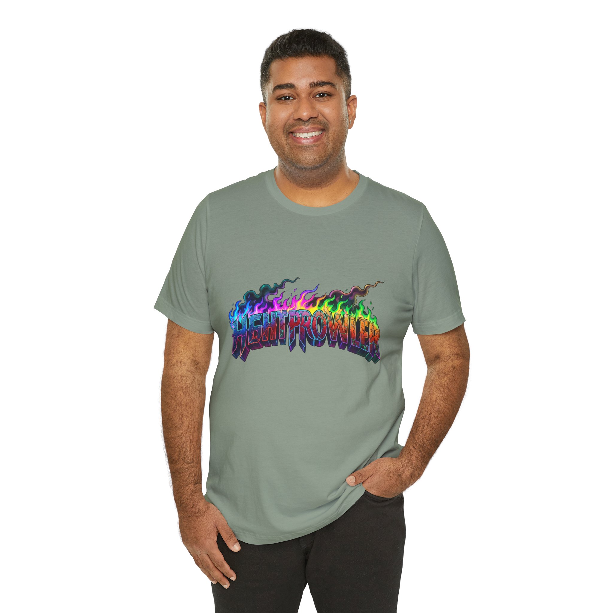 This lightweight cotton tee carries a bold, iridescent flame graphic that reads as an expression of late-night energy and creative fire. The soft, breathable fabric drapes casually while the retail fit and crew neckline keep the silhouette clean and wearable. Subtle details—side seams, ribbed collar, shoulder tape and a tear-away label—mean it holds shape and stays comfortable after many wears. Made from Airlume combed and ring-spun cotton with careful ethical manufacturing, this shirt pairs effortlessness with a loud, colorful attitude.