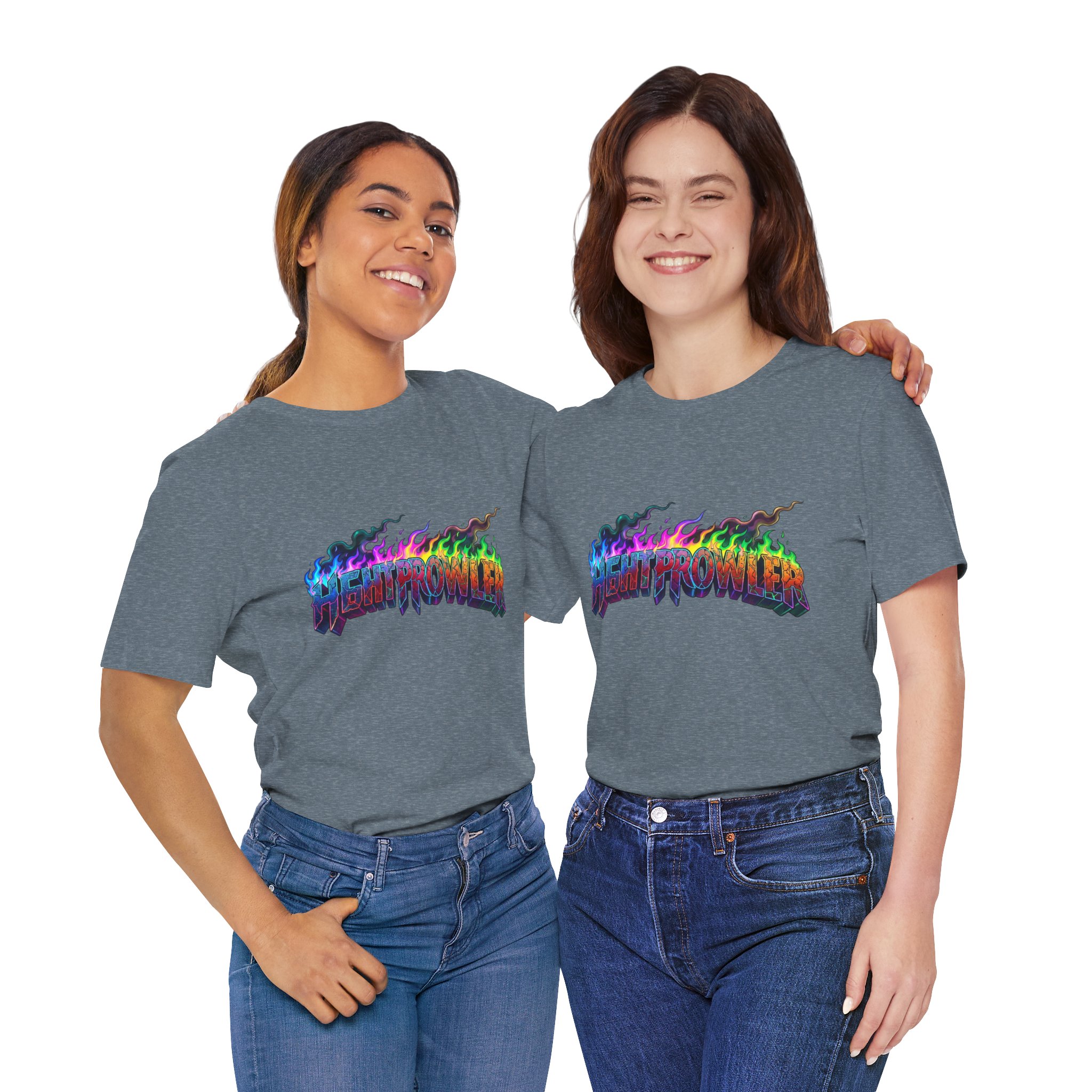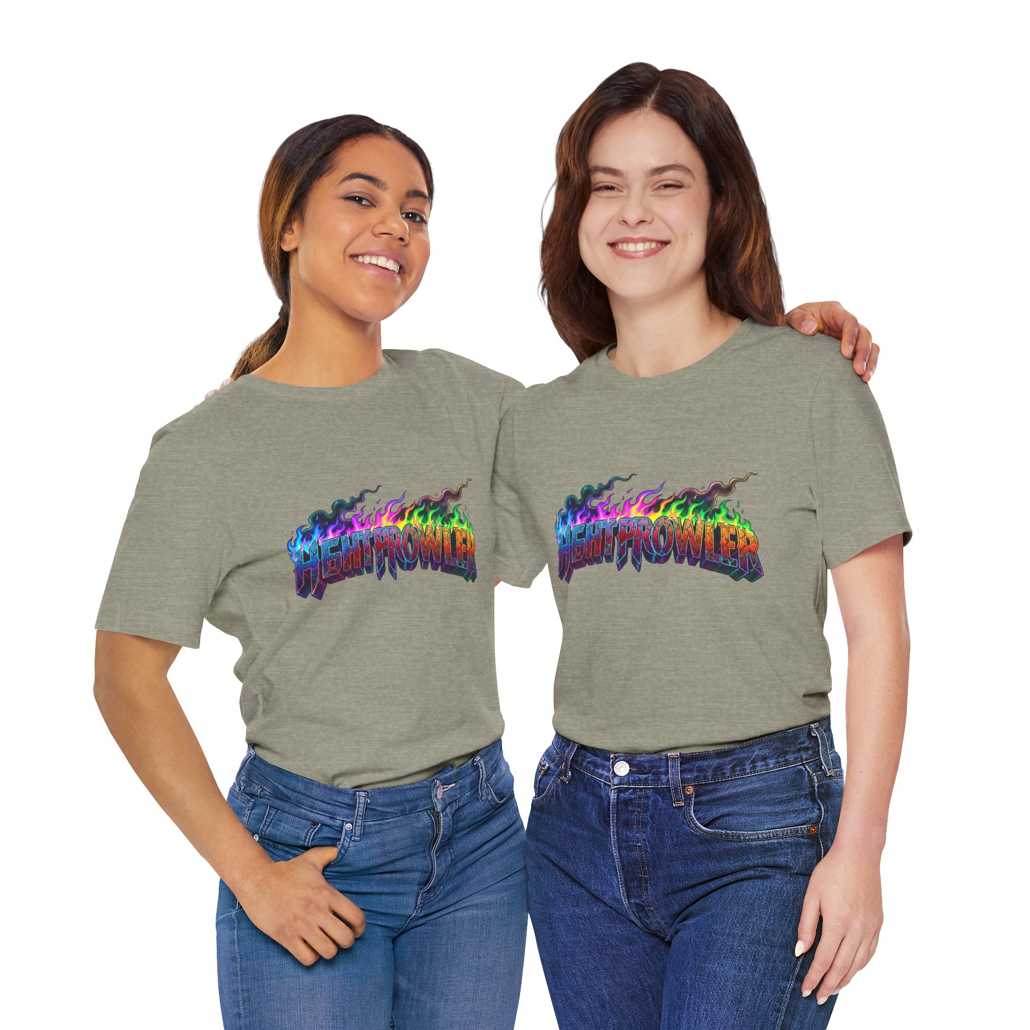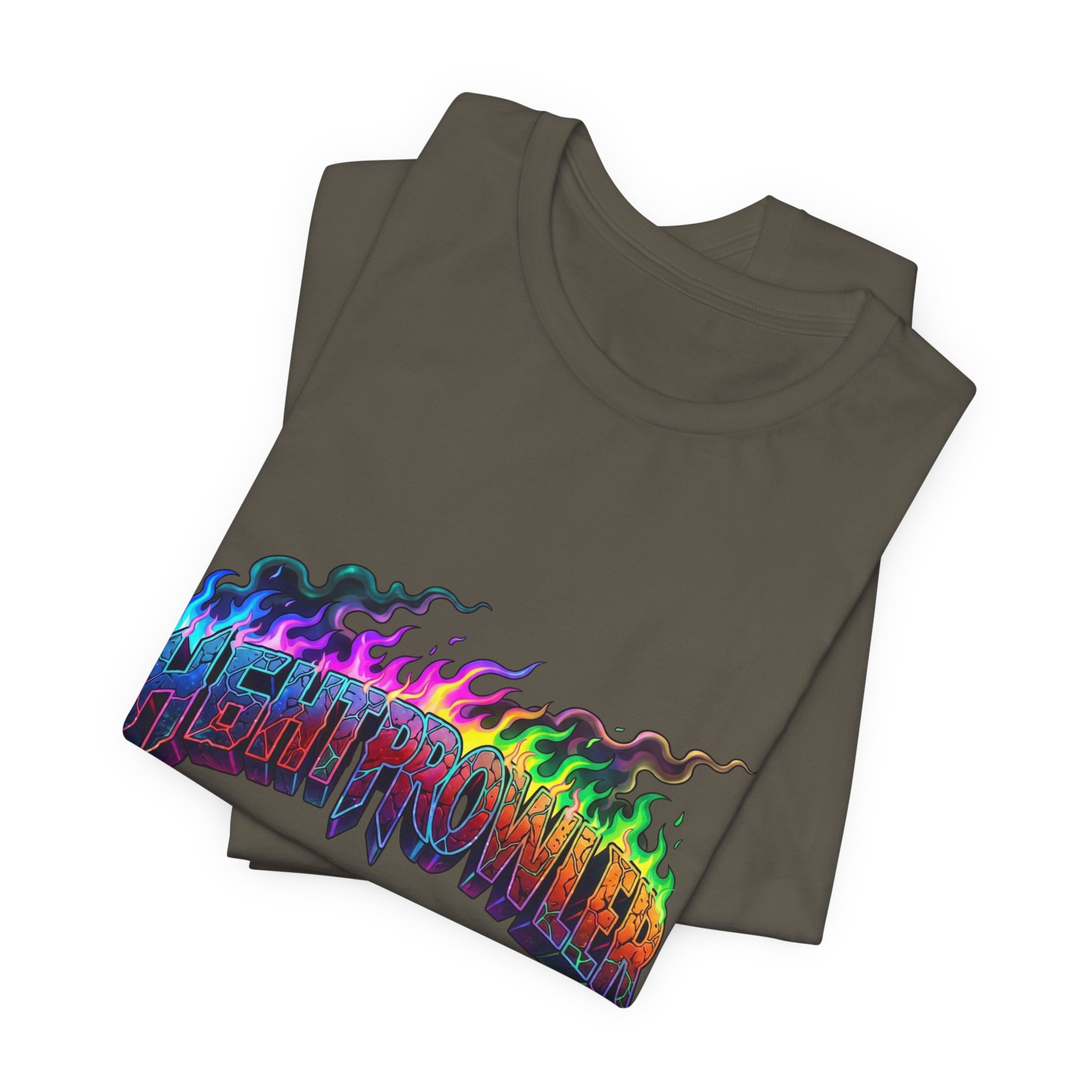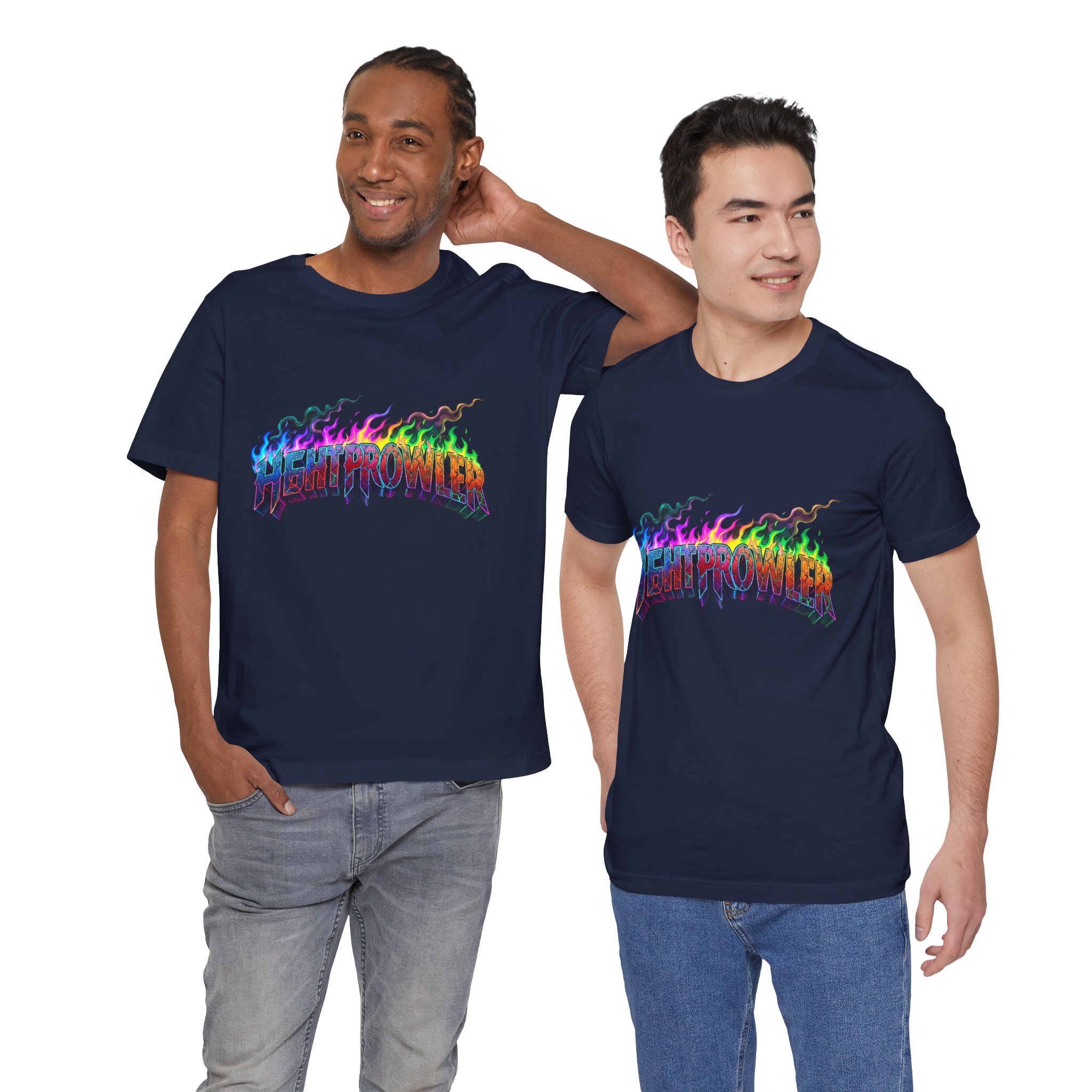 This lightweight cotton tee carries a bold, iridescent flame graphic that reads as an expression of late-night energy and creative fire. The soft, breathable fabric drapes casually while the retail fit and crew neckline keep the silhouette clean and wearable. Subtle details—side seams, ribbed collar, shoulder tape and a tear-away label—mean it holds shape and stays comfortable after many wears. Made from Airlume combed and ring-spun cotton with careful ethical manufacturing, this shirt pairs effortlessness with a loud, colorful attitude.