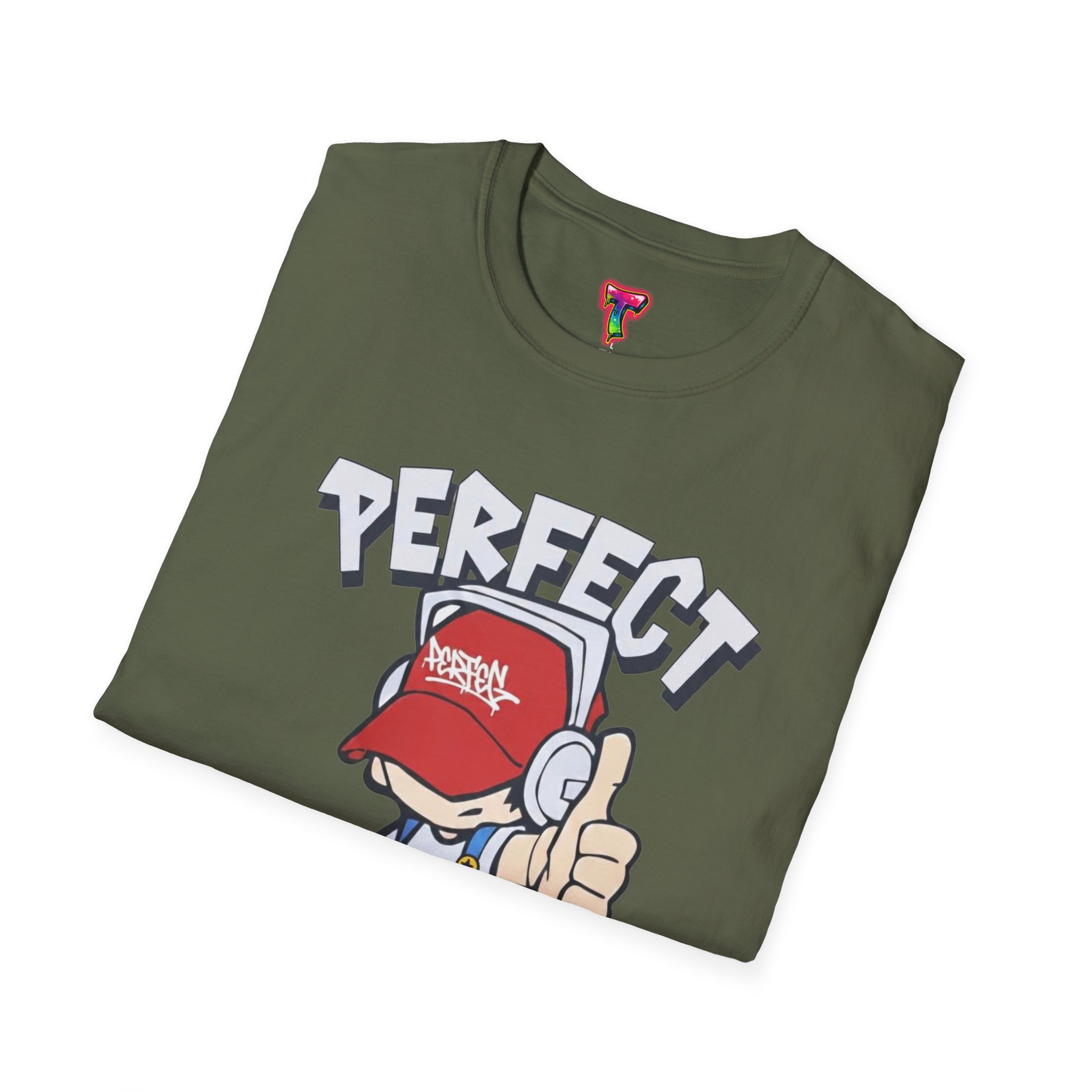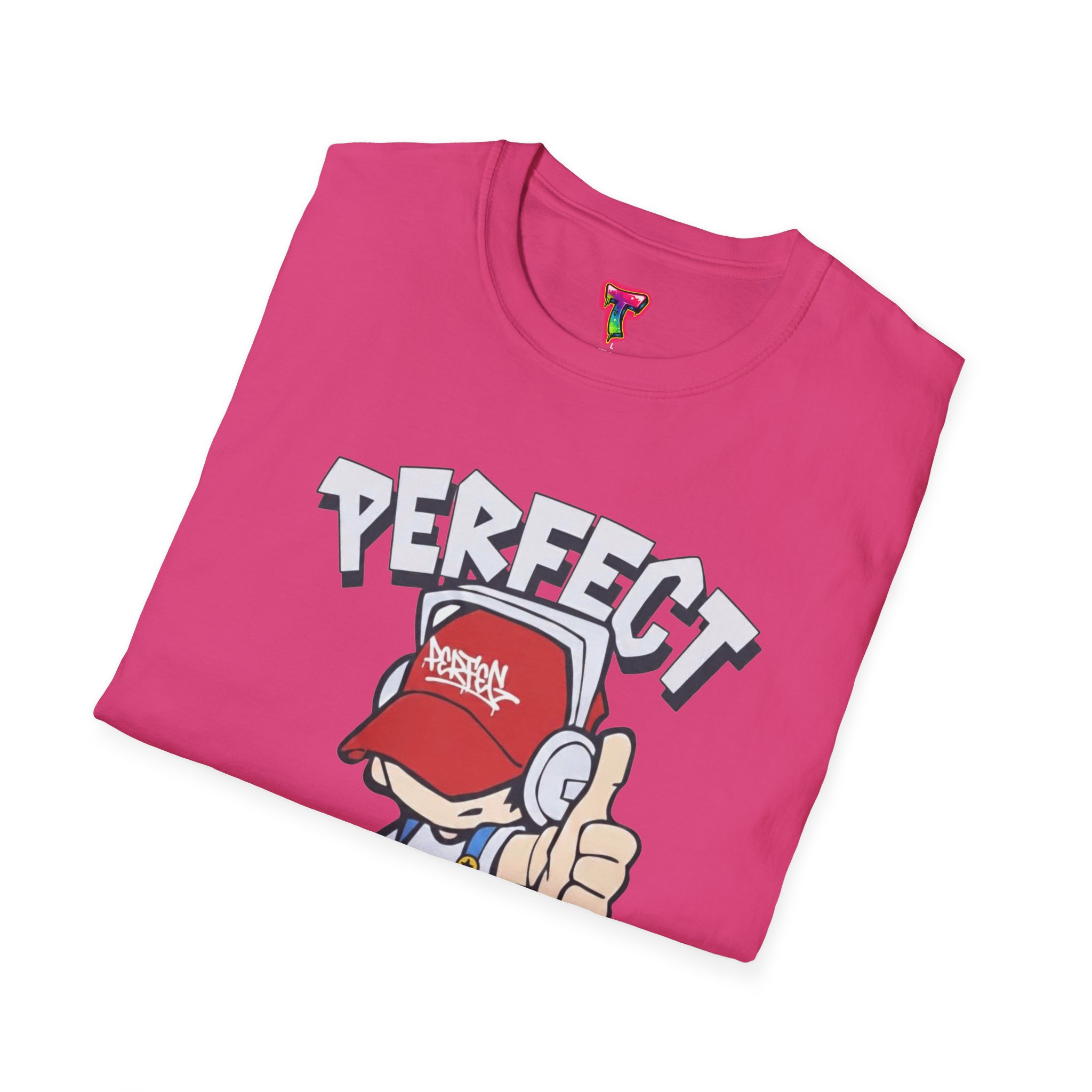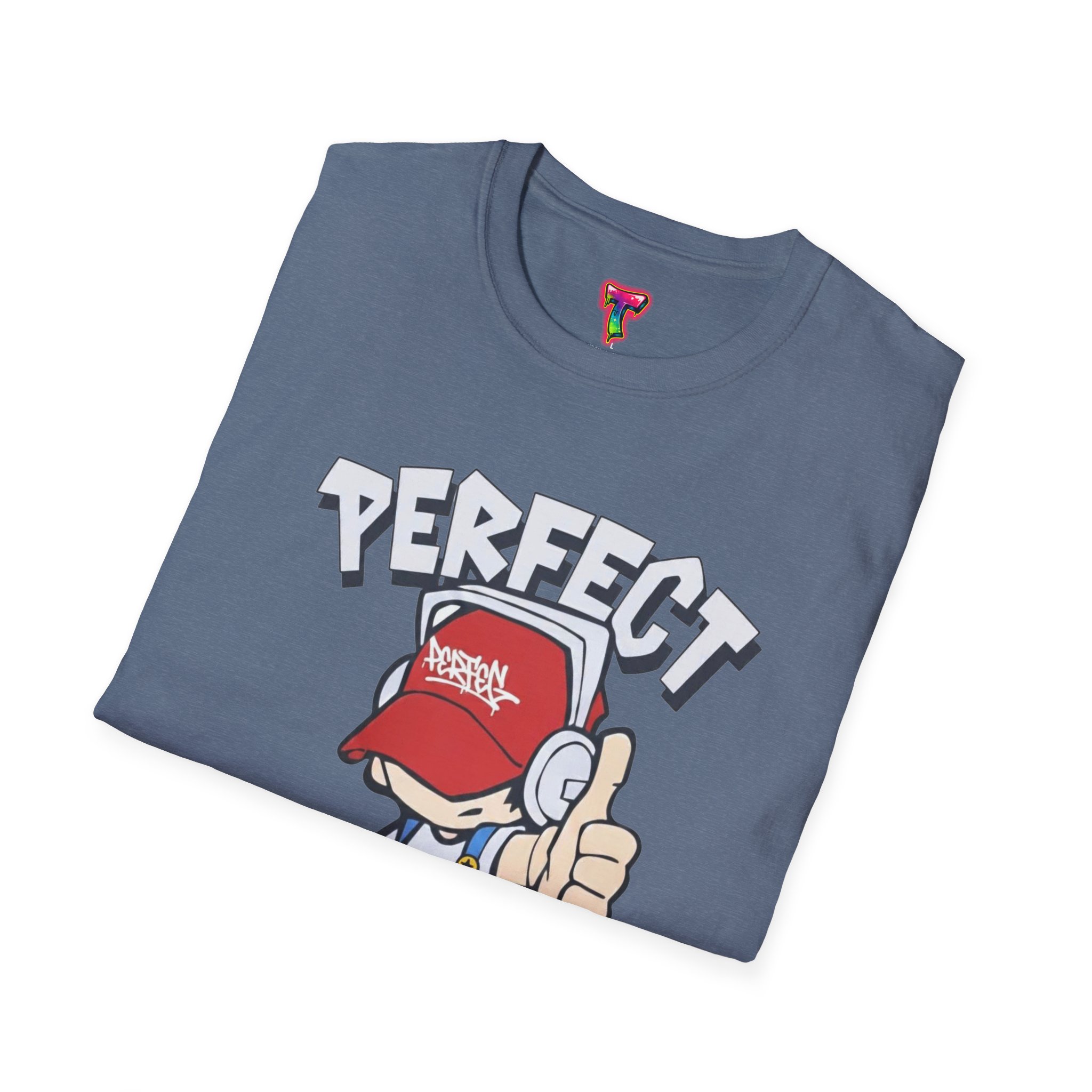 A laid-back graphic tee that channels old-school street vibes with a modern softwear feel. The bold cartoon character — cap pulled low, headphones on, thumbs up beneath the word “PERFECT” — reads like a confident nod to music, skate spots, and late-night hangs. Lightweight ring-spun cotton keeps the shirt breathable and comfortable through city walks, studio sessions, or couch-side beat checks. Clean crew neckline and classic cut make it easy to layer under a hoodie or wear solo when you want the art to speak. Subtle distressing in the print lines gives a lived-in look that fits naturally into a curated, casual wardrobe.