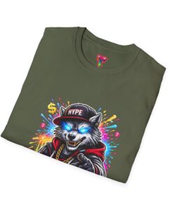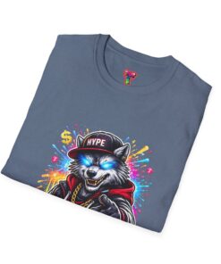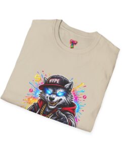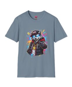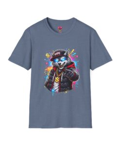 This lightweight cotton tee brings street energy without the weight. The front features a bold, colorful illustration of a swaggering wolf in a leather jacket and cap, rendered with bright splashes of paint and neon highlights that pop against the clean white canvas. It feels casual and confident — something you reach for when you want your outfit to speak loud, whether you’re walking the city, hanging at a skate park, or meeting friends for coffee. The classic crew neckline and soft ring-spun cotton keep the shirt comfortable all day. Wear it with jeans, a denim jacket, or layered under an open flannel to let that graphic take center stage.