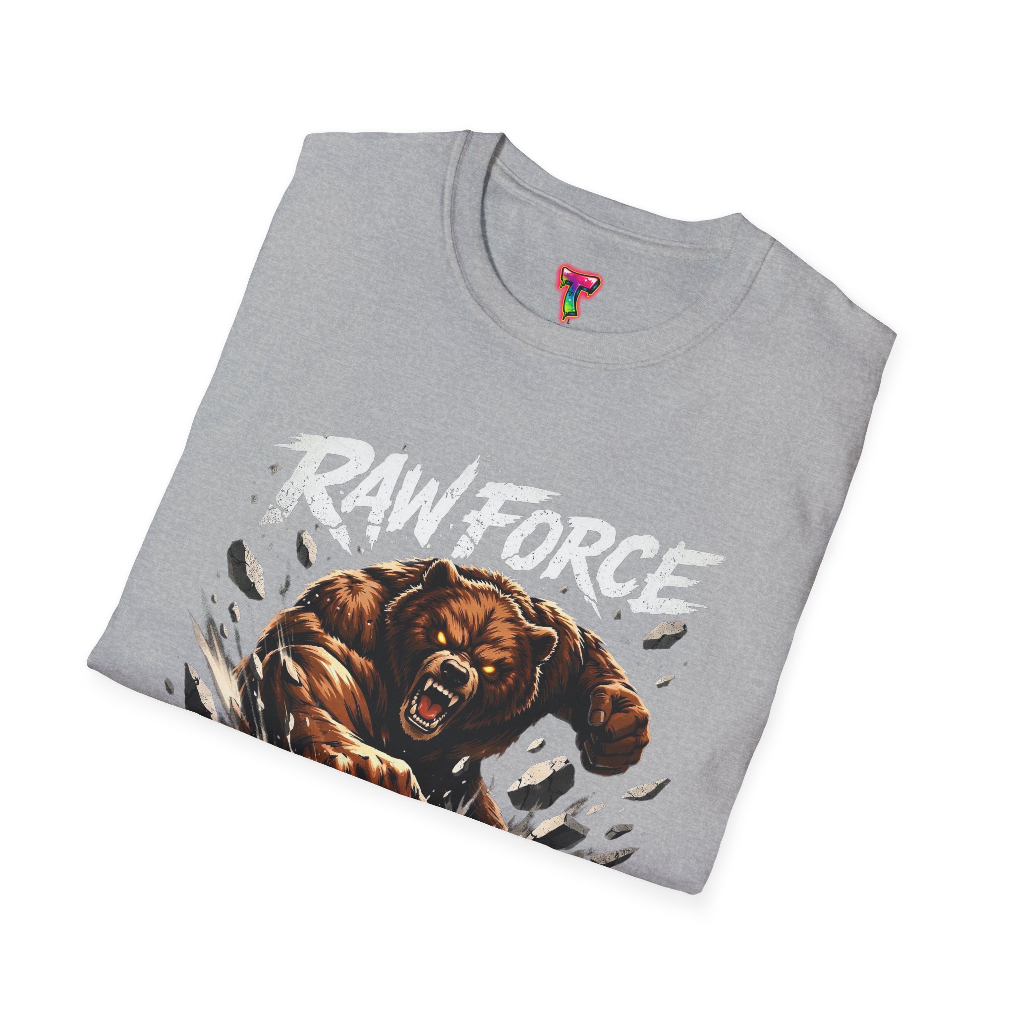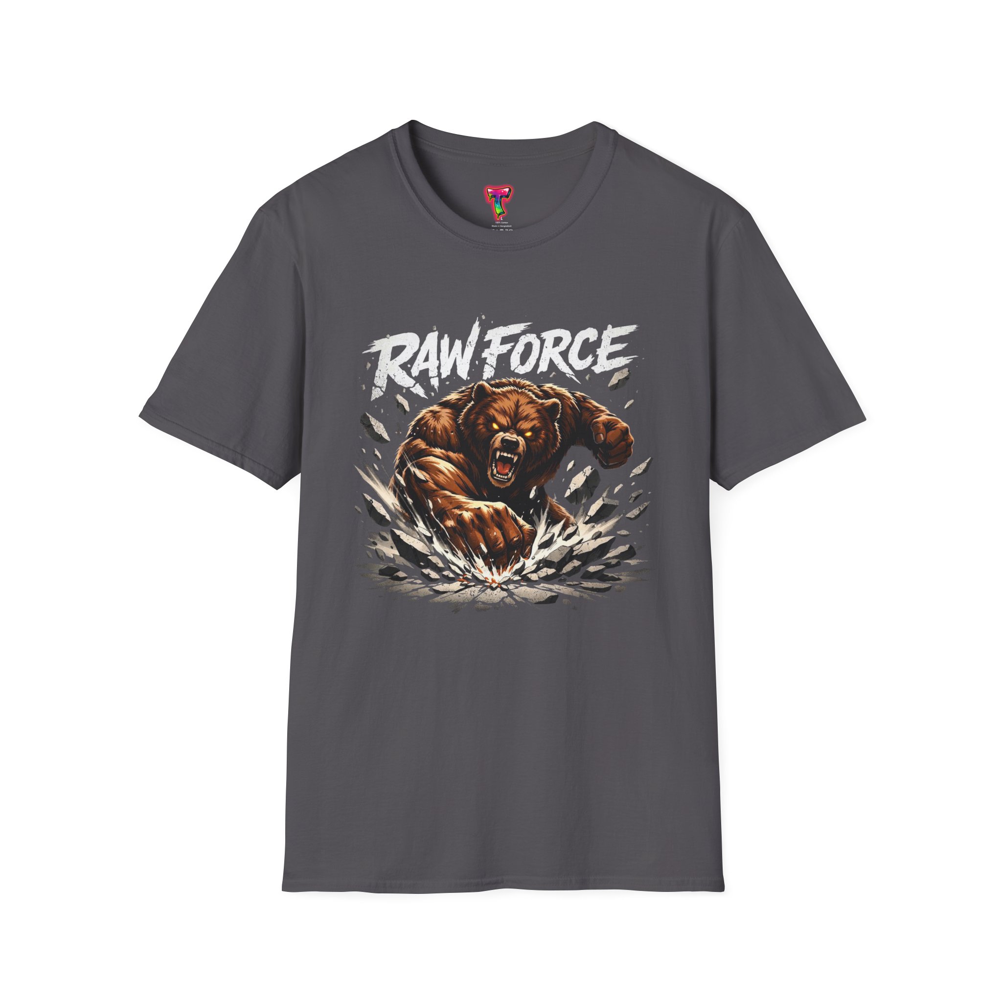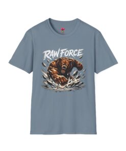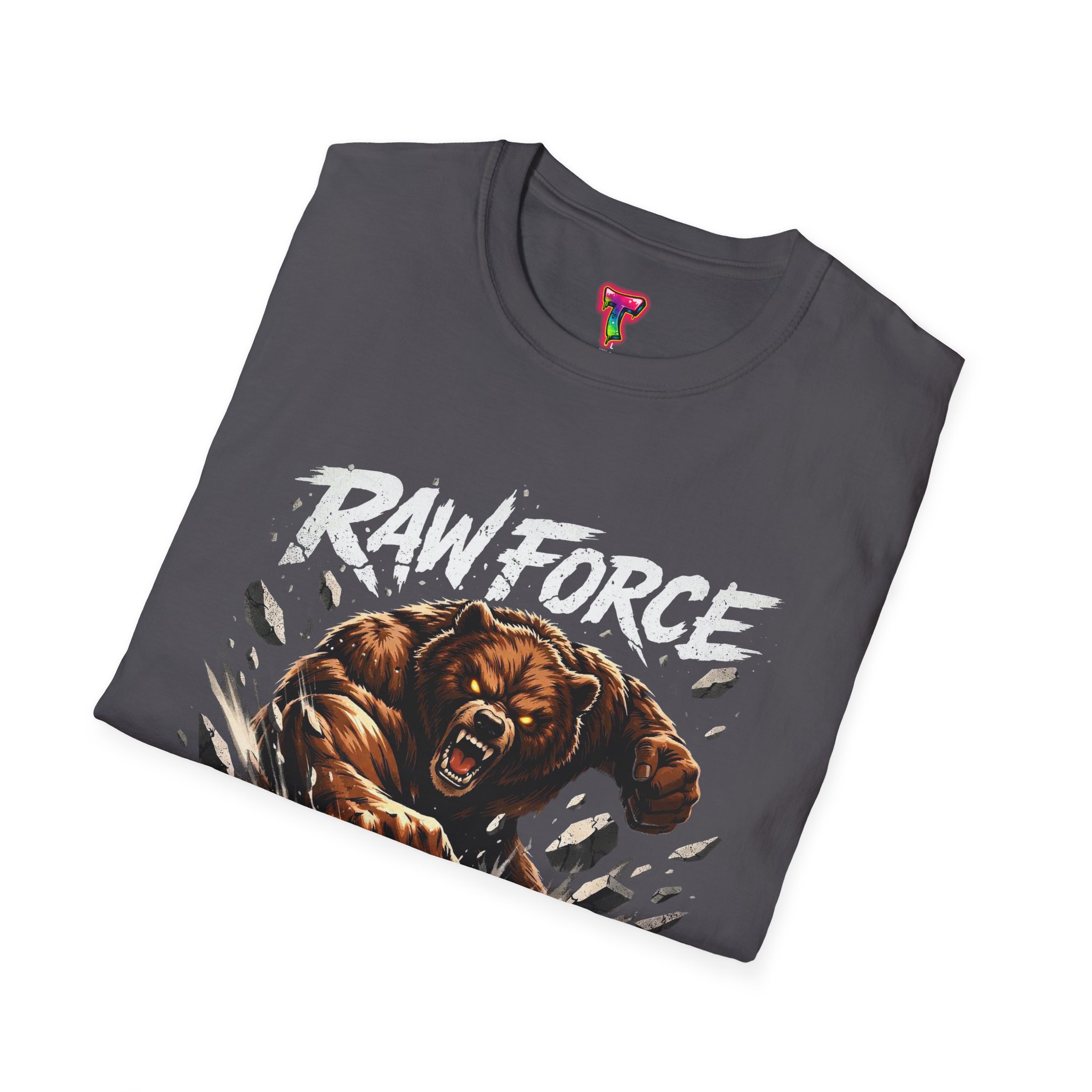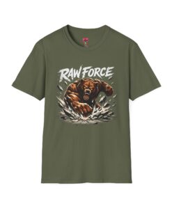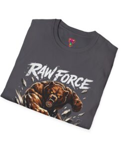 Unleash unstoppable power with this bold dark gray graphic t-shirt featuring a fierce bear breaking through with the striking slogan “Raw Force.” The dynamic artwork captures pure strength, aggression, and primal energy, making it perfect for those who embrace power and resilience. With its rugged design and impactful typography, this tee stands out in any streetwear collection. Crafted from soft, breathable fabric with a comfortable unisex fit, it’s ideal for everyday wear, workouts, or bold statement outfits.