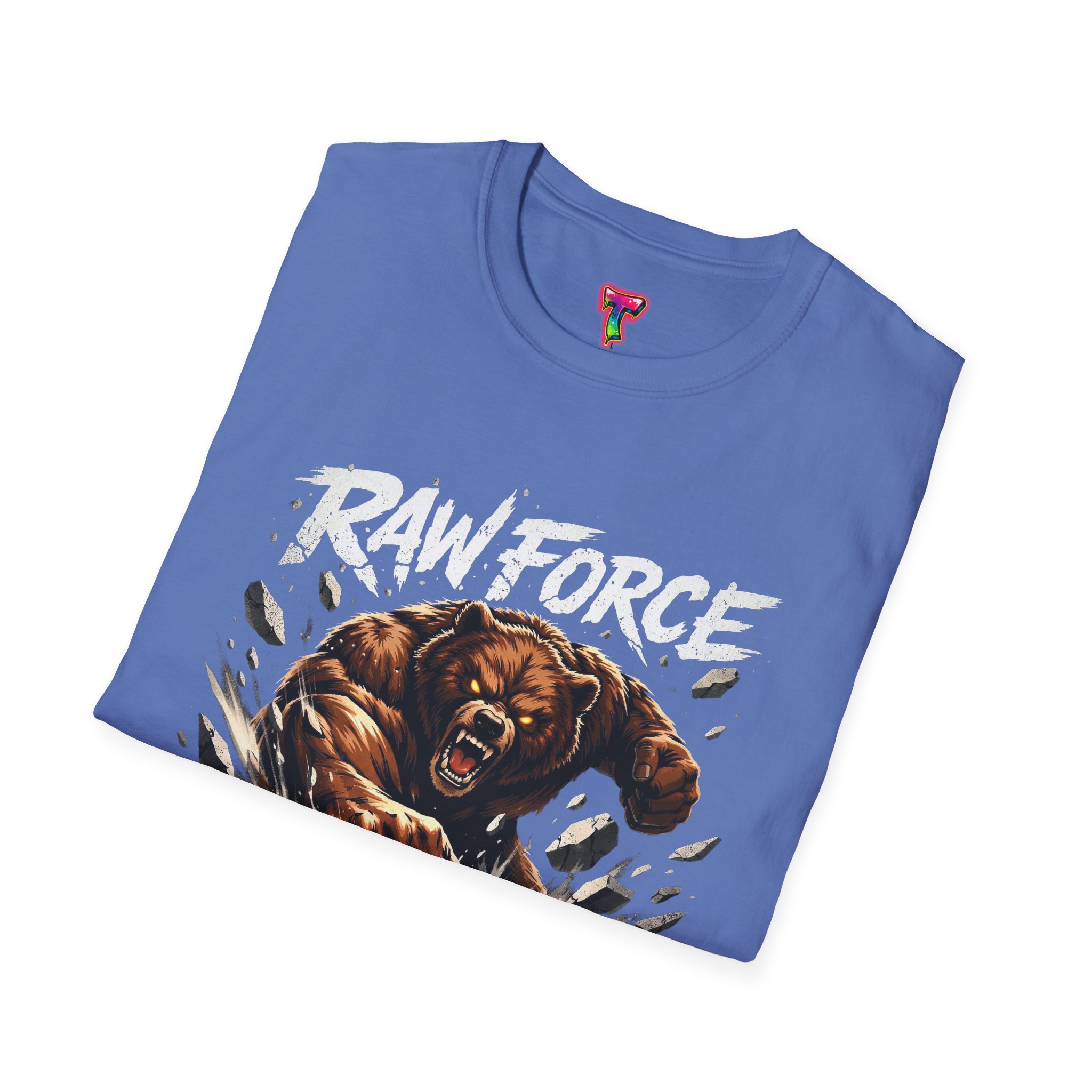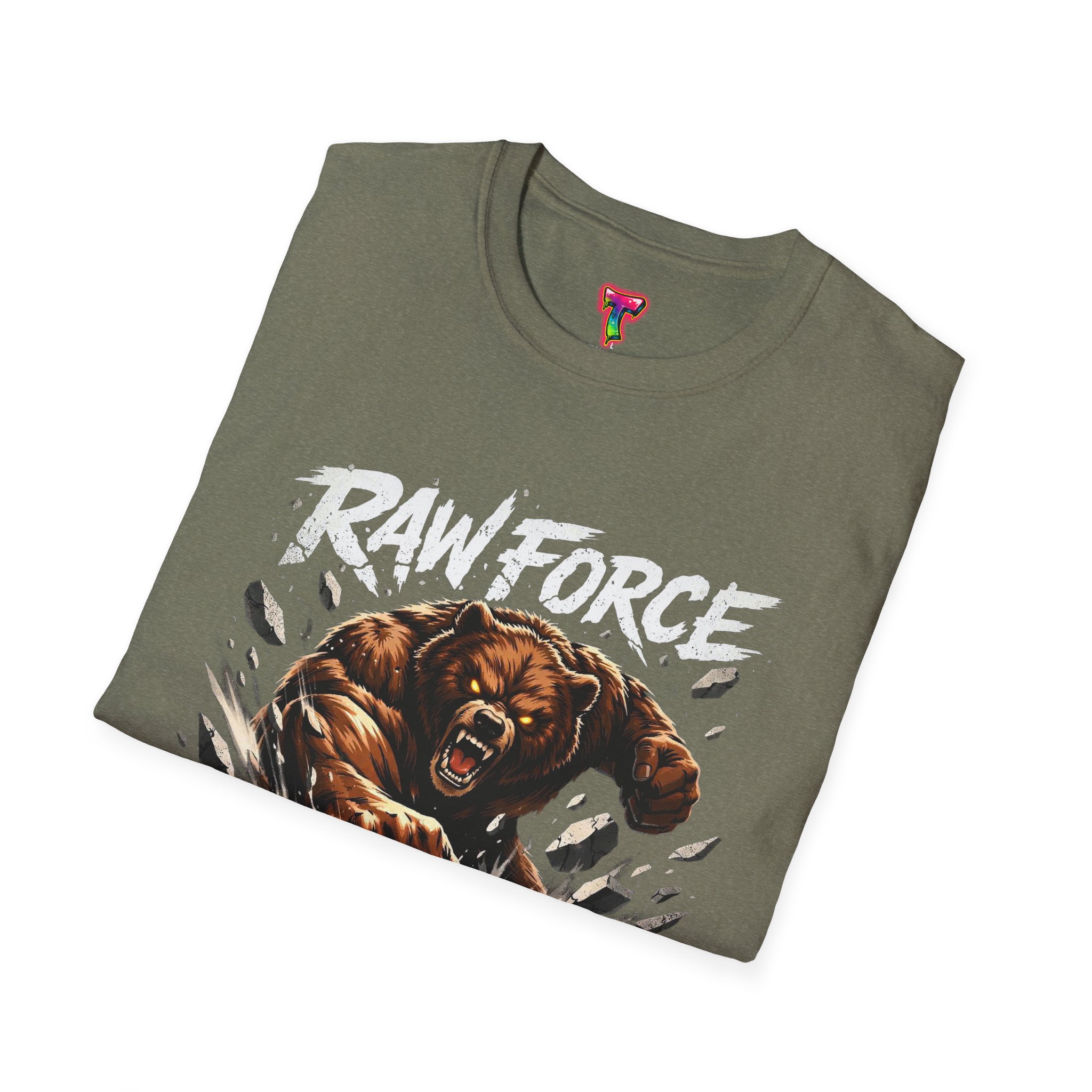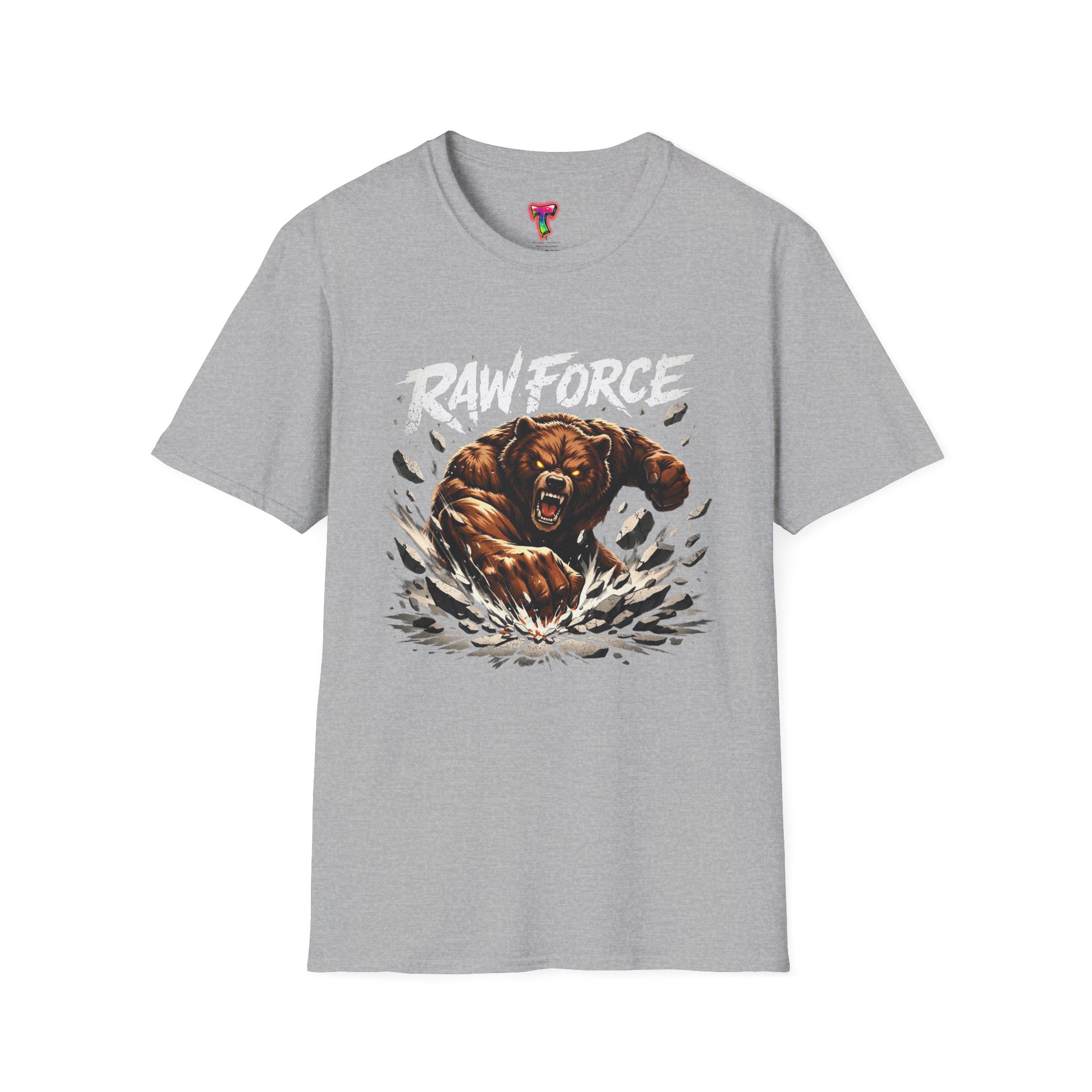 Unleash unstoppable power with this bold dark gray graphic t-shirt featuring a fierce bear breaking through with the striking slogan “Raw Force.” The dynamic artwork captures pure strength, aggression, and primal energy, making it perfect for those who embrace power and resilience. With its rugged design and impactful typography, this tee stands out in any streetwear collection. Crafted from soft, breathable fabric with a comfortable unisex fit, it’s ideal for everyday wear, workouts, or bold statement outfits.