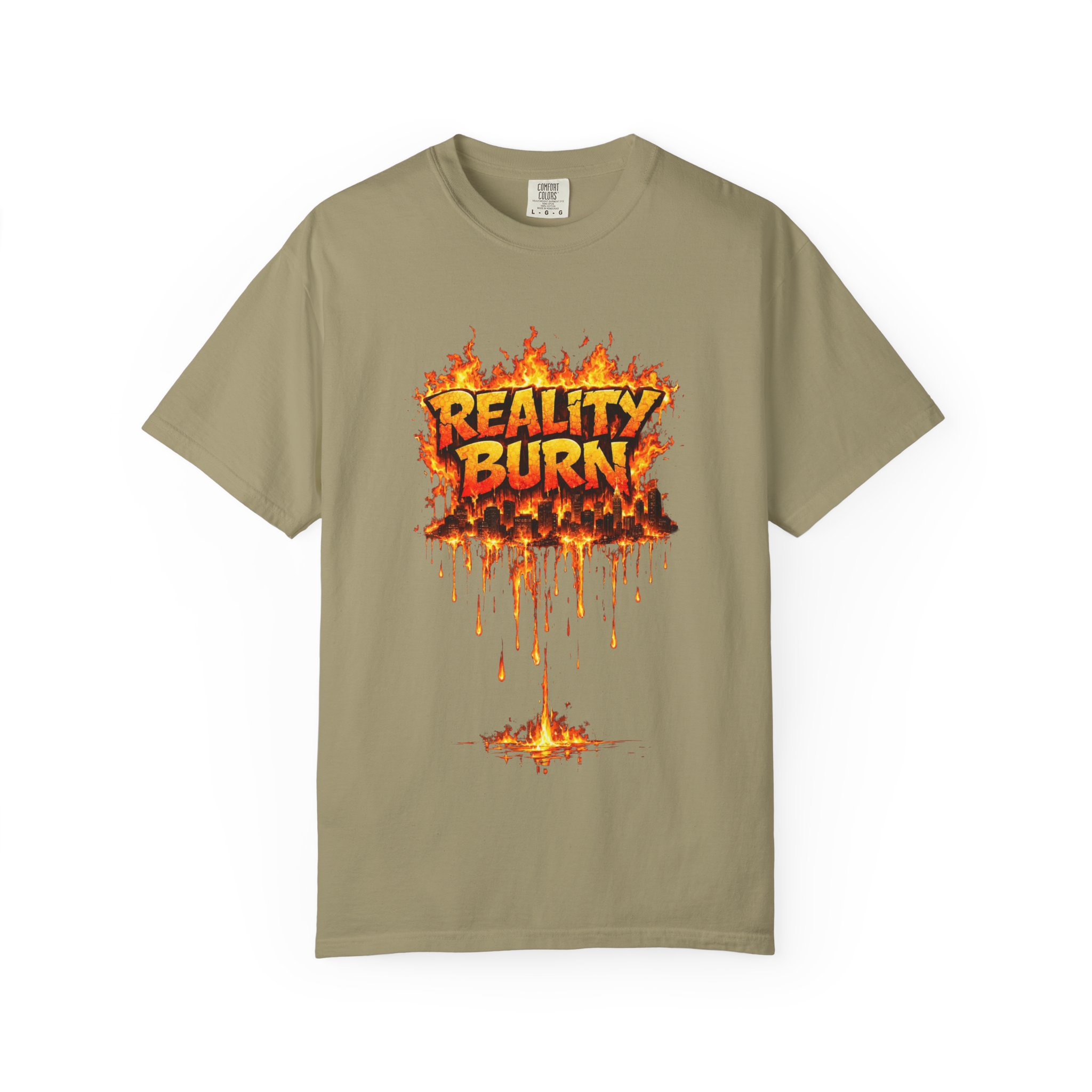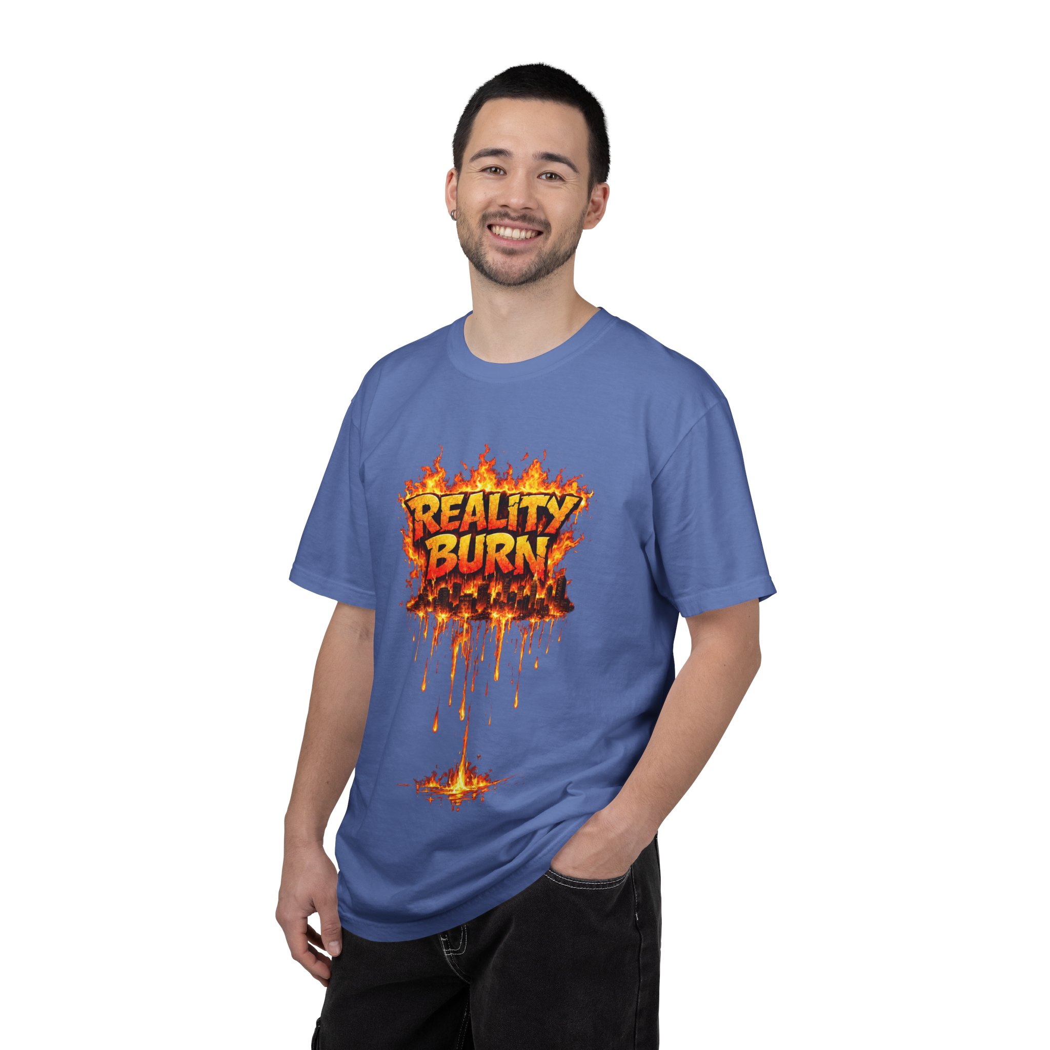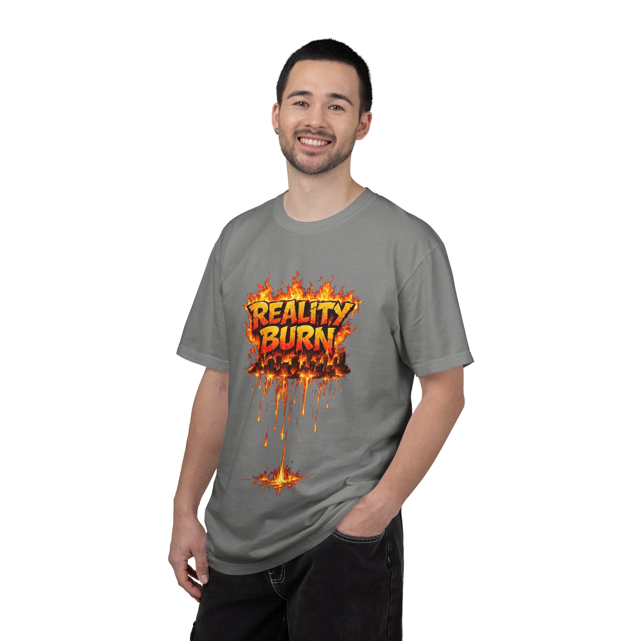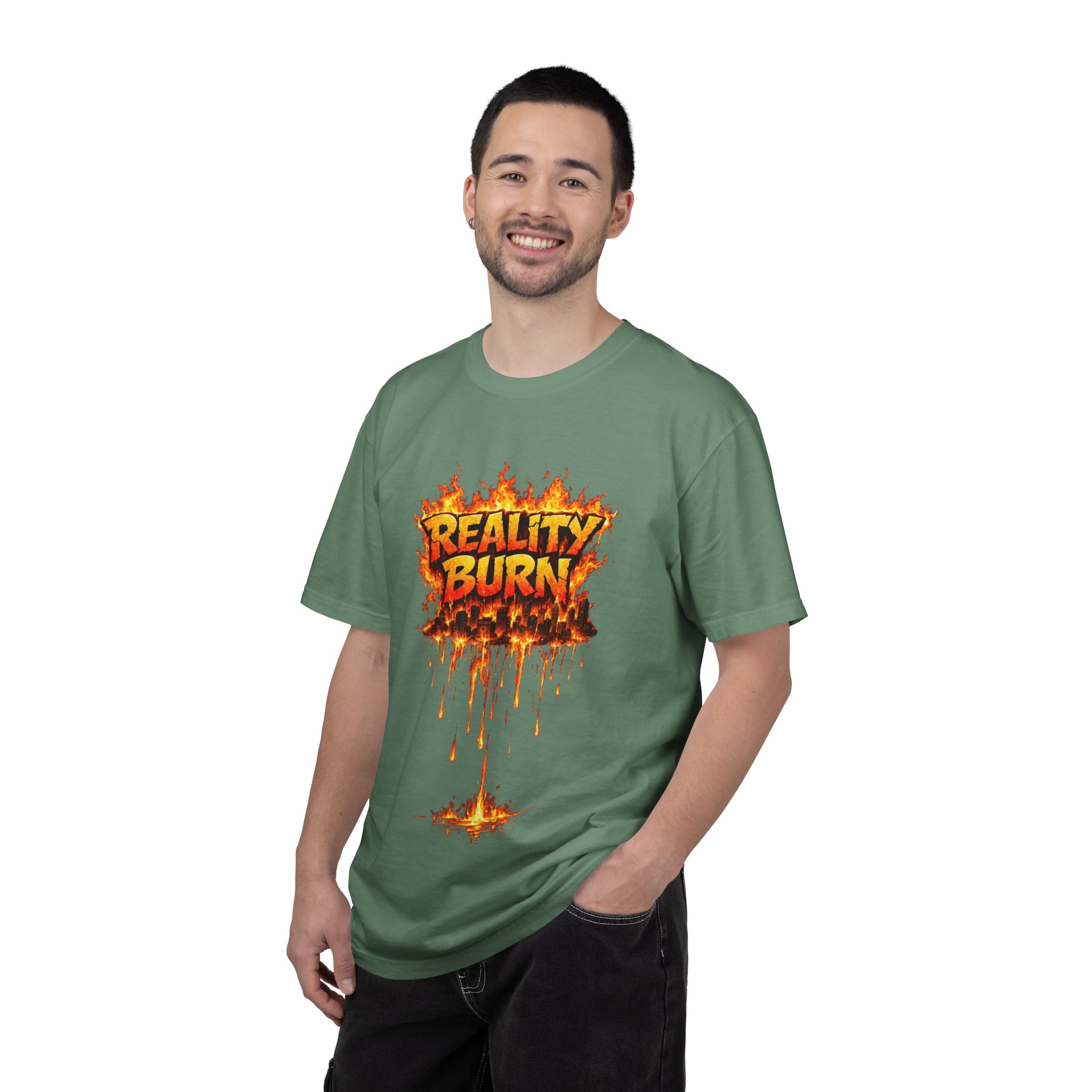 This heavyweight, garment-dyed tee wears like a lived-in favorite from day one. The relaxed silhouette and soft, post-dye texture make it feel broken-in while the bold flaming “Reality Burn” graphic brings a raw, rebellious edge. Throw it on for long days outdoors, late-night shows, or when you want your outfit to speak louder than words. It layers easily under a denim jacket or over a hoodie and keeps its shape thanks to double-needle stitching and pre-shrunk ring-spun cotton. Available in a wide range of colors and sizes, it’s built to age gracefully with you — softer with every wash and still holding that fire-forward attitude.