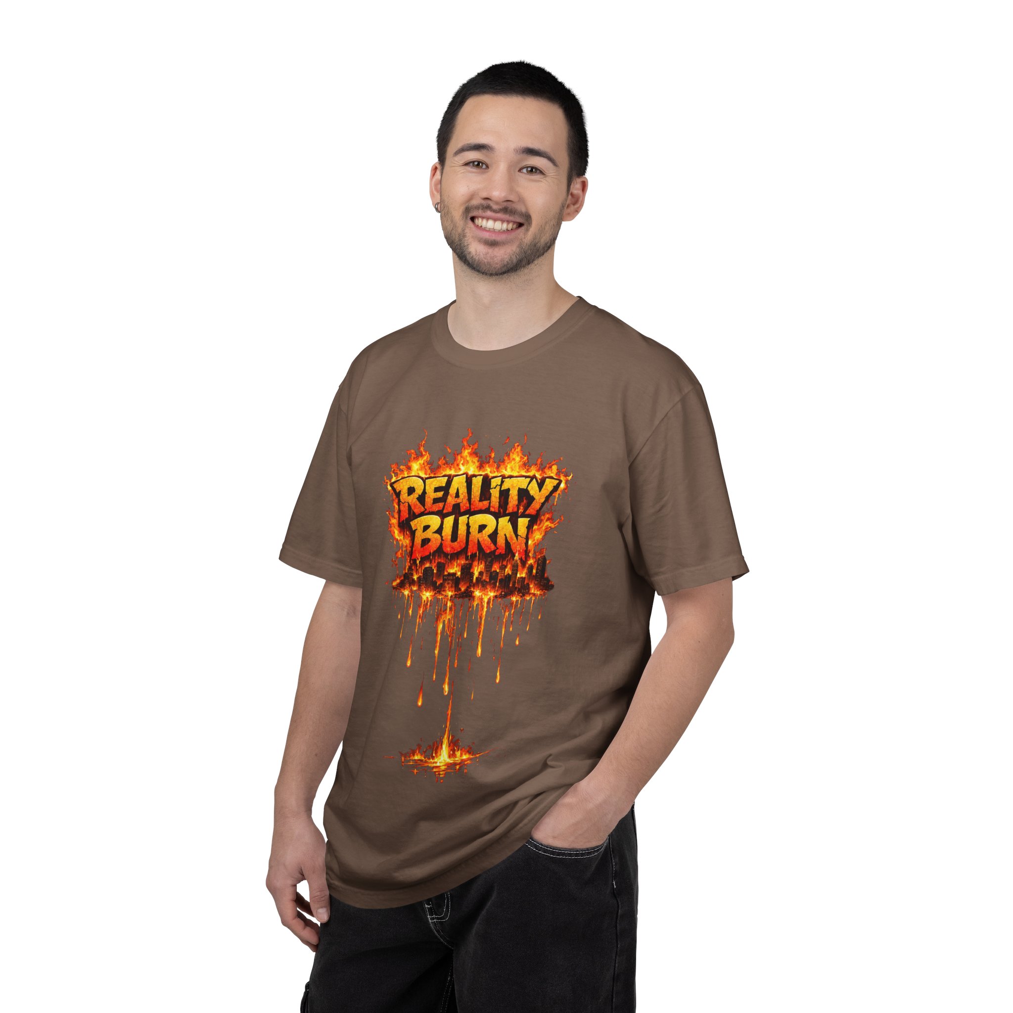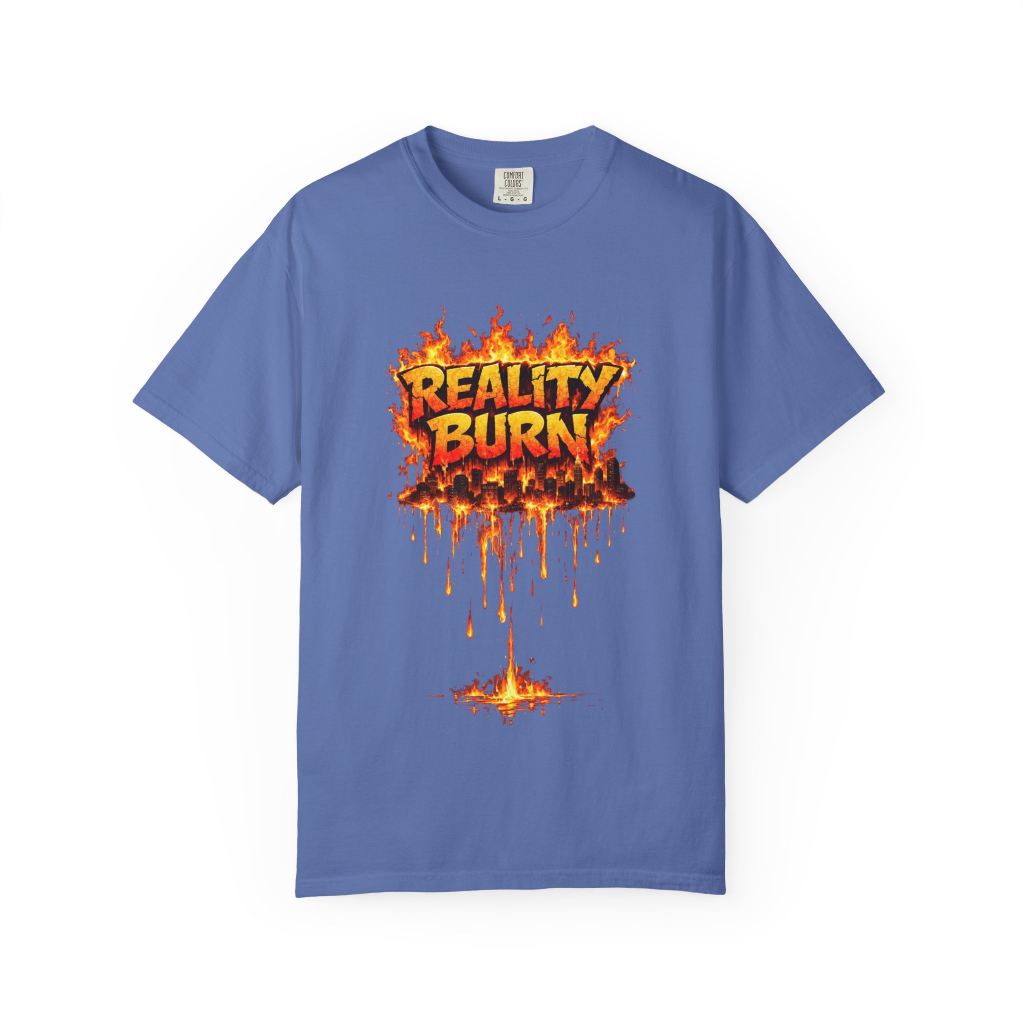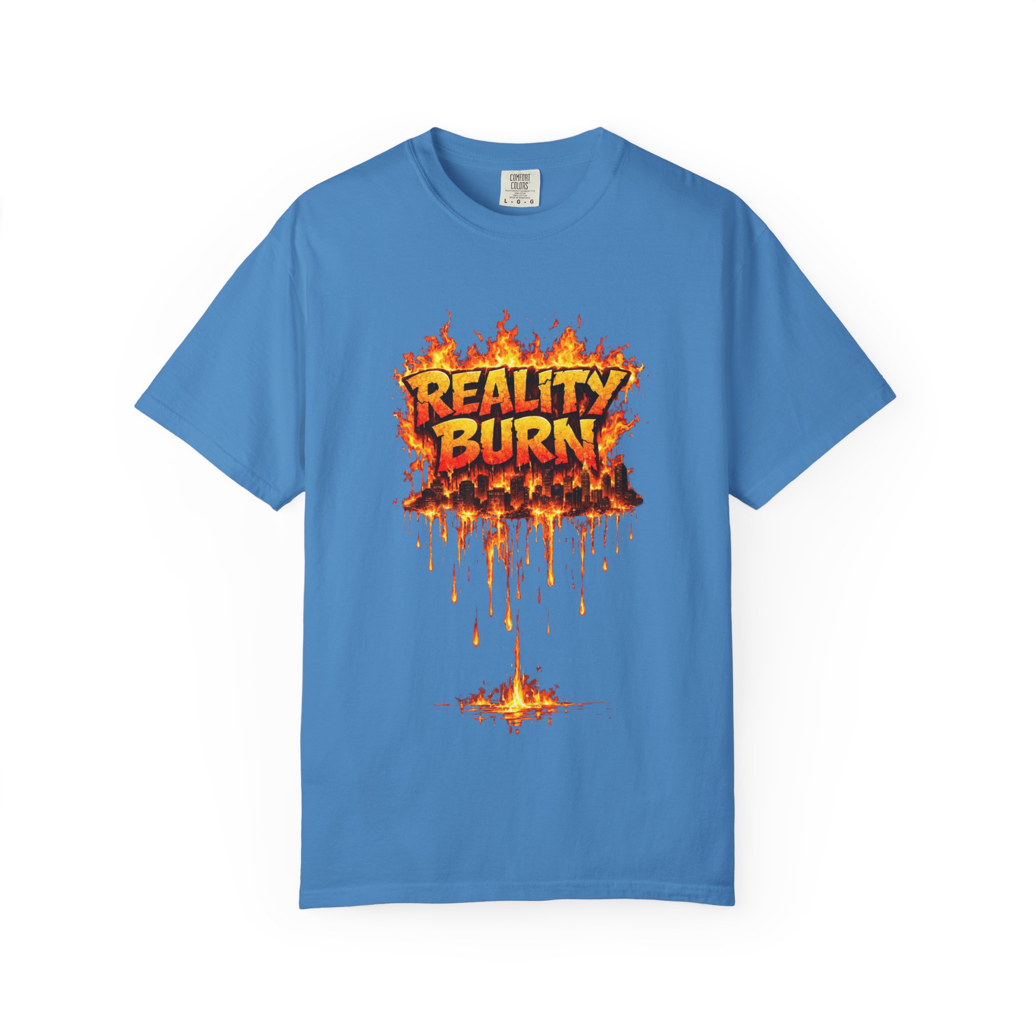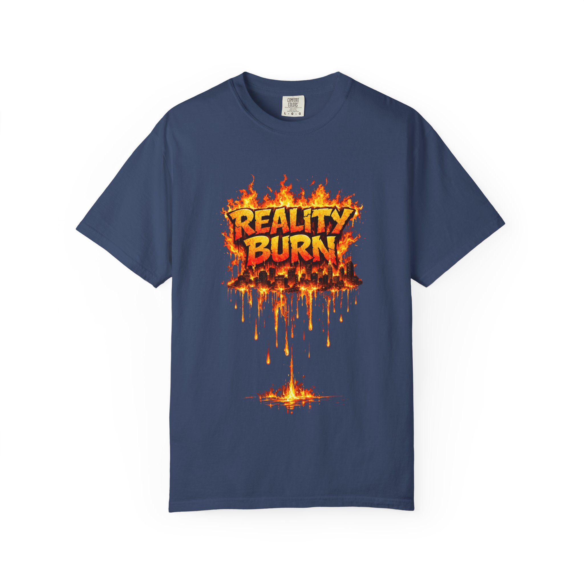This heavyweight, garment-dyed tee wears like a lived-in favorite from day one. The relaxed silhouette and soft, post-dye texture make it feel broken-in while the bold flaming “Reality Burn” graphic brings a raw, rebellious edge. Throw it on for long days outdoors, late-night shows, or when you want your outfit to speak louder than words. It layers easily under a denim jacket or over a hoodie and keeps its shape thanks to double-needle stitching and pre-shrunk ring-spun cotton. Available in a wide range of colors and sizes, it’s built to age gracefully with you — softer with every wash and still holding that fire-forward attitude.