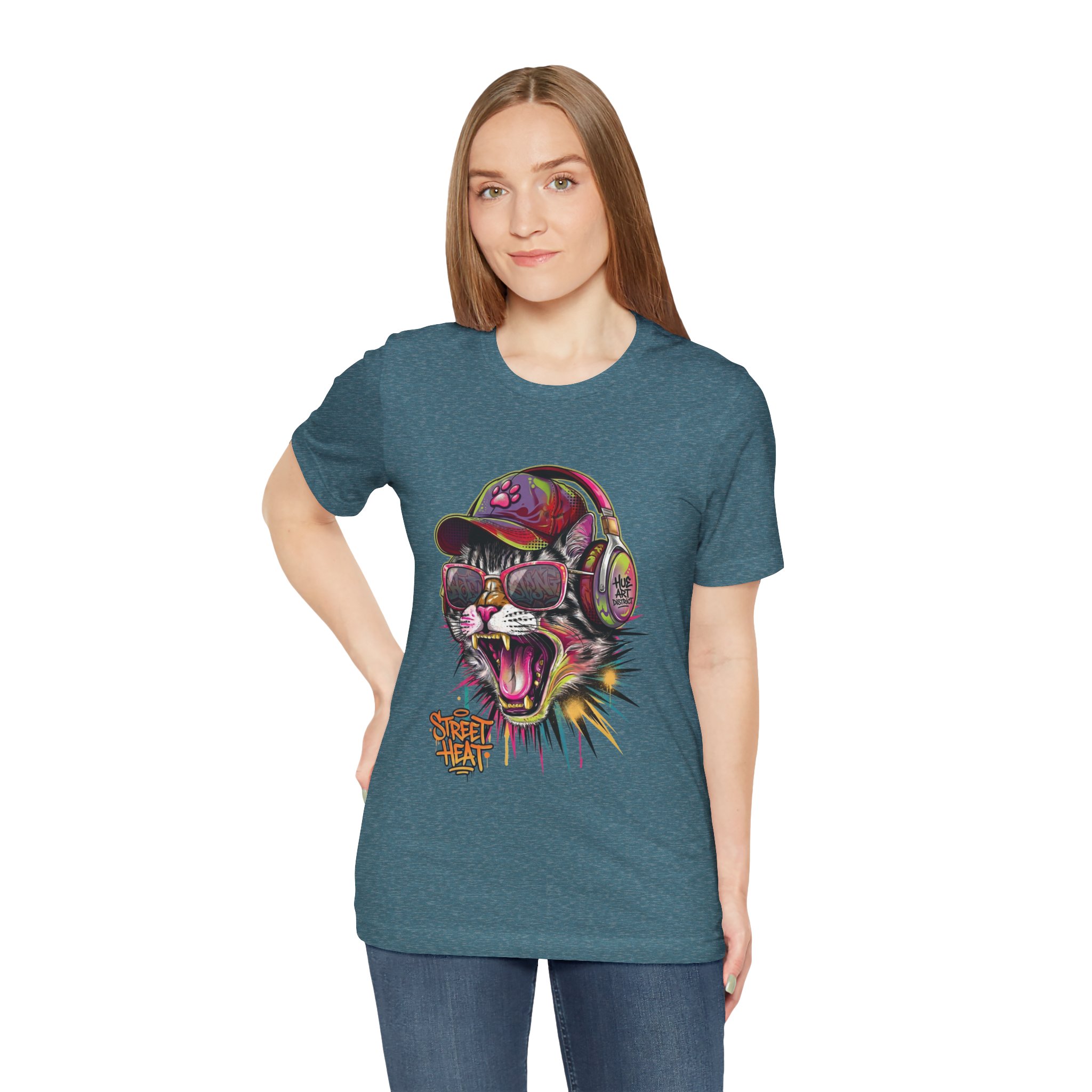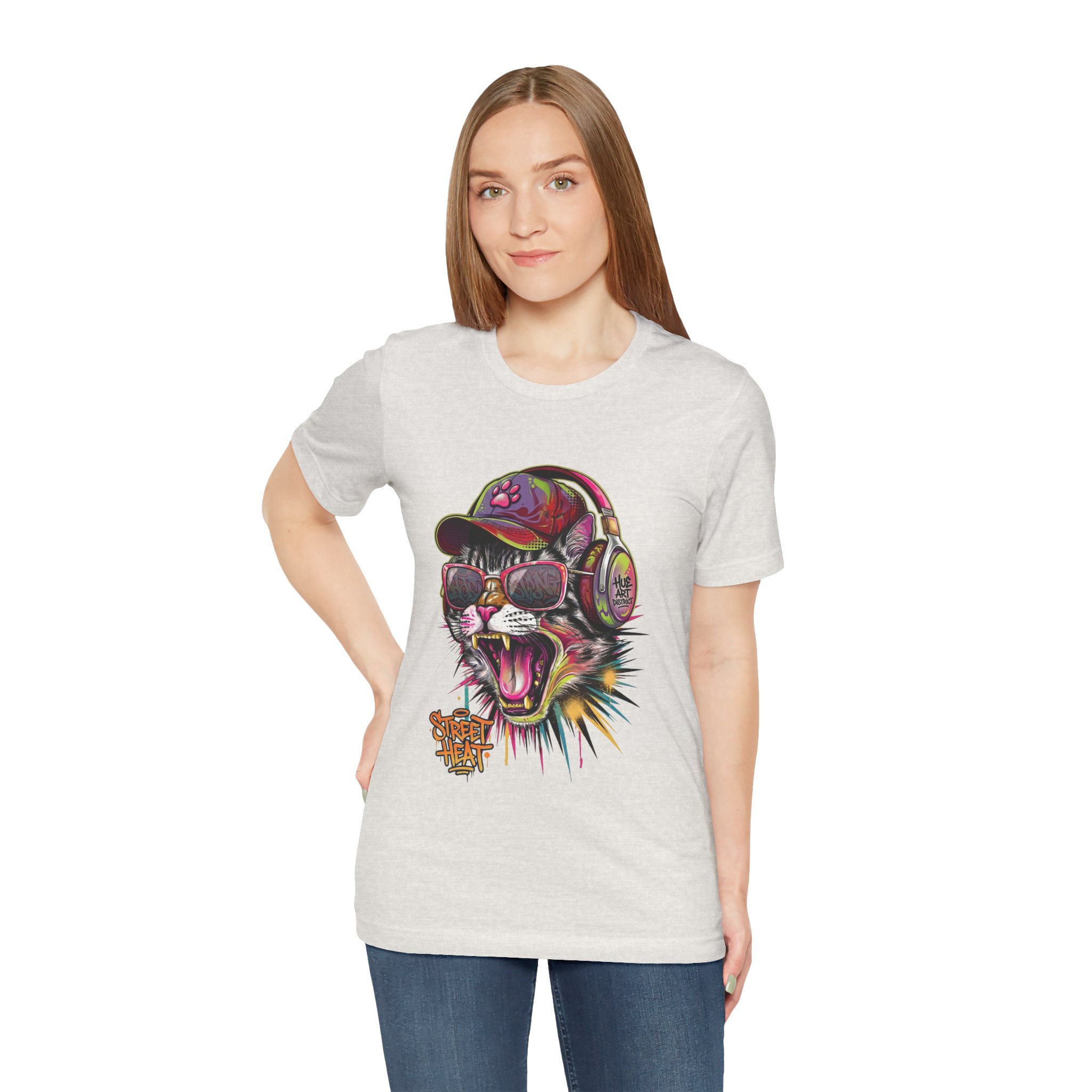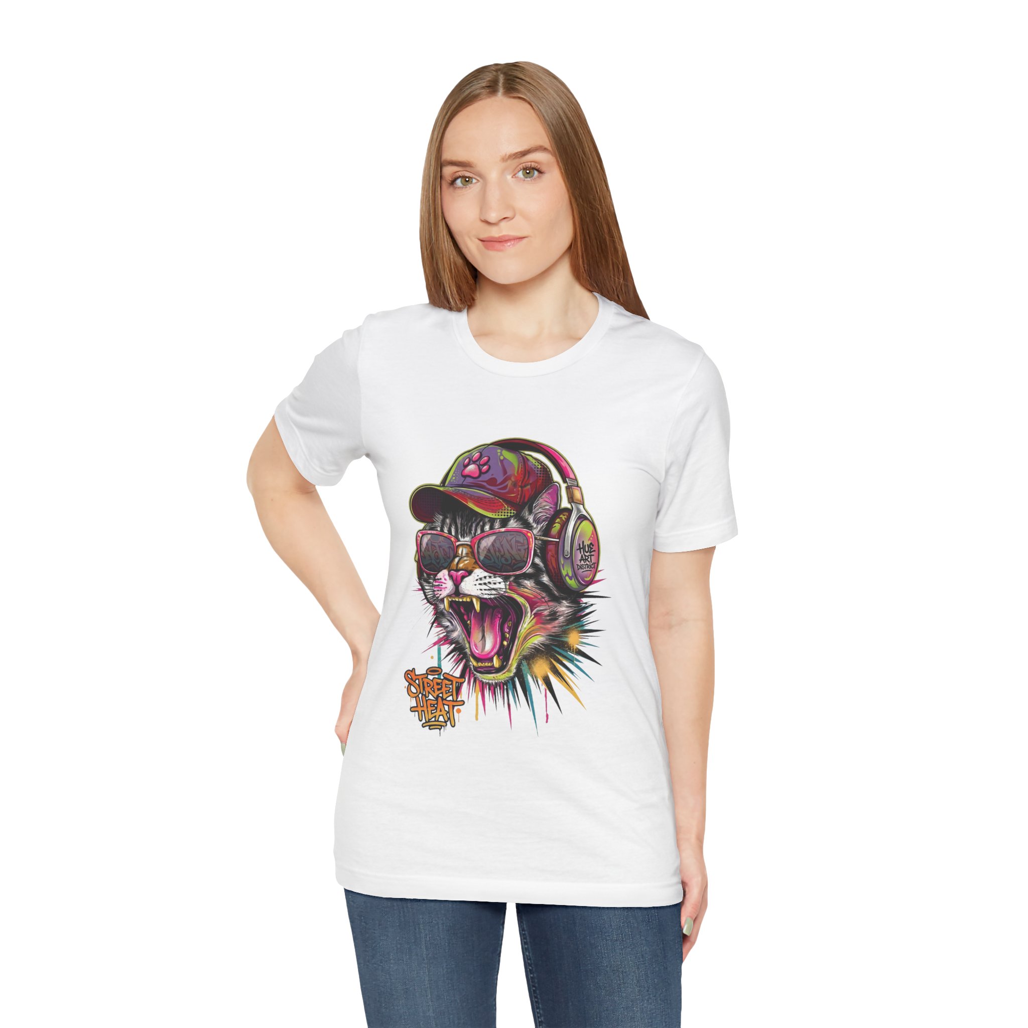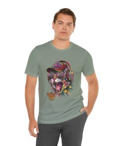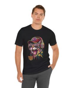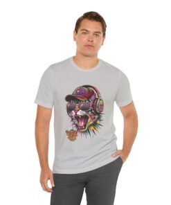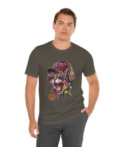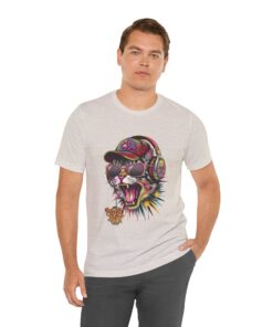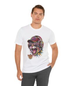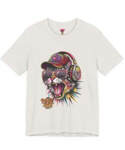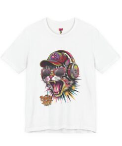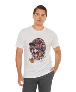 Unleash your wild style with this bold lion graffiti t-shirt, featuring a fierce lion rocking headphones, sunglasses, and full street attitude. This design blends animal power with urban music culture, creating a striking streetwear piece that feels both energetic and stylish.