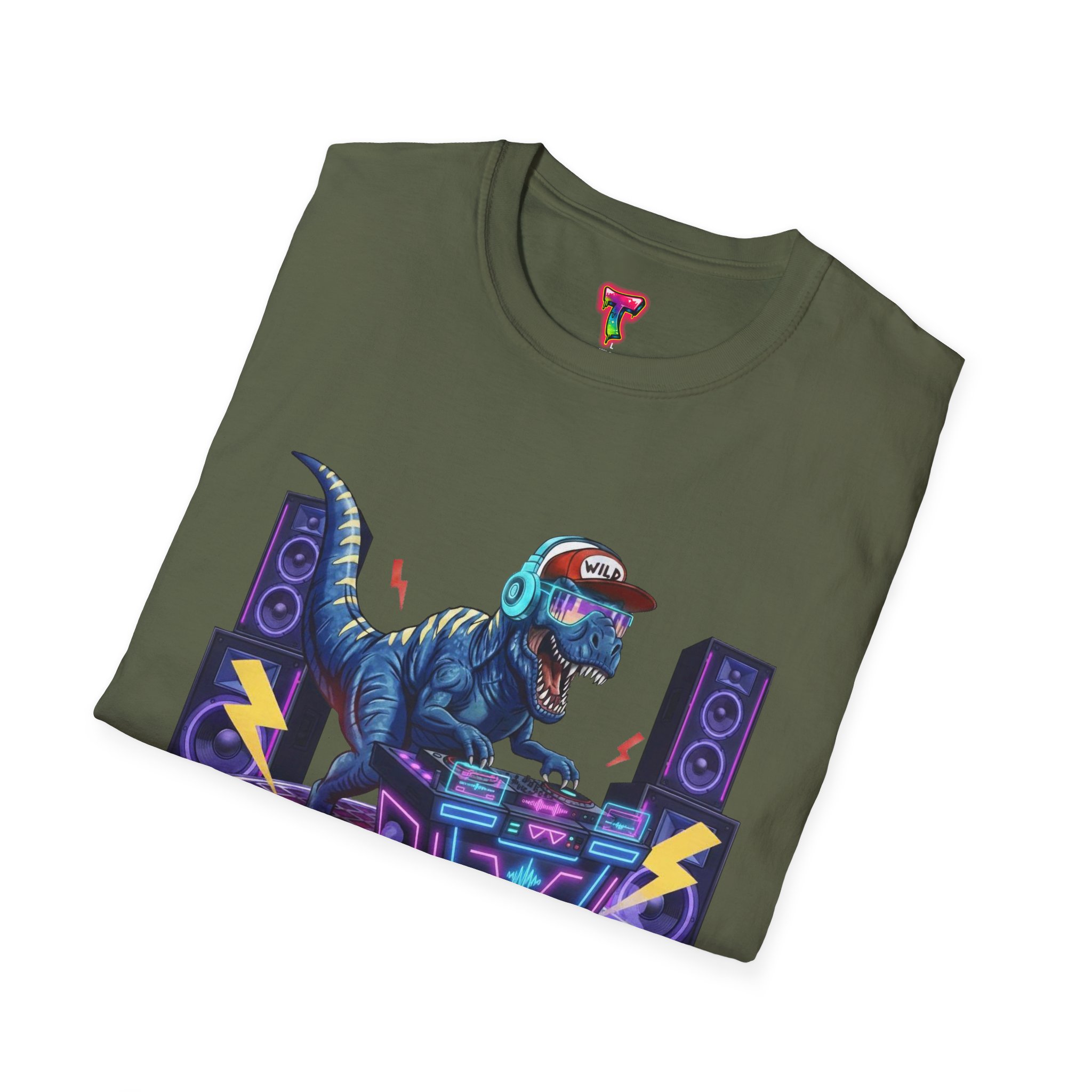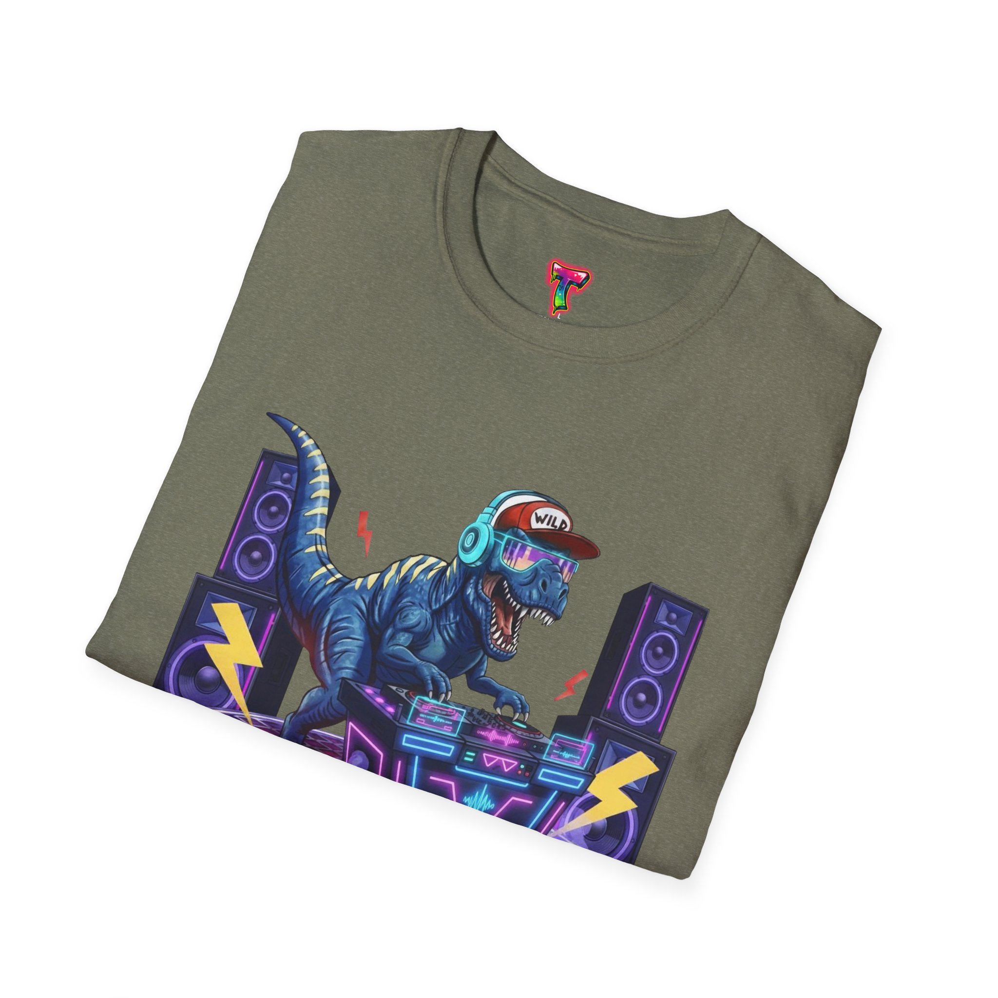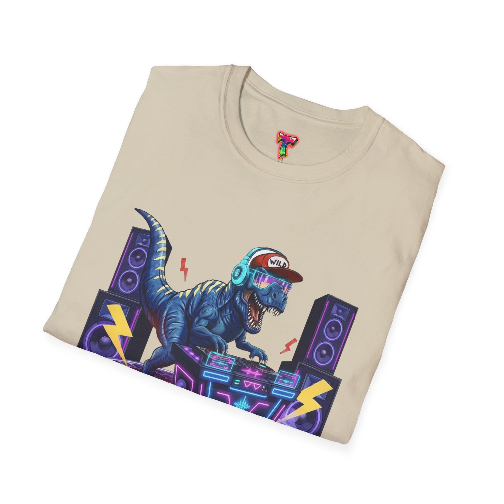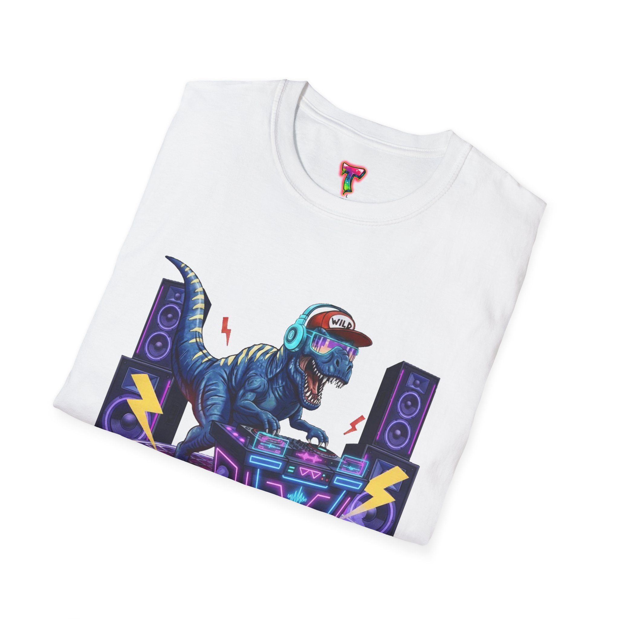 Feel the bass and the grin of pure nostalgia with this lightweight crew tee. A neon-drenched T-Rex drops beats from a retro DJ booth — vivid DTG prints keep the colors sharp while the soft ring-spun cotton sits cool and comfortable against your skin. Wear it to late-night vinyl runs, arcade meetups, or when you want a playful statement that reads loud without saying a word. The clean crew neckline and classic fit layer easily under jackets or stand alone as the centerpiece of a casual outfit.