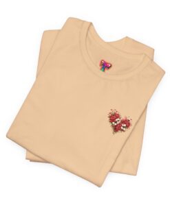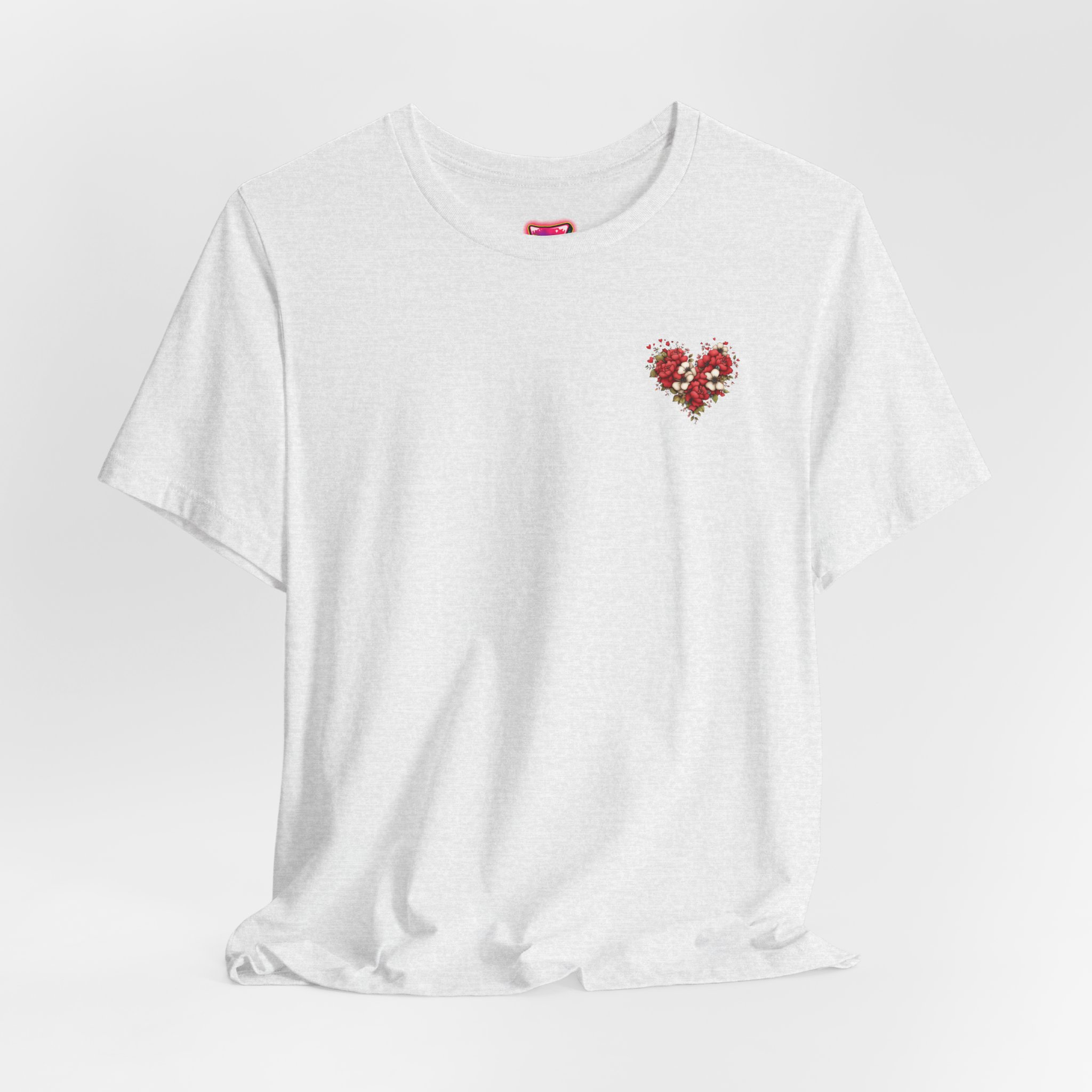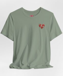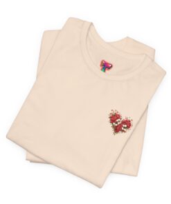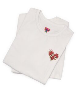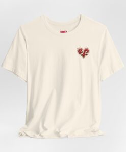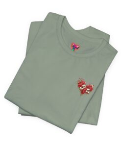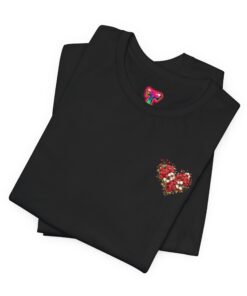 Wear your heart on your sleeve—or better yet, your chest—with a touch of dark elegance. Our “Gothic Rose Heart” Tee features a beautifully detailed illustration of a vibrant red heart intertwined with thorny roses and lush green leaves. Inspired by classic tattoo artistry, this pocket-sized design represents a love that is both beautiful and resilient. It’s a sophisticated choice for those who prefer their romance with a bit of an edge.