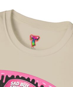 A bold, street-ready tee that wears its mood on its sleeve — and across its chest. Soft, lightweight cotton and a classic crew silhouette keep comfort front and center while a punchy, pink-and-black skull graphic adds playful edge. The illustration reads like a late-night sketch from an underground zine: dripping paint, stacked cash motifs, and the phrase “Sad but Stylish.” It’s for the person who dresses through feeling — who chooses expressive prints that start conversations without shouting. Wear it under a denim jacket, with skate shoes, or layered for shows and nights out. The fabric sits light against skin, the collar keeps its shape, and the single-piece knit reduces seams for a cleaner fall. This tee looks lived-in from the first wear and stays reliable after many washes.
