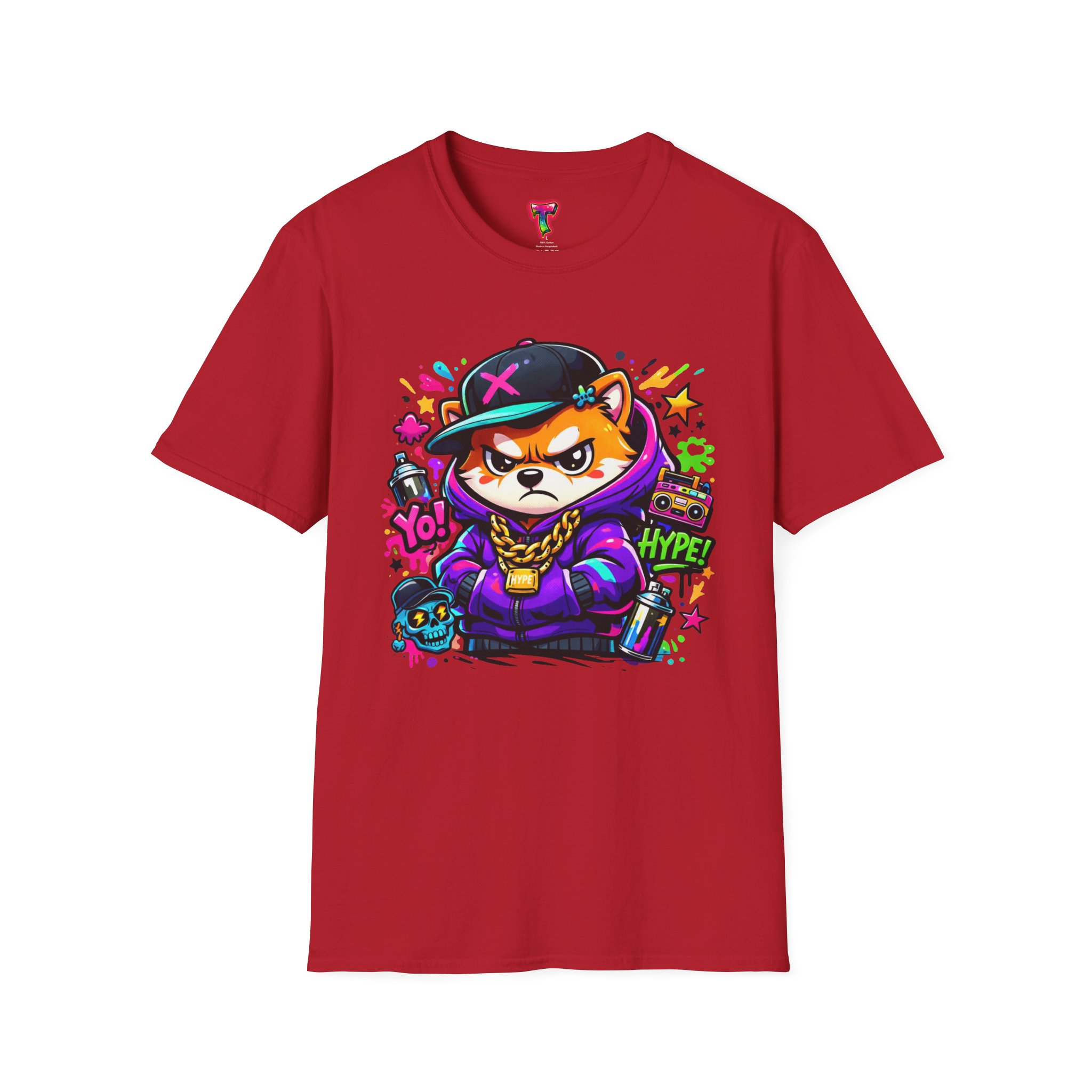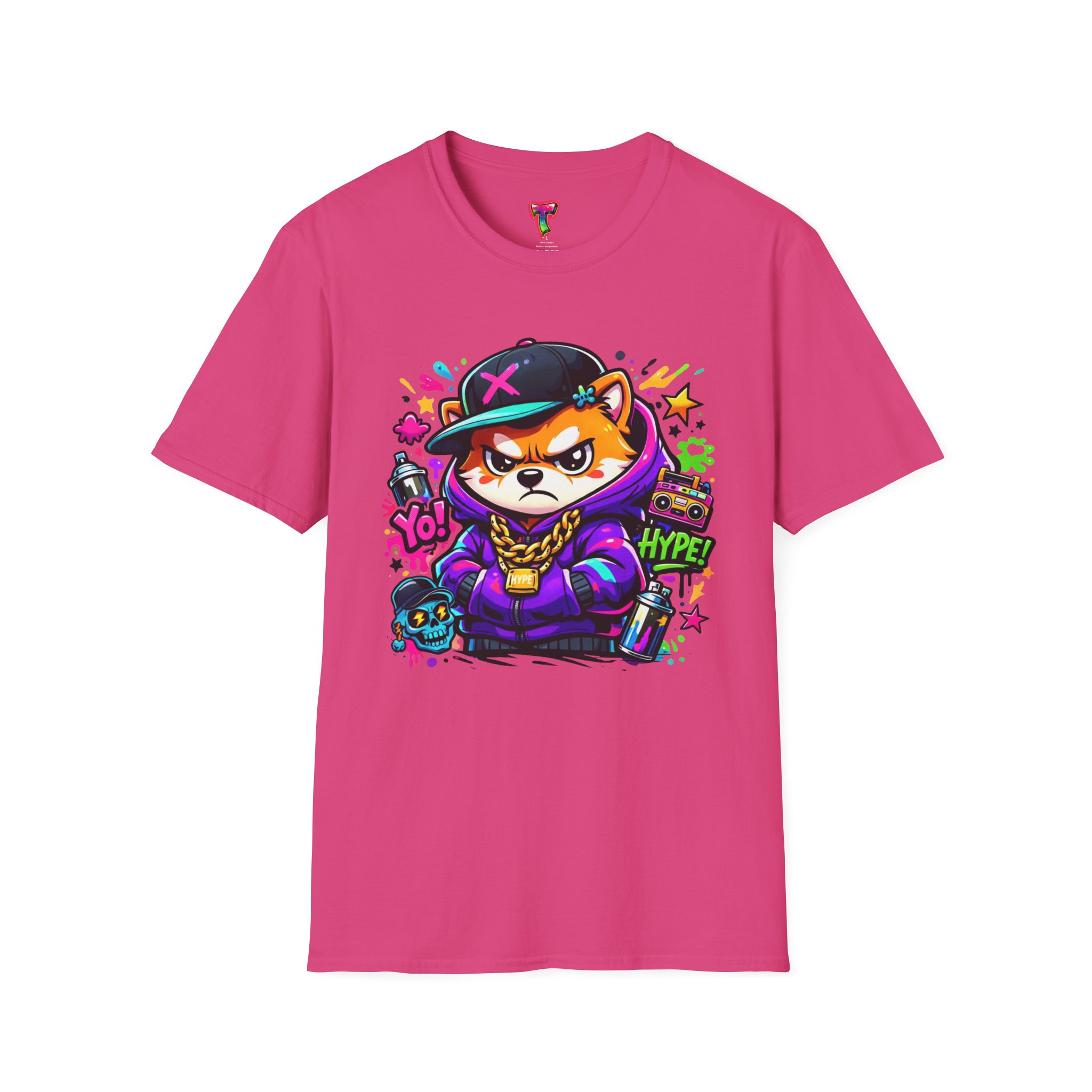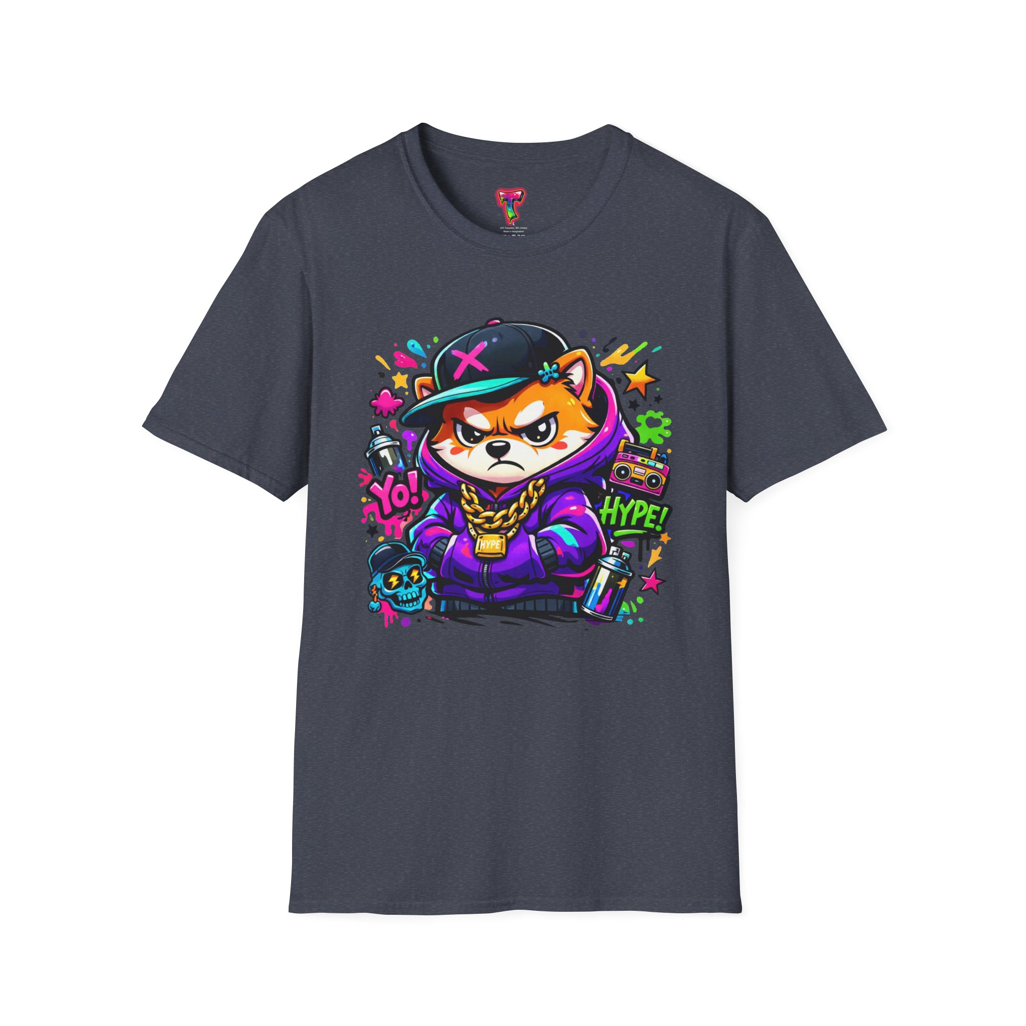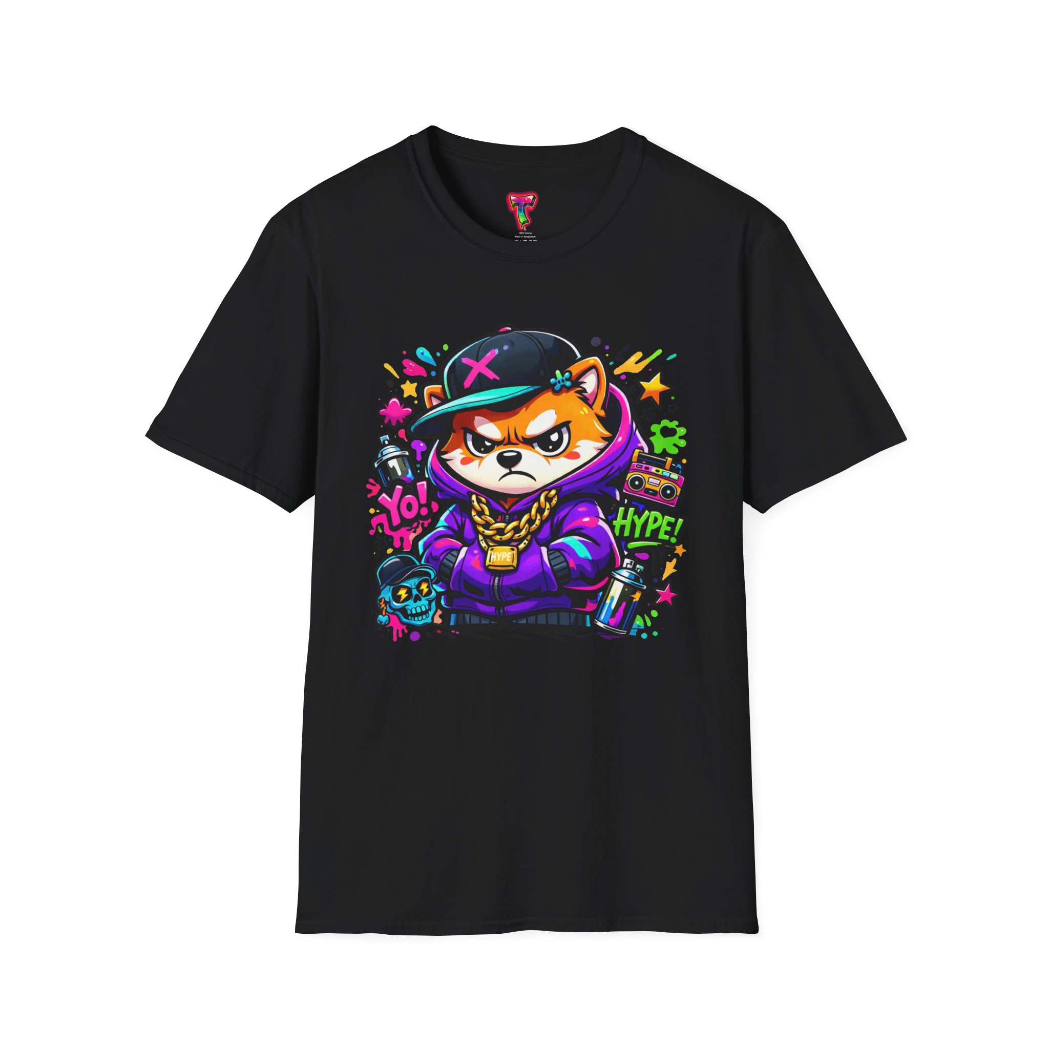This lightweight cotton tee brings street energy and playful attitude to everyday wear. Soft ring-spun cotton and a classic crew cut create a smooth, comfortable base for the bold, graffiti-style fox graphic. Bright neon accents and layered stencil details give the design a hand-drawn, urban-art vibe — like a favorite mural you can fold into your closet. Wear it on city walks, to skate sessions, or when you want to add a pop of color to casual hangouts. The simple silhouette keeps focus on the art while durable construction and reinforced shoulder tape mean it stays shaped and ready for repeat wear.