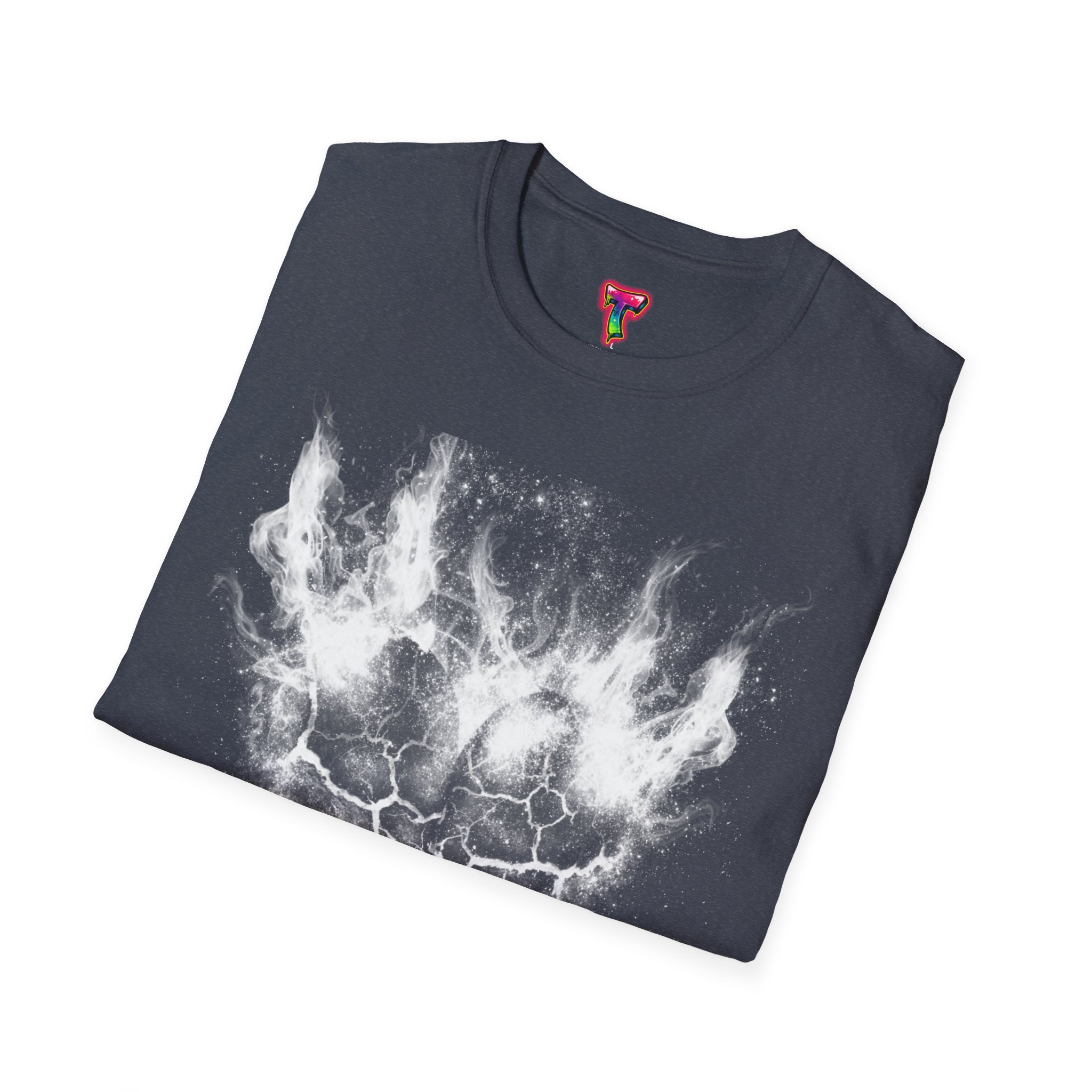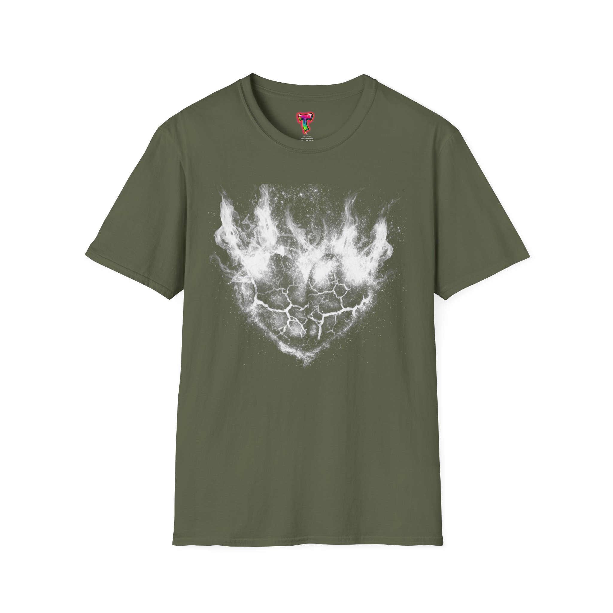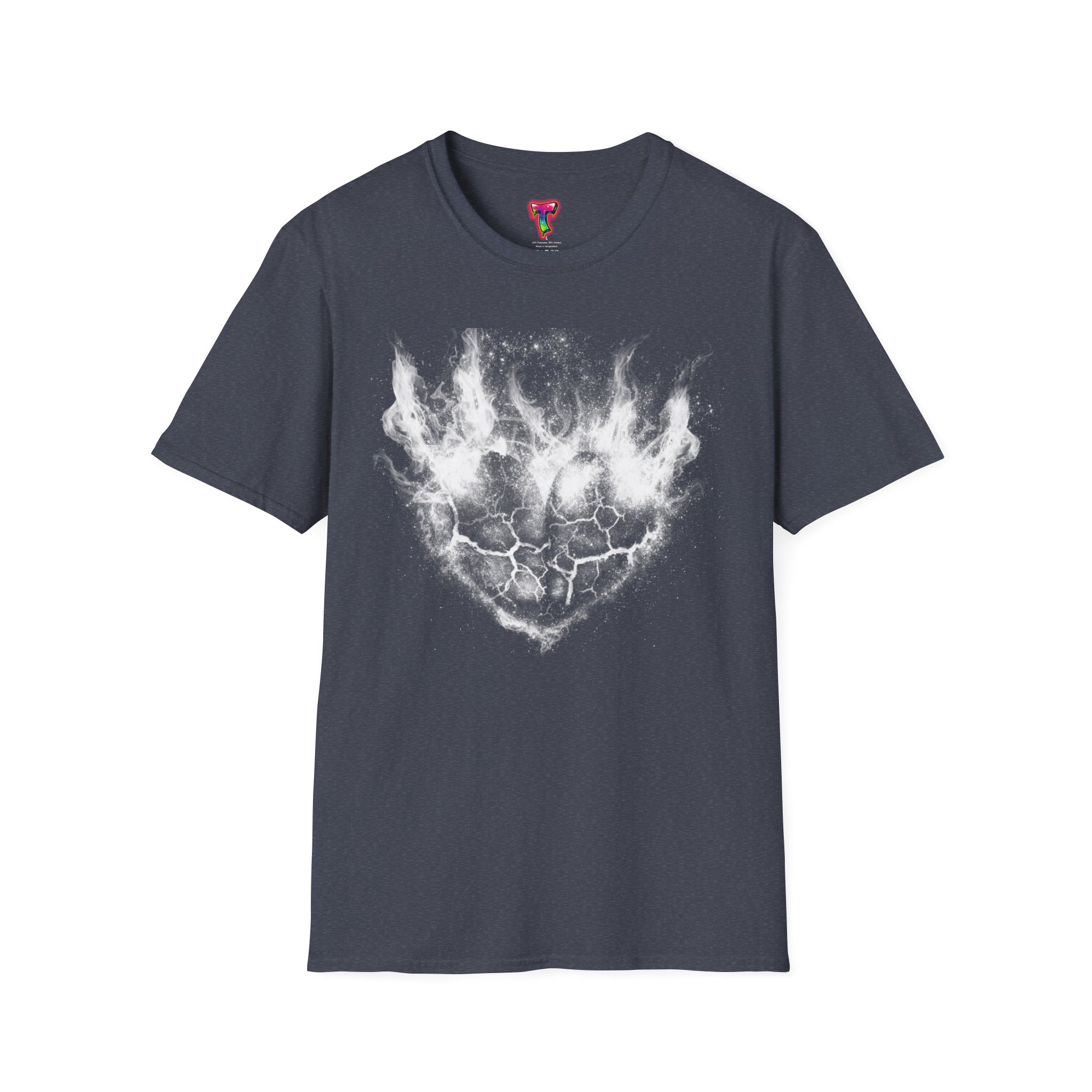 A soft, breathable tee printed with a striking, smoky heart that looks like ember-lit cracks and drifting ash. The black tee gives the white, textured heart art dramatic contrast — at once raw and quietly intense. Wear it when you want an understated statement: it layers easily under a jacket, pairs with worn jeans, and carries a moody, artistic energy for late-night shows, urban walks, or quiet coffee shop afternoons. The lightweight ring-spun cotton feels gentle against the skin while the durable print keeps the artwork crisp through repeat wears. This shirt reads like a wearable sketchbook—personal, slightly enigmatic, and built to move with you.