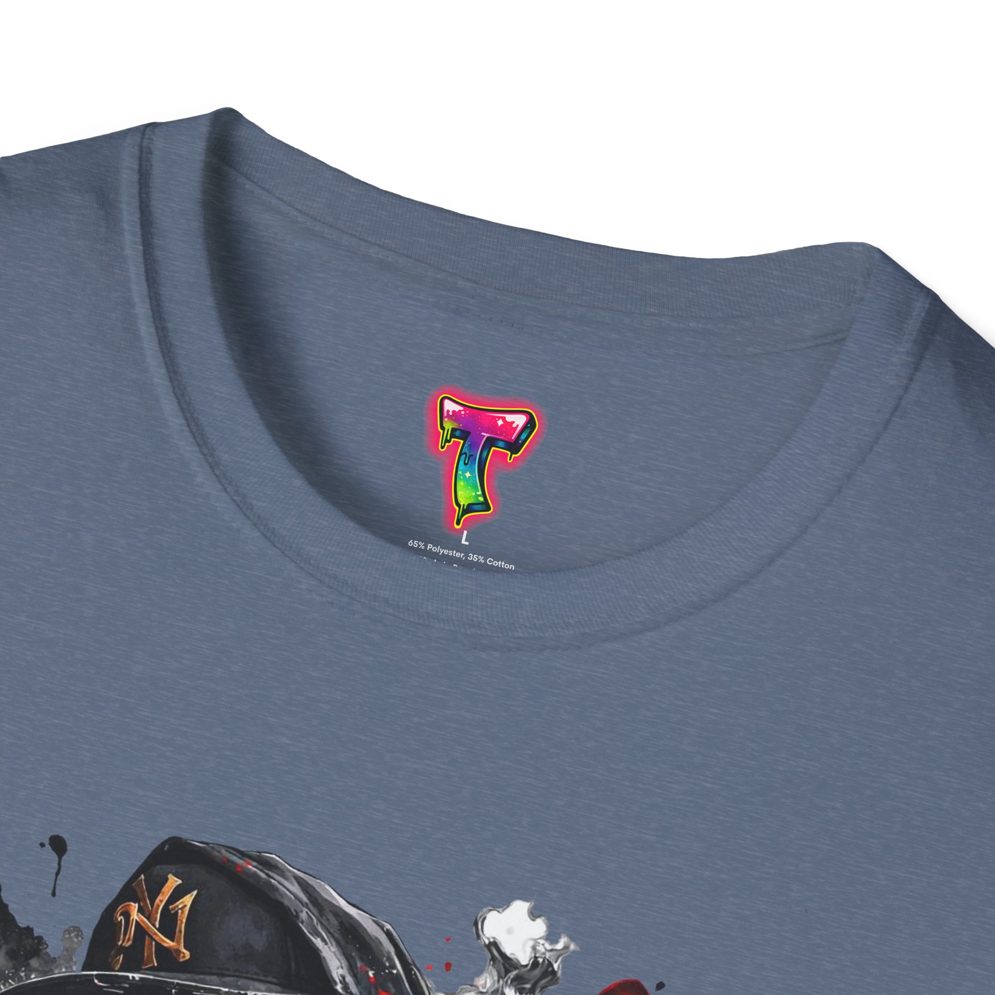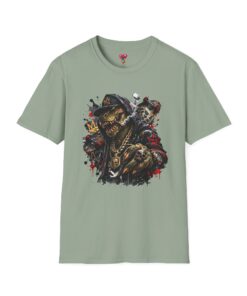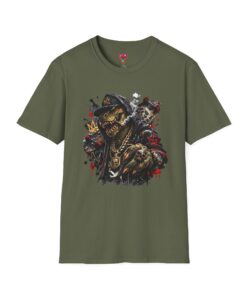 This lightweight, crew-neck tee brings grit and attitude to everyday wear. The shirt features a bold skull-and-hood graphic with distressed detailing and rich, moody tones that feel both rebellious and cinematic. Soft, ring-spun cotton sits close to the skin for comfortable all-day wear while the classic fit keeps the silhouette easy and wearable. Subtle production details — tear-away label, reinforced shoulder tape, and a ribbed collar that holds its shape — make this a durable, lived-in favorite. It slips into streetwear outfits, layered looks, or concert-ready ensembles and carries a raw, urban energy that amplifies whoever wears it.