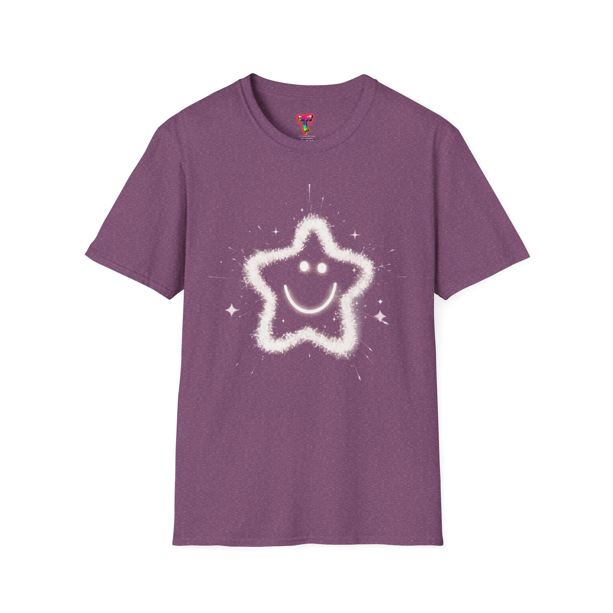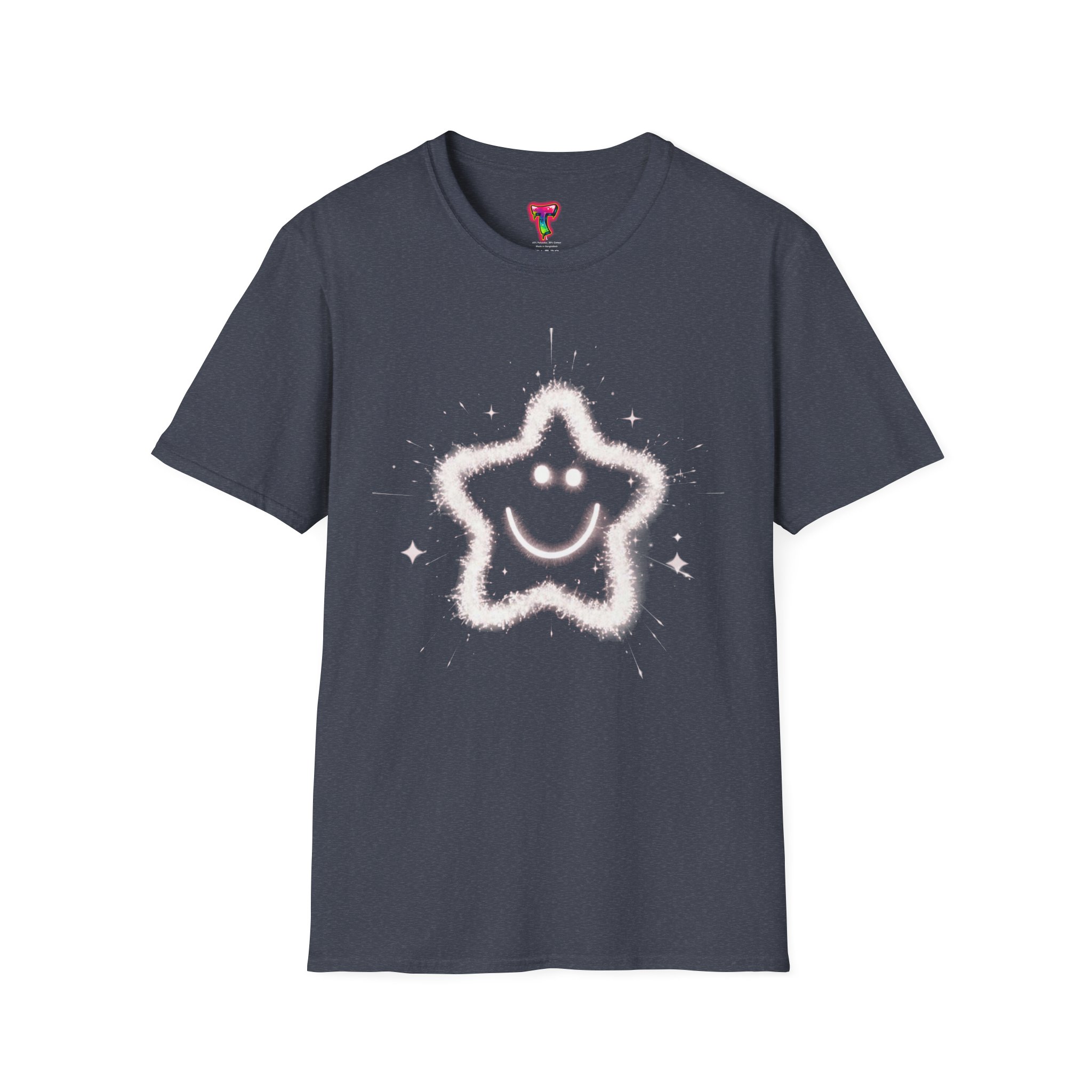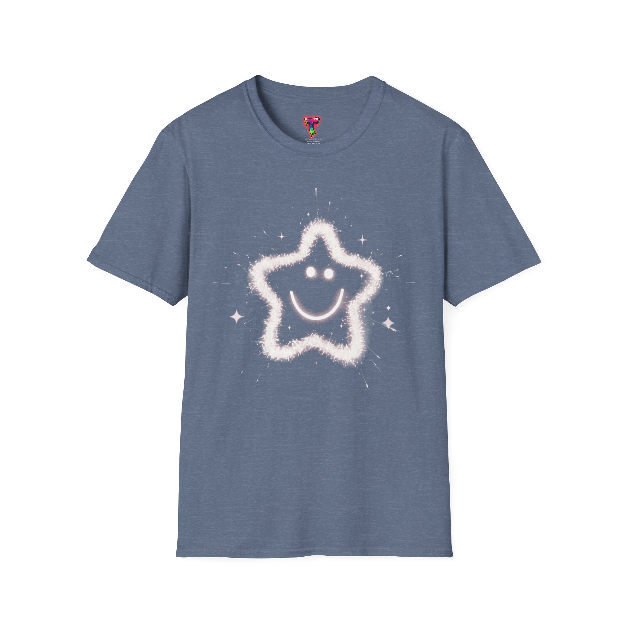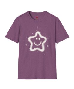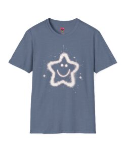 A soft, lightweight tee printed with a whimsical, sparkling star-smiley motif that feels playful and quietly joyful. The airy cotton fabric drapes gently and the crew neckline keeps the silhouette clean, so the design reads clearly whether worn layered or on its own. It’s the kind of shirt you reach for when you want a little lift in your day — simple, sweet, and just a bit magical. Built with durable ring-spun cotton and reinforced details like shoulder tape and a ribbed collar, this shirt keeps its shape and comfort wash after wash.