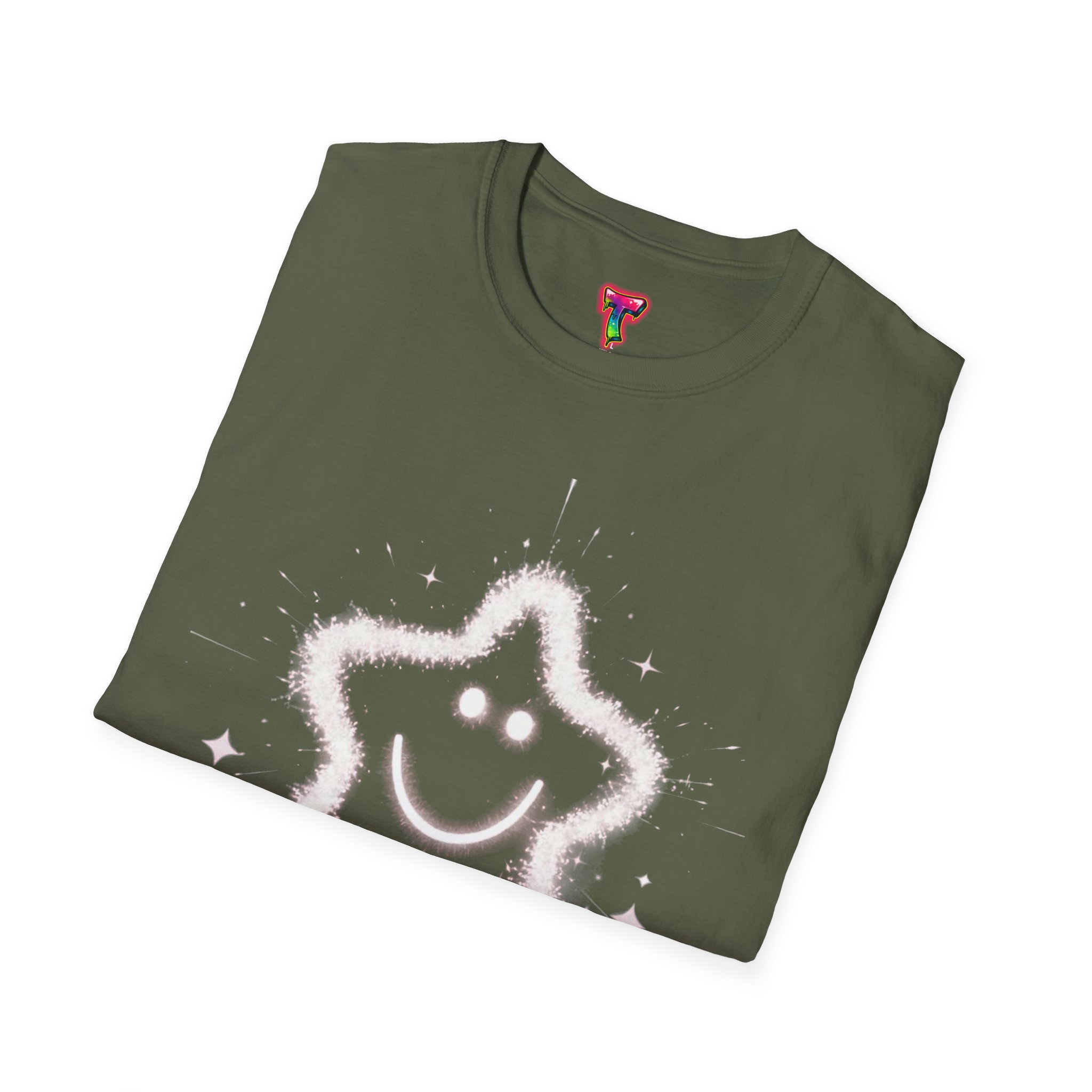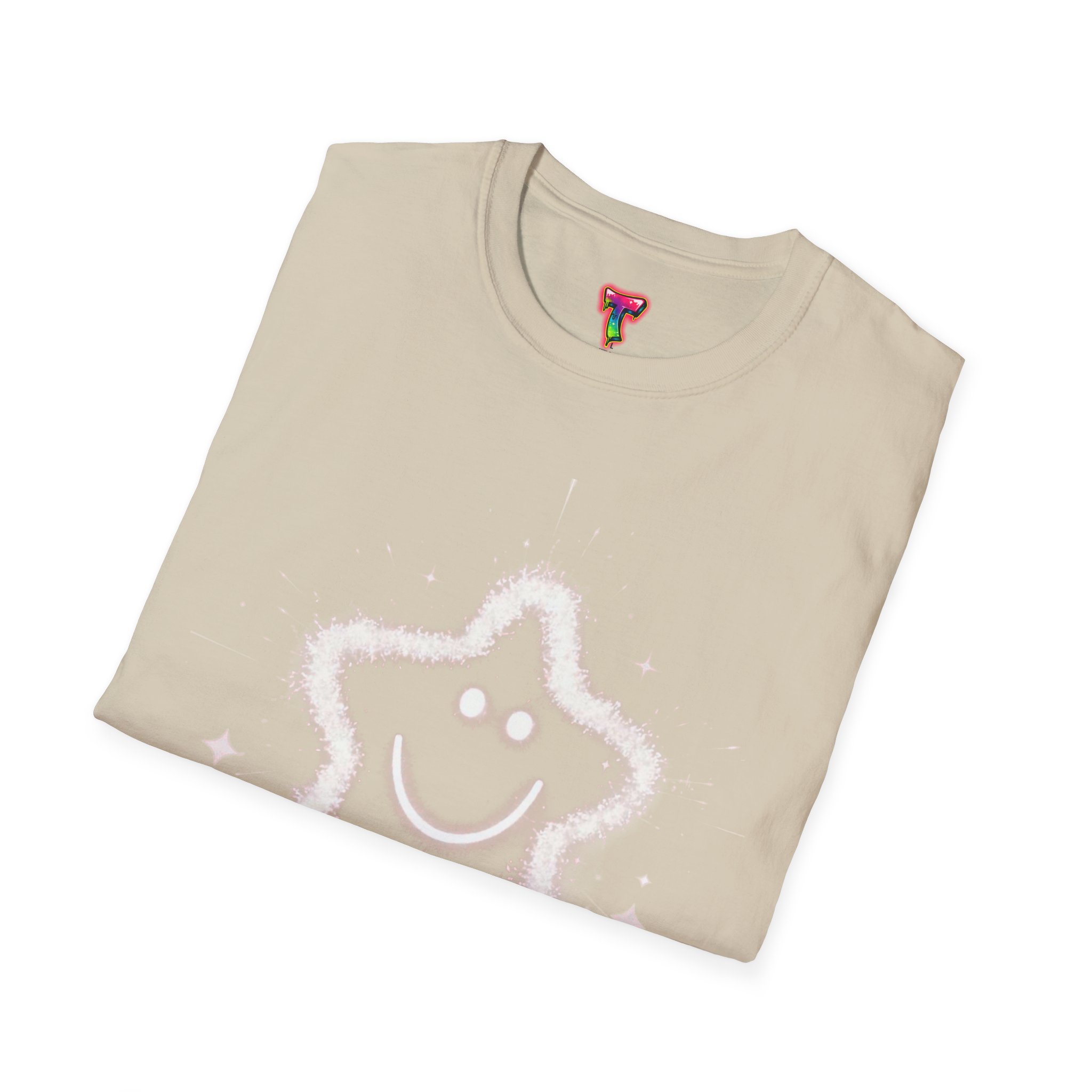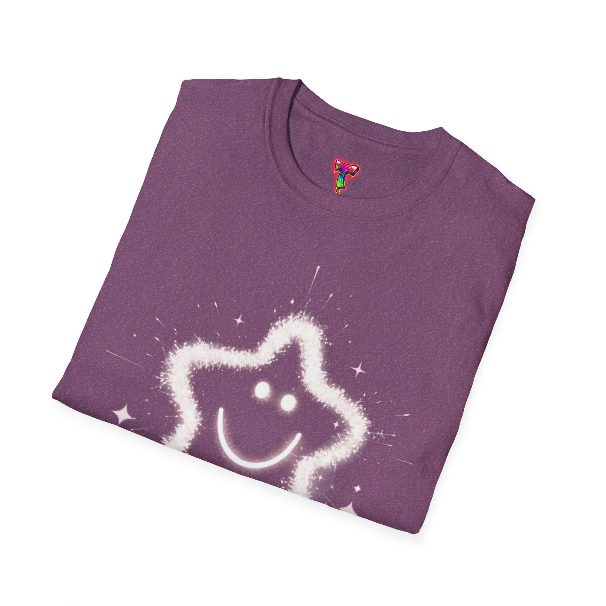 A soft, lightweight tee printed with a whimsical, sparkling star-smiley motif that feels playful and quietly joyful. The airy cotton fabric drapes gently and the crew neckline keeps the silhouette clean, so the design reads clearly whether worn layered or on its own. It’s the kind of shirt you reach for when you want a little lift in your day — simple, sweet, and just a bit magical. Built with durable ring-spun cotton and reinforced details like shoulder tape and a ribbed collar, this shirt keeps its shape and comfort wash after wash.