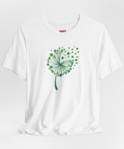 Carry a little bit of luck wherever you go with our Lucky Clover Dandelion T-Shirt. This elegant design creatively combines a dandelion clock with small, floating four-leaf clovers that seem to drift away in a gentle breeze. The word “Lucky” is beautifully handwritten in a white script font, adding a personal and hopeful touch to the artwork.