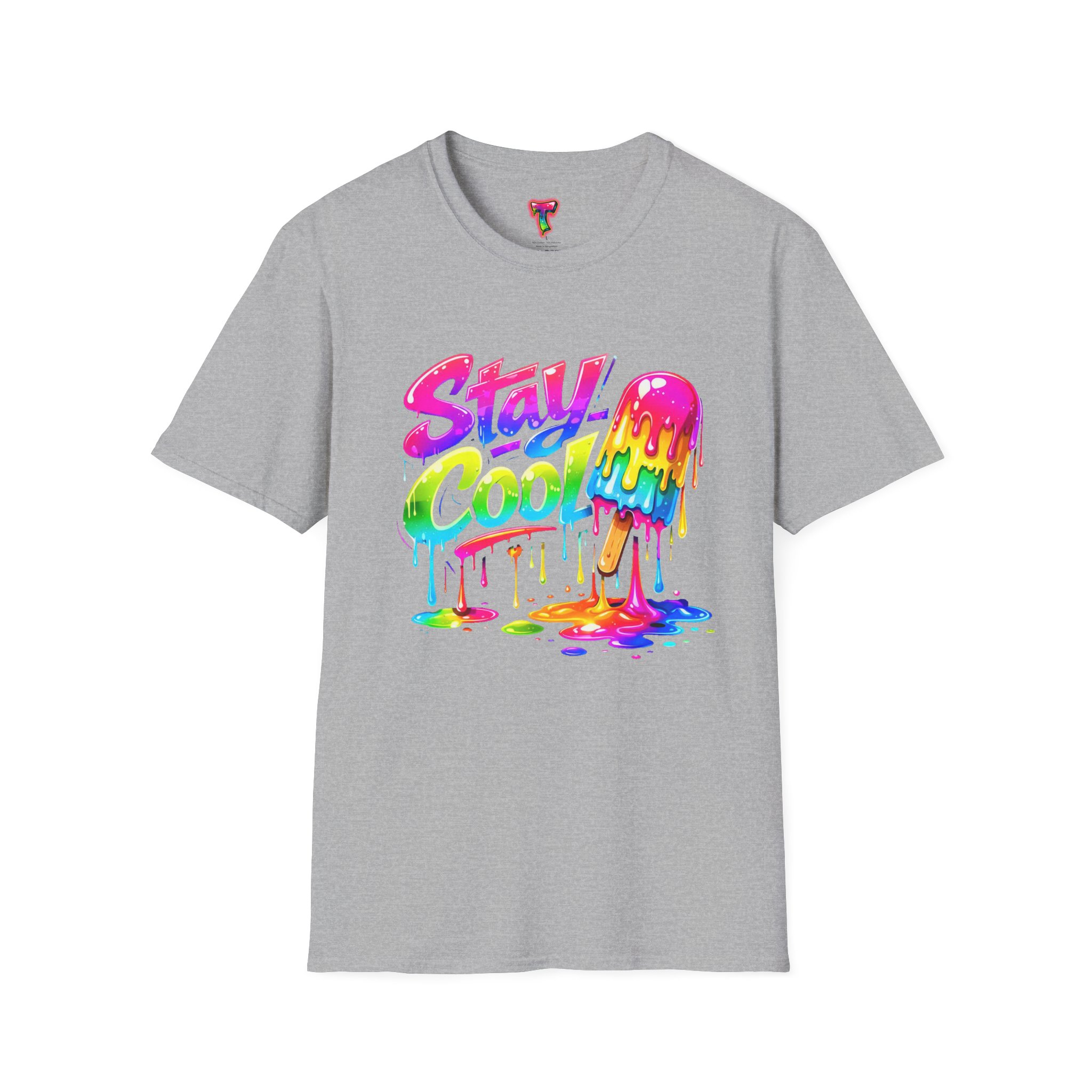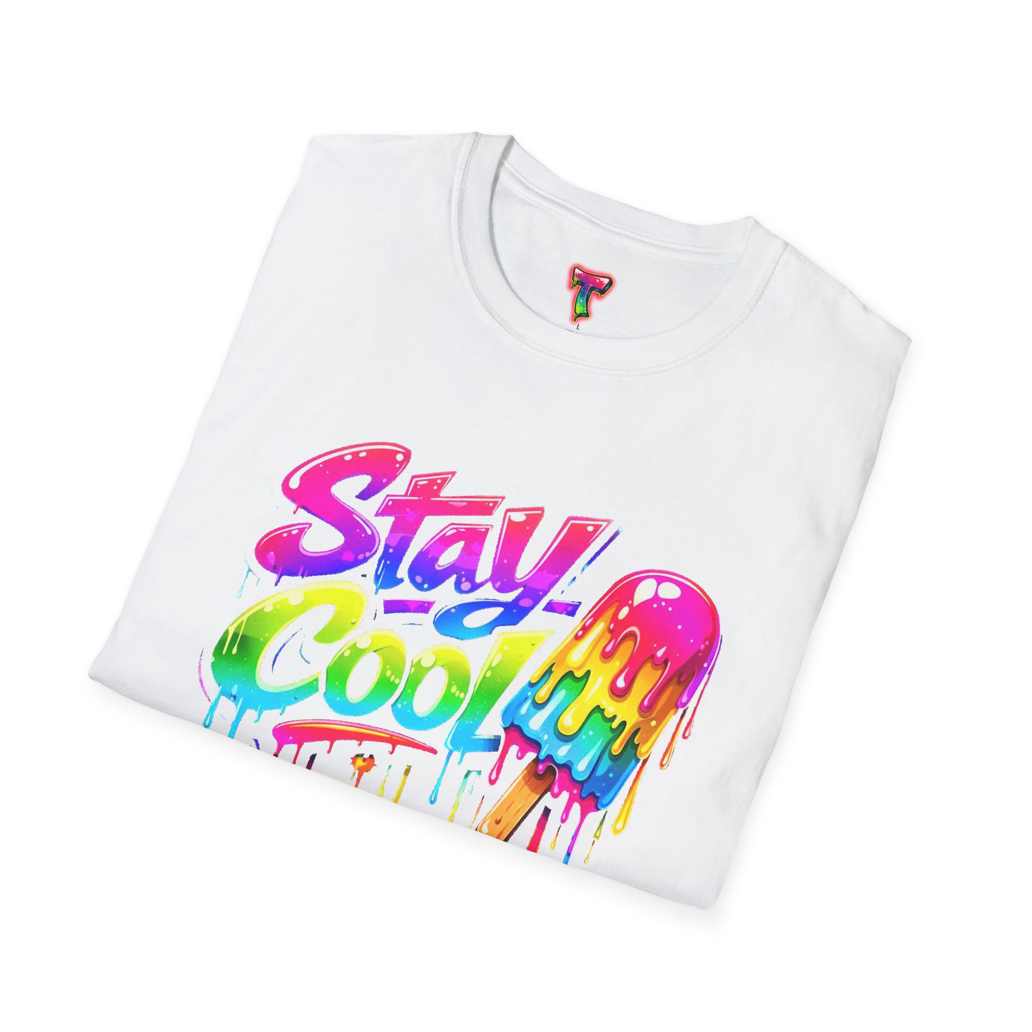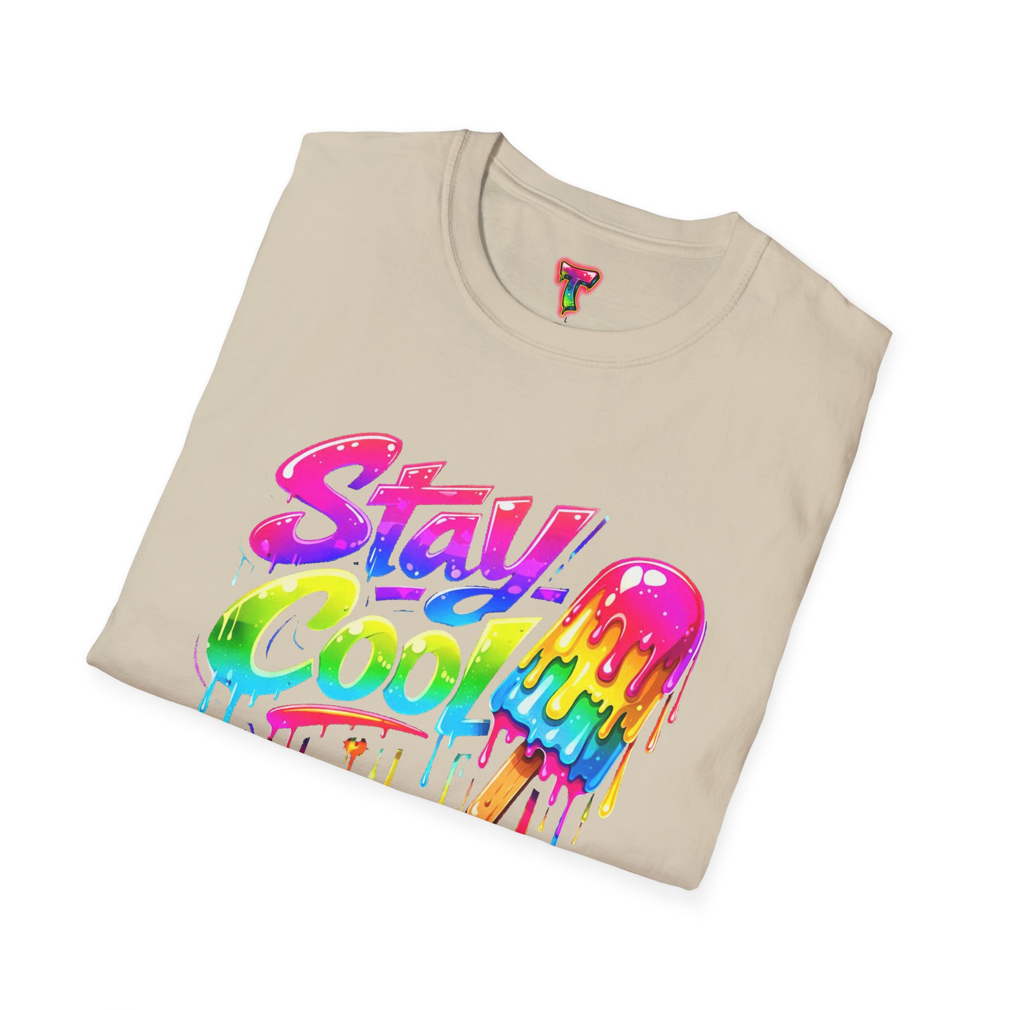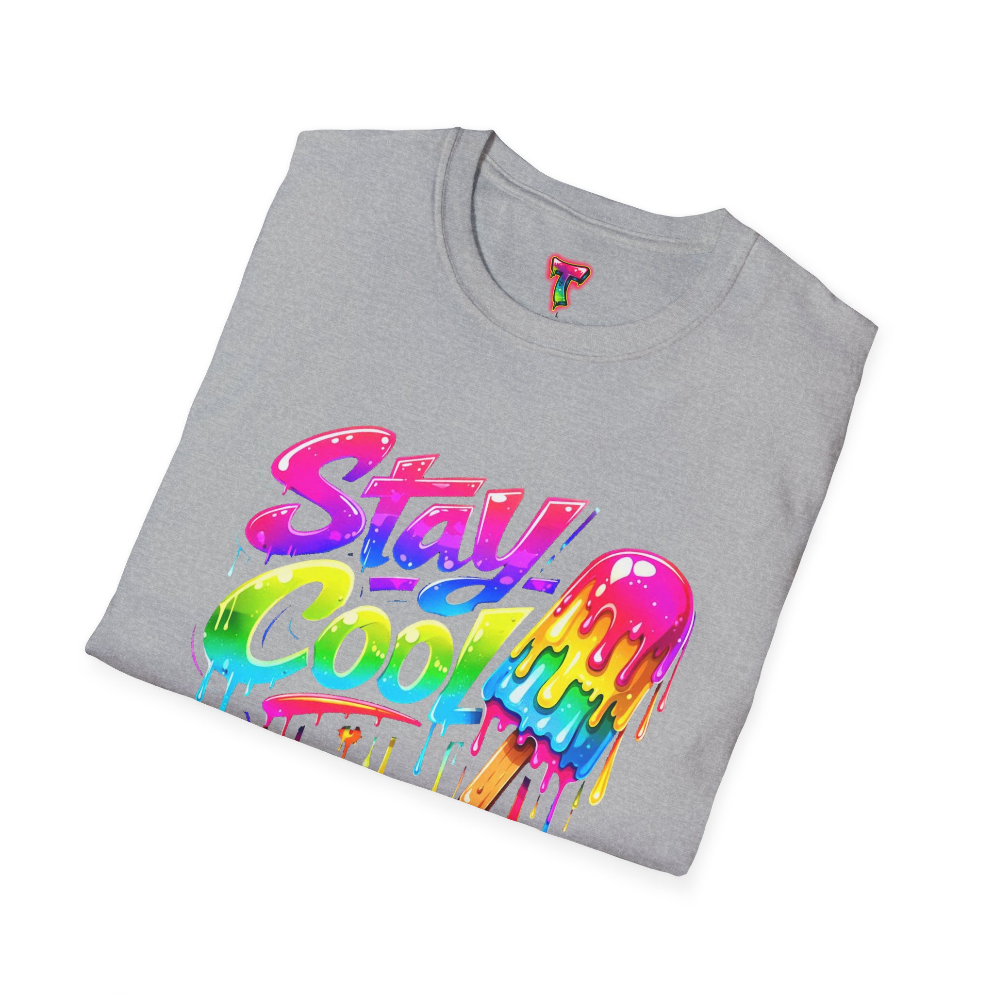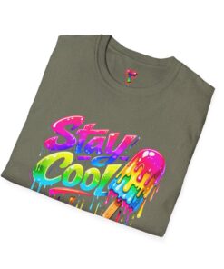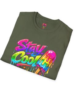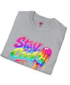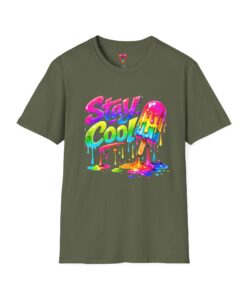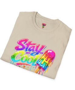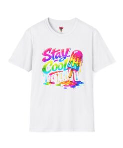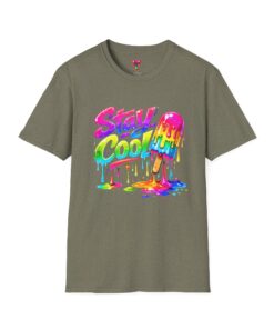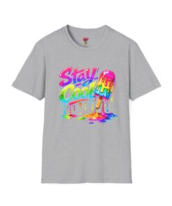 Keep your vibe fresh and colorful with this eye-catching “Stay Cool” graphic tee. Featuring bold neon-style lettering paired with a melting popsicle design, this shirt perfectly captures the fun and refreshing energy of summer. The dripping rainbow colors add a playful, modern twist that stands out in any crowd.