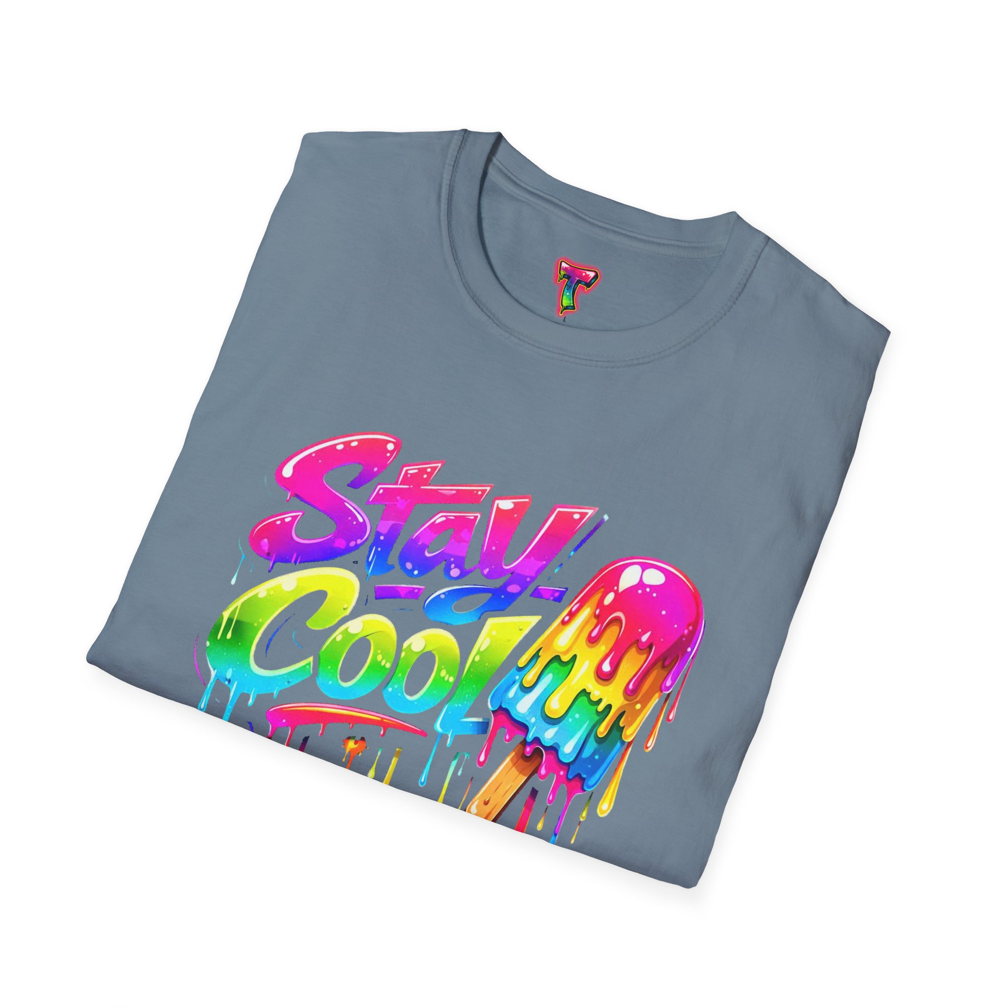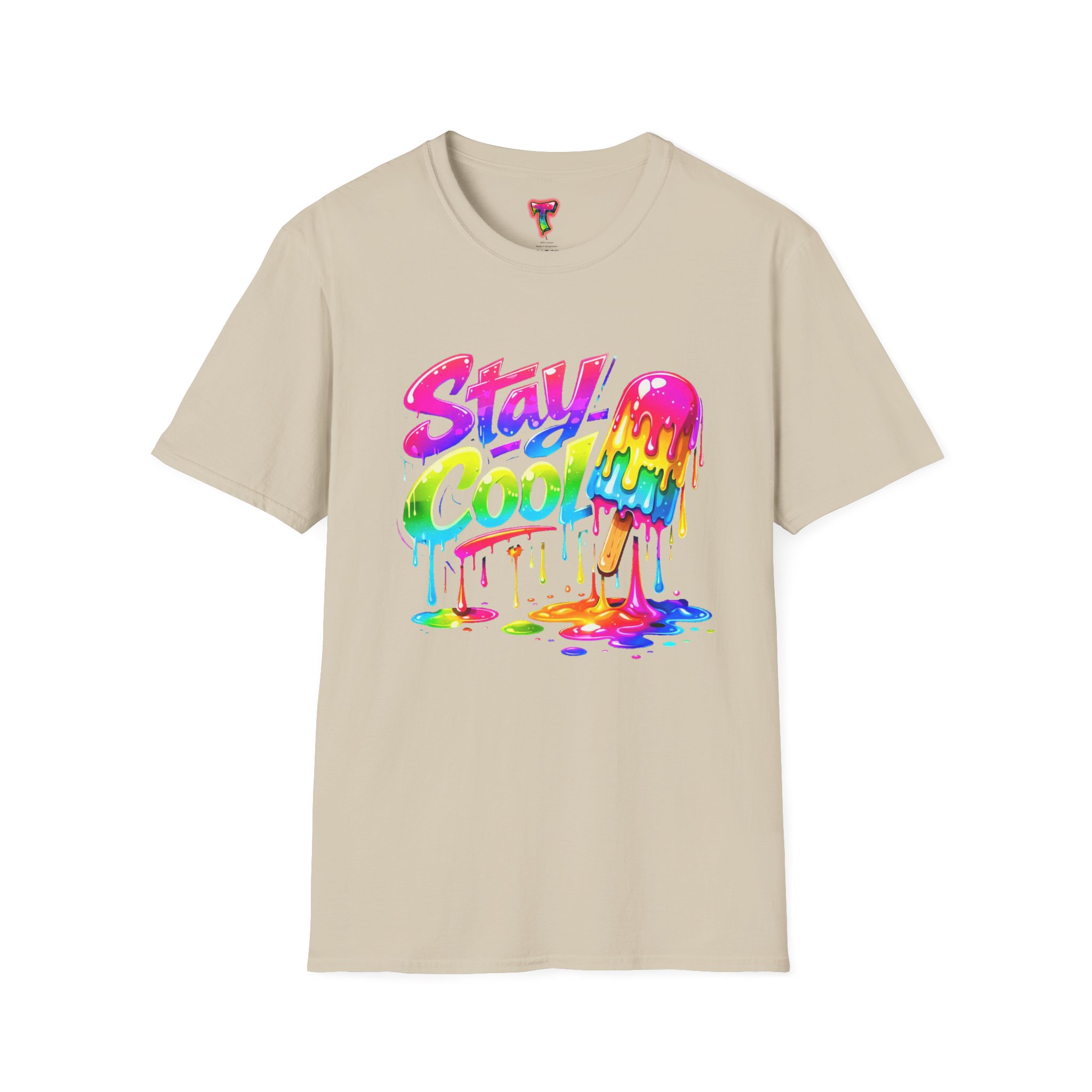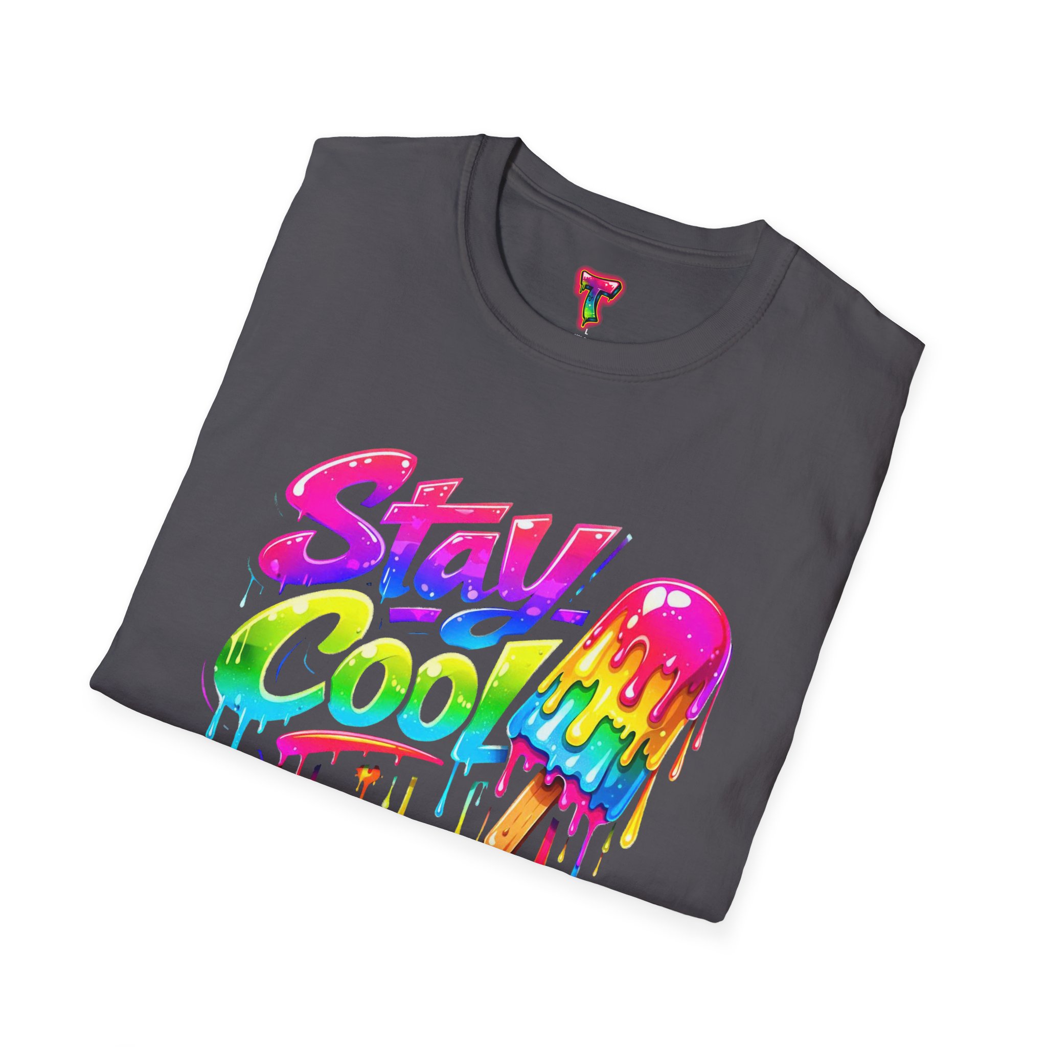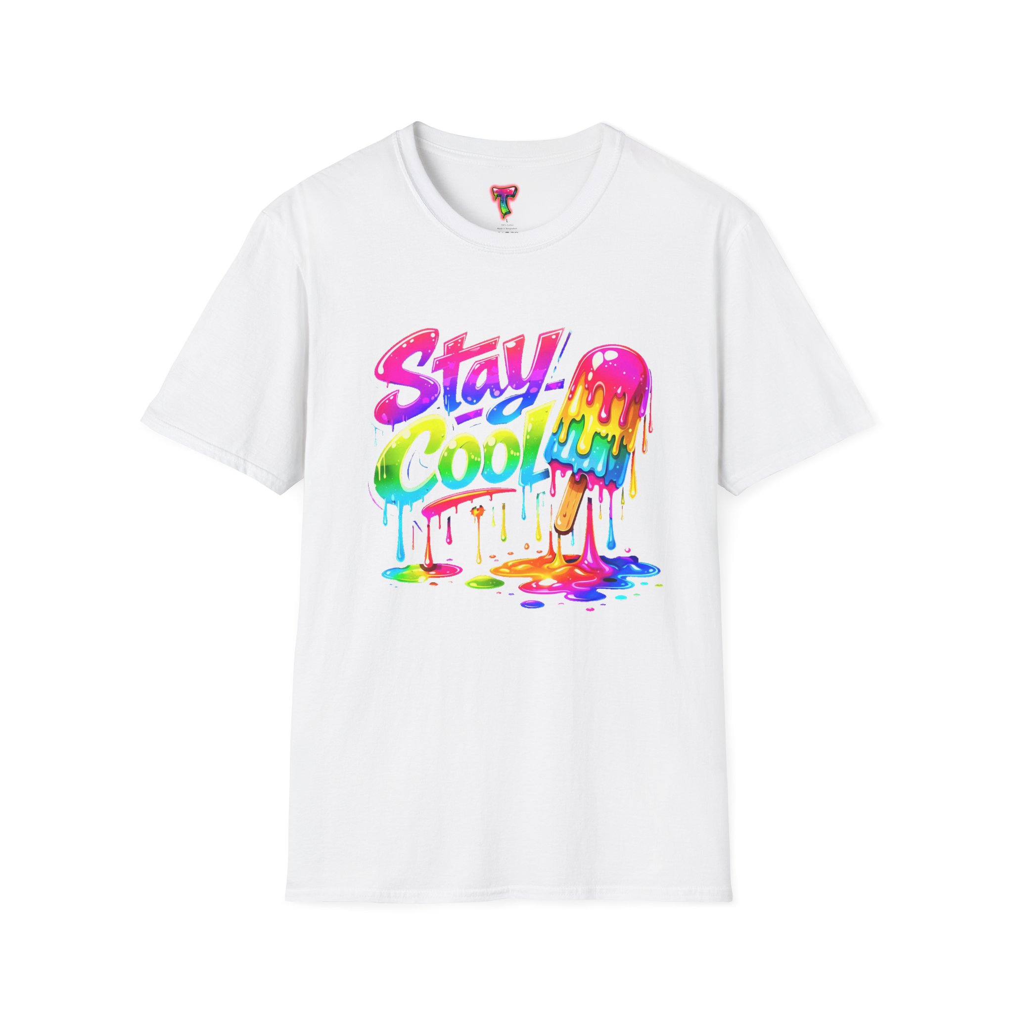Keep your vibe fresh and colorful with this eye-catching “Stay Cool” graphic tee. Featuring bold neon-style lettering paired with a melting popsicle design, this shirt perfectly captures the fun and refreshing energy of summer. The dripping rainbow colors add a playful, modern twist that stands out in any crowd.