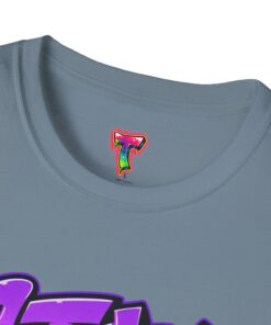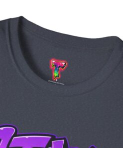 The design features clean graffiti-style typography with a smooth purple gradient and subtle drip accents, creating a modern yet edgy streetwear aesthetic. The centered composition keeps it minimal but impactful, making it easy to style while still grabbing attention.
