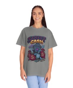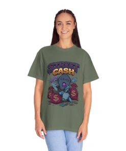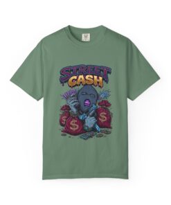 Bold money-themed streetwear design featuring a mischievous cash monster surrounded by dollar bags, graffiti typography, and urban hustle energy. This eye-catching artwork blends playful character art with success mindset vibes, making it perfect for entrepreneurs, hustlers, streetwear fans, and anyone who loves flashy graphic fashion. Great for t-shirts, hoodies, stickers, posters, tote bags, and more.