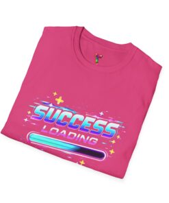 This lightweight crew tee carries a playful, retro-futuristic graphic that reads “SUCCESS LOADING” with a neon progress bar and twinkling stars. The design feels like a quick boost of confidence — the kind you wear when you’re chasing goals, grinding through deadlines, or showing up to a meetup with quiet swagger. Soft, breathable ring-spun cotton and a clean classic fit make it easy to layer under a jacket or wear solo while you run errands, coach a side hustle, or celebrate small wins. The subtle natural fleck option and pearlized tear-away label keep comfort and authenticity front and center.