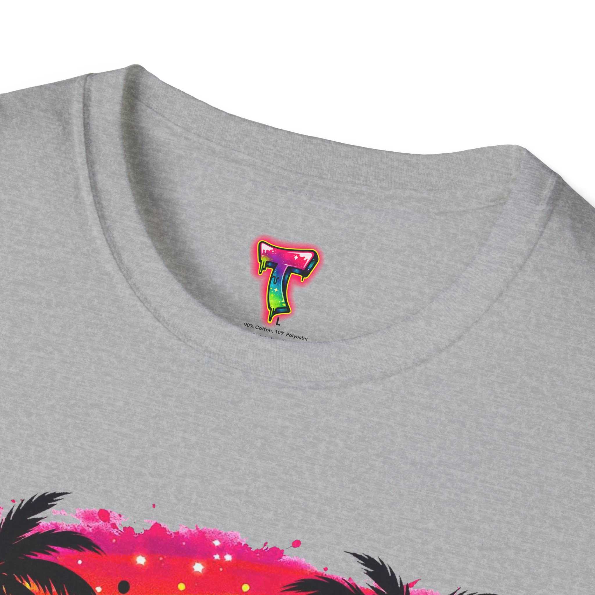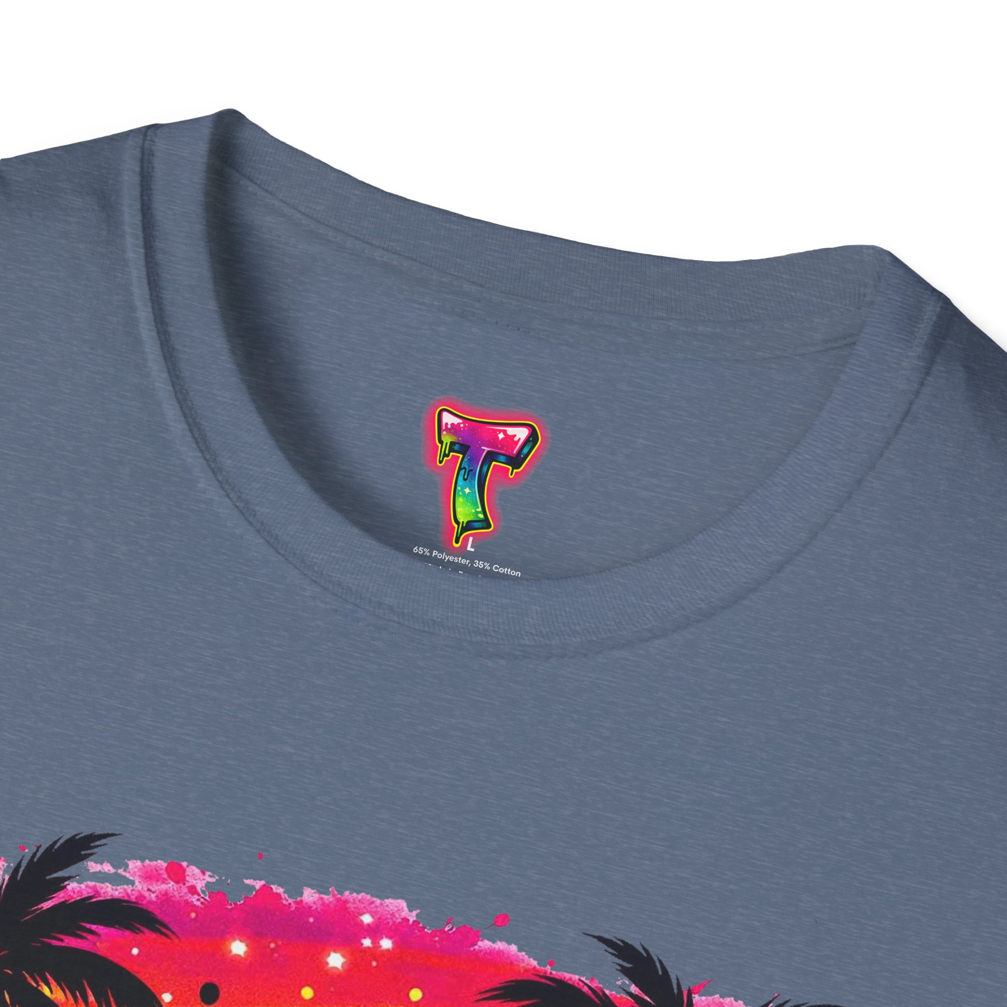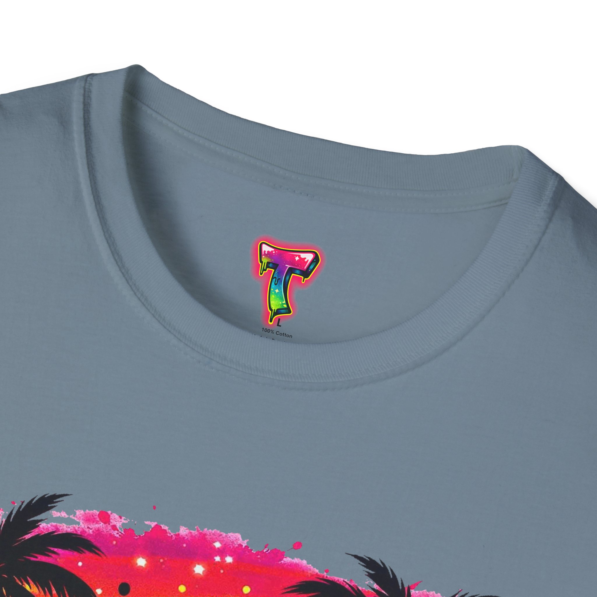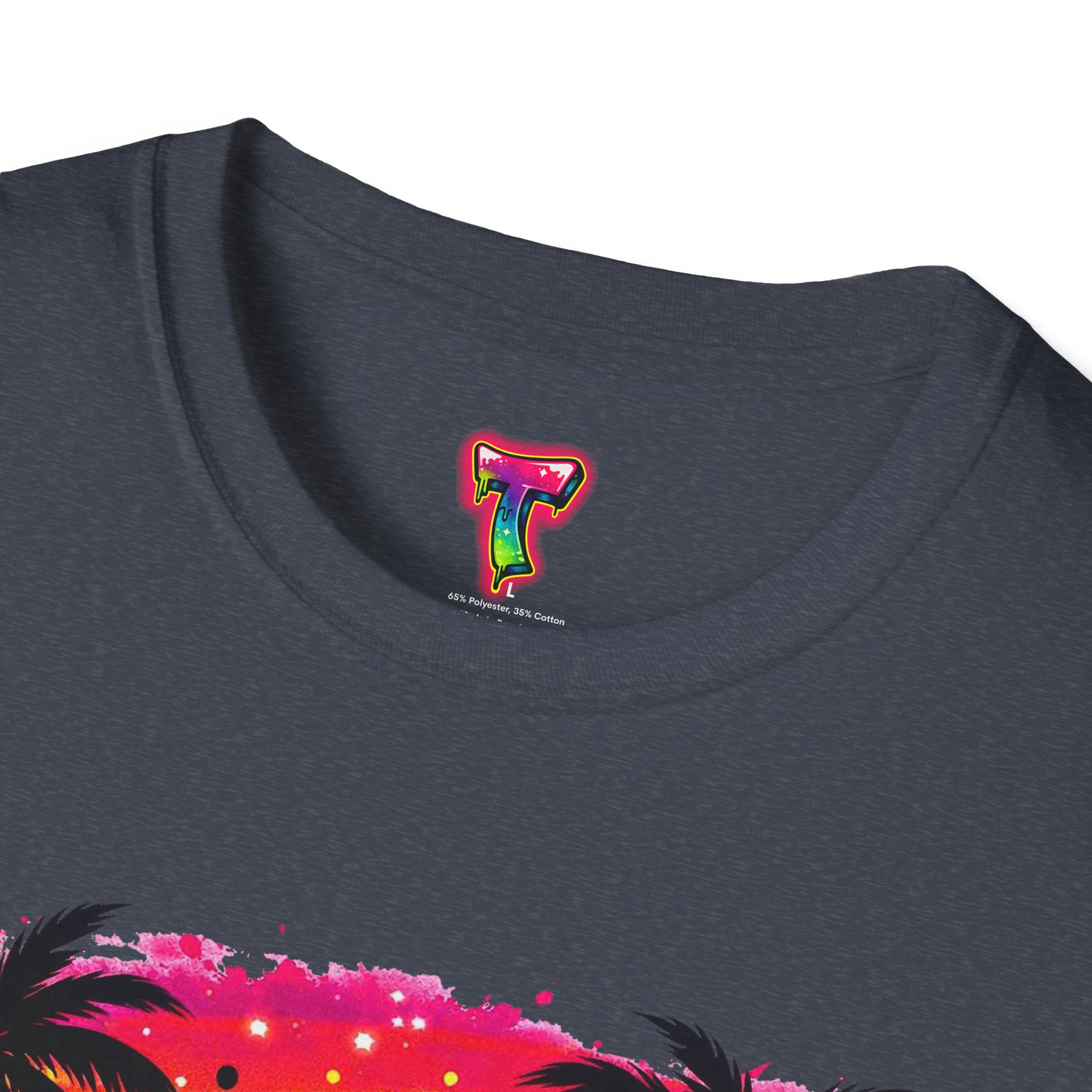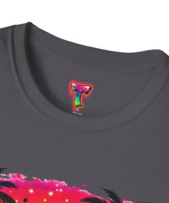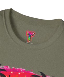 This lightweight cotton tee brings a sun-soaked, retro surf vibe to everyday wear. Bright tropical colors and energetic lettering sit over crashing waves and silhouetted palms—like a postcard from a perfect beach evening. Wear it to channel weekend freedom: boardwalk strolls, bonfire nights, or lazy afternoons by the water. The soft, breathable fabric drapes comfortably and the clean crew neckline keeps the look classic so the graphic stays the focus. It’s the kind of shirt that nudges you toward sand between your toes and a sunset on the horizon.
