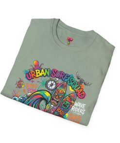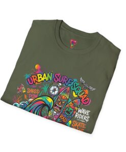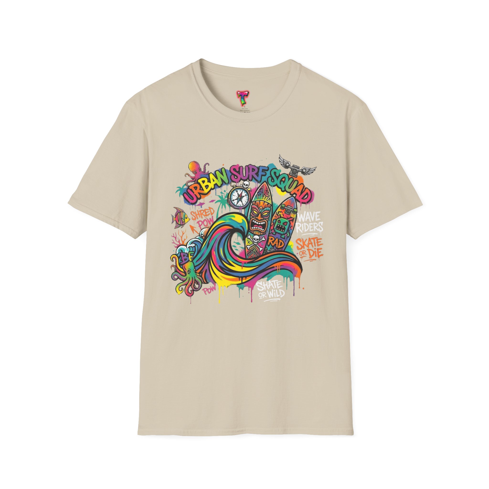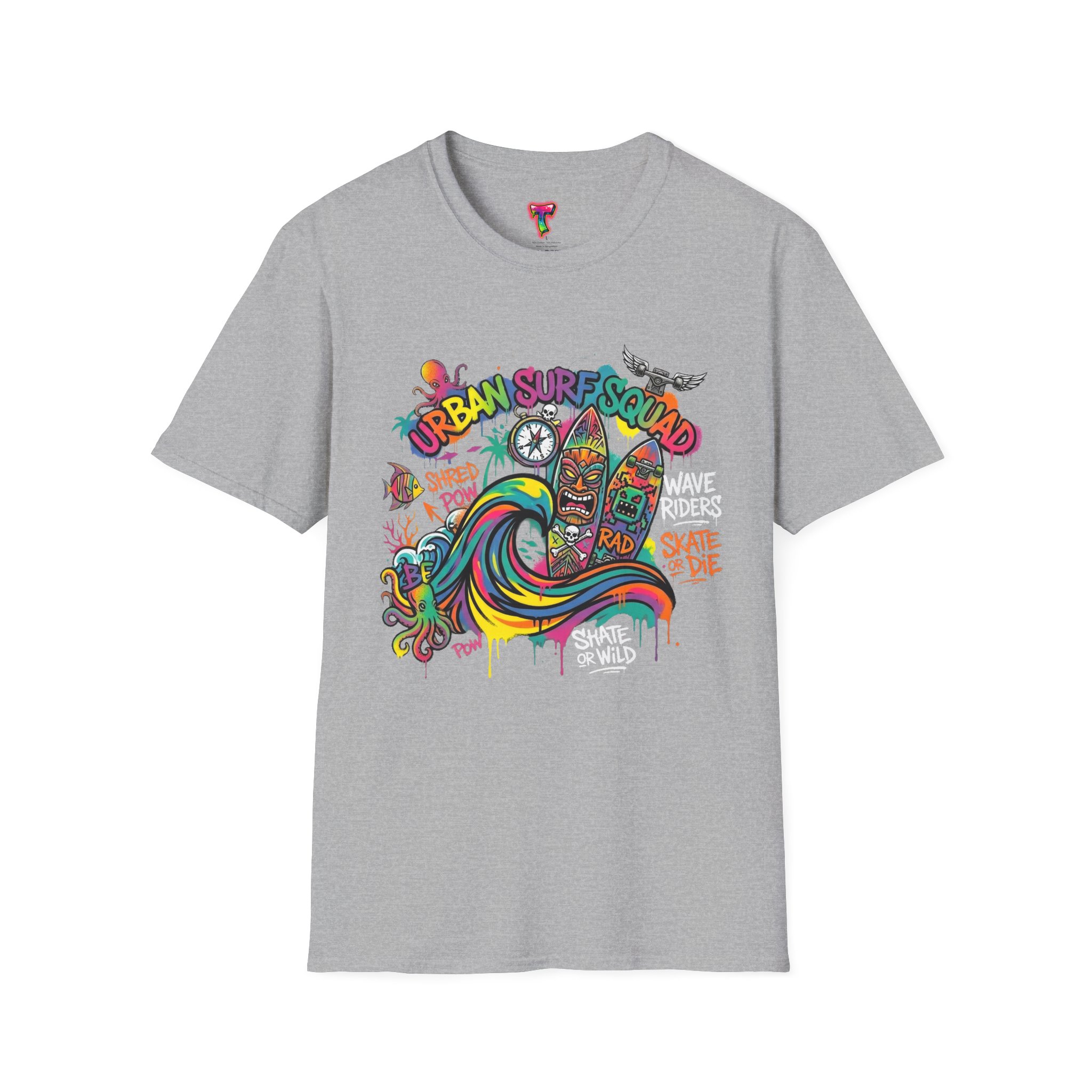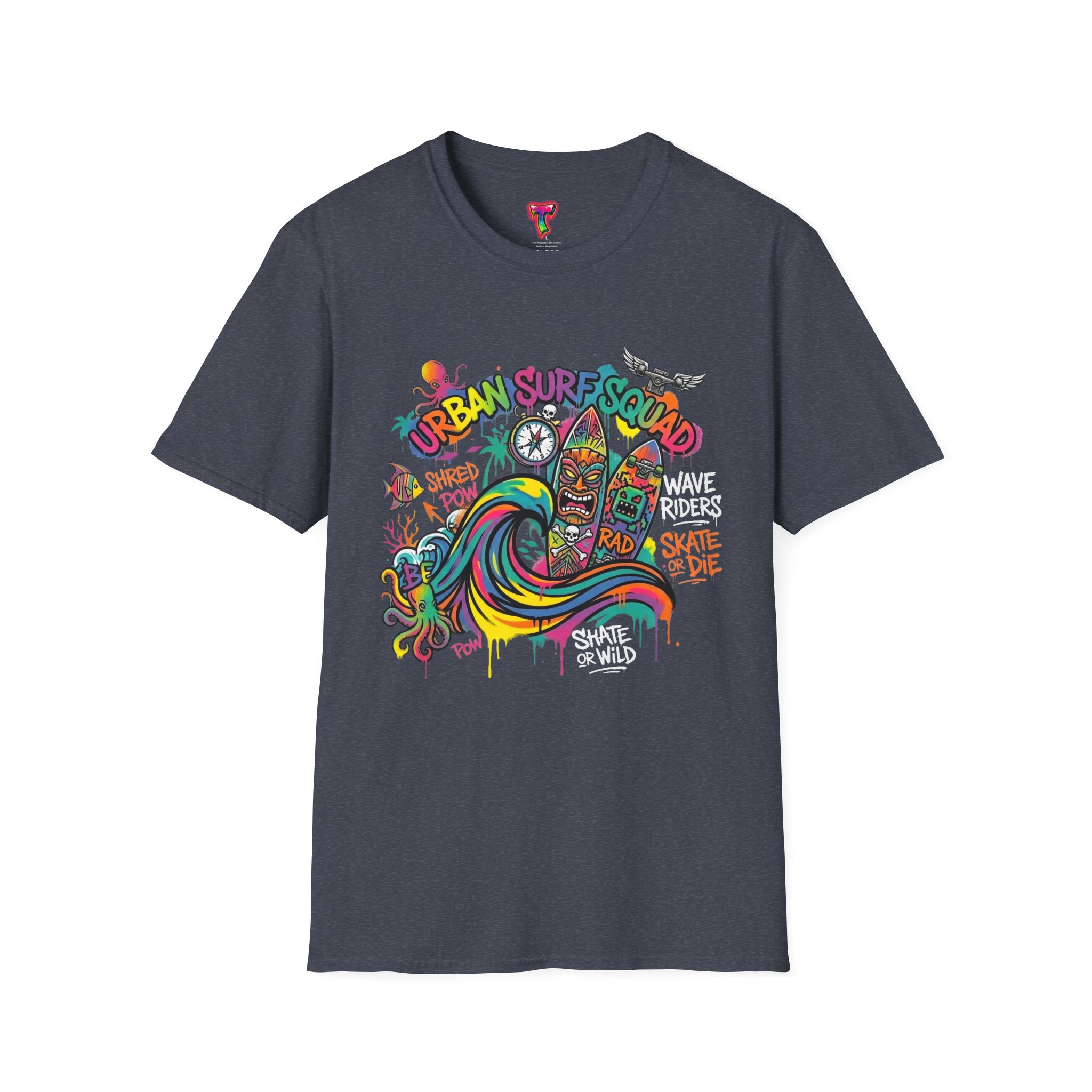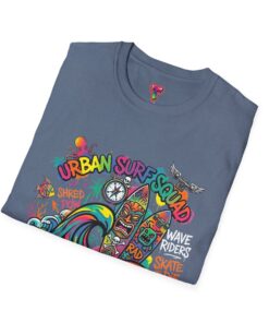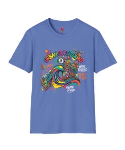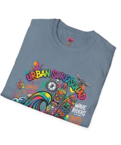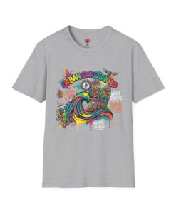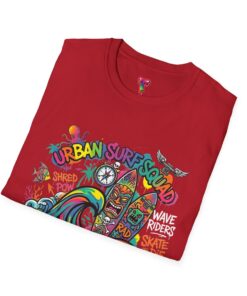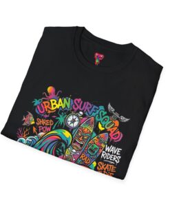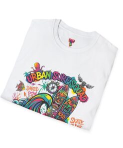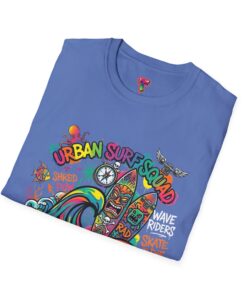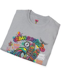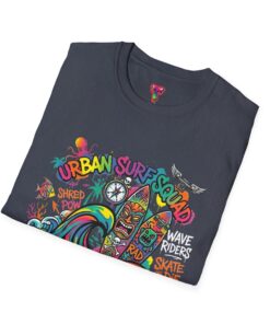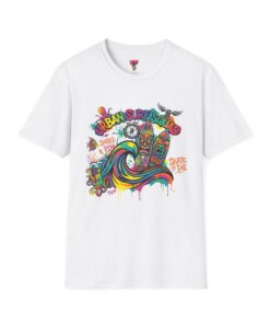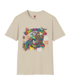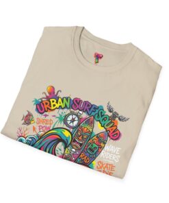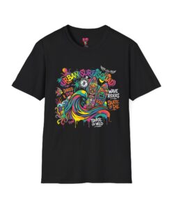This lightweight cotton tee carries a sun-soaked skate-surf spirit in every stitch. Bright, hand-drawn artwork—colorful waves, twin longboards and graffiti accents—sits at the center chest, bringing streetwise aloha to everyday wear. The crew neck and classic cut keep the silhouette clean so the art can do the talking. Wear it to the boardwalk, a session at the skatepark, or when you want a casual, lively layer that feels broken-in from the first wear. Breathable, soft ring-spun cotton and tear-away label mean comfort without distraction. Let this shirt be the canvas for active days, salty air, and neighborhood hangouts.