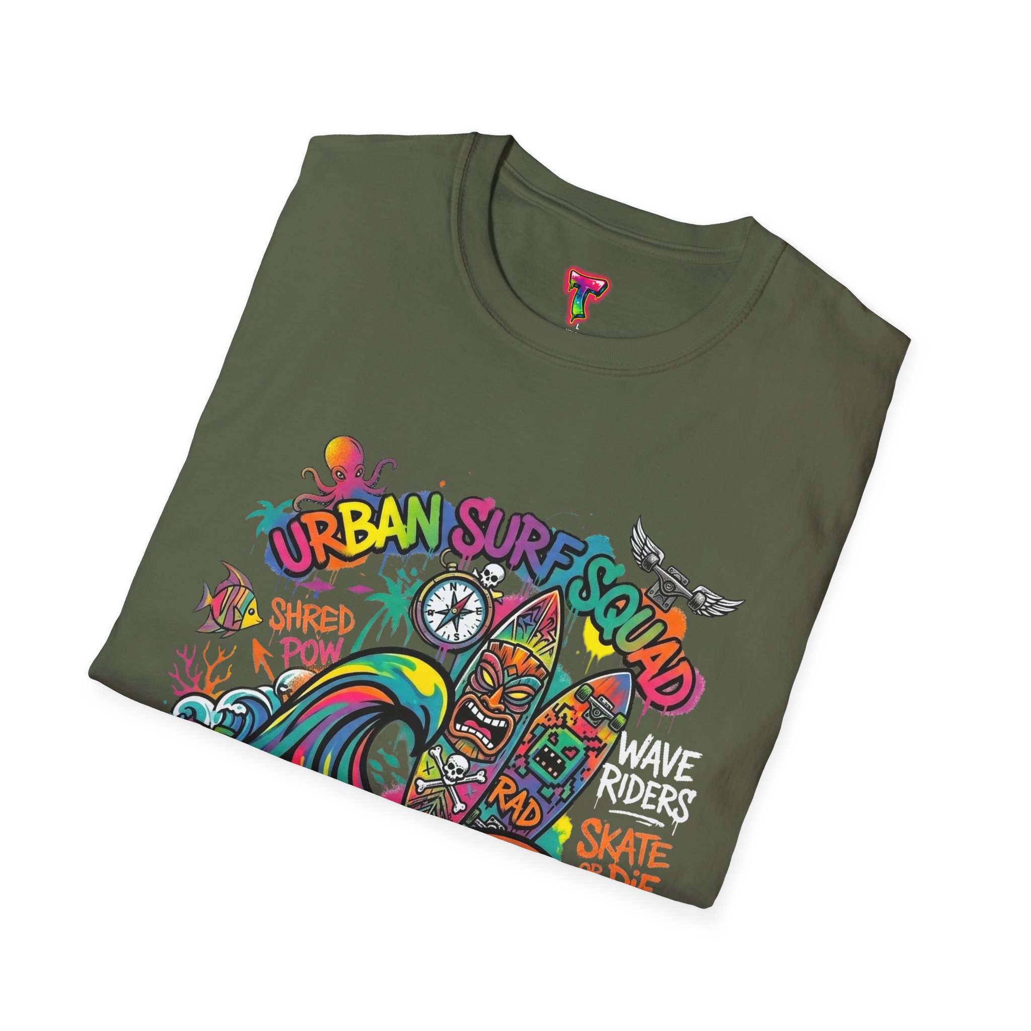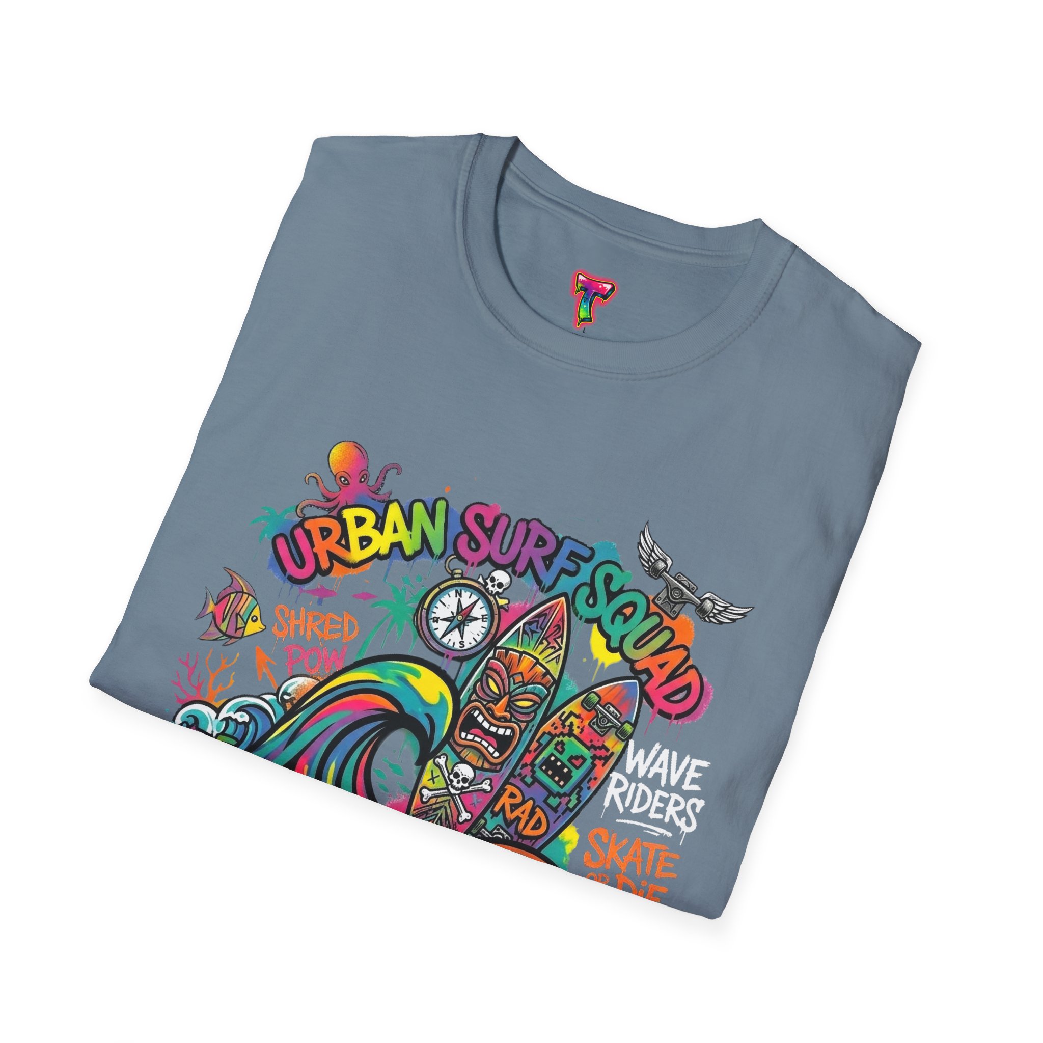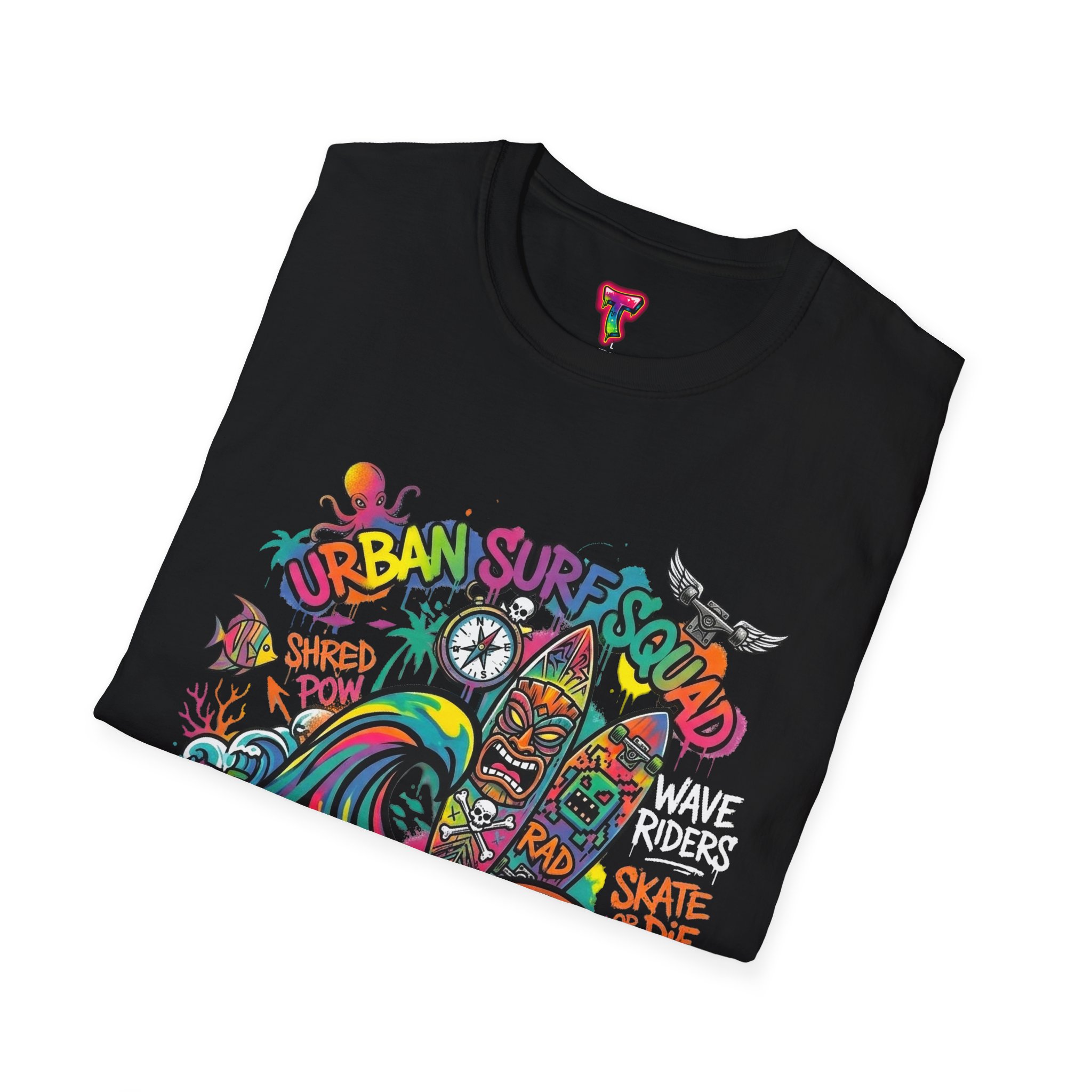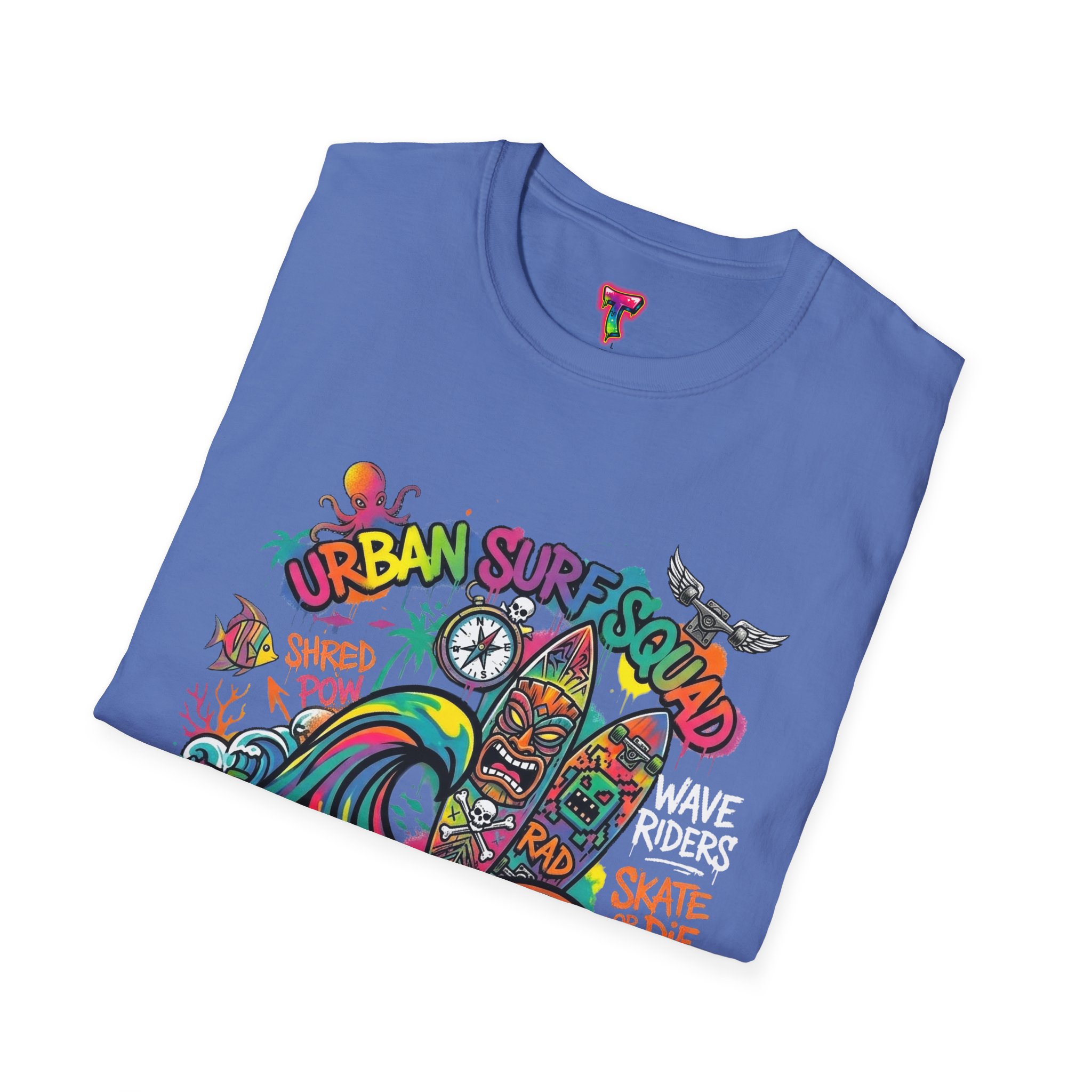 This lightweight cotton tee carries a sun-soaked skate-surf spirit in every stitch. Bright, hand-drawn artwork—colorful waves, twin longboards and graffiti accents—sits at the center chest, bringing streetwise aloha to everyday wear. The crew neck and classic cut keep the silhouette clean so the art can do the talking. Wear it to the boardwalk, a session at the skatepark, or when you want a casual, lively layer that feels broken-in from the first wear. Breathable, soft ring-spun cotton and tear-away label mean comfort without distraction. Let this shirt be the canvas for active days, salty air, and neighborhood hangouts.