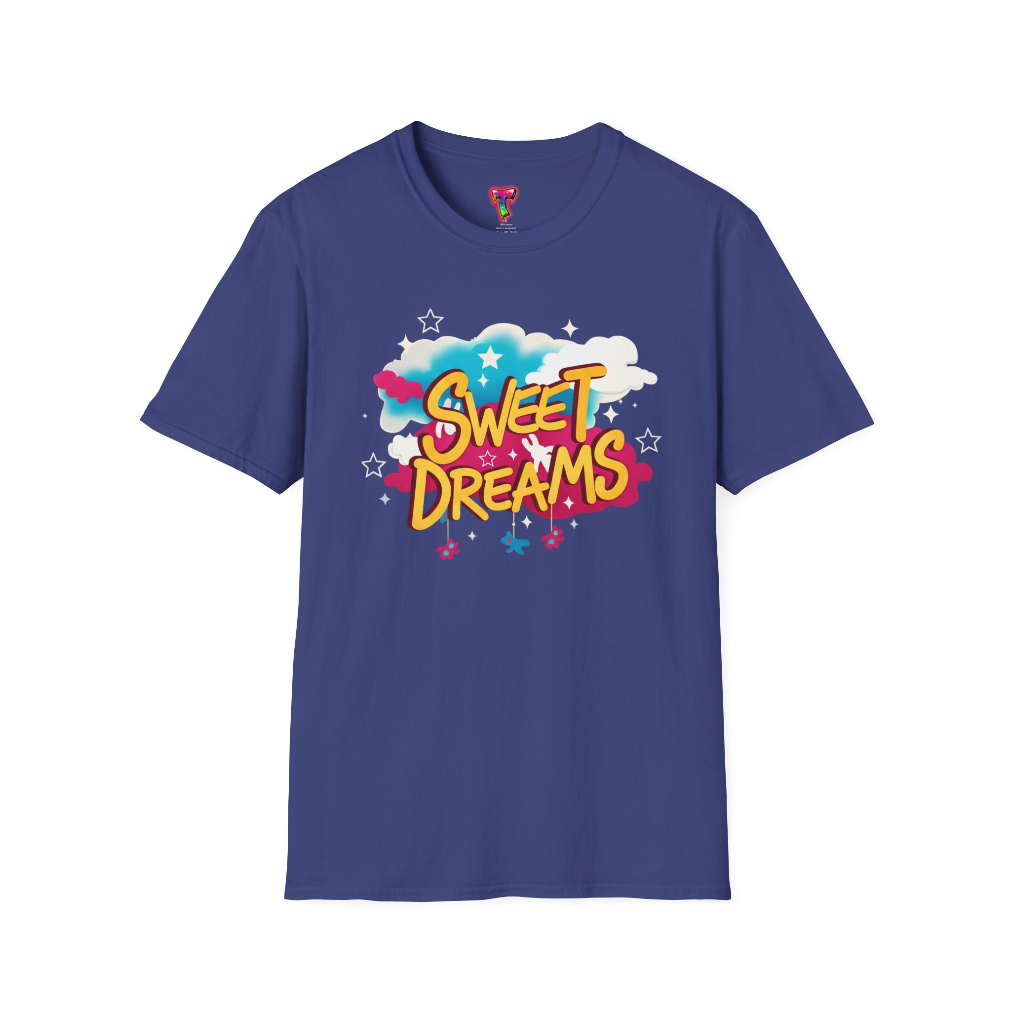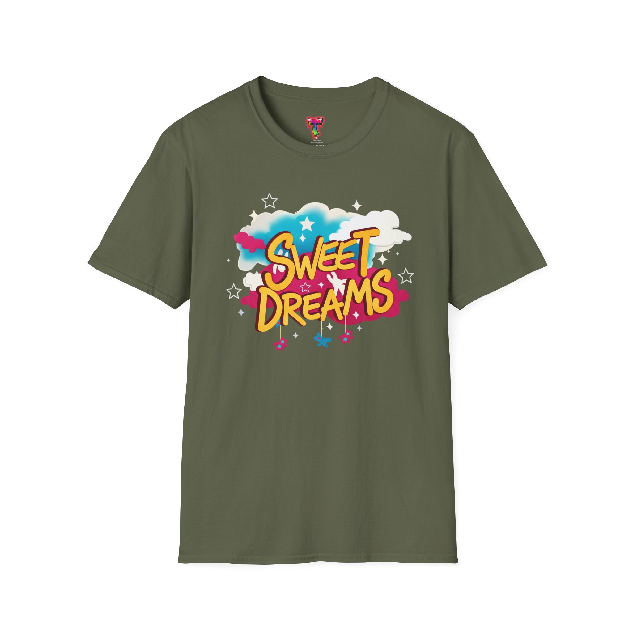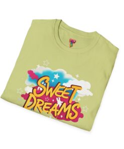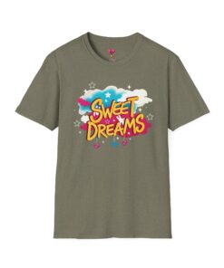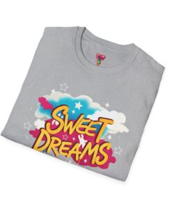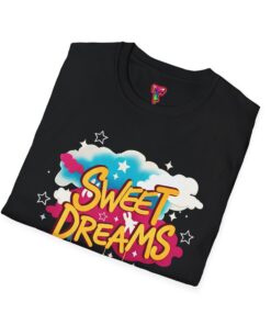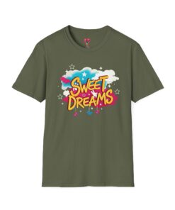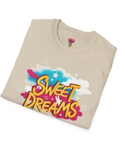 Wrapped in a soft, lightweight cotton that feels like a familiar hug, this tee carries a playful ‘Sweet Dreams’ street-art graphic that pops with candy-bright colors and cloud motifs. It’s built for everyday wear — breathable, smooth, and durable — so the cheerful print keeps its vibrancy wash after wash. Wear it on slow mornings, casual meetups, or cozy evening strolls to add a wink of nostalgia and a carefree mood to your outfit. The crew neckline and classic fit keep the silhouette simple, letting the bold, dreamy artwork speak for itself.