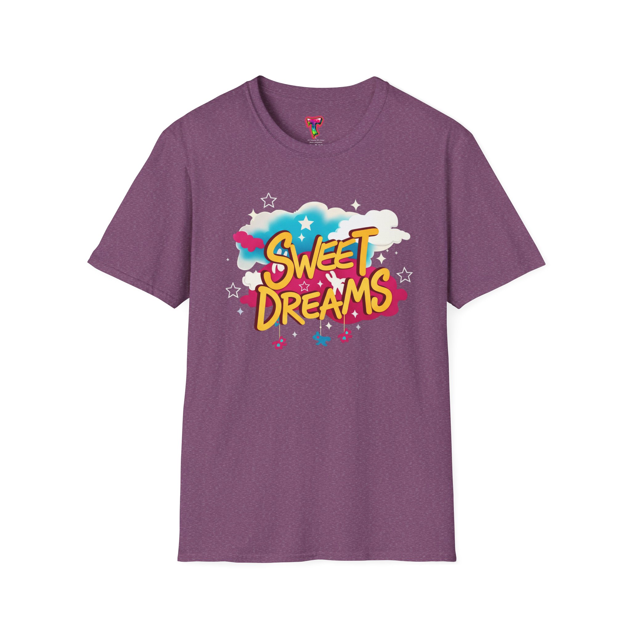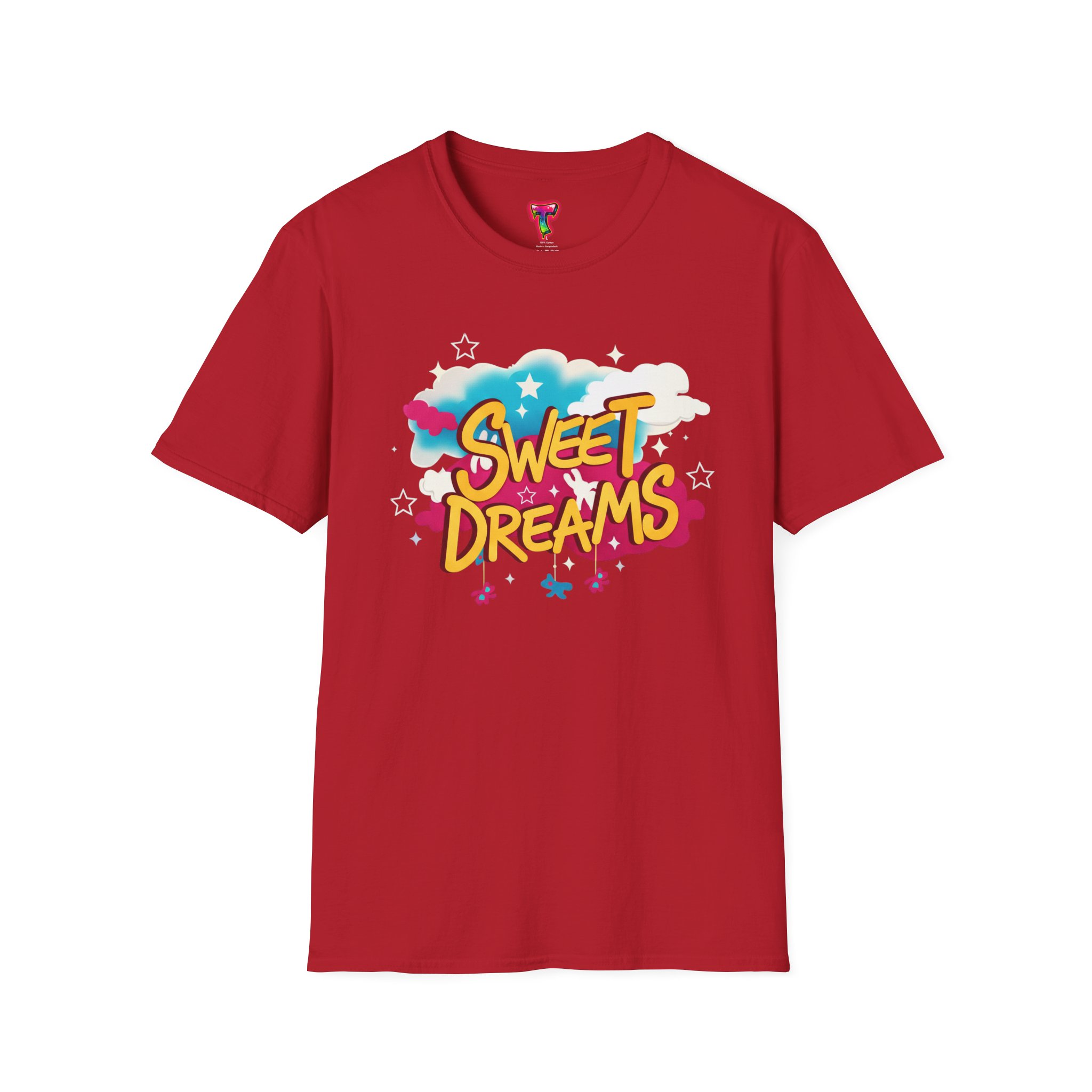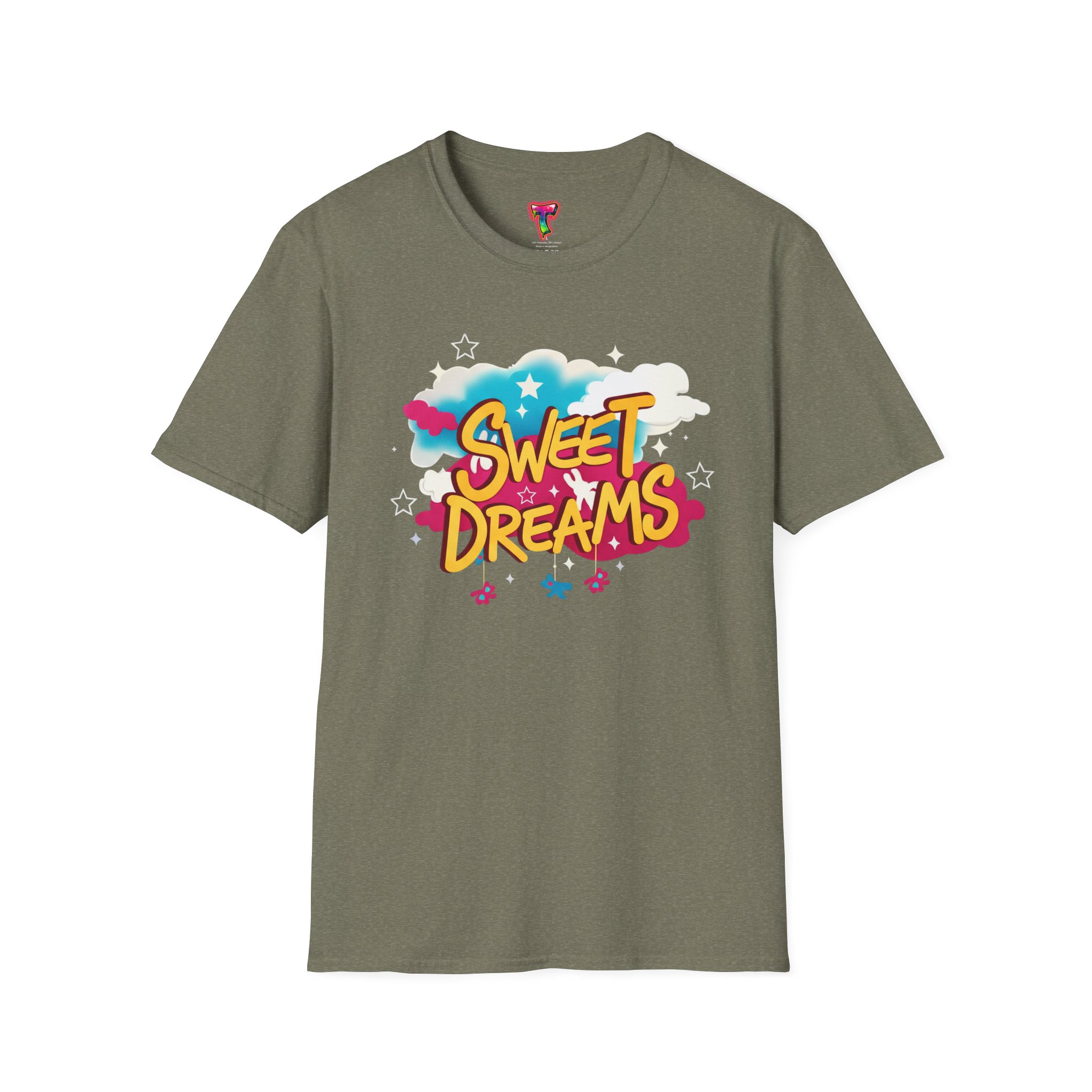 Wrapped in a soft, lightweight cotton that feels like a familiar hug, this tee carries a playful ‘Sweet Dreams’ street-art graphic that pops with candy-bright colors and cloud motifs. It’s built for everyday wear — breathable, smooth, and durable — so the cheerful print keeps its vibrancy wash after wash. Wear it on slow mornings, casual meetups, or cozy evening strolls to add a wink of nostalgia and a carefree mood to your outfit. The crew neckline and classic fit keep the silhouette simple, letting the bold, dreamy artwork speak for itself.