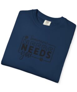 A soft, garment-dyed tee that speaks quietly but clearly: a simple front graphic reads “Tomorrow needs you,” hand-lettered with little floral accents. The heavyweight cotton drapes with a relaxed fit, broken-in texture, and lived-in color from post-construction dyeing. Wear it on slow mornings, volunteer days, or when you need a gentle reminder to show up. It pairs with worn denim, a tote full of books, or layered under a flannel for cooler evenings. Durable double-needle stitching and a tubular knit keep the silhouette clean while the pre-shrunk, ring-spun cotton stays comfortable wash after wash.