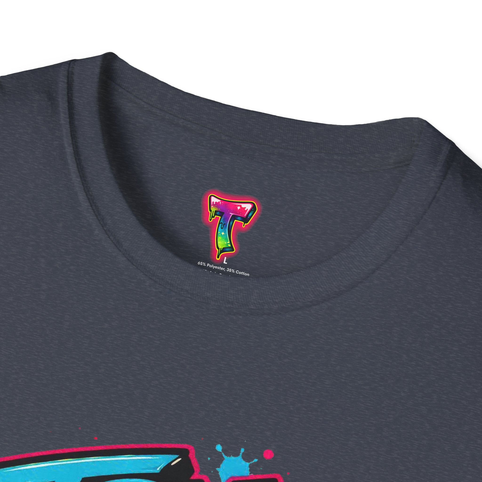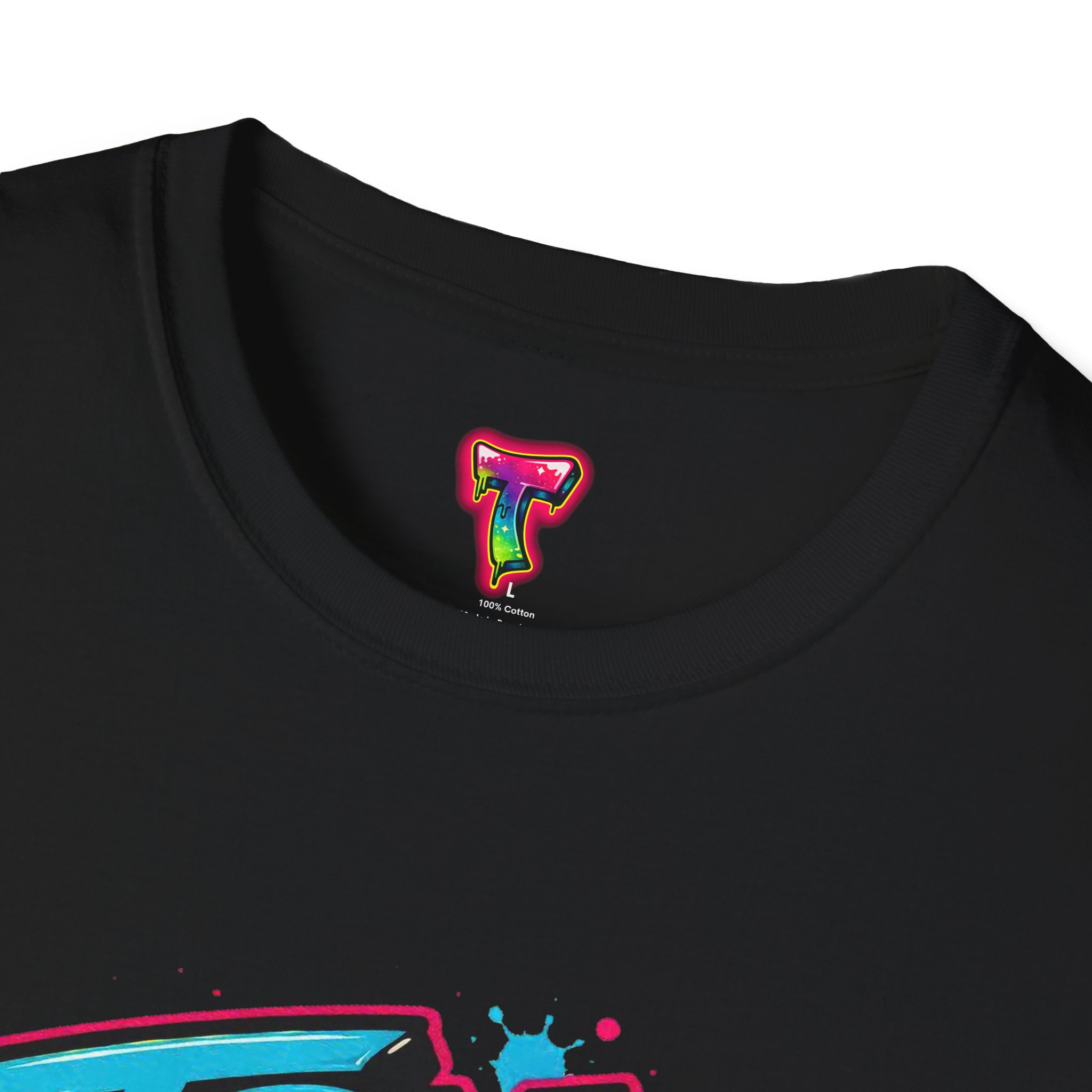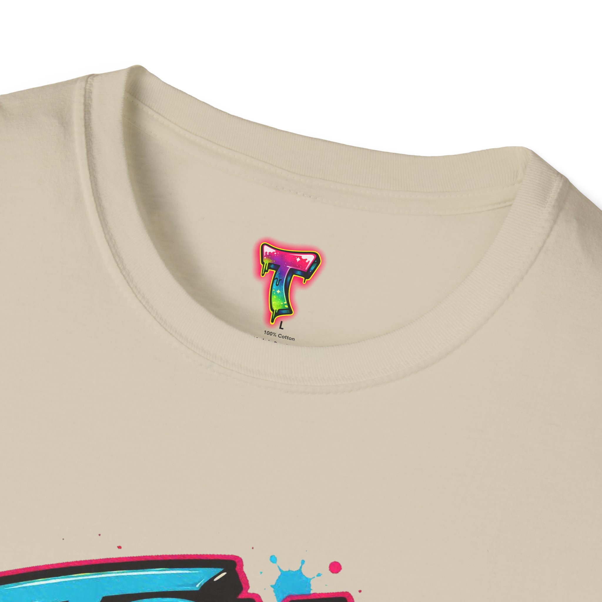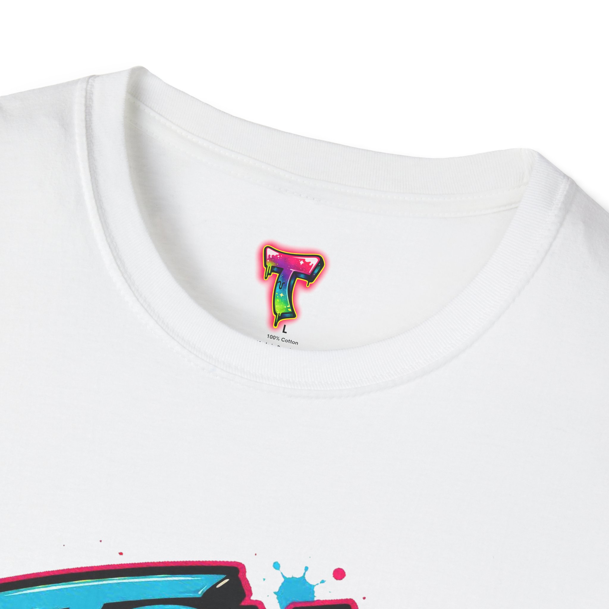 This lightweight cotton tee wears like a laid-back attitude. A bold, graffiti-style graphic — splattered paint, neon tones and dripping accents — sits at the chest, striking a playful, defiant note: it reads like a street mural you’d find between late-night skate sessions and morning coffee runs. The classic crew cut and clean silhouette keep the look casual and wearable, while the soft ring-spun cotton feels comfortable all day. Wear it over denim or layered under an open shirt to let the print do the talking. It’s the kind of shirt that swaps pressure for humor and reminds the wearer to breathe, laugh, and show up tomorrow.