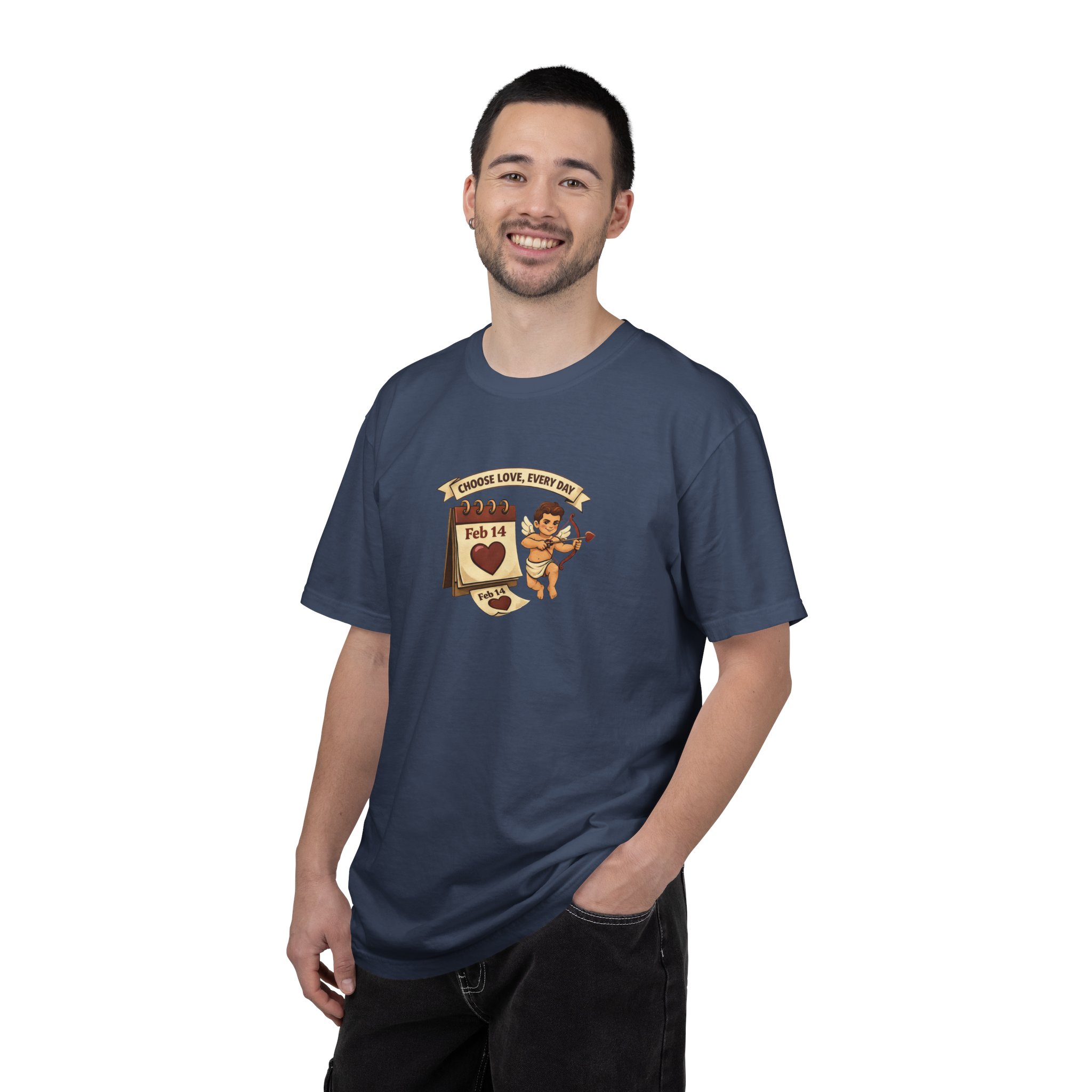 Retro Cupid Valentine’s Day Shirt, Choose Love Every Day Calendar T-Shirt, Vintage Cupid Graphic Tee, February 14th Heart Shirt, Romantic Aesthetic Apparel.