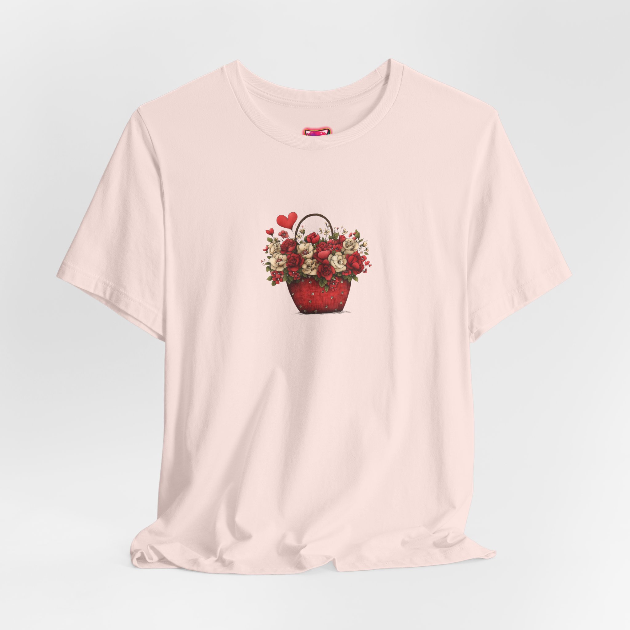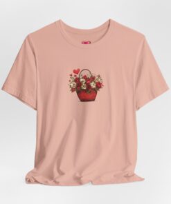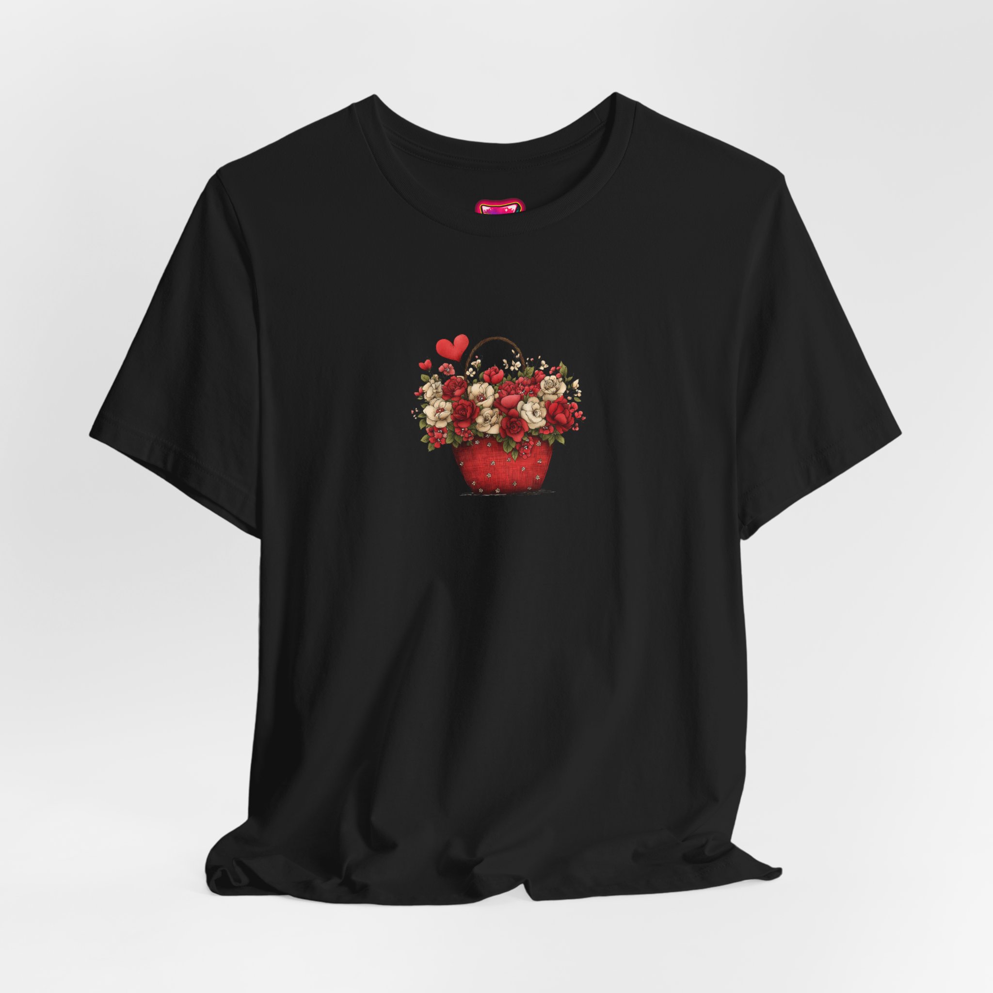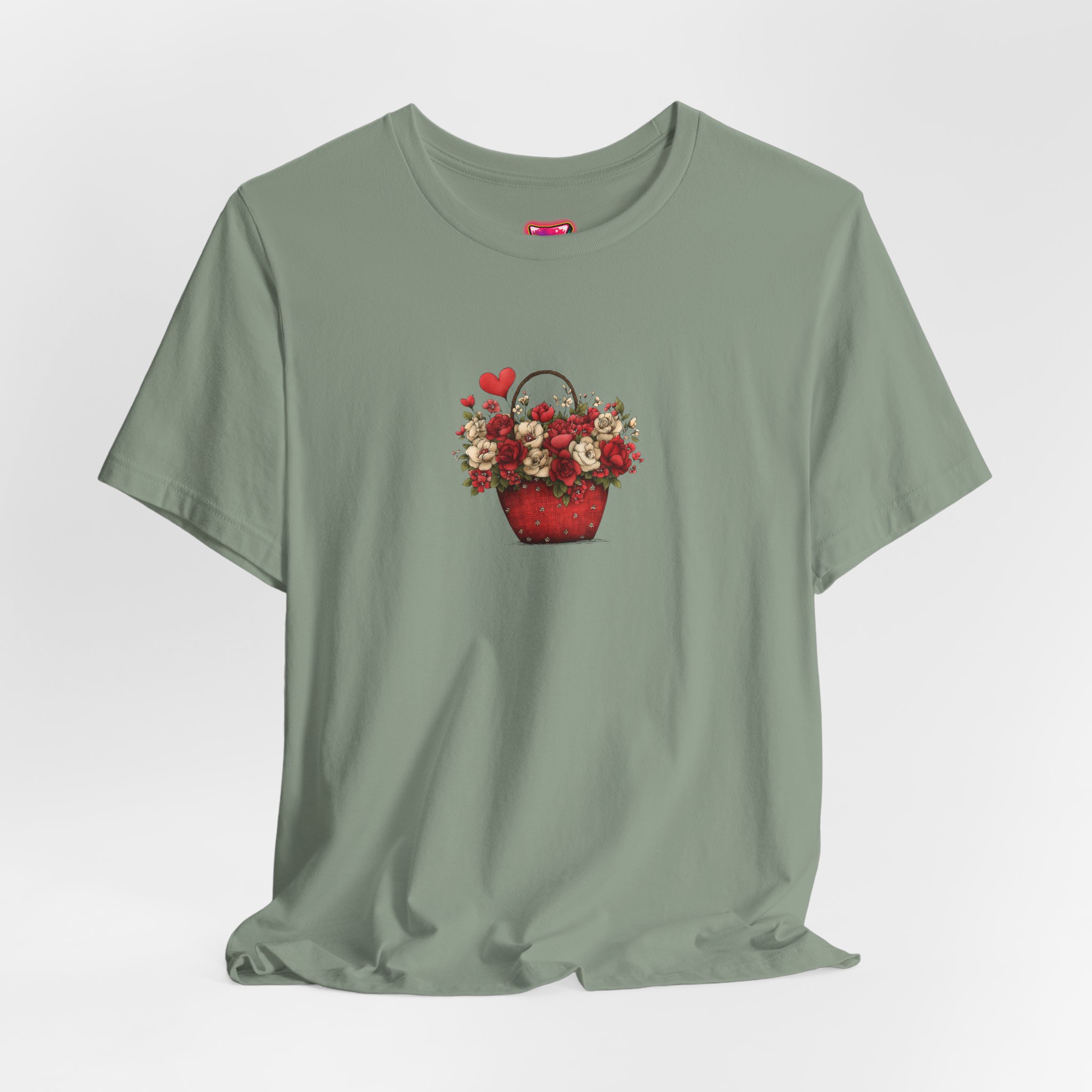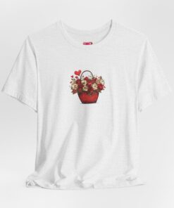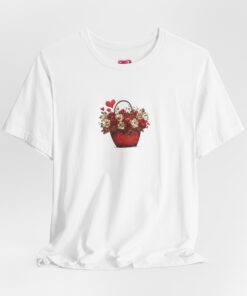 Say it with flowers that never fade with our “Valentine Floral Basket ” Tee! This elegant design features a woven basket overflowing with lush red and pink roses, topped with a delicate floating heart. A timeless symbol of affection, this floral illustration captures the beauty of a fresh spring garden and the warmth of a heartfelt romantic gesture.