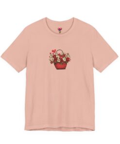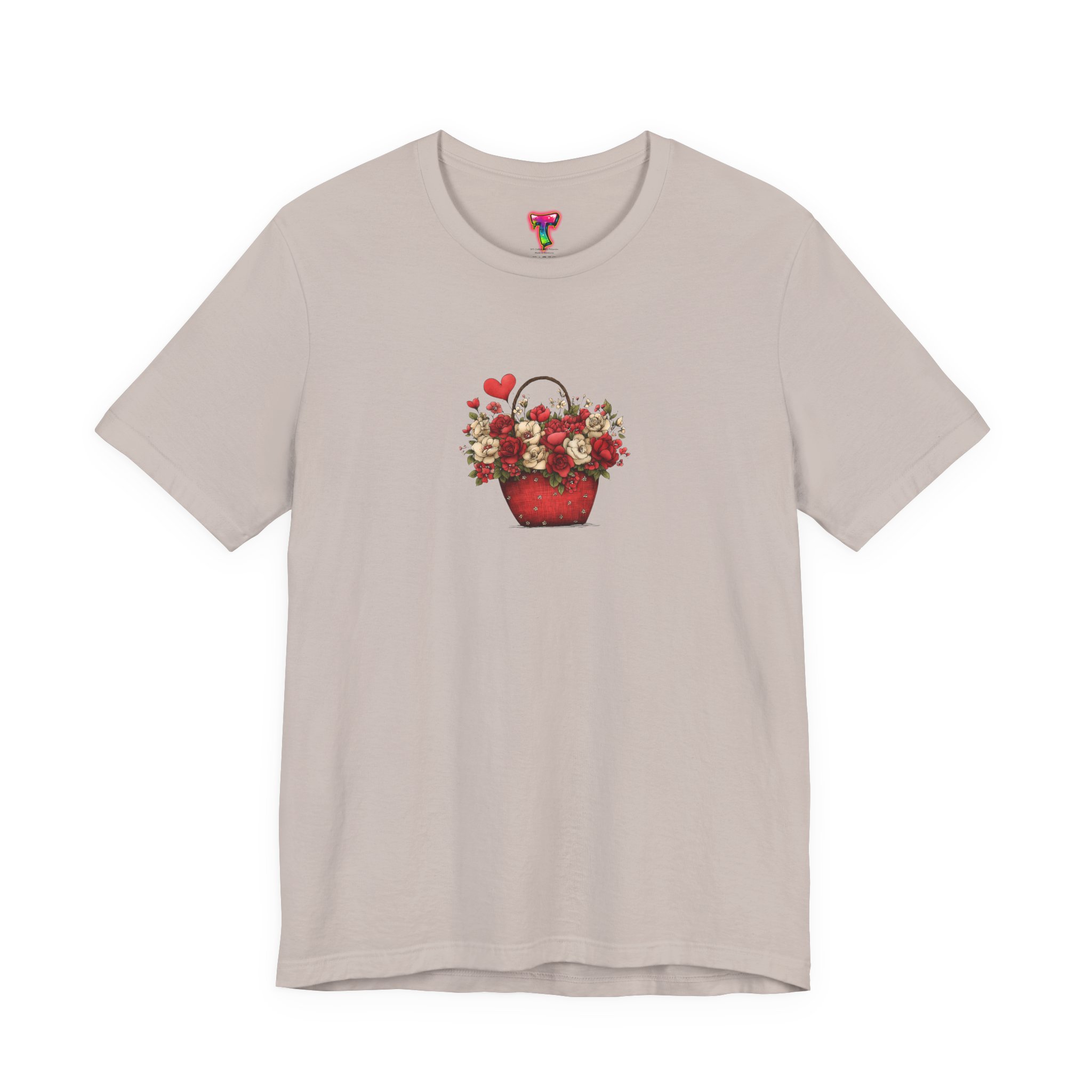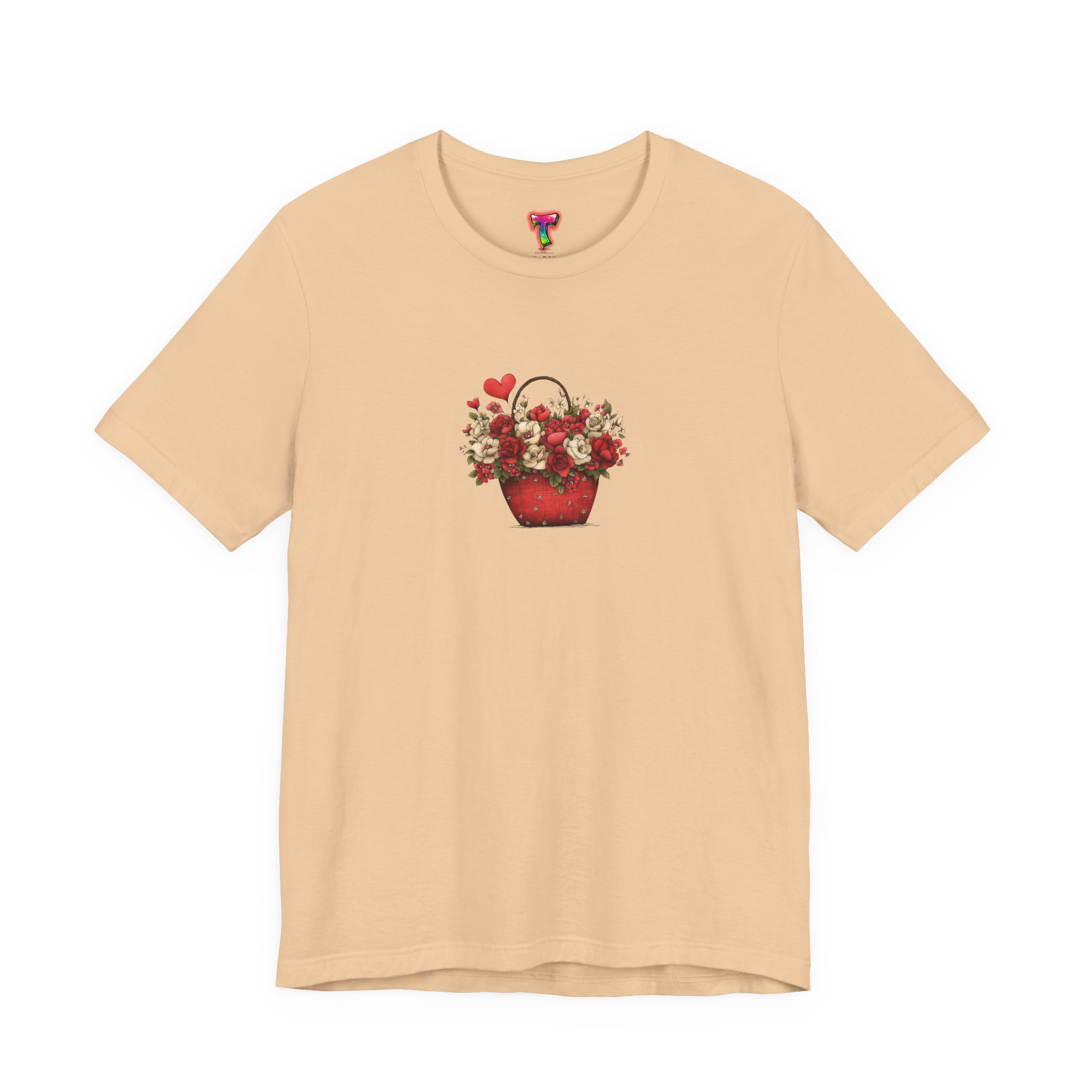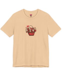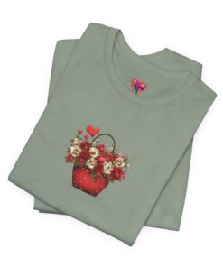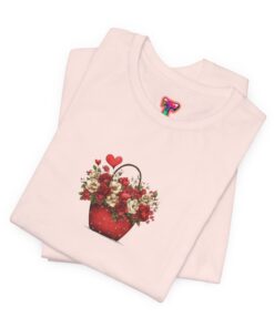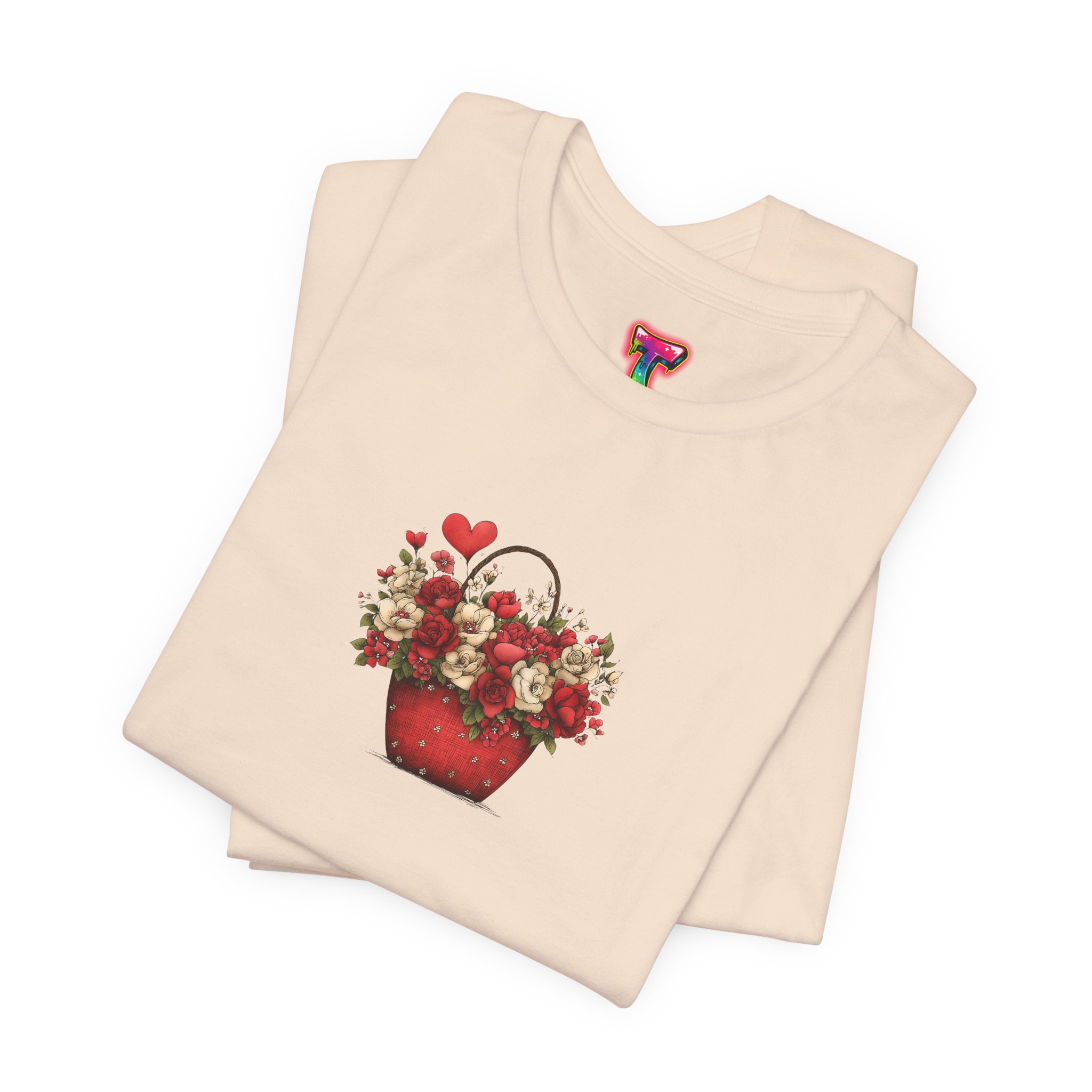 Say it with flowers that never fade with our “Valentine Floral Basket ” Tee! This elegant design features a woven basket overflowing with lush red and pink roses, topped with a delicate floating heart. A timeless symbol of affection, this floral illustration captures the beauty of a fresh spring garden and the warmth of a heartfelt romantic gesture.